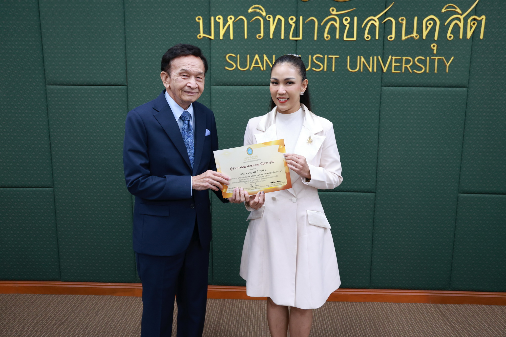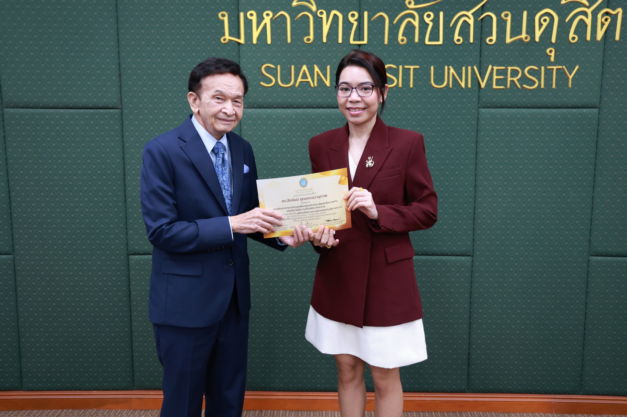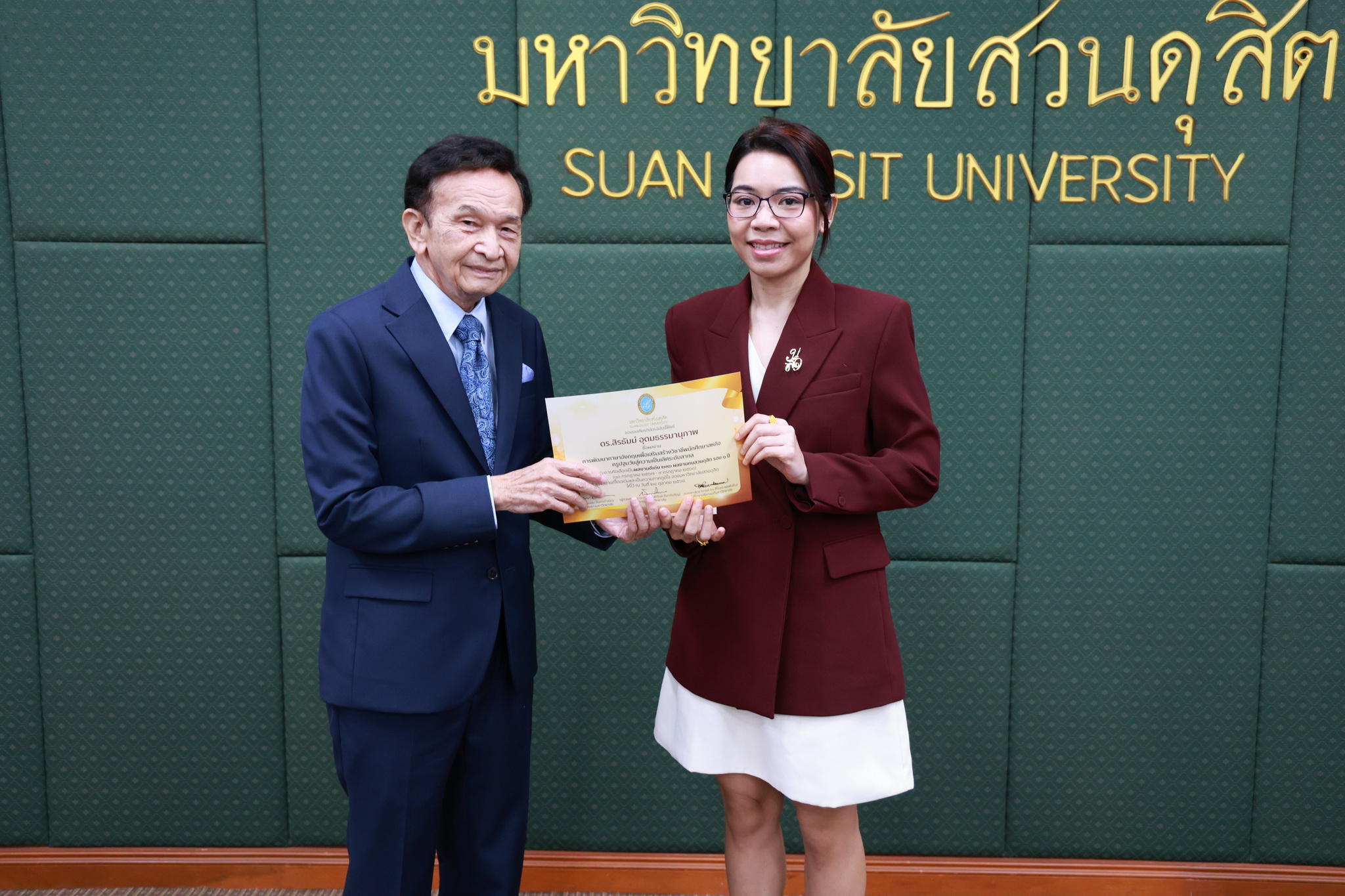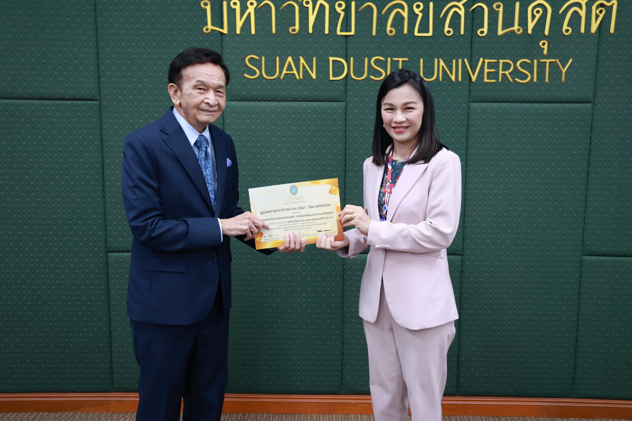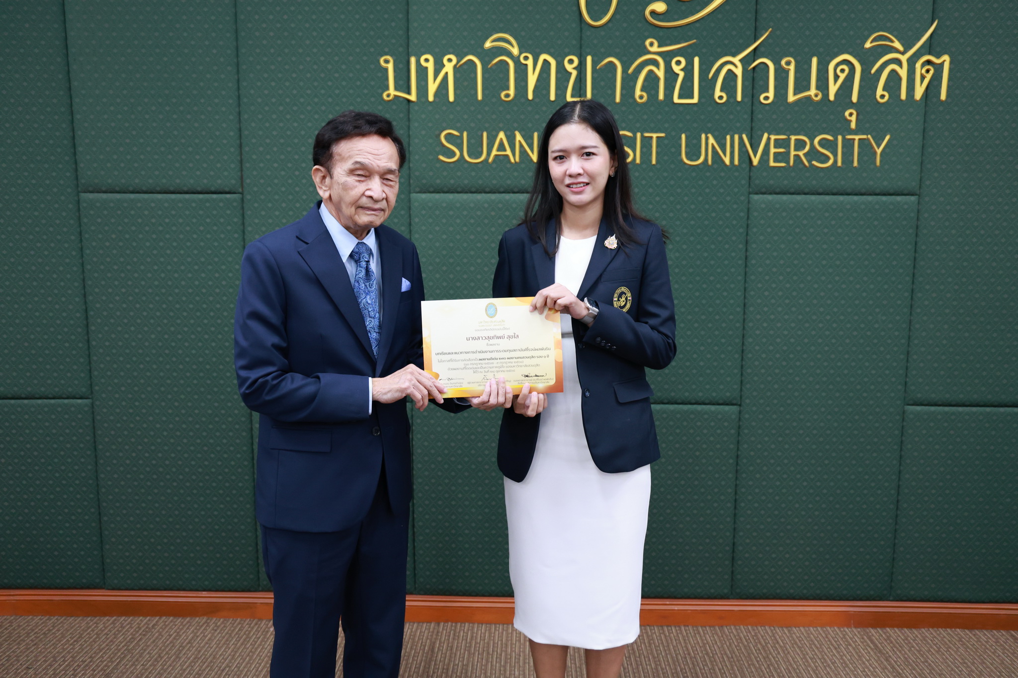 โดยการประชุมสภามหาวิทยาลัยในครั้งนี้ได้จัดให้มีพิธีมอบใบประกาศและเงินรางวัลสำหรับอาจารย์และบุคลากร จำนวน 14 บทความที่ร่วมส่งผลงานดีเด่นจากโครงการคัดเลือกผลงานดีเด่น 236 ผลงานคนสวนดุสิต ในรอบ 1 ปี โดยได้รับเกียรติจาก ดร.ถนอม อินทรกำเนิด มอบใบประกาศและเงินรางวัล โดยอาจารย์และบุคลากรที่ได้รับรางวัล ดังนี้