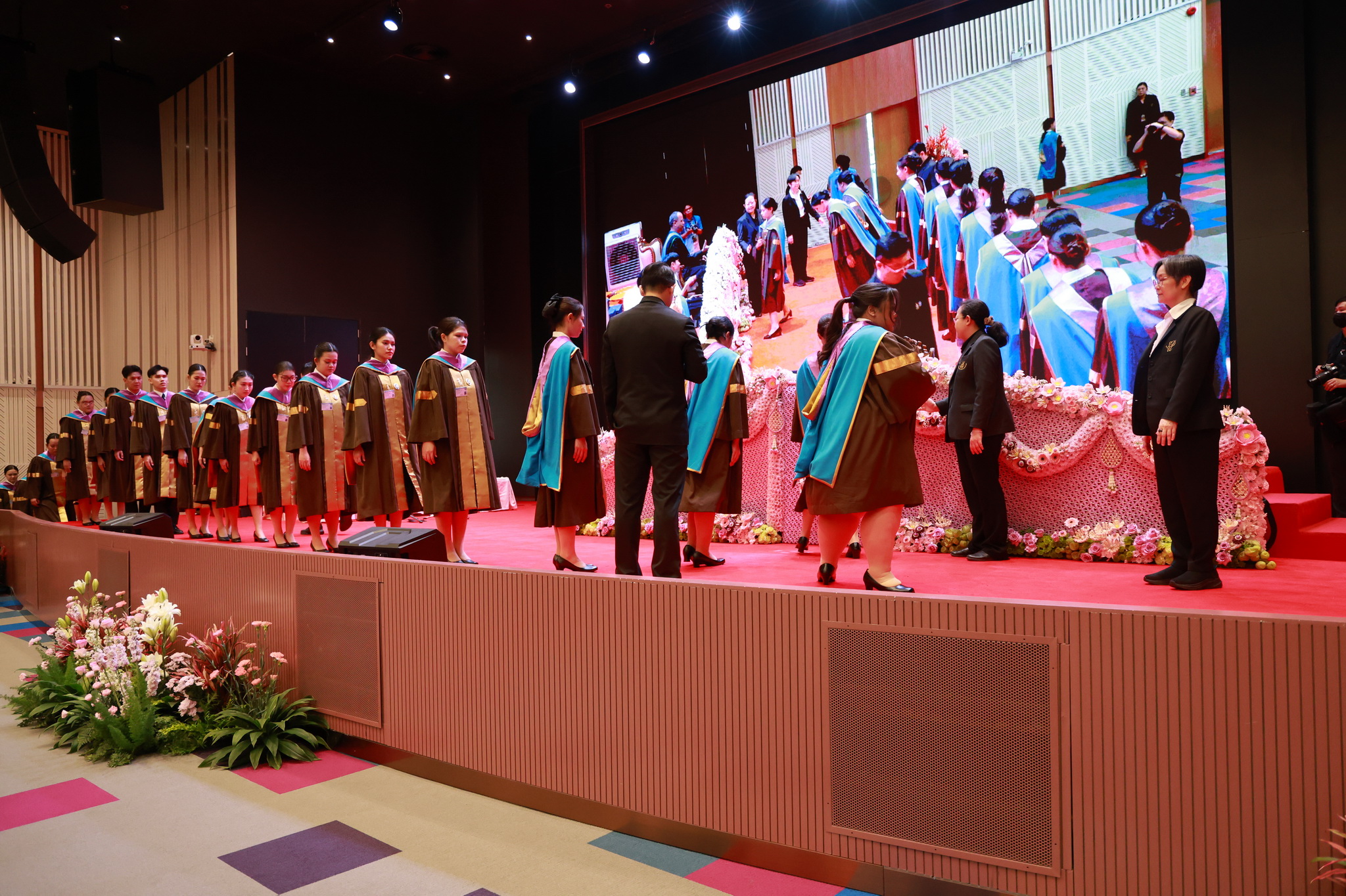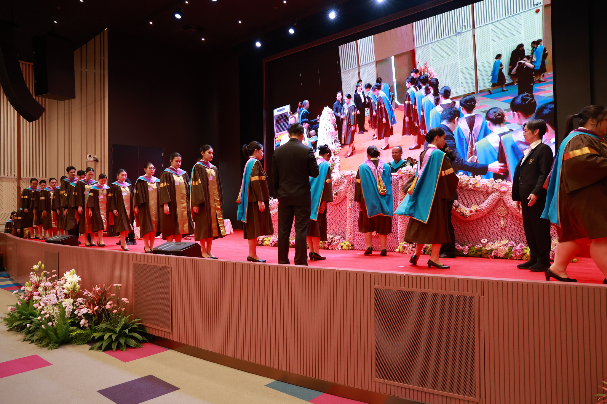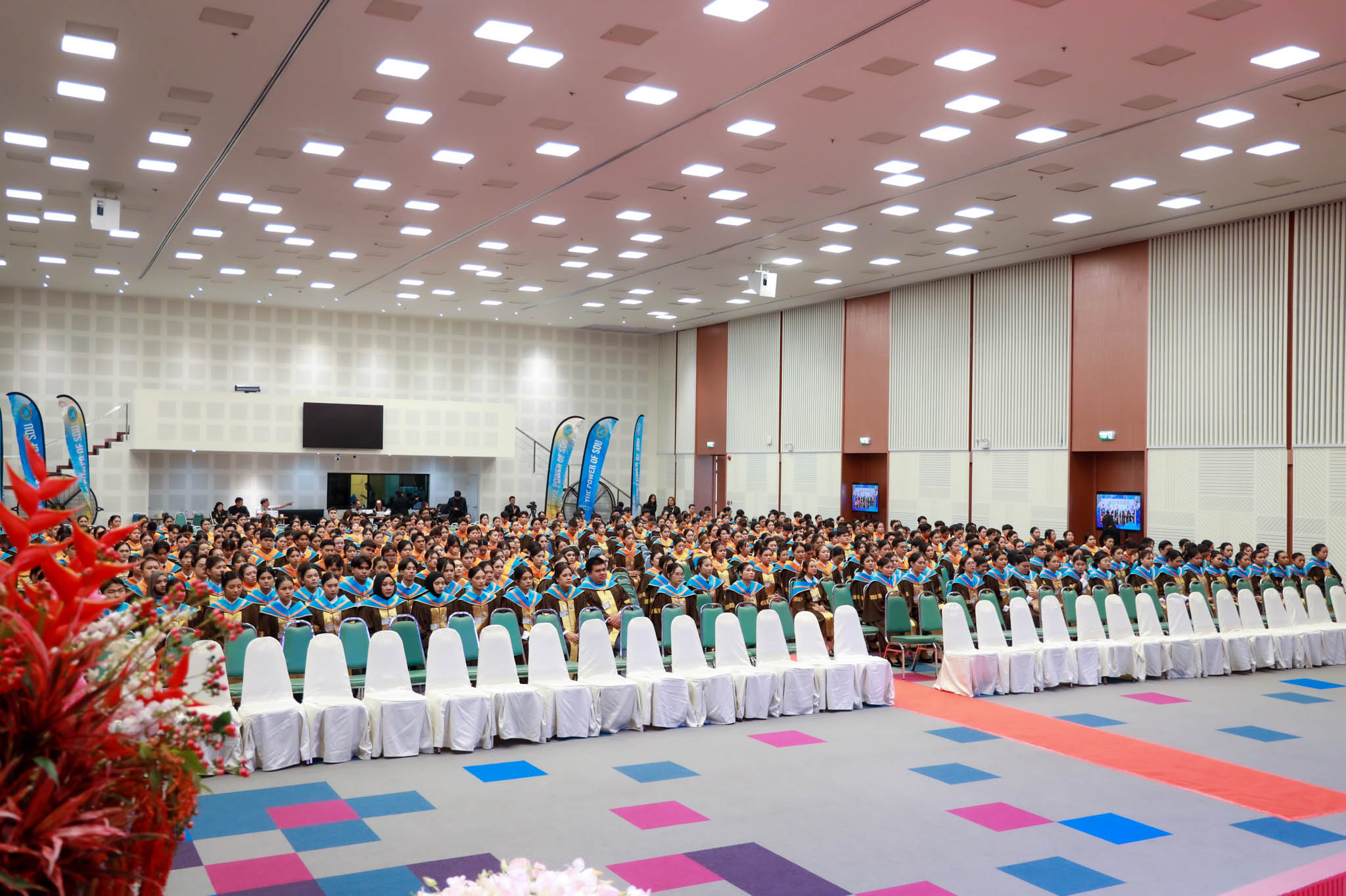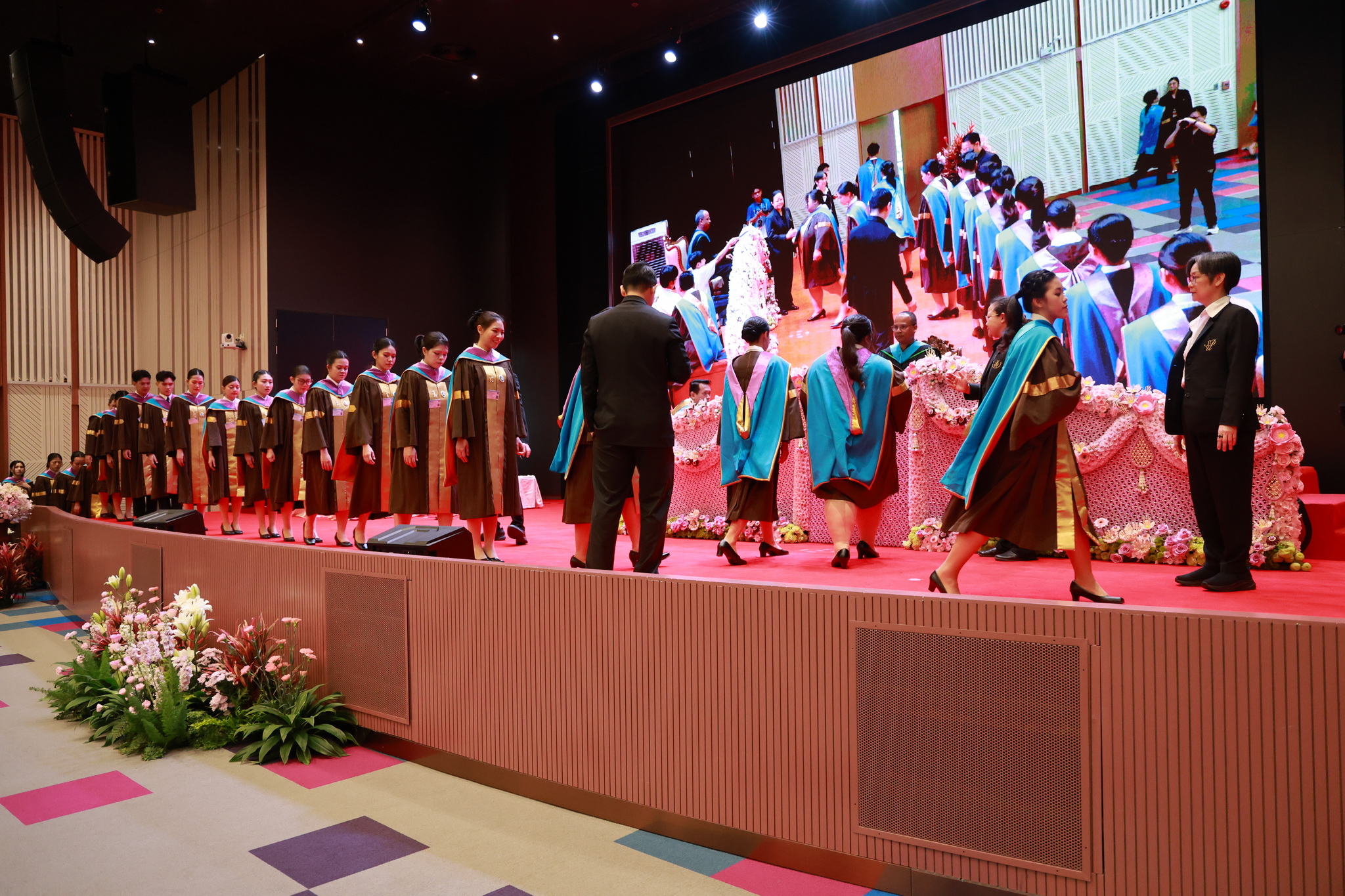 มหาวิทยาลัยสวนดุสิต จัดพิธีซ้อมใหญ่งานพิธีพระราชทานปริญญาบัตร ประจำปีการศึกษา 2566 และมอบโล่เกียรติคุณศิษย์เก่าดีเด่น ประจำปี 2568 โดยก่อนเริ่มพิธีการฝึกซ้อมผู้บริหาร คณาจารย์ บุคลากร นักศึกษา และบัณฑิตมหาวิทยาลัยสวนดุสิต ร่วมยืนสงบนิ่งเพื่อไว้อาลัย แด่สมเด็จพระนางเจ้าสิริกิติ์ พระบรมราชินีนาถ พระบรมราชชนนีพันปีหลวง จากนั้น โดยได้รับเกียรติจาก ผศ.ดร.พิทักษ์ จันทร์เจริญ อธิการบดีมหาวิทยาลัยสวนดุสิต กล่าวแสดงความยินดี และให้โอวาทแก่บัณฑิตมหาวิทยาลัยสวนดุสิต ในโอกาสที่สำเร็จการศึกษาและจะเข้ารับพระราชทานปริญญาบัตร ในวันศุกร์ที่ 31 ตุลาคม 2568 พร้อมกล่าวแสดงยินดีและมอบโล่เกียรติคุณศิษย์เก่าดีเด่น ประจำปี 2568 โดยจัดขึ้น ณ หอประชุมรักตะกนิษฐ มหาวิทยาลัยสวนดุสิต วันอาทิตย์ที่ 26 ตุลาคม 2568