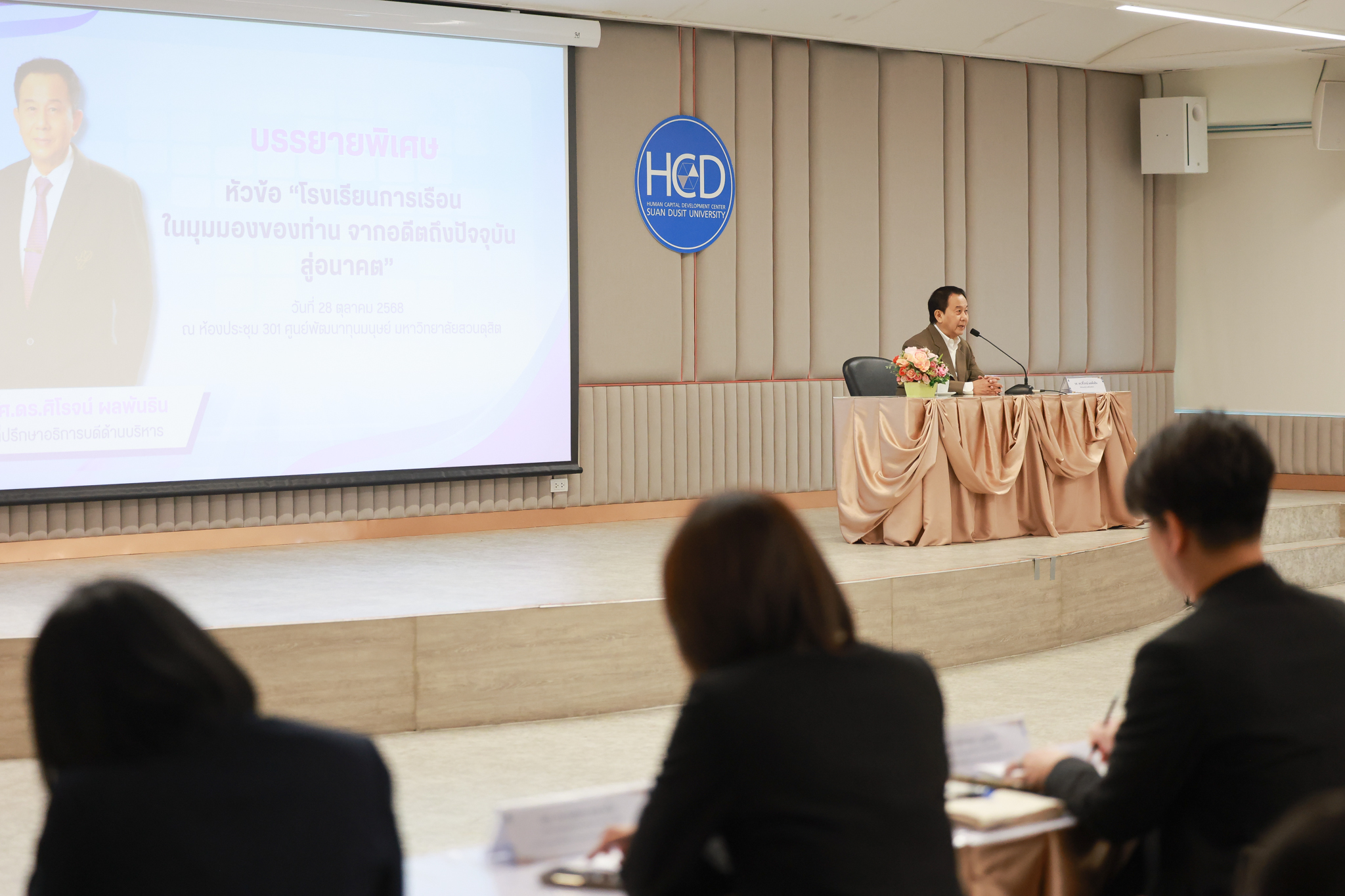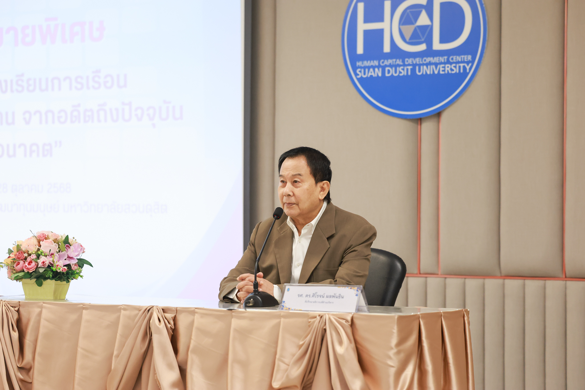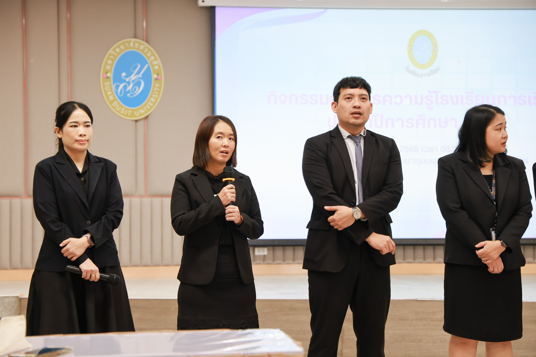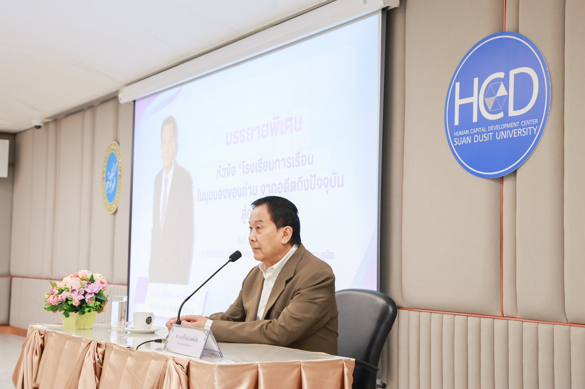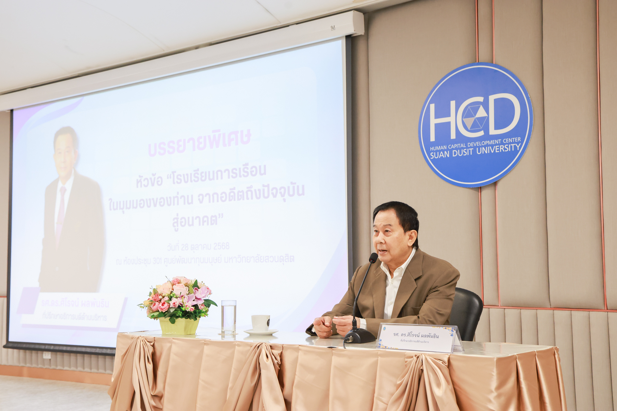 โรงเรียนการเรือน มหาวิทยาลัยสวนดุสิต จัดประชุมและกิจกรรมจัดการความรู้โรงเรียนการเรือน ประจำปีการศึกษา 2568 บุคลากรสายวิชาการและสายสนับสนุน โดยได้รับเกียรติจาก รศ.ดร.ศิโรจน์ ผลพันธิน ที่ปรึกษาอธิการบดีด้านบริหาร บรรยายพิเศษหัวข้อ โรงเรียนการเรือน ในมุมมองจากอดีตถึงปัจจุบัน สู่อนาคต กล่าววัตุประสงค์การจัดกิจกรรมและนำประชุมบุคลากรโรงเรียนการเรือนโดย ผศ.ว่าที่ ร.ต. ดร.ธนพัฒน์ แสงรุ่งเรือง คณบดีโรงเรียนการเรือน และทีมผู้บริหาร กิจกรรม KM ด้านการจัดการเรียนการสอน โดยประธานหลักสูตร และตัวแทนคณาจารย์ การบรรยายหัวข้อ “การดำรงตนในฐานะอาจารย์ที่ดี”โดย ผศ.ดร.นฤมล นันทรักษ์ ที่ปรึกษาโรงเรียนการเรือน และ บรรยาย “หลักสูตรกับ OBE และ AUN OA” และกิจกรรมแลกเปลี่ยนเรียนรู้ โดย อาจารย์ธิติมา แก้วมณี รองคณบดีโรงเรียนการเรือน ฝ่ายวิชาการและการวางแผน และ ผศ.ดร.สุภาภรณ์ ตั้งดำเนินสวัสดิ์ อาจารย์ประจำบัณฑิตวิทยาลัย เมื่อวันที่ 28 ตุลาคม 2568 ณ ห้องประชุม 301 ศูนย์พัฒนาทุนมนุษย์ มหาวิทยาลัยสวนดุสิต