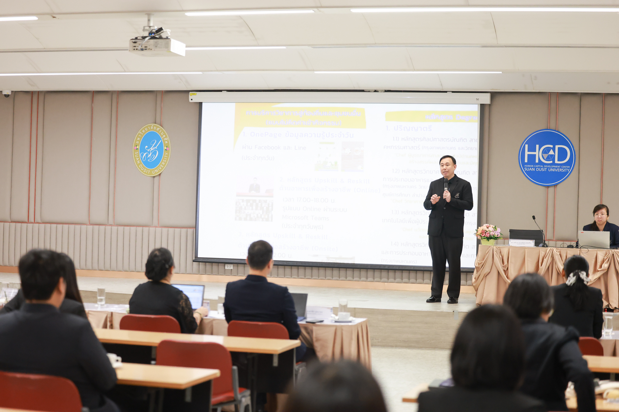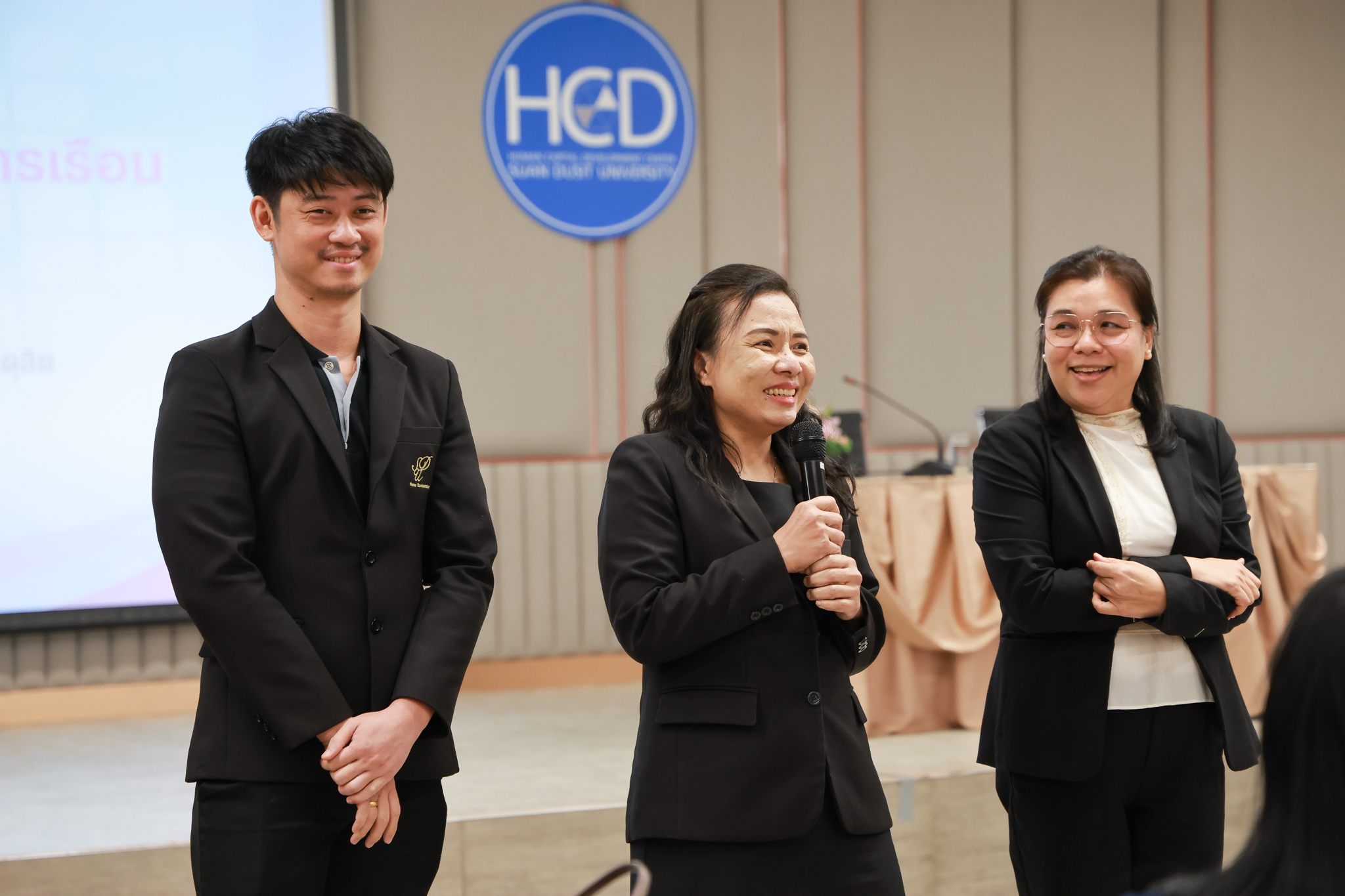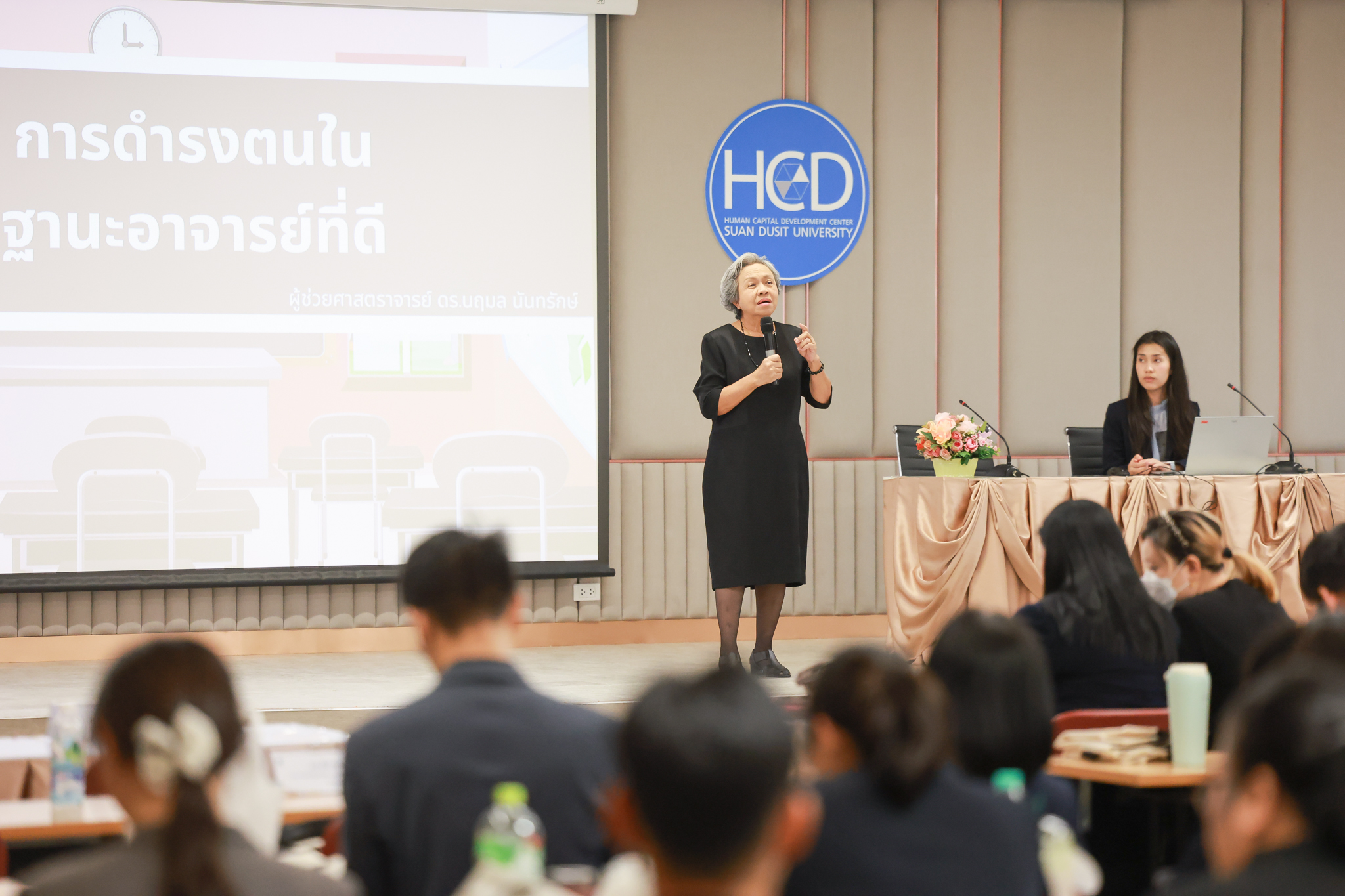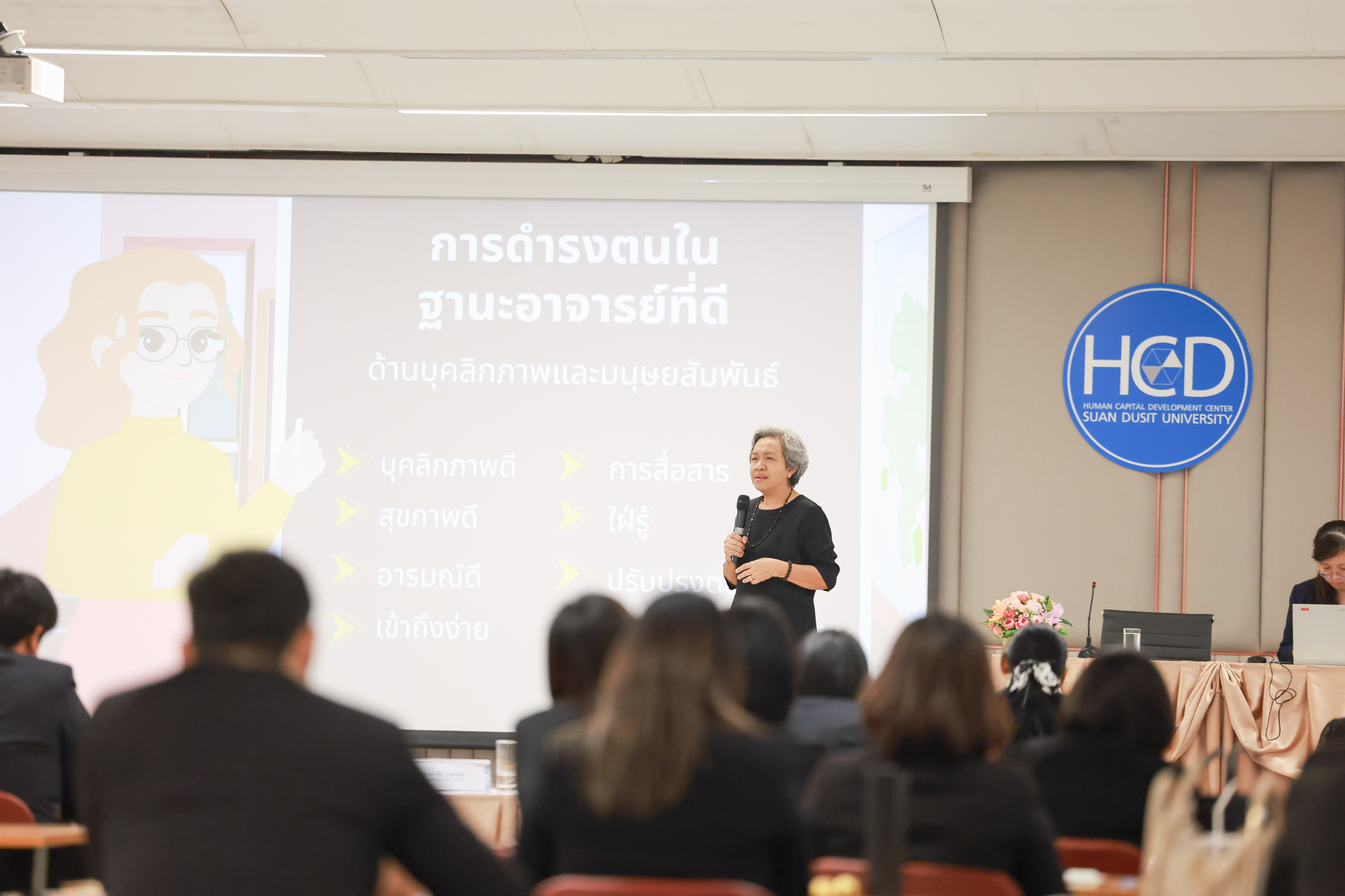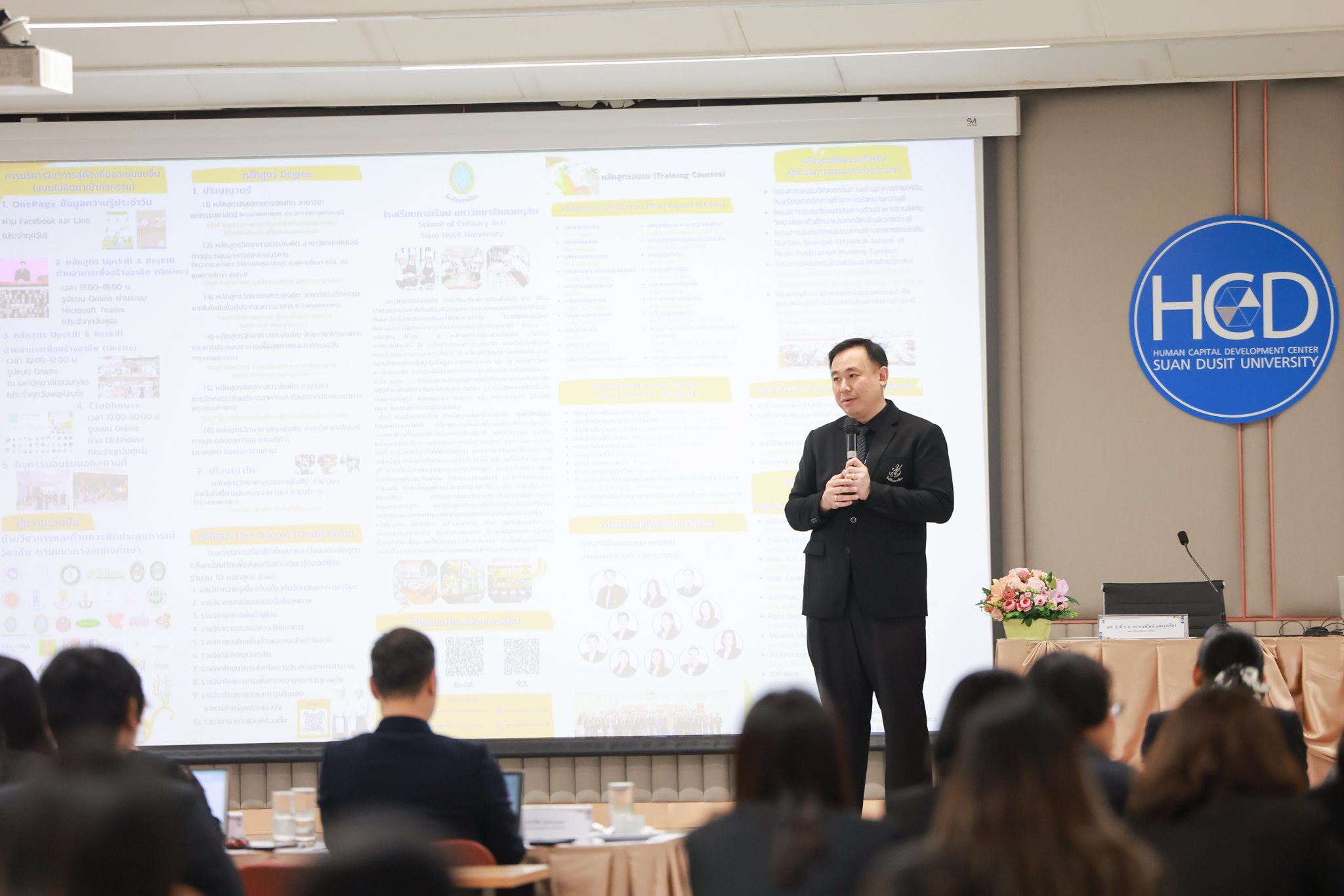 โรงเรียนการเรือน มหาวิทยาลัยสวนดุสิต จัดประชุมและกิจกรรมจัดการความรู้โรงเรียนการเรือน ประจำปีการศึกษา 2568 บุคลากรสายวิชาการและสายสนับสนุน โดยได้รับเกียรติจาก รศ.ดร.ศิโรจน์ ผลพันธิน ที่ปรึกษาอธิการบดีด้านบริหาร บรรยายพิเศษหัวข้อ โรงเรียนการเรือน ในมุมมองจากอดีตถึงปัจจุบัน สู่อนาคต กล่าววัตุประสงค์การจัดกิจกรรมและนำประชุมบุคลากรโรงเรียนการเรือนโดย ผศ.ว่าที่ ร.ต. ดร.ธนพัฒน์ แสงรุ่งเรือง คณบดีโรงเรียนการเรือน และทีมผู้บริหาร กิจกรรม KM ด้านการจัดการเรียนการสอน โดยประธานหลักสูตร และตัวแทนคณาจารย์ การบรรยายหัวข้อ “การดำรงตนในฐานะอาจารย์ที่ดี”โดย ผศ.ดร.นฤมล นันทรักษ์ ที่ปรึกษาโรงเรียนการเรือน และ บรรยาย “หลักสูตรกับ OBE และ AUN OA” และกิจกรรมแลกเปลี่ยนเรียนรู้ โดย อาจารย์ธิติมา แก้วมณี รองคณบดีโรงเรียนการเรือน ฝ่ายวิชาการและการวางแผน และ ผศ.ดร.สุภาภรณ์ ตั้งดำเนินสวัสดิ์ อาจารย์ประจำบัณฑิตวิทยาลัย เมื่อวันที่ 28 ตุลาคม 2568 ณ ห้องประชุม 301 ศูนย์พัฒนาทุนมนุษย์ มหาวิทยาลัยสวนดุสิต