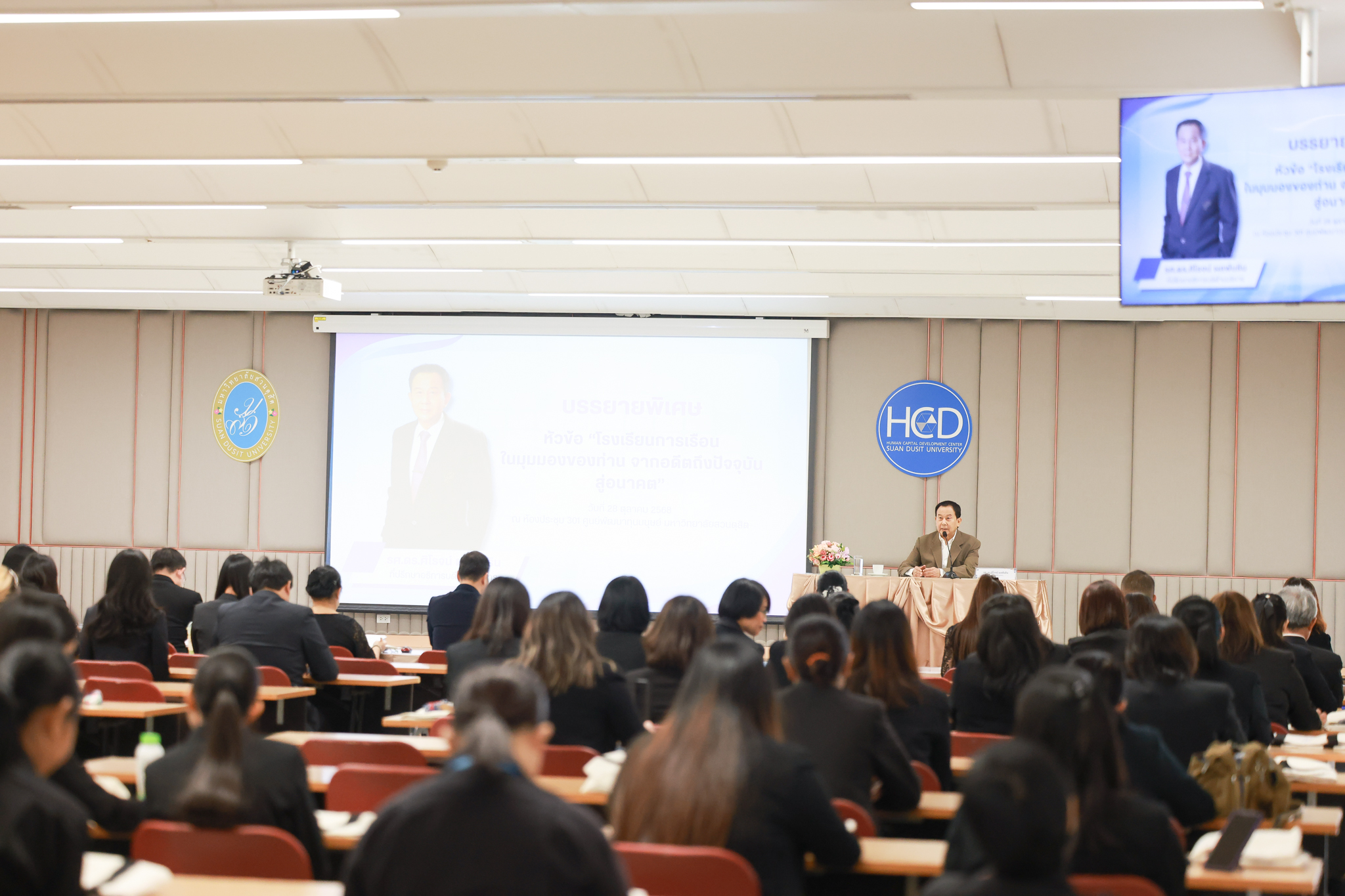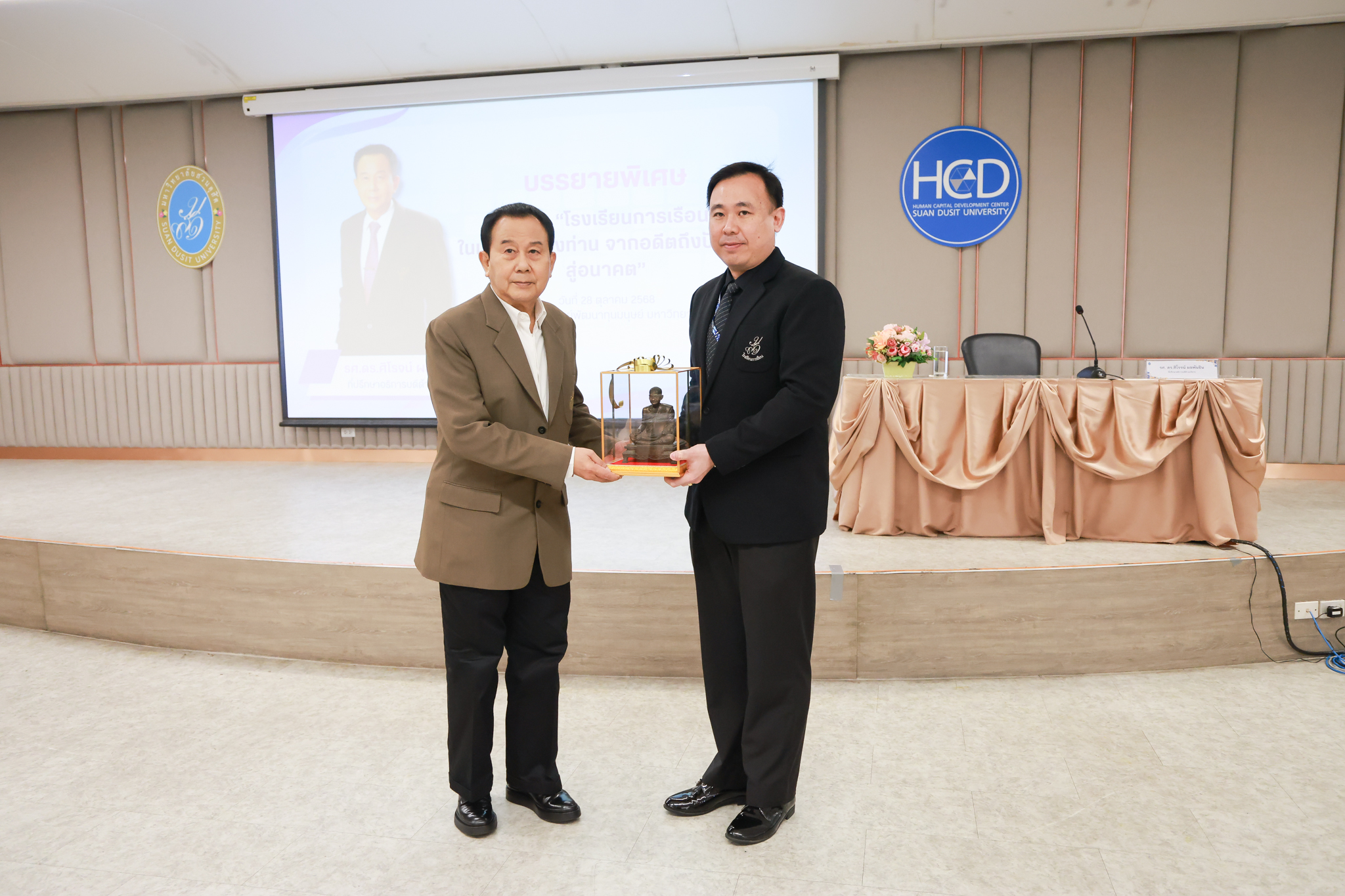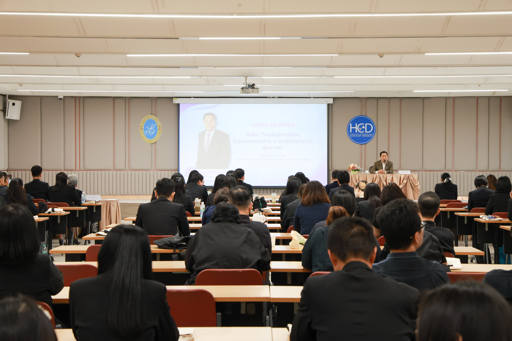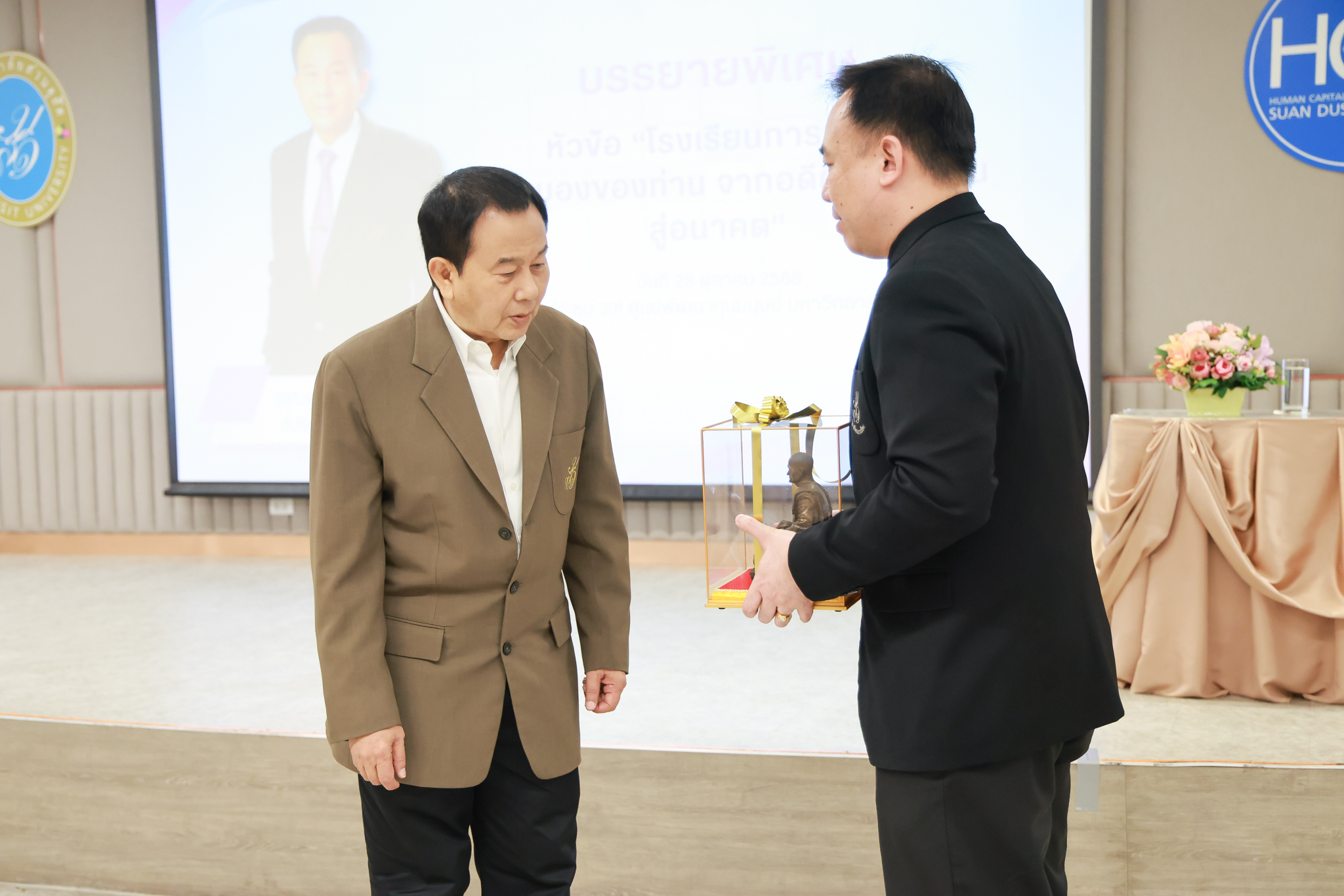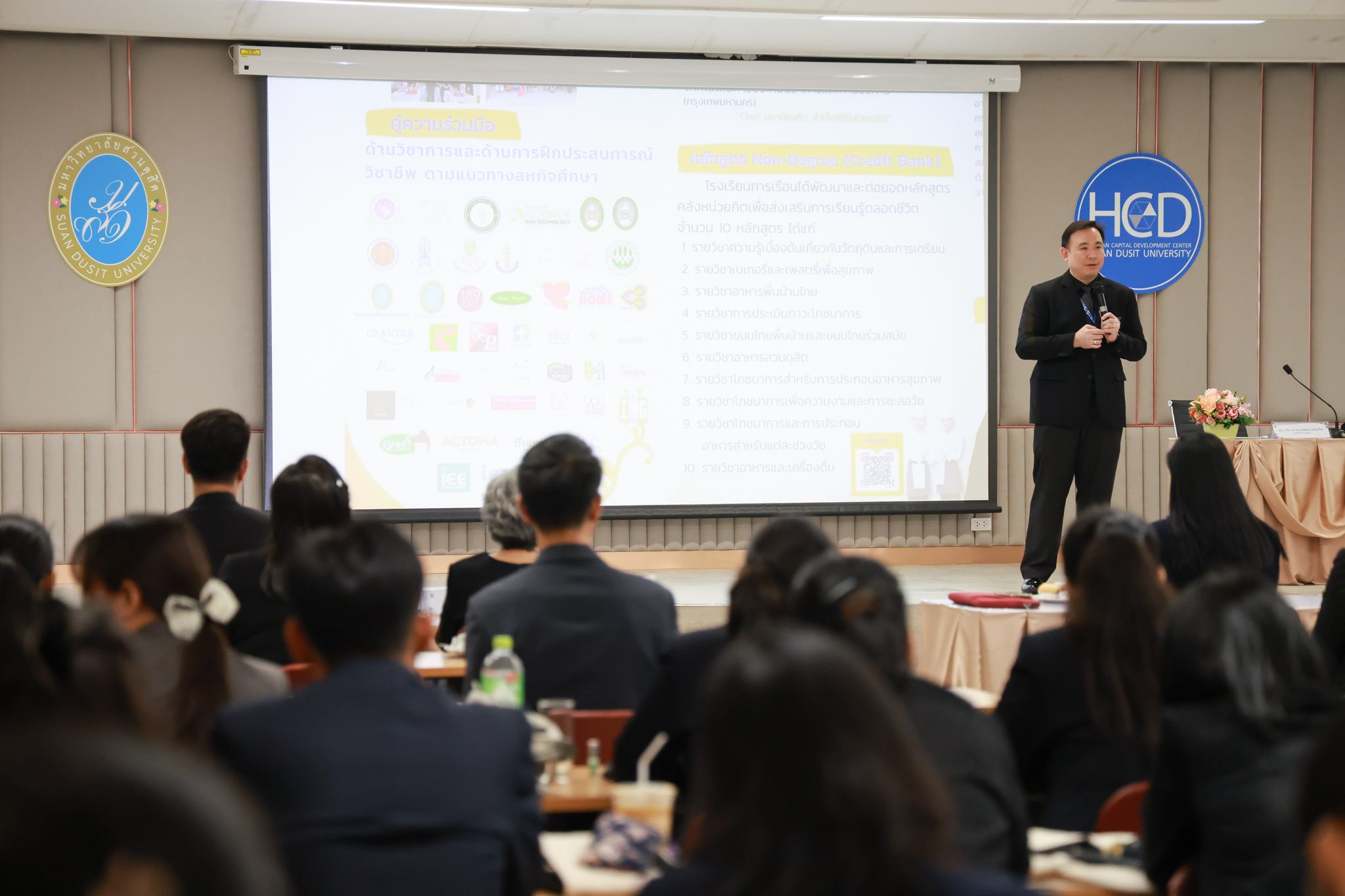 โรงเรียนการเรือน มหาวิทยาลัยสวนดุสิต จัดประชุมและกิจกรรมจัดการความรู้โรงเรียนการเรือน ประจำปีการศึกษา 2568 บุคลากรสายวิชาการและสายสนับสนุน โดยได้รับเกียรติจาก รศ.ดร.ศิโรจน์ ผลพันธิน ที่ปรึกษาอธิการบดีด้านบริหาร บรรยายพิเศษหัวข้อ โรงเรียนการเรือน ในมุมมองจากอดีตถึงปัจจุบัน สู่อนาคต กล่าววัตุประสงค์การจัดกิจกรรมและนำประชุมบุคลากรโรงเรียนการเรือนโดย ผศ.ว่าที่ ร.ต. ดร.ธนพัฒน์ แสงรุ่งเรือง คณบดีโรงเรียนการเรือน และทีมผู้บริหาร กิจกรรม KM ด้านการจัดการเรียนการสอน โดยประธานหลักสูตร และตัวแทนคณาจารย์ การบรรยายหัวข้อ “การดำรงตนในฐานะอาจารย์ที่ดี”โดย ผศ.ดร.นฤมล นันทรักษ์ ที่ปรึกษาโรงเรียนการเรือน และ บรรยาย “หลักสูตรกับ OBE และ AUN OA” และกิจกรรมแลกเปลี่ยนเรียนรู้ โดย อาจารย์ธิติมา แก้วมณี รองคณบดีโรงเรียนการเรือน ฝ่ายวิชาการและการวางแผน และ ผศ.ดร.สุภาภรณ์ ตั้งดำเนินสวัสดิ์ อาจารย์ประจำบัณฑิตวิทยาลัย เมื่อวันที่ 28 ตุลาคม 2568 ณ ห้องประชุม 301 ศูนย์พัฒนาทุนมนุษย์ มหาวิทยาลัยสวนดุสิต