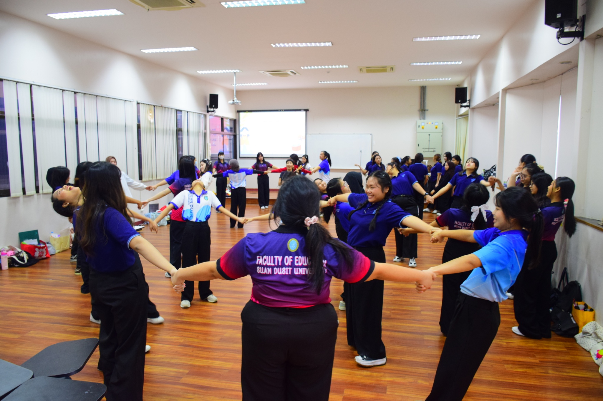 คณะครุศาสตร์จัดกิจกรรมปลุกพลังรักษ์โลกให้กับนักศึกษาหลักสูตรศึกษาศาสตรบัณฑิต สาขาวิชาการศึกษาปฐมวัย เป็นวันที่ 2 ผ่านการทำงานของครูปฐมวัยกับเสียงเพลงและการเคลื่อนไหว เพื่อให้นักศึกษาฝึกการใช้สุนทรียภาพในศาสตร์ของเสียงเพลงในการจัดประสบการณ์การเรียนรู้ให้กับเด็กปฐมวัยทั้งภาษาไทยและภาษาอังกฤษ โดยกิจกรรมนี้ได้รับเกียรติจากอาจารย์อัญชิษฐา ปิยะจิตติ อาจารย์ประจำหลักสูตรการศึกษาปฐมวัย ศูนย์การศึกษานครนายก ผู้เชี่ยวชาญด้านเพลงและดนตรีสำหรับเด็กปฐมวัย และเป็นผู้สร้างสรรค์เนื้อหาสำหรับการจัดกิจกรรมในครั้งนี้ ณ ห้อง 852 คณะครุศาสตร์ วันอังคารที่ 28 ตุลาคม 2568