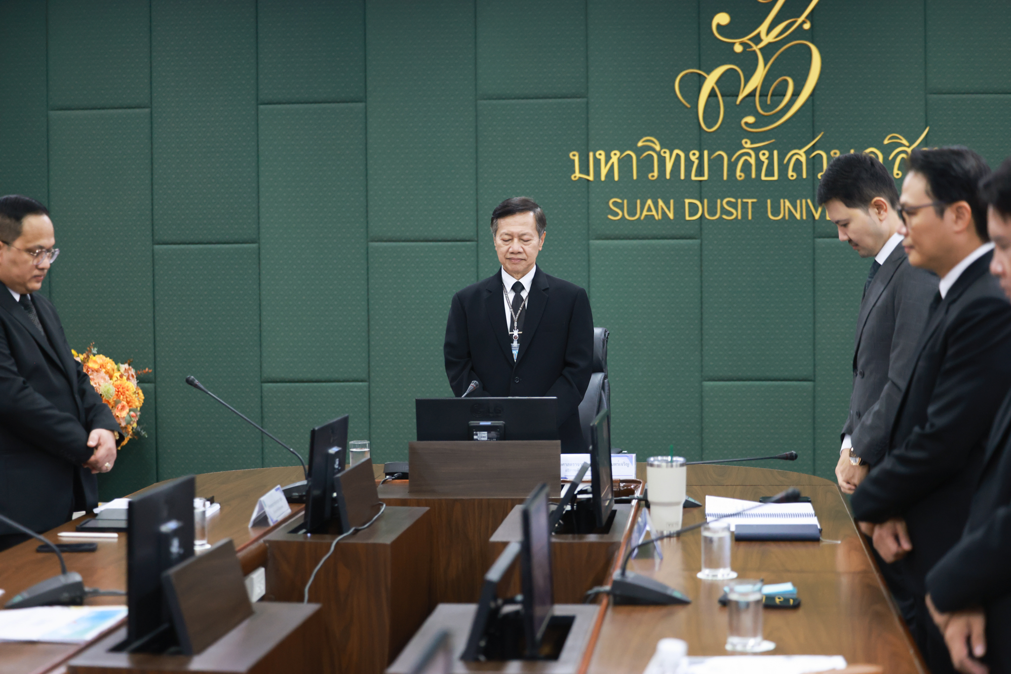 สำนักนวัตกรรมชุมชน มหาวิทยาลัยสวนดุสิต จัดประชุมคณะกรรมการดําเนินงานสำนักนวัตกรรมชุมชน ครั้งที่ 4(4)/2568 โดยได้รับเกียรติจาก ผศ.ดร.พิทักษ์ จันทร์เจริญ อธิการบดี มหาวิทยาลัยสวนดุสิต มอบนโยบายและแนวทางการดำเนินงาน โดยมี รศ.ดร.ชนะศึก นิชานนท์ รองอธิการบดีฝ่ายบริหาร วิจัย และนวัตกรรมเป็นประธานการประชุม ร่วมกับ ผู้ช่วยศาสตราจารย์ ดร.ยุธยา อยู่เย็น ผู้อำนวยการสำนักนวัตกรรมชุมชน และบุคลากร โดยมีวาระเพื่อนำเสนอพิจารณาดังนี้ SDU GOAL และ OKRs ที่สอดคล้องกับการดำเนินงานของสำนักนวัตกรรมชุมชน แผนการดำเนินงานสำนักนวัตกรรมชุมชน ประจำปี 2569 แผนการดำเนินงานตามรูปแบบของหอมขจรโมเดล แผนการปลูกพืชและไม้ดอกในพื้นที่แปลงเปิดและในระบบโรงเรือน ช่วงเดือนตุลาคม-ธันวาคม 2568 แผนการดําเนินงานการประชุมวิชาการและนิทรรศการ ครั้งที่ 12 ทรัพยากรไทย : หวนดูทรัพย์สิ่งสินตน ระหว่างวันที่ 4-10 พฤศจิกายน 2568 ณ มหาวิทยาลัยแม่โจ้ จังหวัดเชียงใหม่ แผนการดำเนินงานพิธีลงนามบันทึกความเข้าใจในการขับเคลื่อน จังหวัดสุพรรณบุรีสู่การเป็นเมืองต้นแบบอาหารปลอดภัย และแผนการดําเนินงานให้ทุน “โครงการบูรณาการองค์ความรู้สู่การพัฒนานวัตกรรมระดับชุมชนเพื่อการต่อยอดไปสู่การบริการวิชาการ” ฯลฯ เมื่อวันพุธที่ 29 ตุลาคม พ.ศ. 2568 ณ ห้องประชุมลำพอง 2 อาคาร 1 ชั้น 2