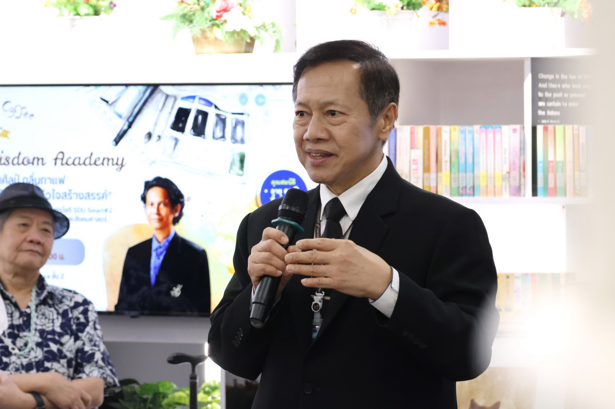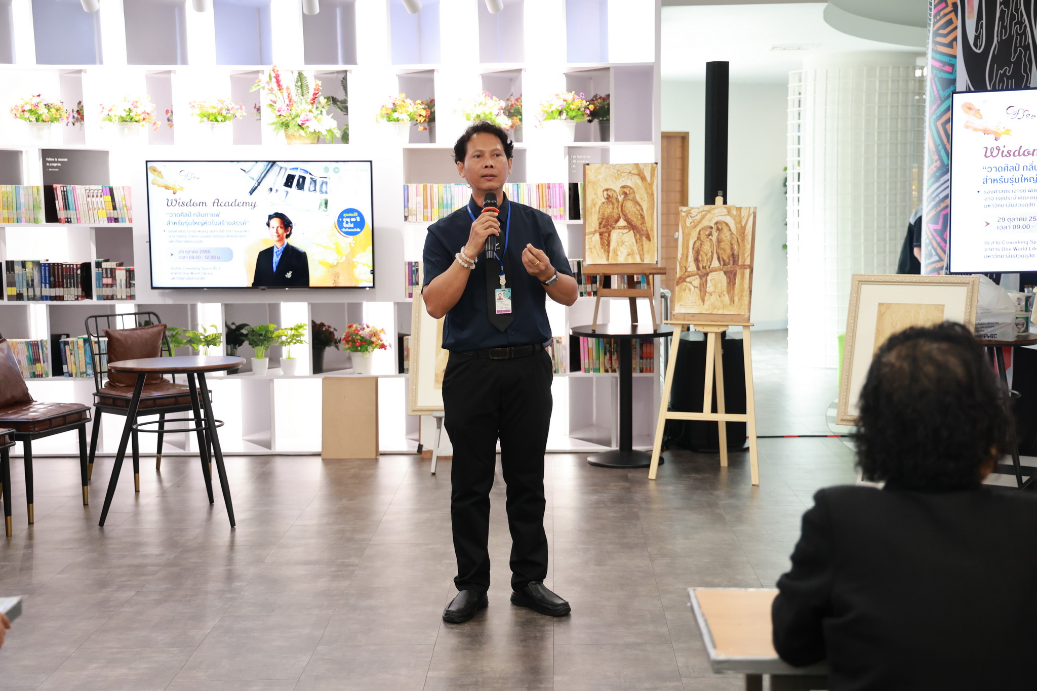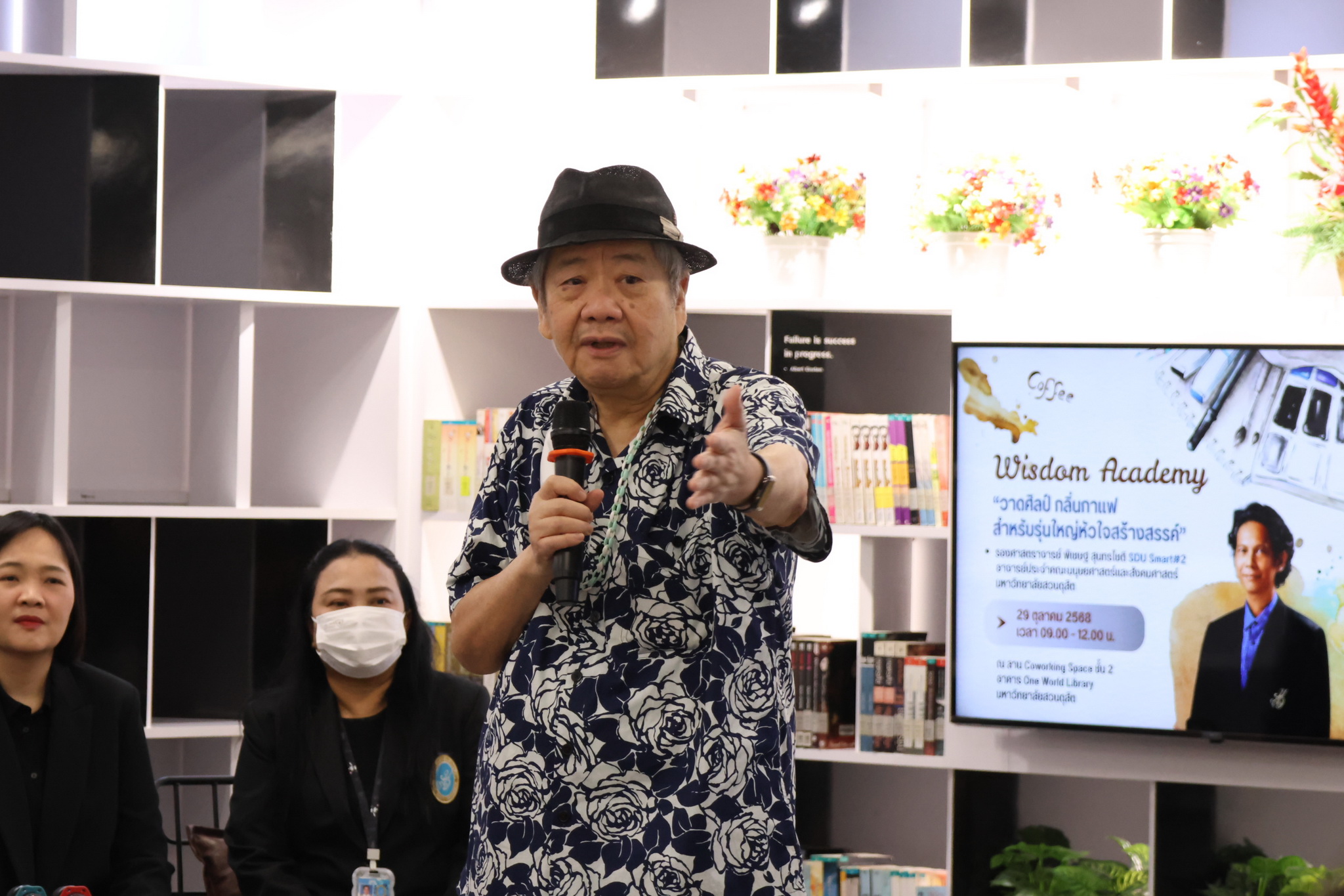 สำนักวิทยบริการและเทคโนโลยีสารสนเทศ ร่วมกับ คณะมนุษยศาสตร์และสังคมศาสตร์ และบริษัท iGroup (Asia Pacific) Limited และเครือข่ายภายในมหาวิทยาลัยฯ ได้แก่ โรงเรียนสาธิตละอออุทิศ ศูนย์สนเทศแนะแนวการศึกษาและอาชีพ สวนดุสิตโพล และกองประชาสัมพันธ์ จัดกิจกรรม Wisdom Academy ห้วข้อ วาดศิลป์ กลิ่นกาแฟสำหรับรุ่นใหญ่หัวใจสร้างสรรค์ โดยได้รับเกียรติจาก ผศ.ดร.พิทักษ์ จันทร์เจริญ อธิการบดีมหาวิทยาลัยสวนดุสิต กล่าวต้อนรับ รศ.ดร.สุขุม เฉลยทรัพย์ ประธานที่ปรึกษาอธิการบดี กล่าวถึงวัตถุประสงค์การจัดกิจกรรม และคุณพจน์ นฤตรรกกุล ประธานบริษัท iGroup (Asia Pacific) Limited กล่าวเปิดกิจกรรม โดย รศ.พิเชษฐ สุนทรโชติ อาจารย์ประจำคณะมนุษยศาสตร์และสังคมศาสตร์ มหาวิทยาลัยสวนสิต เป็นวิทยากรการจัดกิจกรรม หัวข้อ “วาดศิลป์ กลิ่นกาแฟ สำหรับรุ่นใหญ่หัวใจสร้างสรรค์” โดยจัดขึ้น ณ ลาน Co-working Space อาคาร One World Library ชั้น 2 วันที่ 29 ตุลาคม 2568