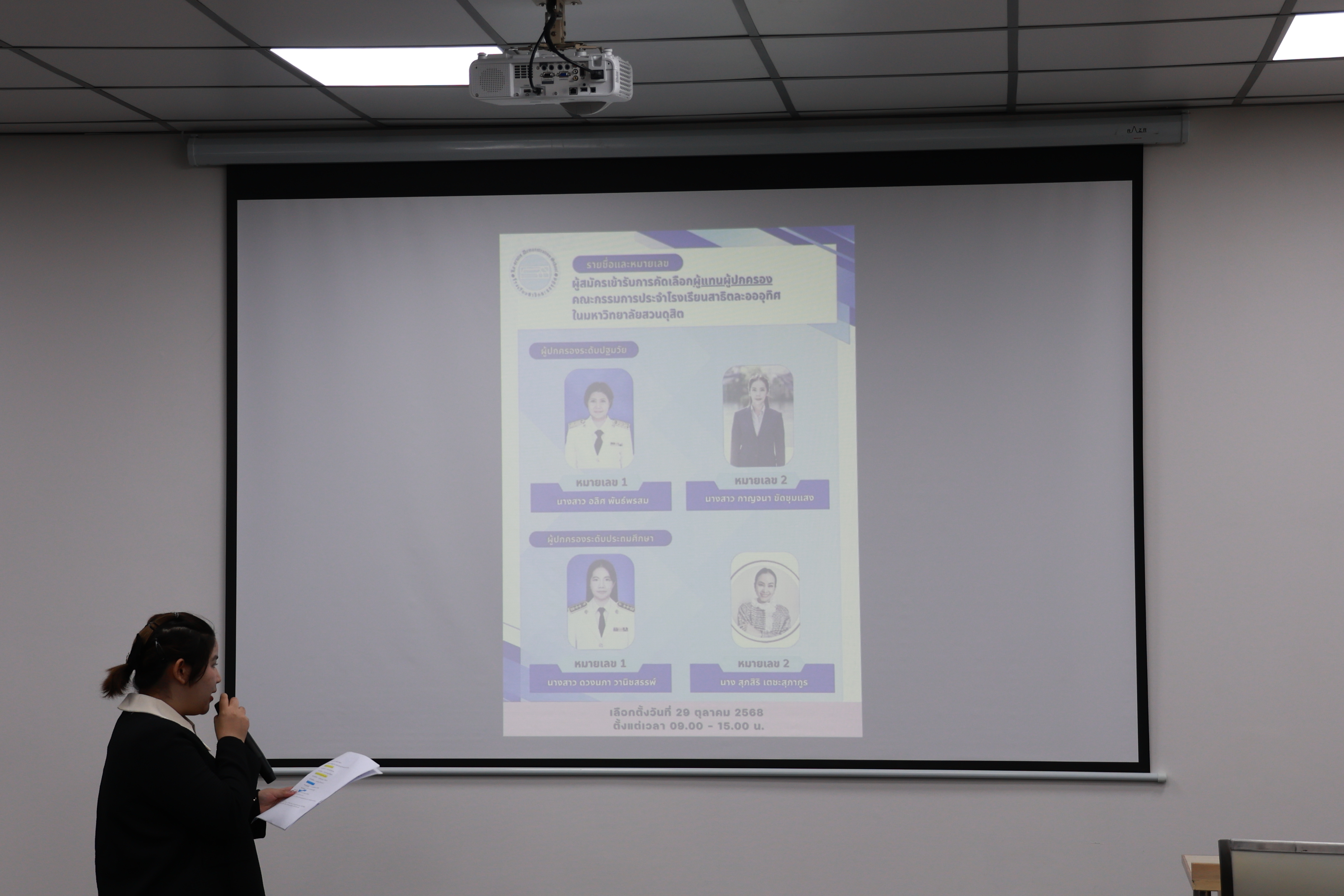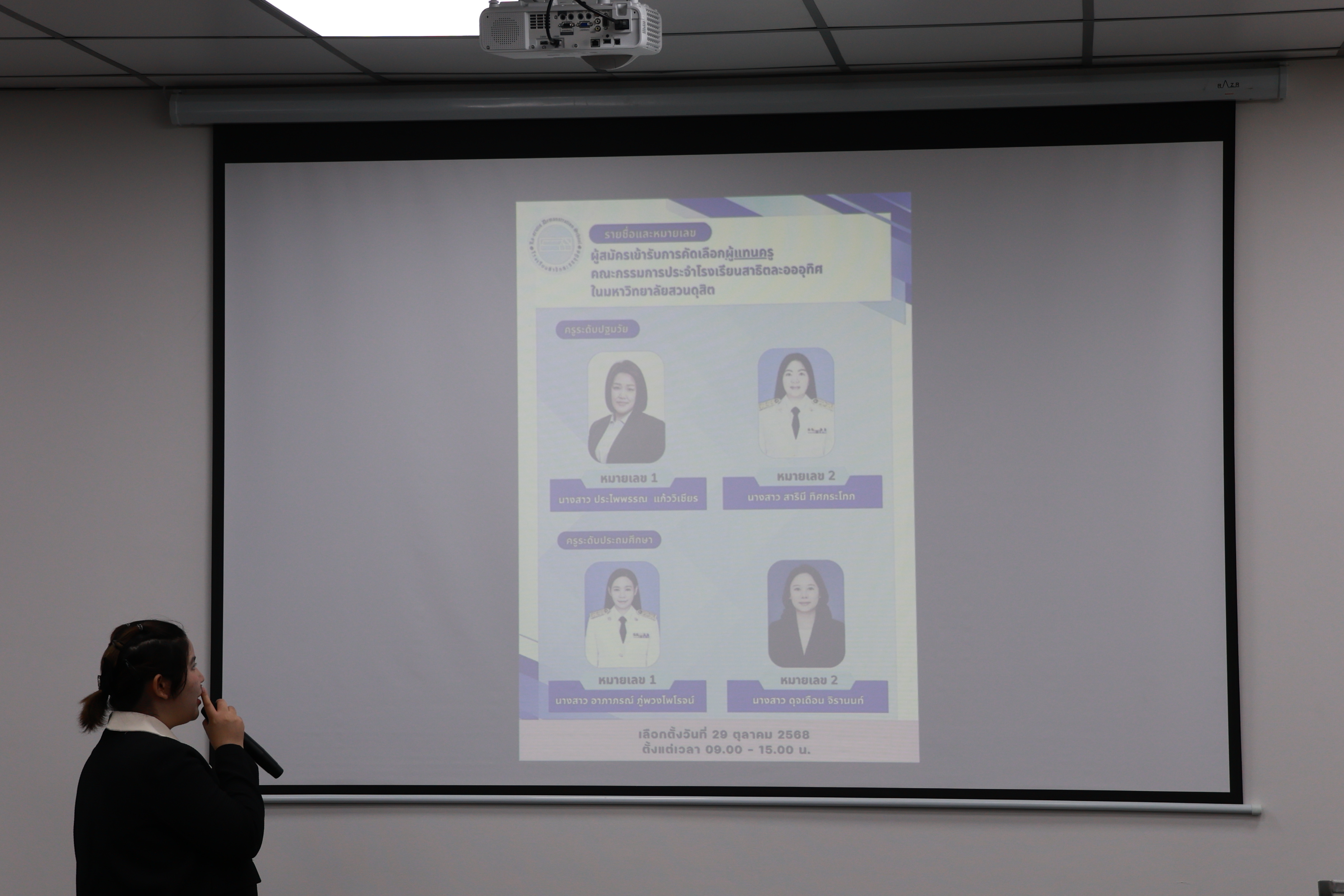 สำนักงานอำนวยการโรงเรียนสาธิตละอออุทิศ มหาวิทยาลัยสวนดุสิต จัดการคัดเลือกผู้แทนผู้ปกครอง และผู้แทนครู คณะกรรมการประจำโรงเรียนสาธิตละอออุทิศ ในมหาวิทยาลัยสวนดุสิต ณ ห้องคอมพิวเตอร์ Lab ชั้น 5 โรงแรมสวนดุสิต เพลส เมื่อวันที่ 29 ตุลาคม 2568