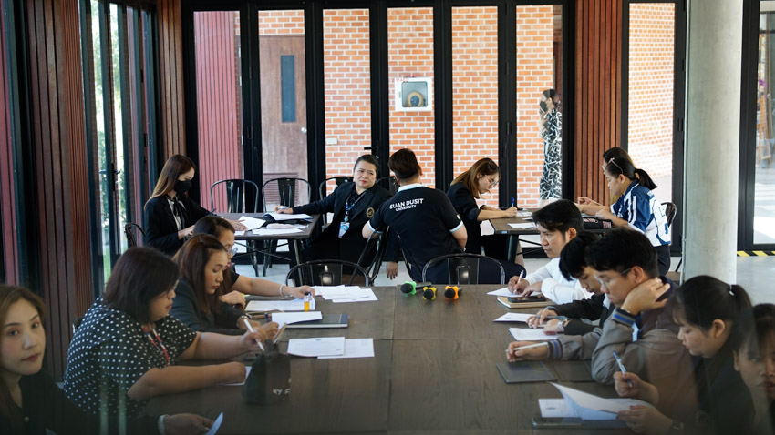 กองบริการนักศึกษา มหาวิทยาลัยสวนดุสิต วิทยาเขตสุพรรณบุรี นำโดย ดร.วิณาภรณ์ แตงจุ้ย ผู้อำนวยการกองบริการนักศึกษา ผู้บริหาร คณาจารย์ และบุคลากรในส่วนงานที่เกี่ยวข้อง จัดประชุมการเตรียมความพร้อมการจัดโครงการ Open House Suan Dusit Suphanburi Campus 2026-2027 เพื่อติดตามการเตรียมความพร้อมของกิจกรรมในส่วนงานต่างๆ ในวันพุธที่ 29 ตุลาคม 2568 เวลา 10.30-12.00 น. ณ อาคารศูนย์การเรียนรู้ระบบใหม่โดยใช้เทคโนโลยีเป็นสื่อ (SDU Library) ชั้น 1 โซนกลาง มหาวิทยาลัยสวนดุสิต วิทยาเขตสุพรรณบุรี และผ่านระบบ Online โปรแกรม Zoom Meeting