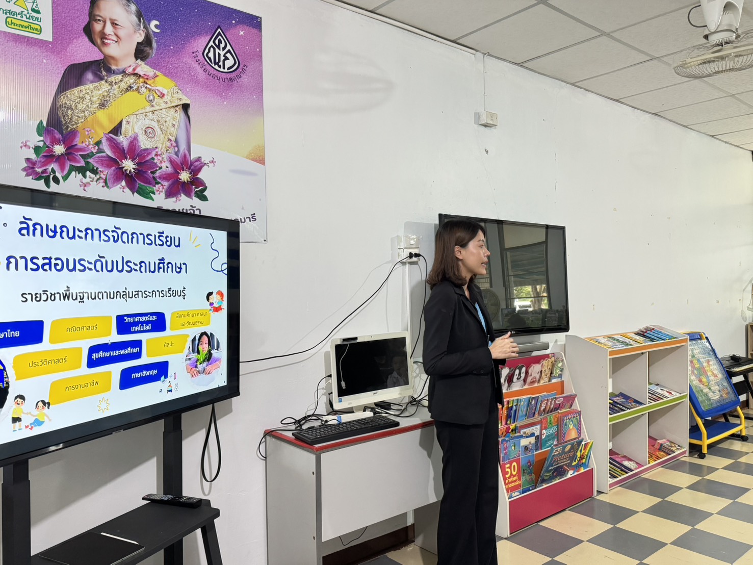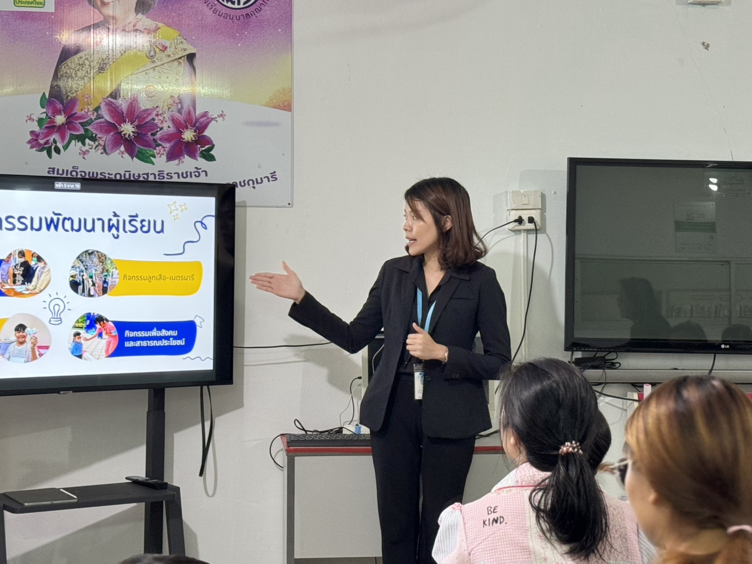 เมื่อวันที่ 28 ตุลาคม 2568 เวลา 14.30 – 15.10 น. โรงเรียนสาธิตละอออุทิศ นครนายก ได้จัดกิจกรรมแนะแนวหลักสูตรระดับประถมศึกษา ณ โรงเรียนอนุบาลคุณากรในพระราชูปถัมภ์ฯ จังหวัดนครนายก เพื่อประชาสัมพันธ์แนวทางการจัดการเรียนการสอนและสร้างความเข้าใจเกี่ยวกับรูปแบบการเรียนรู้ของโรงเรียนช ในการนี้ นางสาวชมพูนุท ทองภู ครูใหญ่โรงเรียนสาธิตละอออุทิศ นครนายก พร้อมด้วยคณะตัวแทนคุณครู ได้ร่วมให้ข้อมูลเกี่ยวกับหลักสูตรและนวัตกรรมการเรียนรู้ของโรงเรียน พร้อมเปิด วิดิทัศน์แนะนำโรงเรียนและศูนย์การเรียนรู้ Long KID DO เพื่อให้ผู้เข้าร่วมได้รับชมบรรยากาศและแนวคิดการจัดการเรียนรู้เชิงสร้างสรรค์