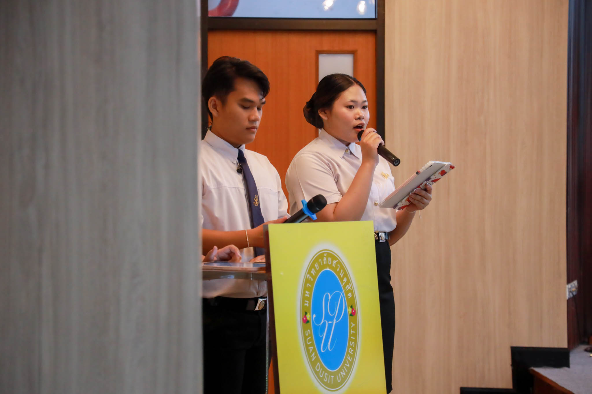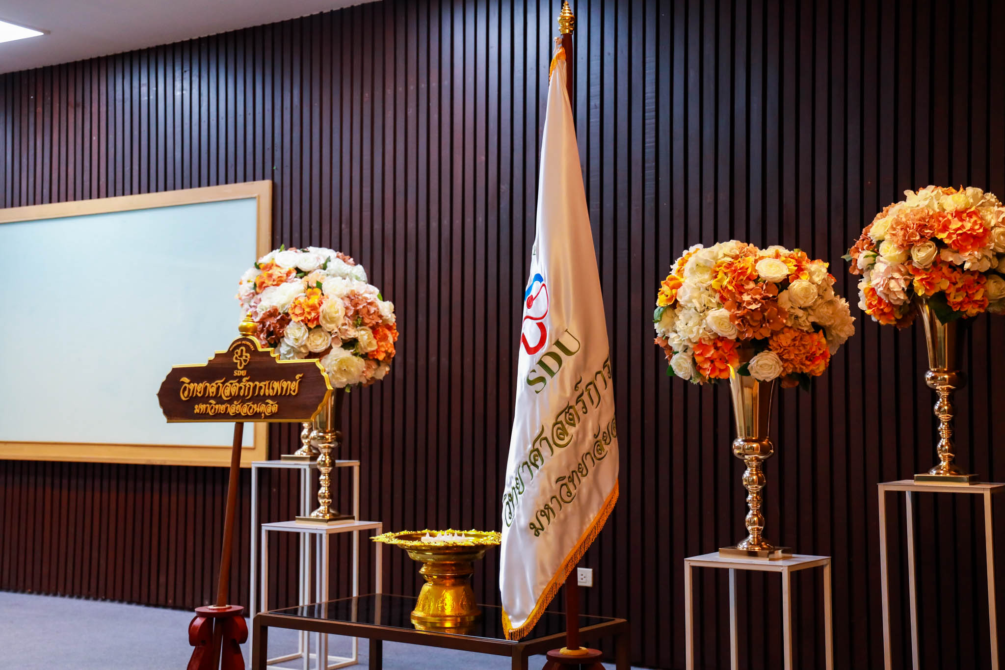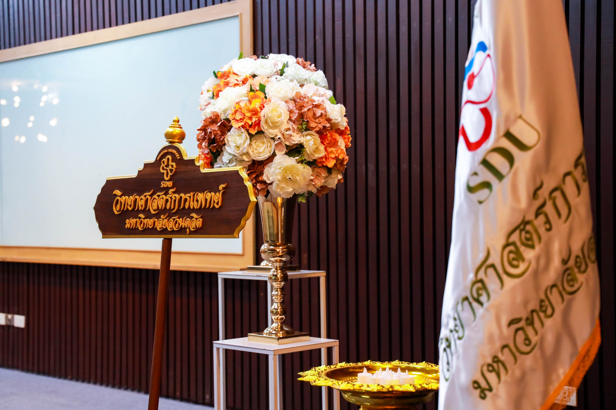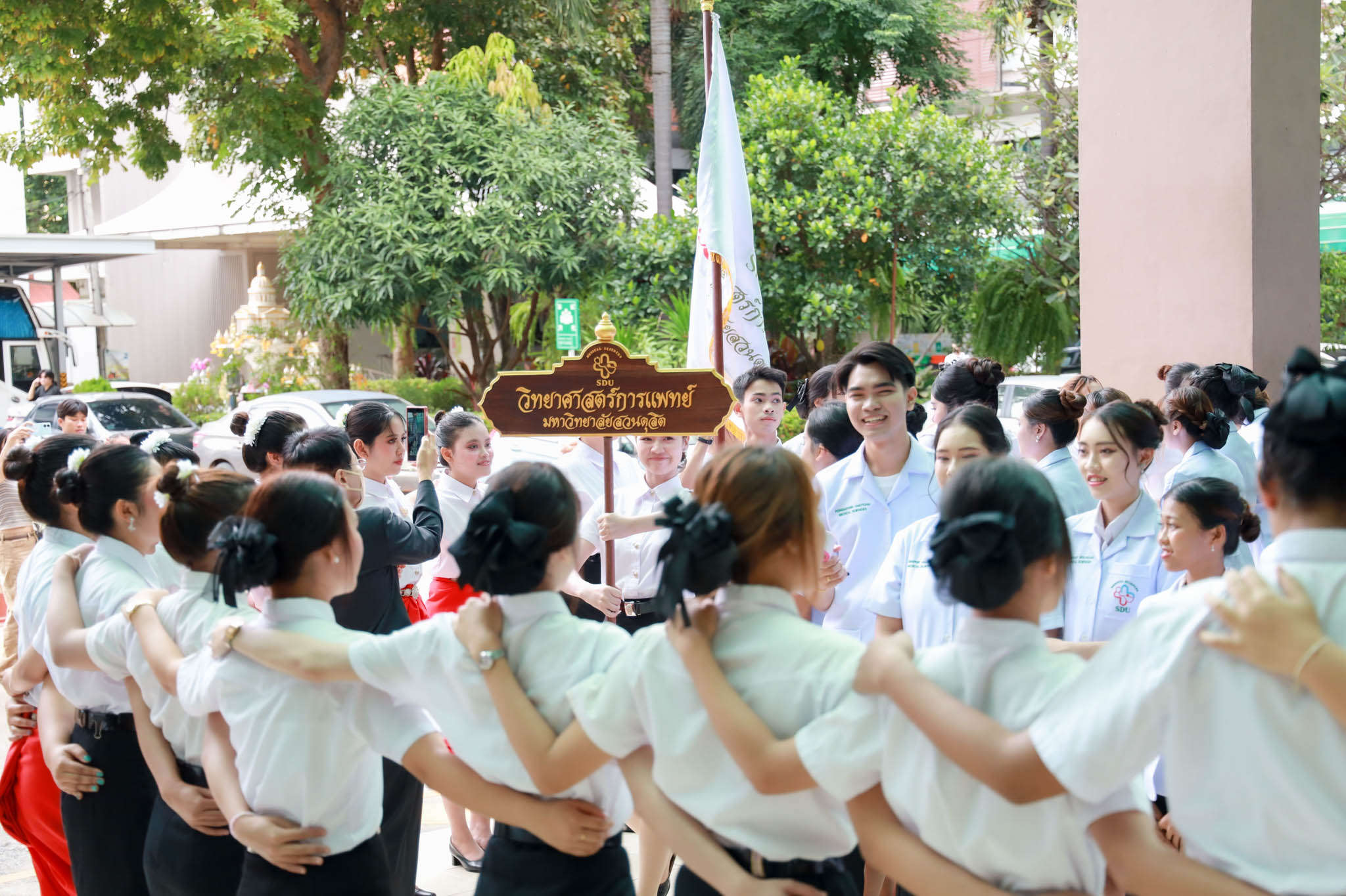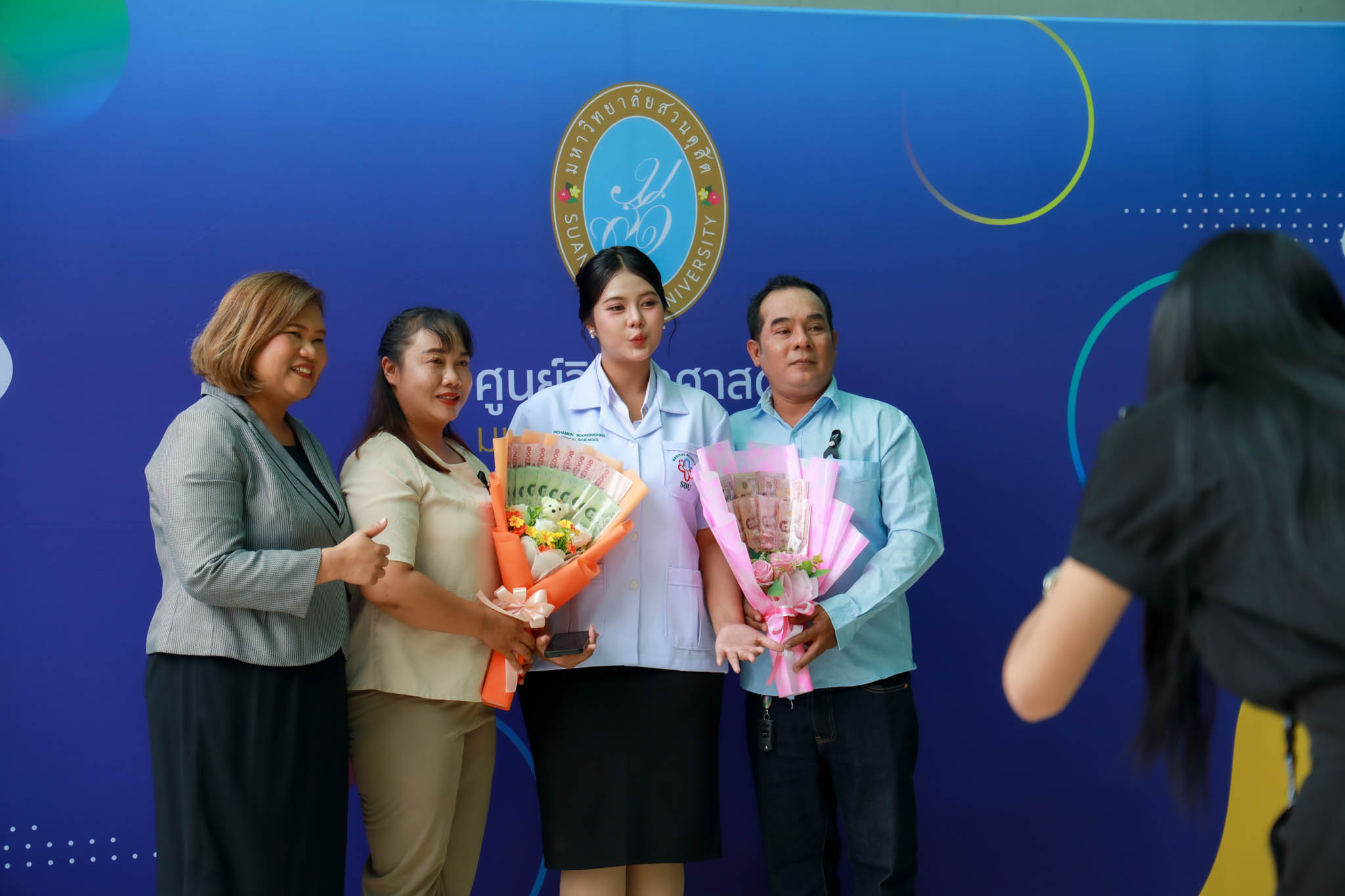 คณะวิทยาศาสตร์และเทคโนโลยี มหาวิทยาลัยสวนดุสิต จัดพิธีมอบเสื้อกาวน์ สำหรับนักศึกษาหลักสูตรวิทยาศาสตร์การแพทย์ แก่นักศึกษาชั้นปีที่ 2/2567 เมื่อวันที่ 30 ตุลาคม 2568 ณ Hall 2 ชั้น 2 อาคารเฉลิมพระเกียรติ 50 พรรษา มหาวชิราลงกรณ ศูนย์วิทยาศาสตร์ มหาวิทยาลัยสวนดุสิต โดยได้รับเกียรติจาก ผู้ช่วยศาสตราจารย์ ดร. ฐิตินาถ สุคนเขตร์ คณบดีคณะวิทยาศาสตร์และเทคโนโลยี เป็นประธานในพิธีและให้โอวาทแก่นักศึกษา ร่วมด้วย ผู้ช่วยศาสตราจารย์ ดร. ยุทธนา พิมพ์ทองงาม ประธานหลักสูตรวิทยาศาสตร์การแพทย์ และคณาจารย์ประจำหลักสูตรเข้าร่วมแสดงความยินดี พิธีดังกล่าวจัดขึ้นเพื่อแสดงถึงการก้าวเข้าสู่เส้นทางแห่งวิชาชีพด้านวิทยาศาสตร์การแพทย์อย่างภาคภูมิ และปลูกฝังจิตสำนึกแห่งความรับผิดชอบในวิชาชีพแก่นักศึกษา ภายในงานมีการกล่าวความรู้สึกโดยประธานรุ่น และการกล่าวคำปฏิญาณโดยรองประธานรุ่น เพื่อแสดงเจตนารมณ์แห่งความมุ่งมั่นในวิชาชีพ ก่อนปิดท้ายด้วยกิจกรรมรุ่นน้องบูมให้รุ่นพี่บริเวณหน้าตึกพยาบาล ท่ามกลางบรรยากาศอบอุ่นและเปี่ยมด้วยความภาคภูมิใจ
