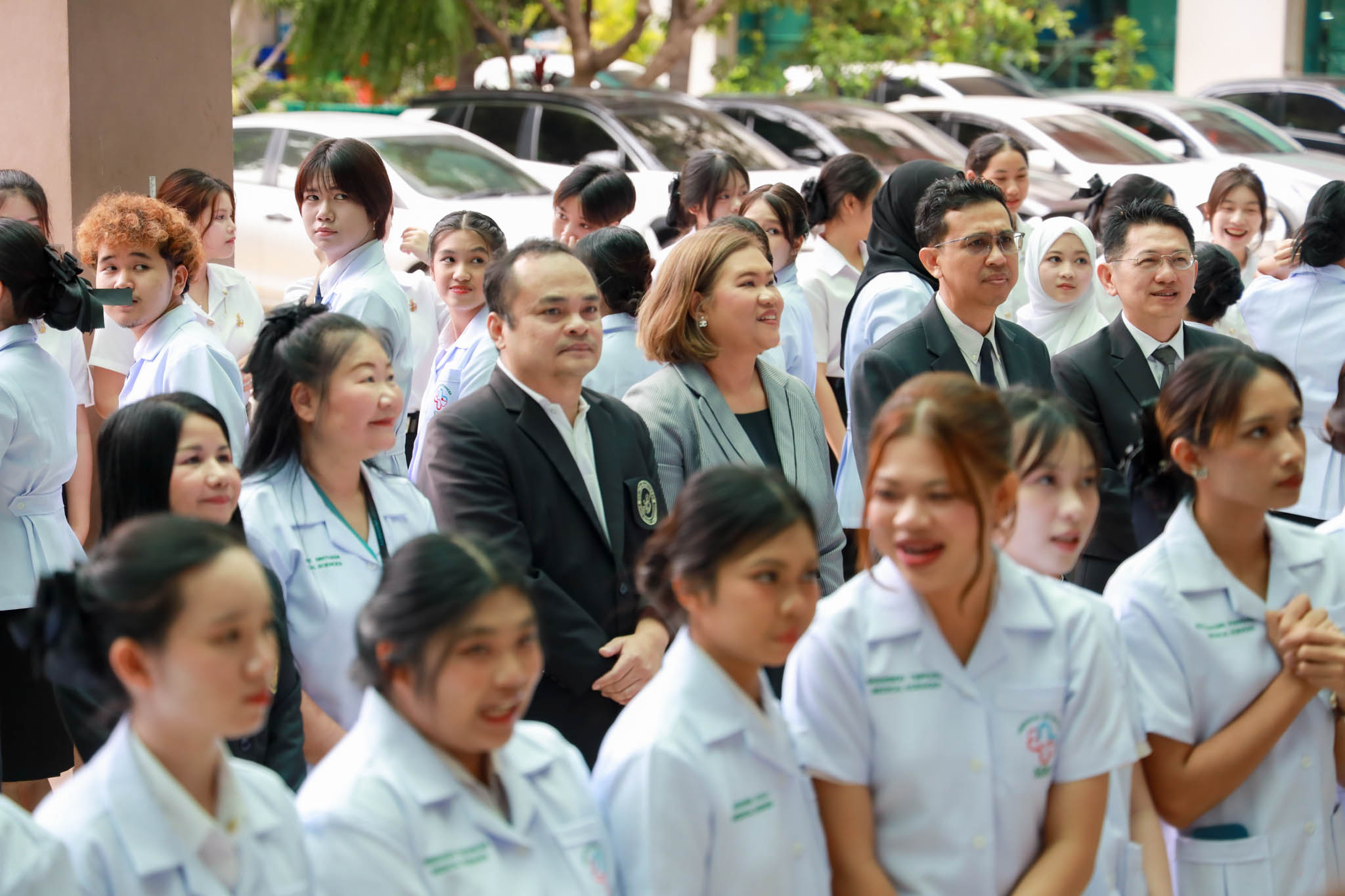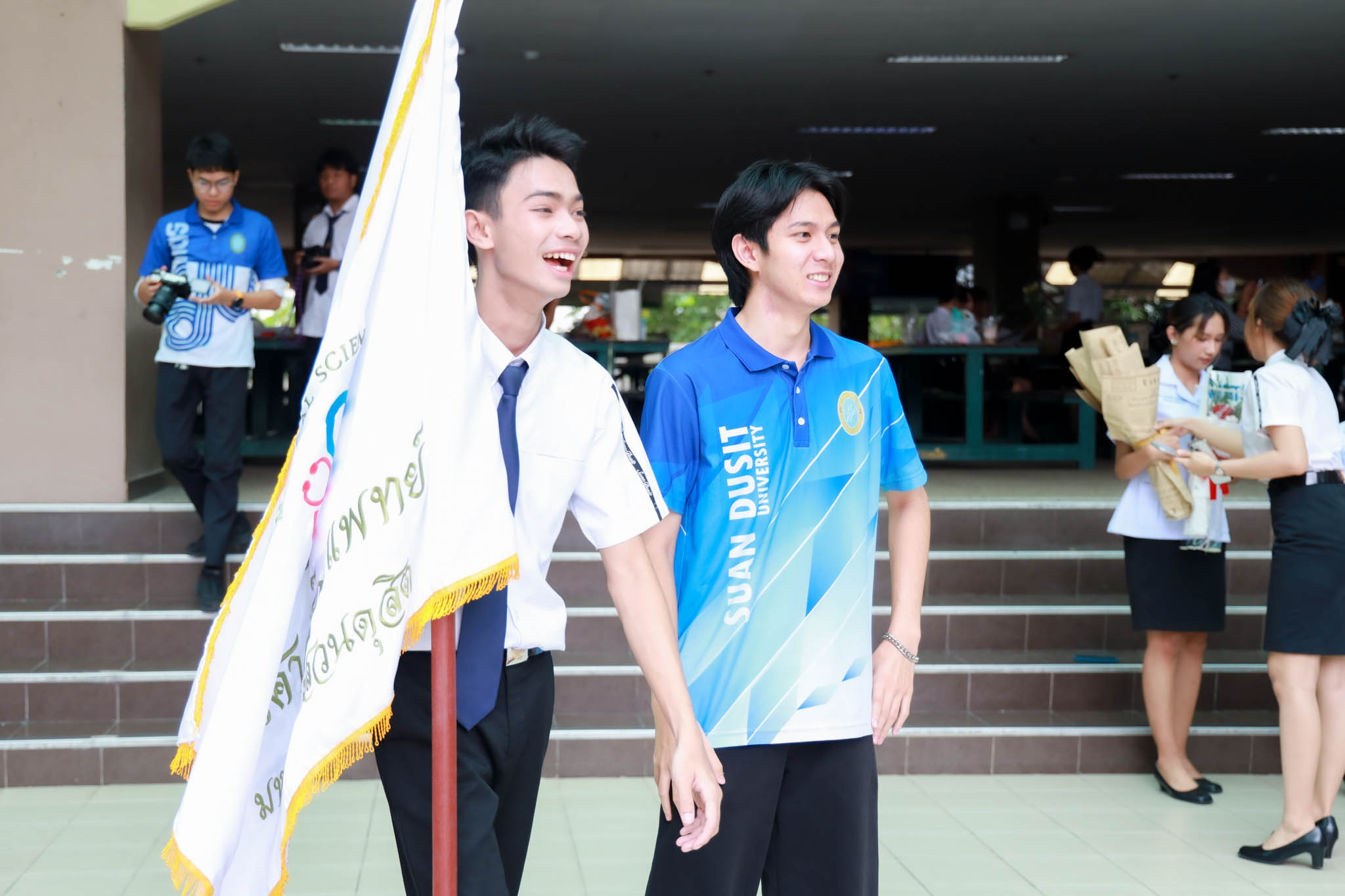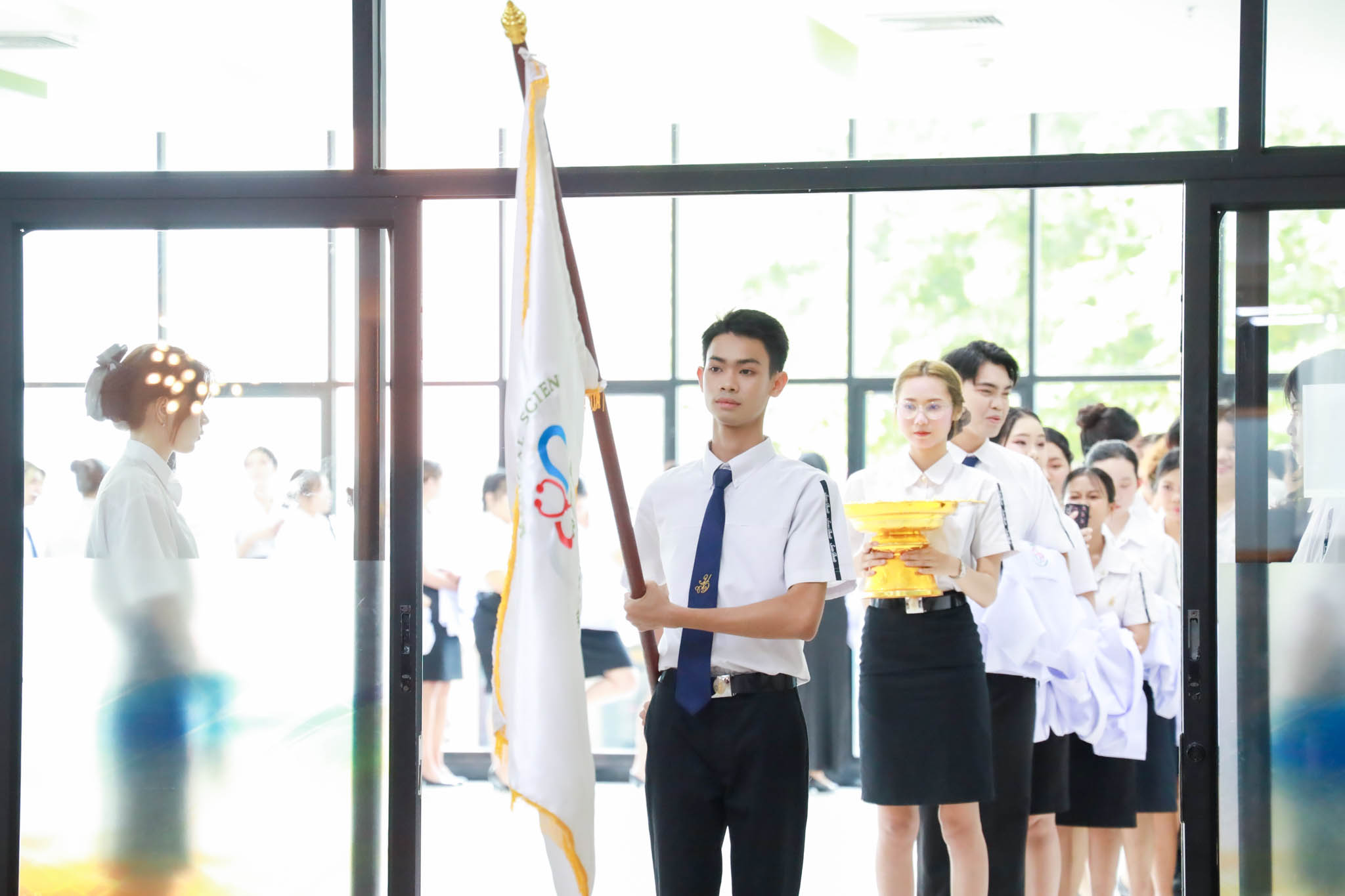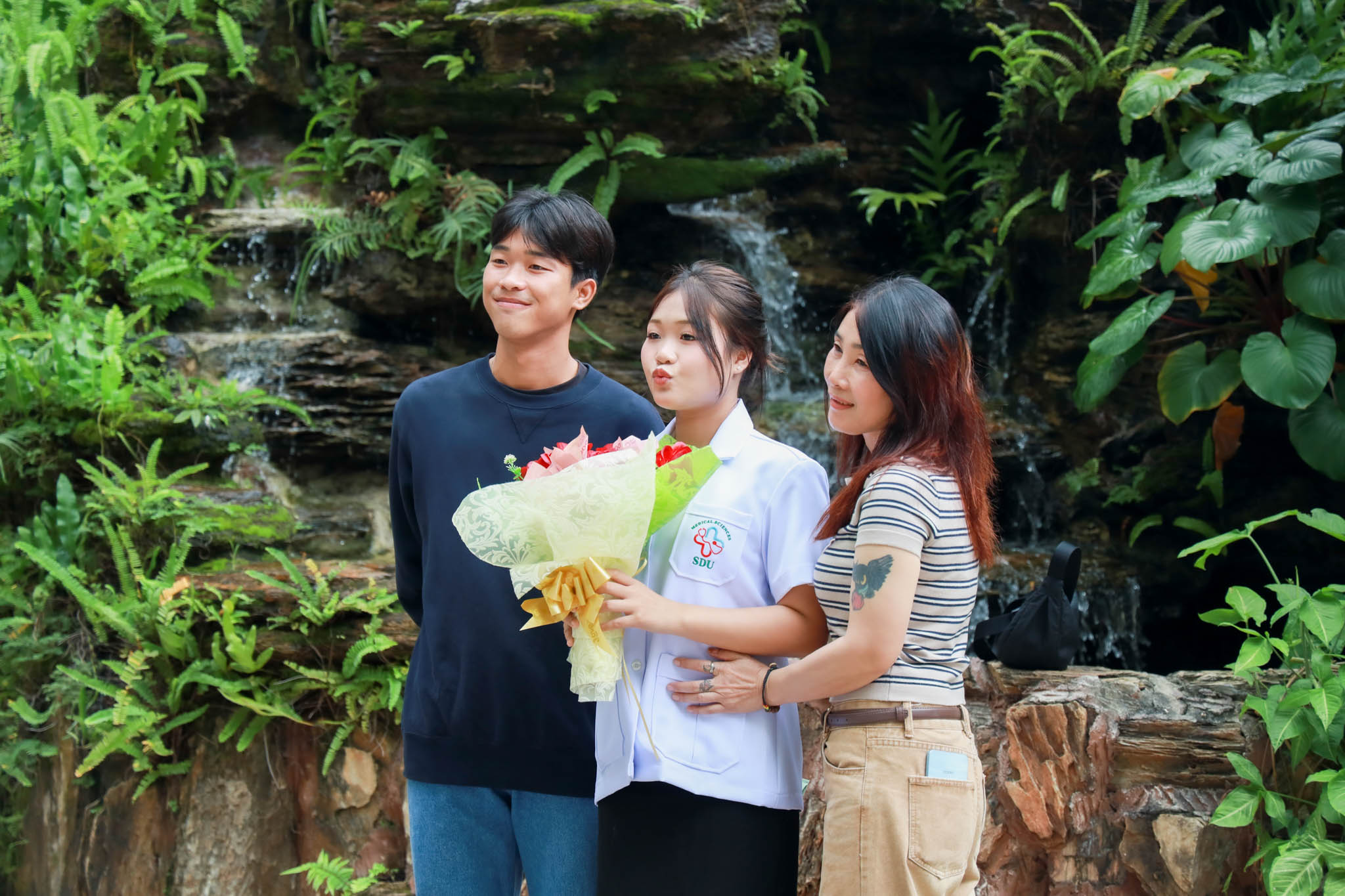 คณะวิทยาศาสตร์และเทคโนโลยี มหาวิทยาลัยสวนดุสิต จัดพิธีมอบเสื้อกาวน์ สำหรับนักศึกษาหลักสูตรวิทยาศาสตร์การแพทย์ แก่นักศึกษาชั้นปีที่ 2/2567 เมื่อวันที่ 30 ตุลาคม 2568 ณ Hall 2 ชั้น 2 อาคารเฉลิมพระเกียรติ 50 พรรษา มหาวชิราลงกรณ ศูนย์วิทยาศาสตร์ มหาวิทยาลัยสวนดุสิต โดยได้รับเกียรติจาก ผู้ช่วยศาสตราจารย์ ดร. ฐิตินาถ สุคนเขตร์ คณบดีคณะวิทยาศาสตร์และเทคโนโลยี เป็นประธานในพิธีและให้โอวาทแก่นักศึกษา ร่วมด้วย ผู้ช่วยศาสตราจารย์ ดร. ยุทธนา พิมพ์ทองงาม ประธานหลักสูตรวิทยาศาสตร์การแพทย์ และคณาจารย์ประจำหลักสูตรเข้าร่วมแสดงความยินดี พิธีดังกล่าวจัดขึ้นเพื่อแสดงถึงการก้าวเข้าสู่เส้นทางแห่งวิชาชีพด้านวิทยาศาสตร์การแพทย์อย่างภาคภูมิ และปลูกฝังจิตสำนึกแห่งความรับผิดชอบในวิชาชีพแก่นักศึกษา ภายในงานมีการกล่าวความรู้สึกโดยประธานรุ่น และการกล่าวคำปฏิญาณโดยรองประธานรุ่น เพื่อแสดงเจตนารมณ์แห่งความมุ่งมั่นในวิชาชีพ ก่อนปิดท้ายด้วยกิจกรรมรุ่นน้องบูมให้รุ่นพี่บริเวณหน้าตึกพยาบาล ท่ามกลางบรรยากาศอบอุ่นและเปี่ยมด้วยความภาคภูมิใจ