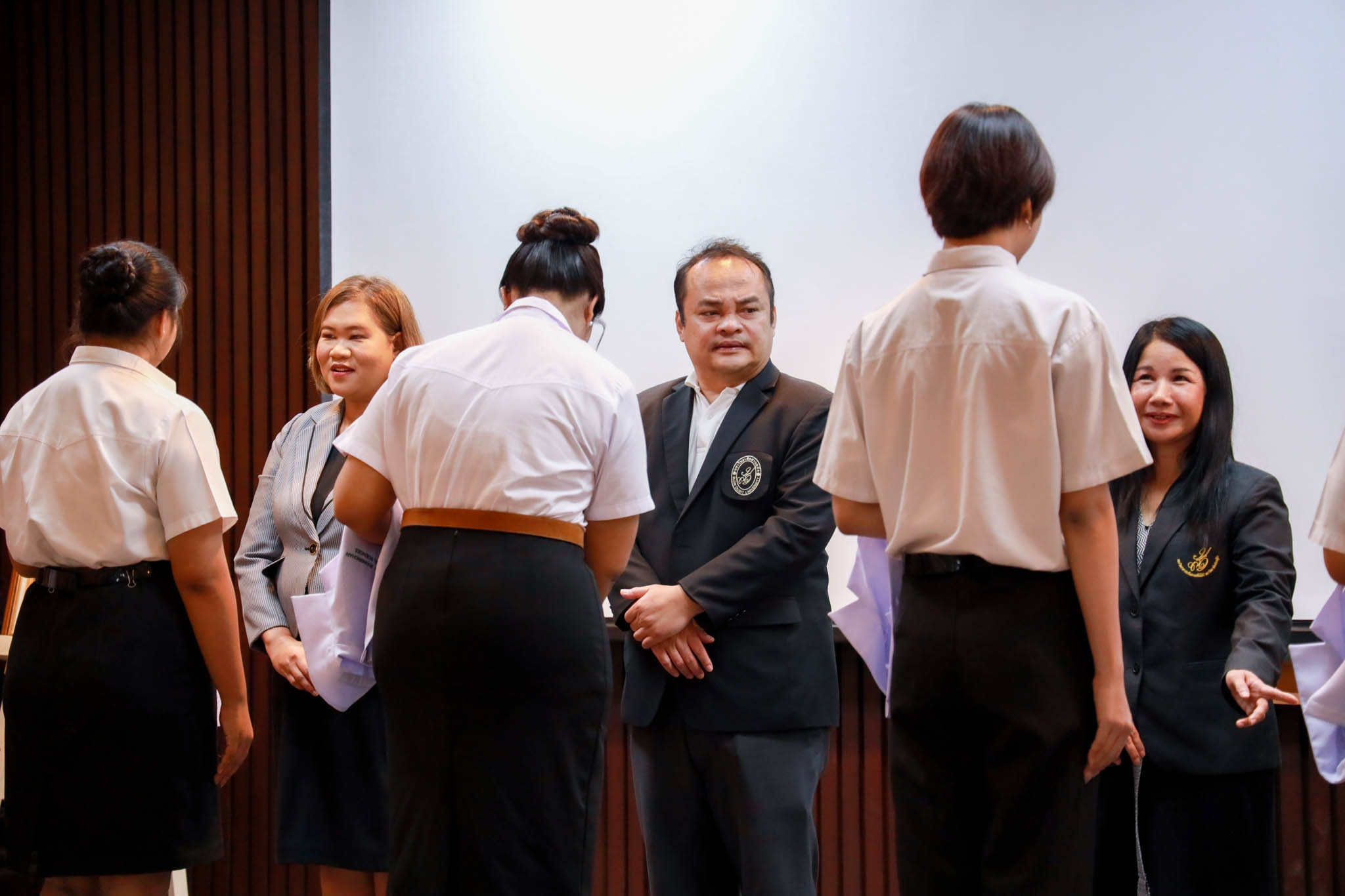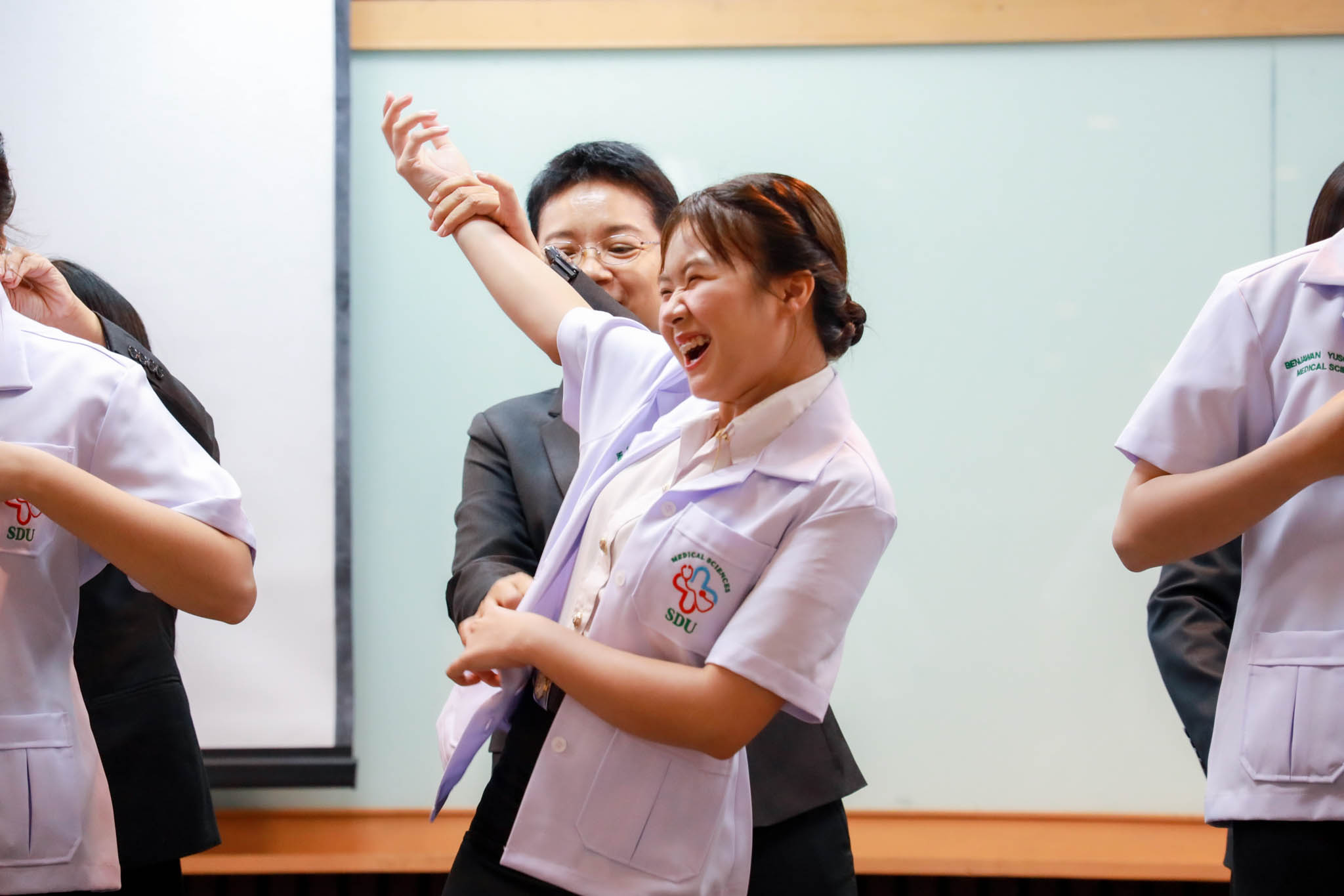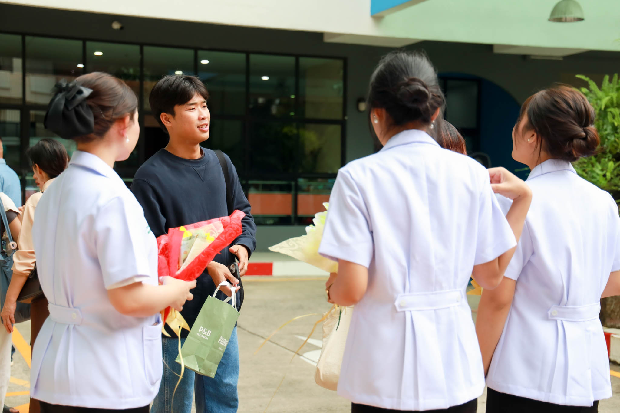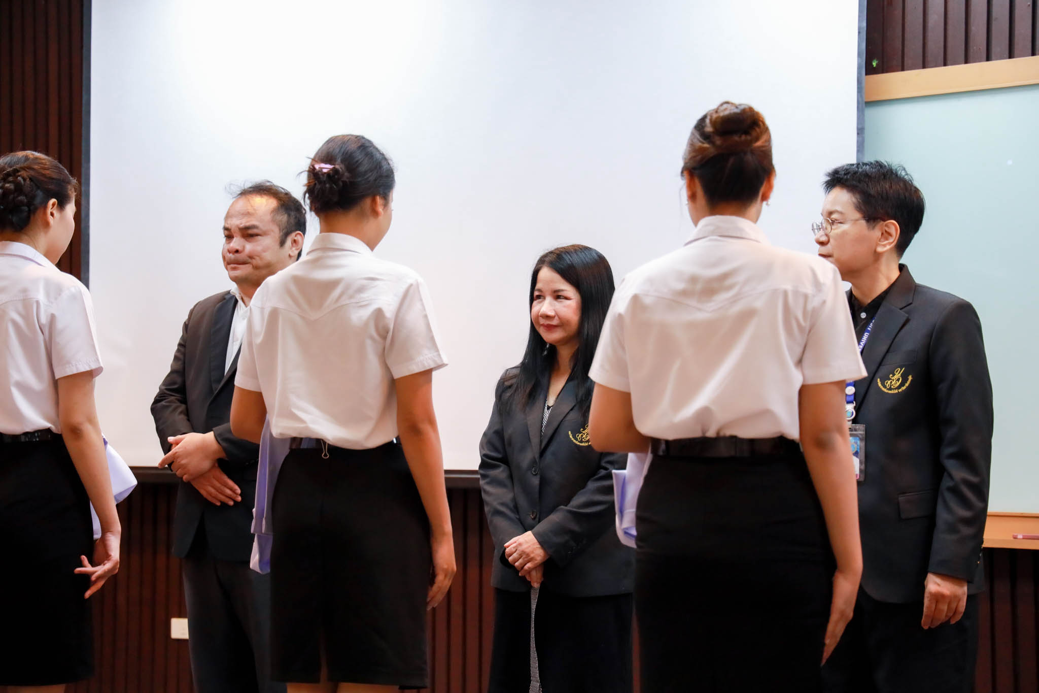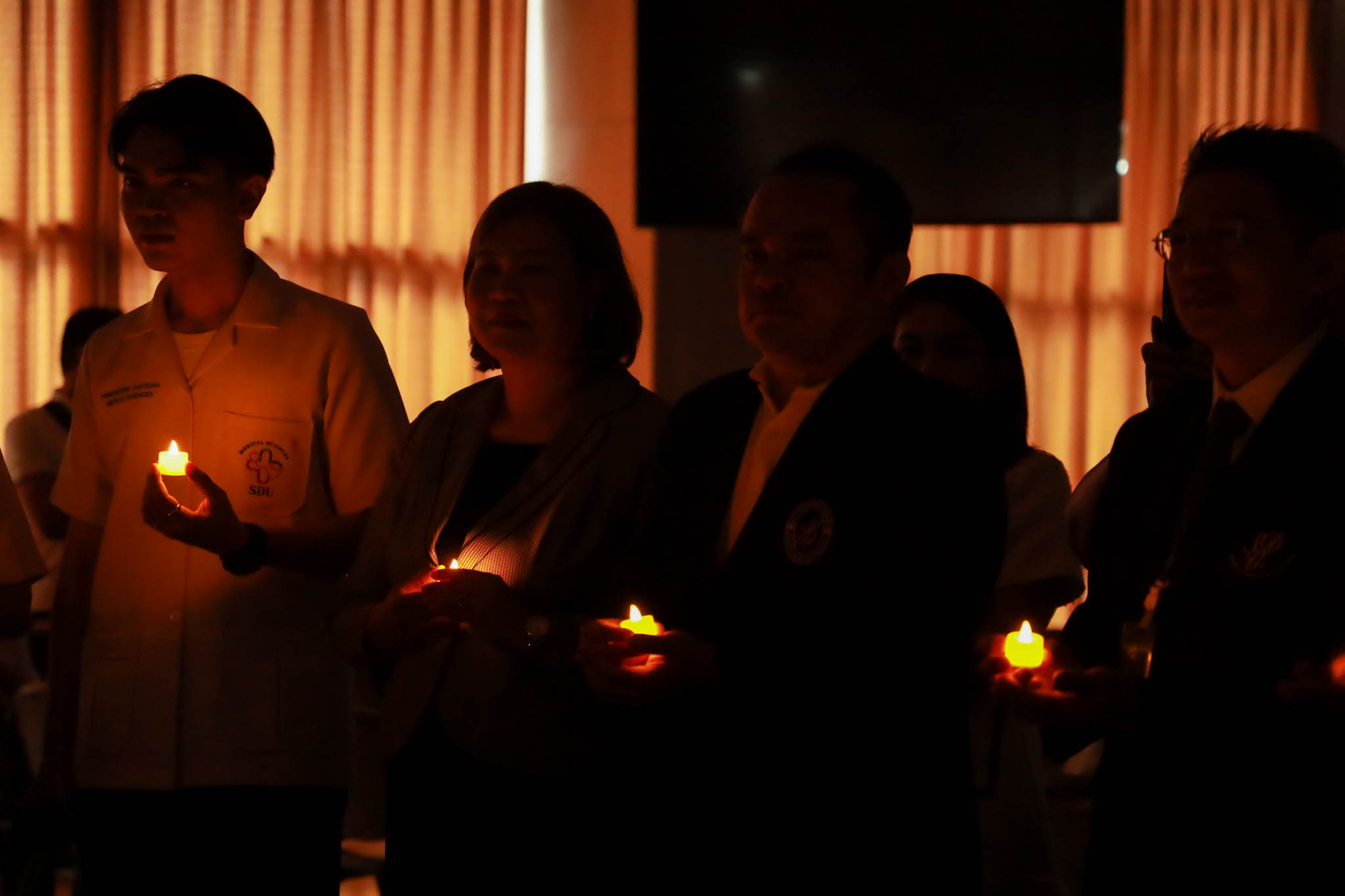 คณะวิทยาศาสตร์และเทคโนโลยี มหาวิทยาลัยสวนดุสิต จัดพิธีมอบเสื้อกาวน์ สำหรับนักศึกษาหลักสูตรวิทยาศาสตร์การแพทย์ แก่นักศึกษาชั้นปีที่ 2/2567 เมื่อวันที่ 30 ตุลาคม 2568 ณ Hall 2 ชั้น 2 อาคารเฉลิมพระเกียรติ 50 พรรษา มหาวชิราลงกรณ ศูนย์วิทยาศาสตร์ มหาวิทยาลัยสวนดุสิต โดยได้รับเกียรติจาก ผู้ช่วยศาสตราจารย์ ดร. ฐิตินาถ สุคนเขตร์ คณบดีคณะวิทยาศาสตร์และเทคโนโลยี เป็นประธานในพิธีและให้โอวาทแก่นักศึกษา ร่วมด้วย ผู้ช่วยศาสตราจารย์ ดร. ยุทธนา พิมพ์ทองงาม ประธานหลักสูตรวิทยาศาสตร์การแพทย์ และคณาจารย์ประจำหลักสูตรเข้าร่วมแสดงความยินดี พิธีดังกล่าวจัดขึ้นเพื่อแสดงถึงการก้าวเข้าสู่เส้นทางแห่งวิชาชีพด้านวิทยาศาสตร์การแพทย์อย่างภาคภูมิ และปลูกฝังจิตสำนึกแห่งความรับผิดชอบในวิชาชีพแก่นักศึกษา ภายในงานมีการกล่าวความรู้สึกโดยประธานรุ่น และการกล่าวคำปฏิญาณโดยรองประธานรุ่น เพื่อแสดงเจตนารมณ์แห่งความมุ่งมั่นในวิชาชีพ ก่อนปิดท้ายด้วยกิจกรรมรุ่นน้องบูมให้รุ่นพี่บริเวณหน้าตึกพยาบาล ท่ามกลางบรรยากาศอบอุ่นและเปี่ยมด้วยความภาคภูมิใจ
