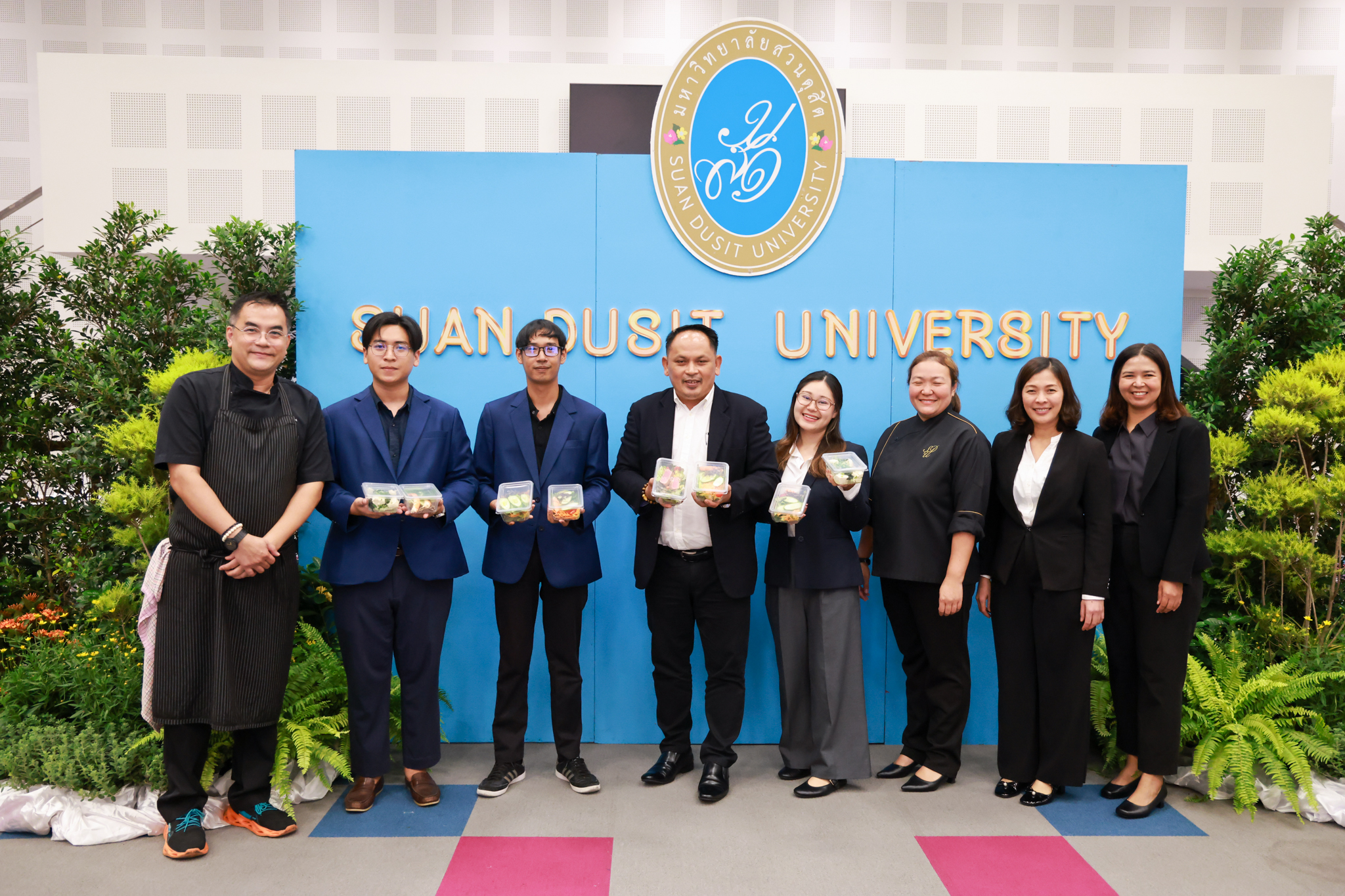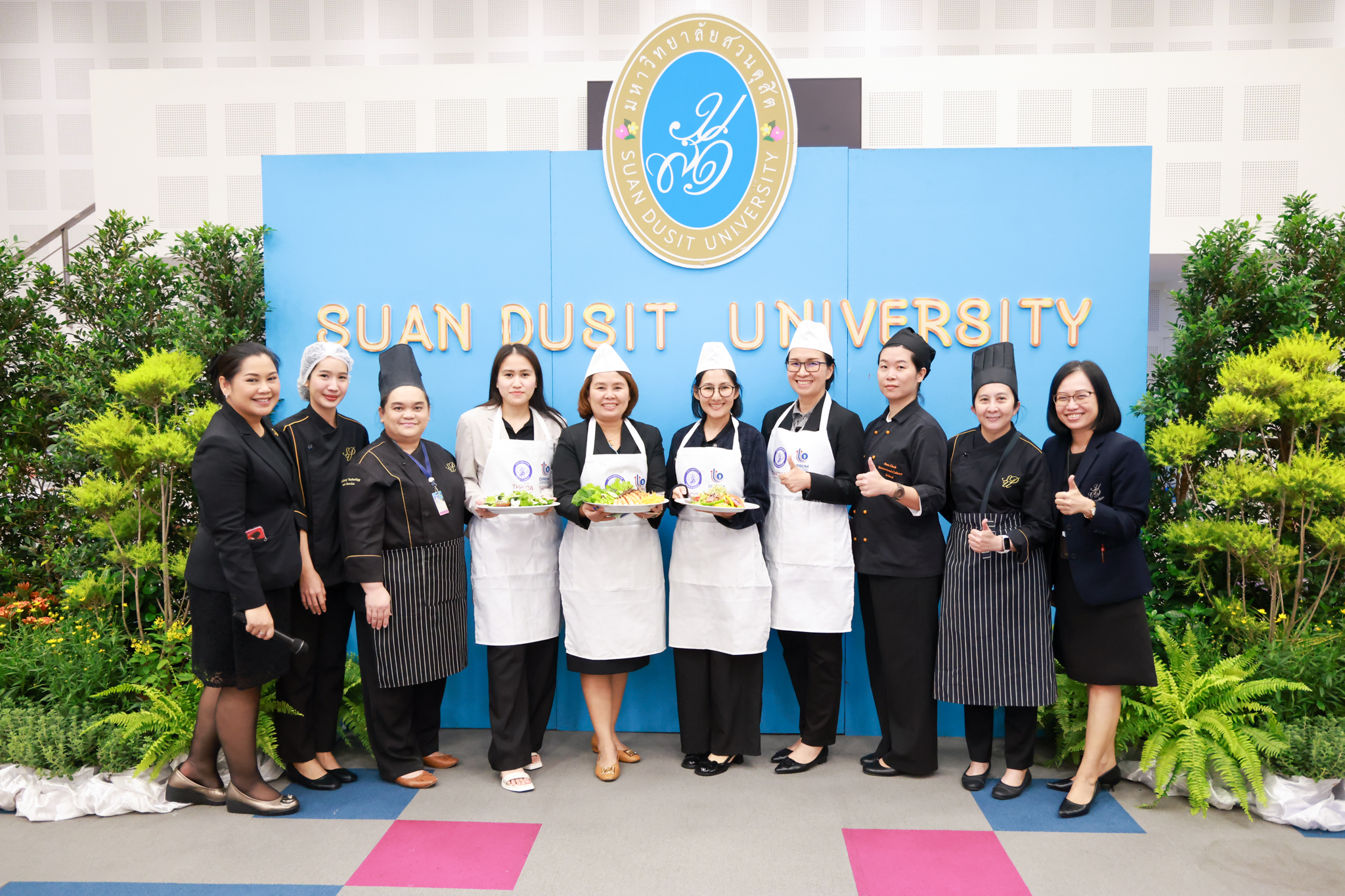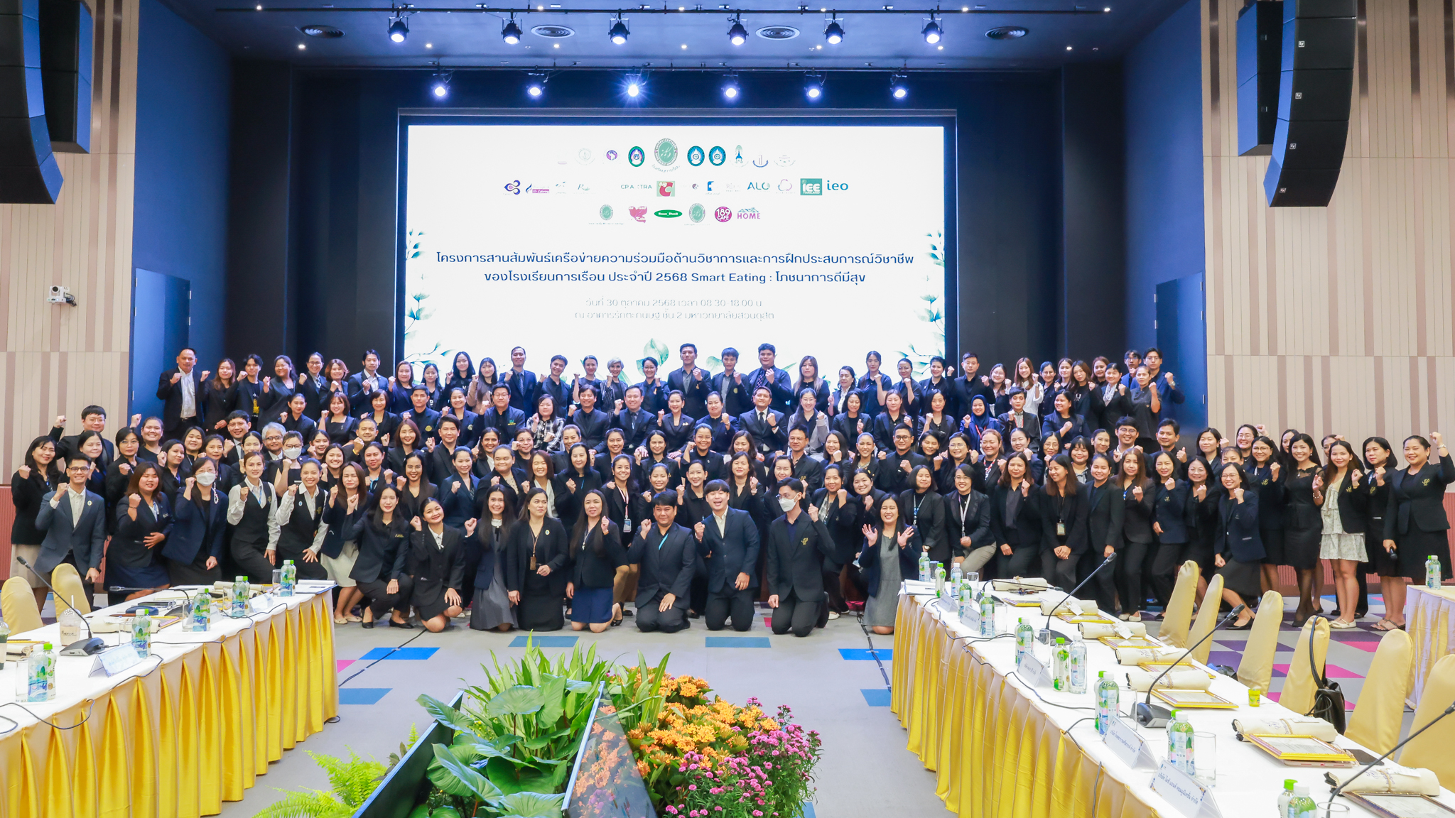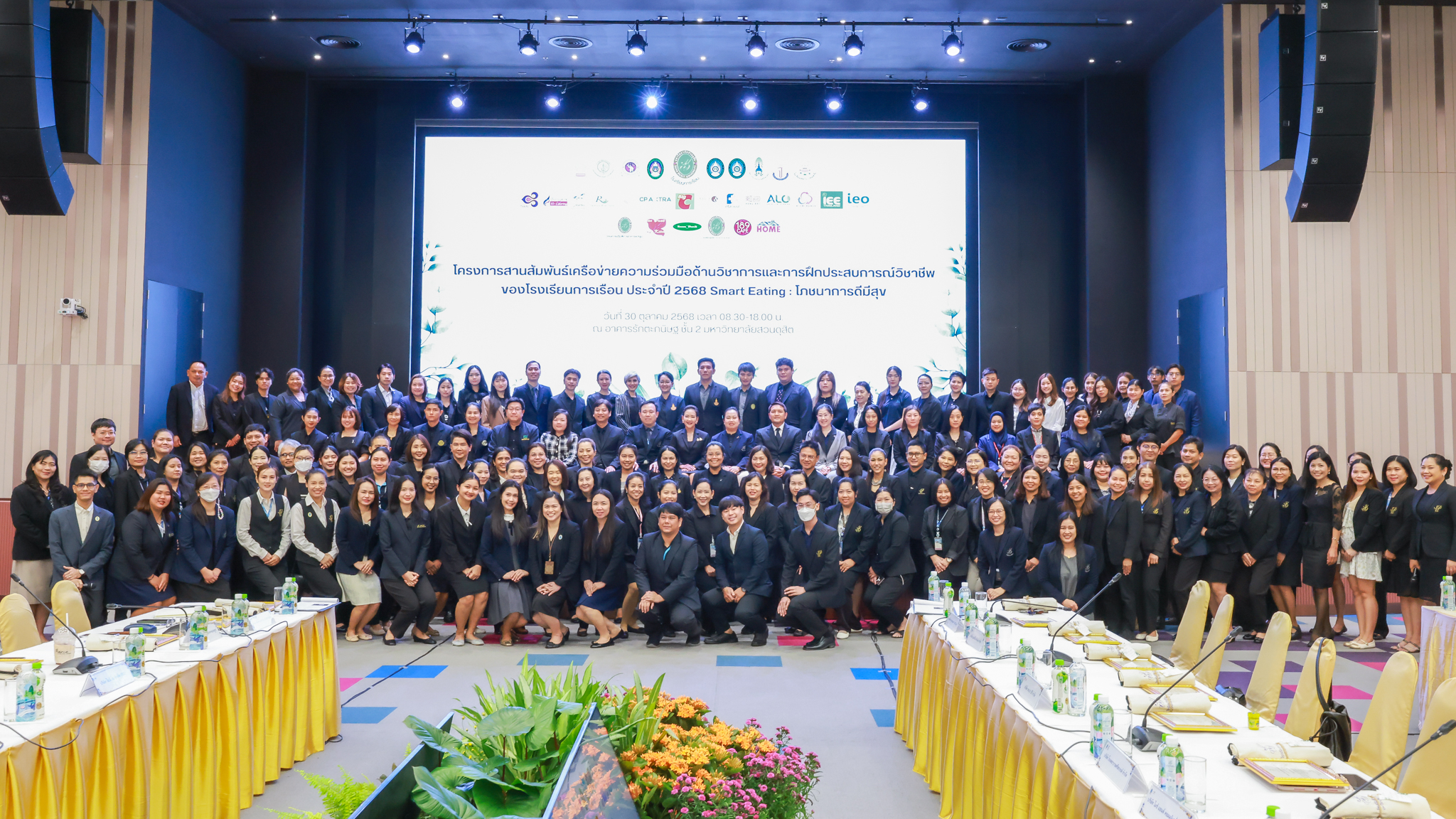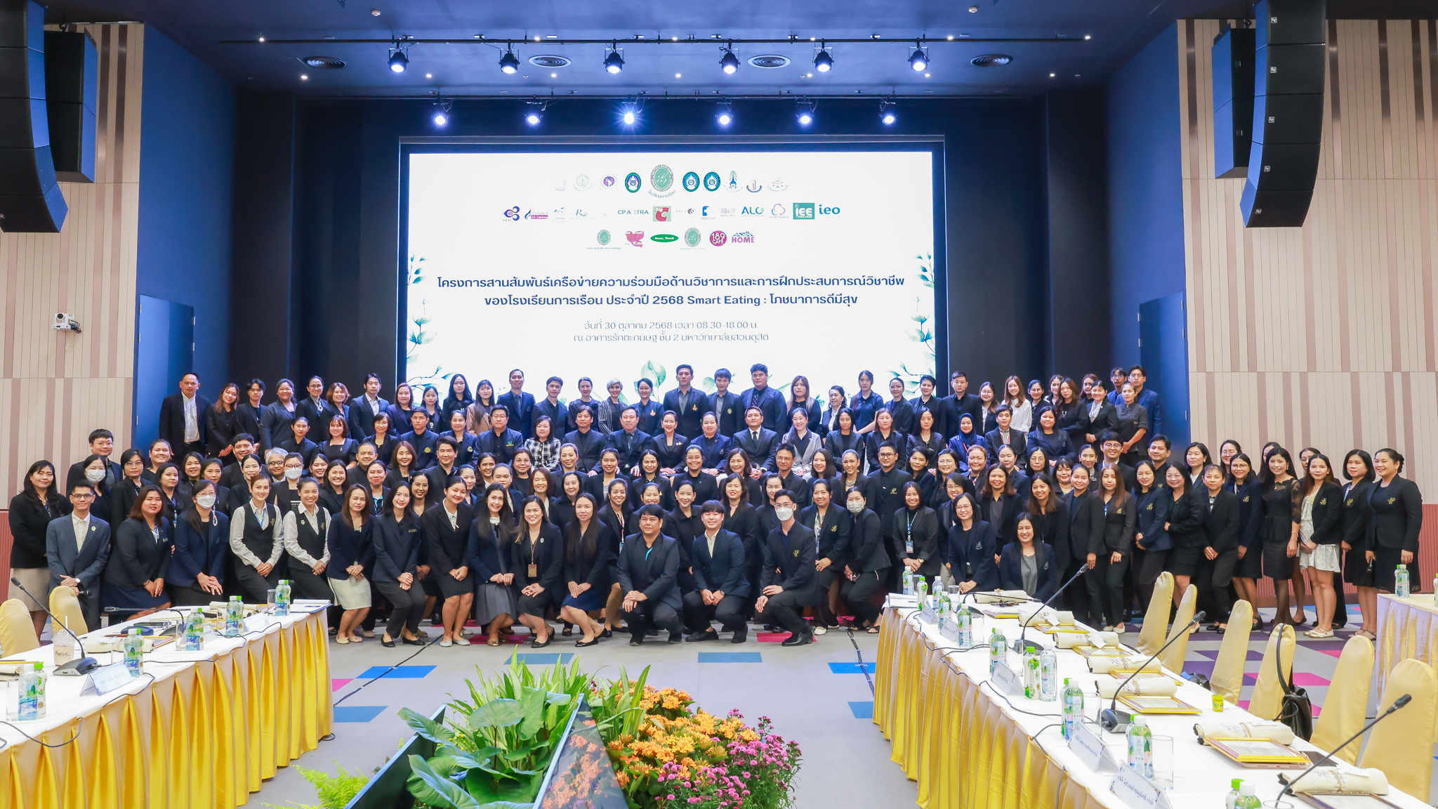 โรงเรียนการเรือน มหาวิทยาลัยสวนดุสิต จัดโครงการสานสัมพันธ์เครือข่ายความร่วมมือด้านวิชาการและการฝึกประสบการณ์วิชาชีพ โรงเรียนการเรือน ปี 2568 – Smart Eating: โภชนาการดีมีสุข โดยได้รับเกียรติจาก ผศ.ดร.พรชณิตว์ แก้วเนตร รองอธิการบดีฝ่ายวิชาการ และกิจการต่างประเทศ เป็นประธานในพิธีเปิดงาน ผศ.ว่าที่ ร.ต. ดร.ธนพัฒน์ แสงรุ่งเรือง คณบดีโรงเรียนการเรียน กล่าวรายงานวัตถุประสงค์การจัดโครงการและนำการประชุมแลกเปลี่ยนแนวทางในการประสานประโยชน์และพัฒนาความร่วมมือด้านวิชาการ และฝึกประสบการณ์วิชาชีพระหว่างโรงเรียนการเรียนและคู่ความร่วมมือ