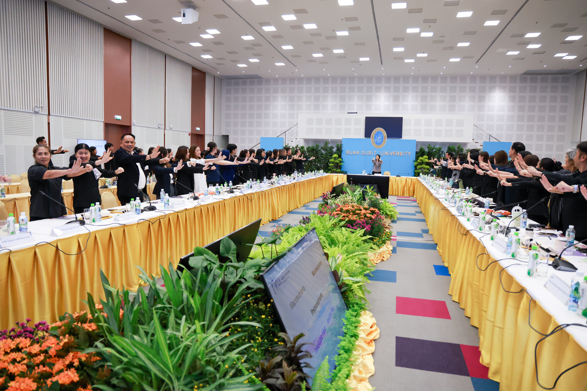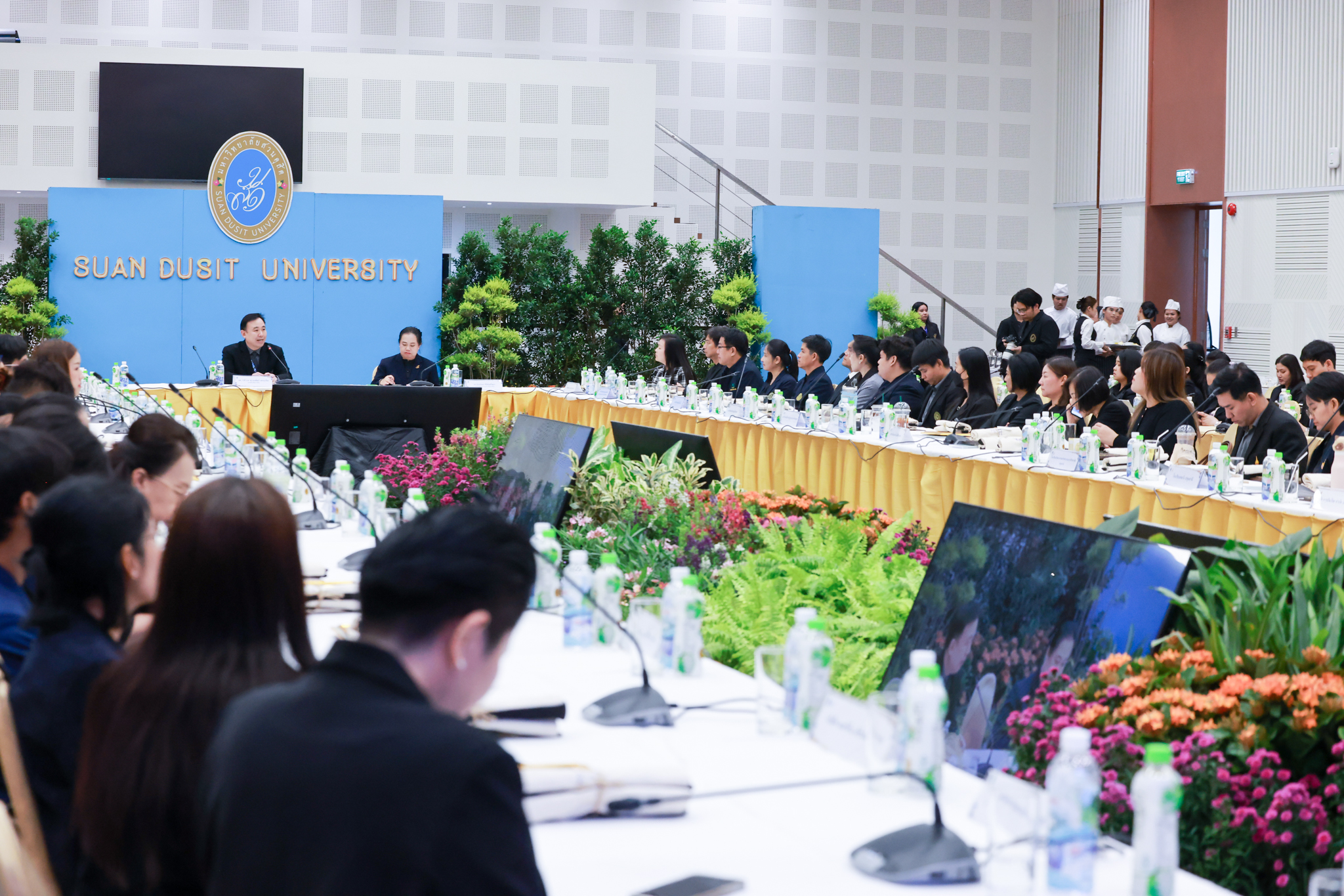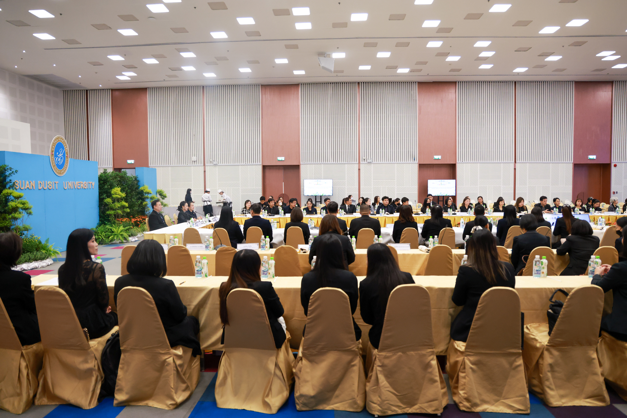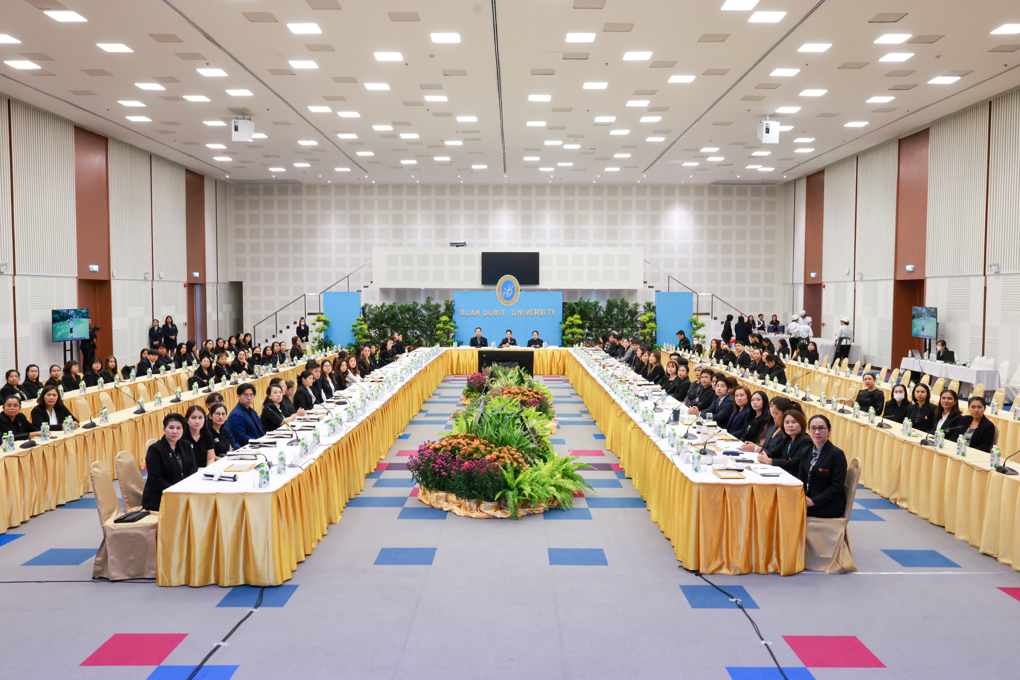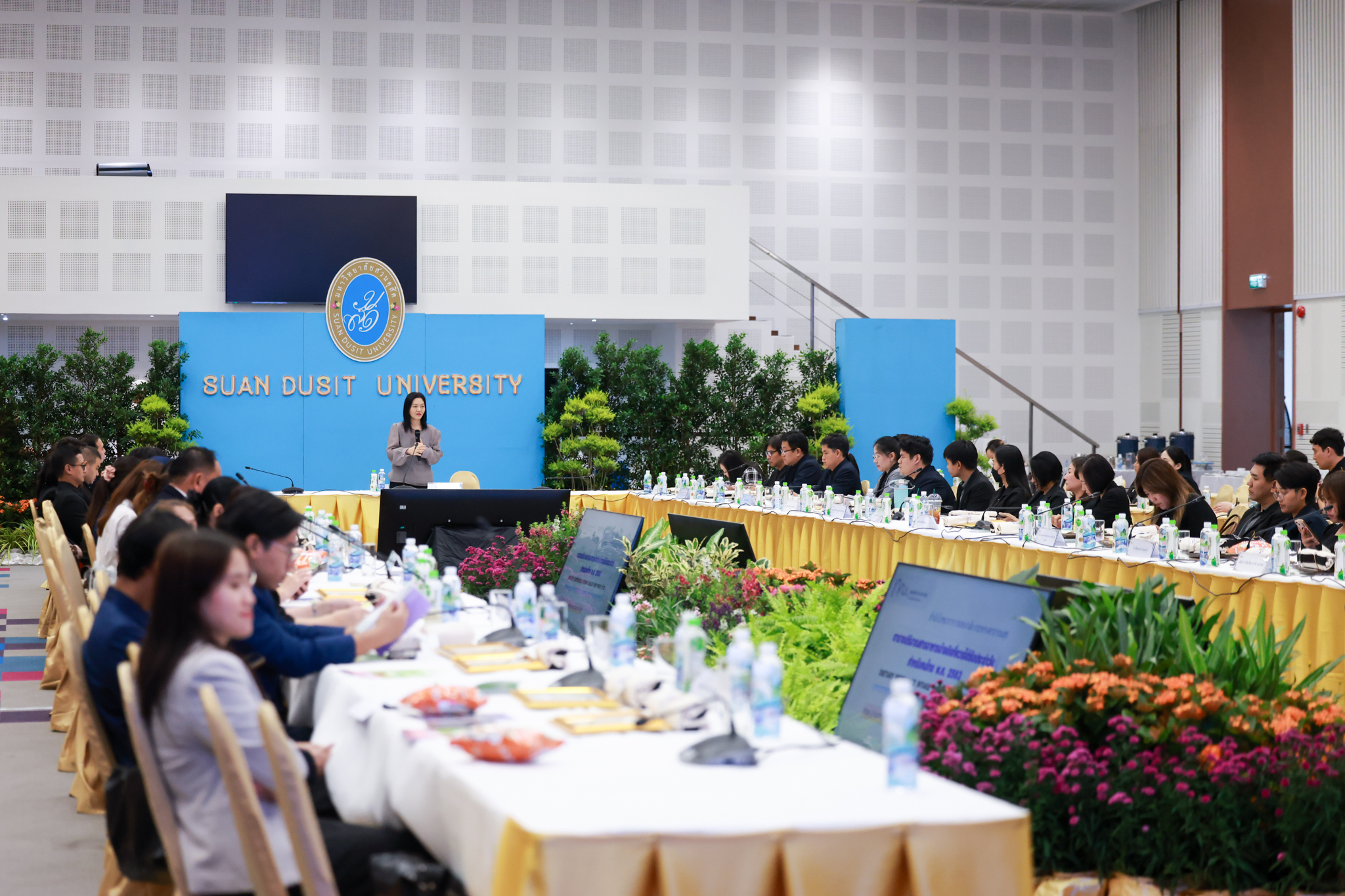 โรงเรียนการเรือน มหาวิทยาลัยสวนดุสิต จัดโครงการสานสัมพันธ์เครือข่ายความร่วมมือด้านวิชาการและการฝึกประสบการณ์วิชาชีพ โรงเรียนการเรือน ปี 2568 – Smart Eating: โภชนาการดีมีสุข โดยได้รับเกียรติจาก ผศ.ดร.พรชณิตว์ แก้วเนตร รองอธิการบดีฝ่ายวิชาการ และกิจการต่างประเทศ เป็นประธานในพิธีเปิดงาน ผศ.ว่าที่ ร.ต. ดร.ธนพัฒน์ แสงรุ่งเรือง คณบดีโรงเรียนการเรียน กล่าวรายงานวัตถุประสงค์การจัดโครงการและนำการประชุมแลกเปลี่ยนแนวทางในการประสานประโยชน์และพัฒนาความร่วมมือด้านวิชาการ และฝึกประสบการณ์วิชาชีพระหว่างโรงเรียนการเรียนและคู่ความร่วมมือ