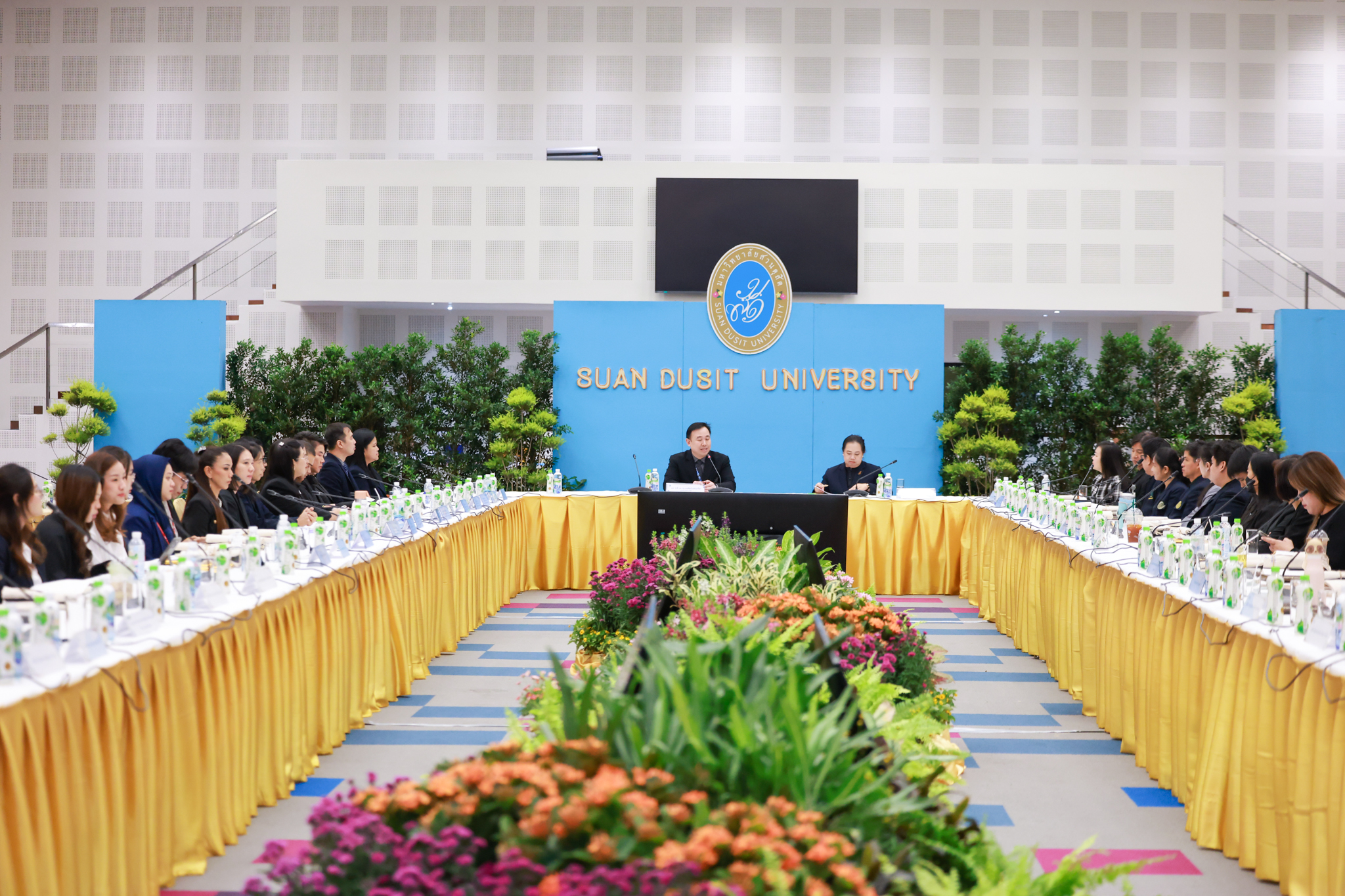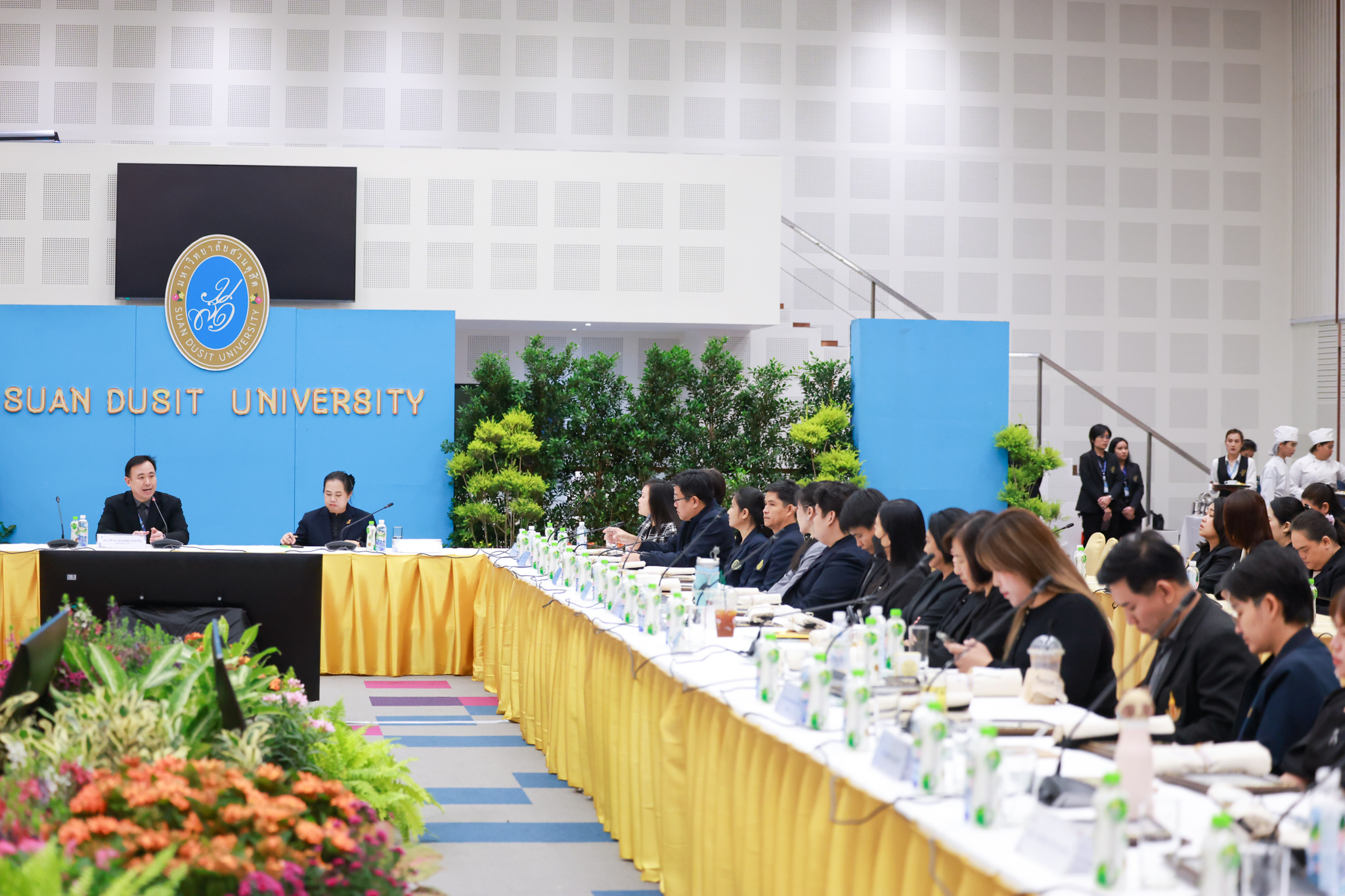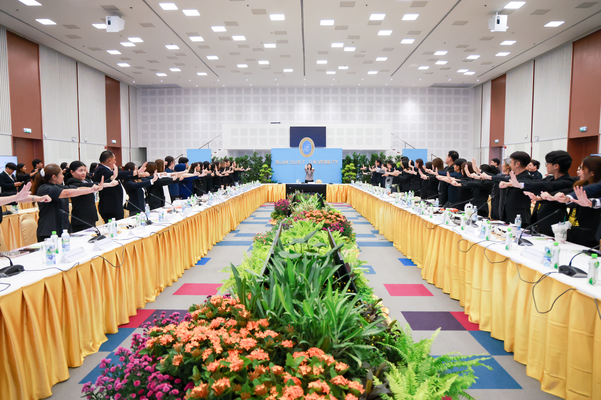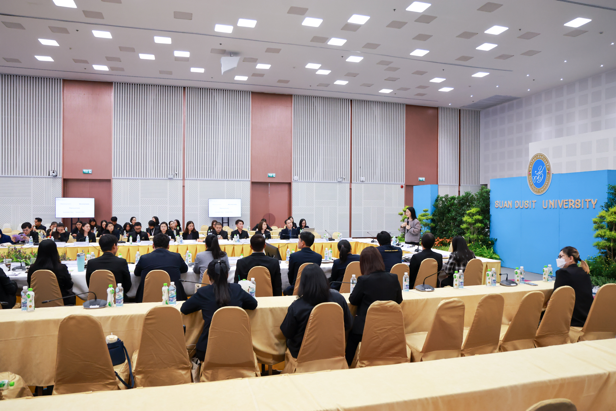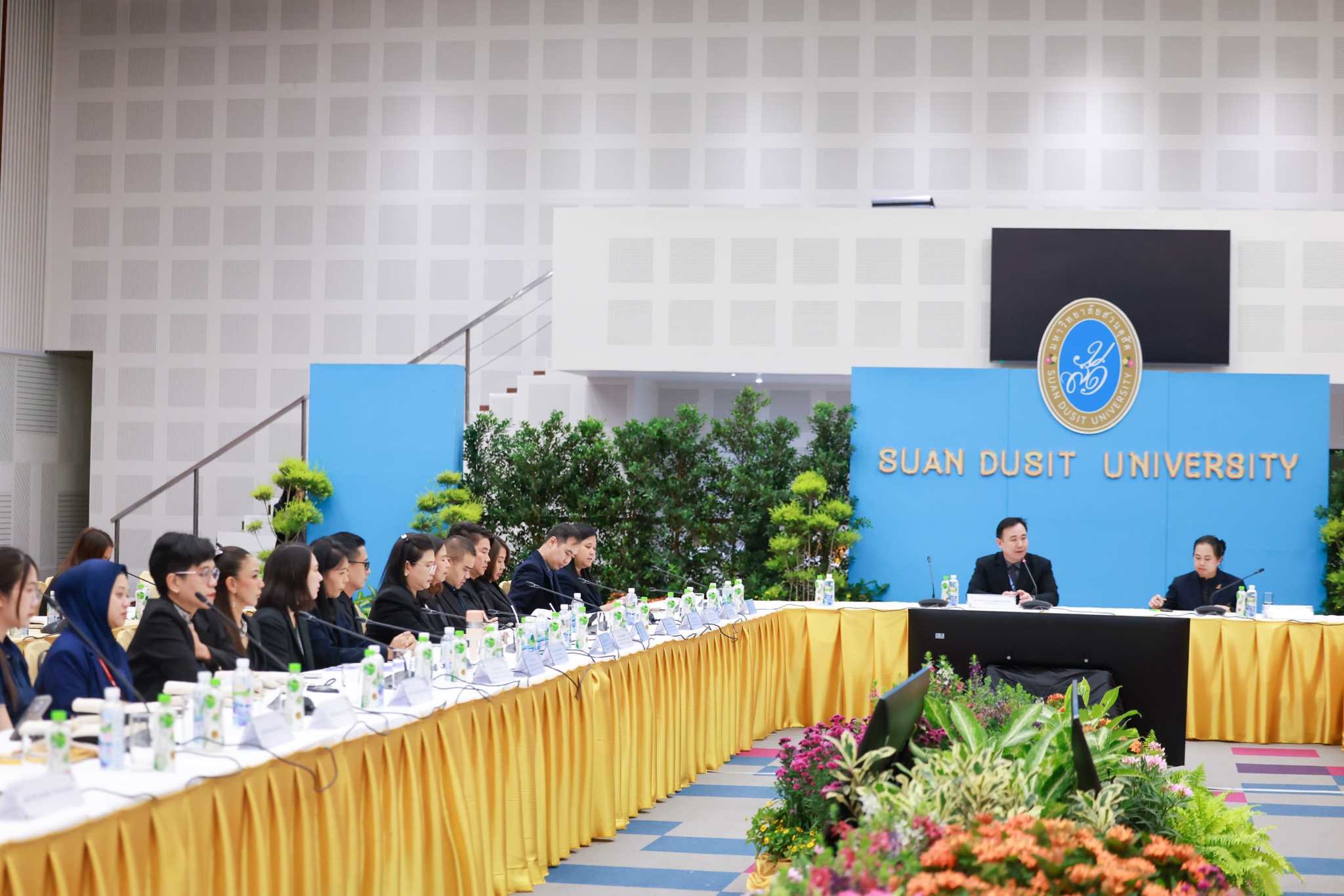 โรงเรียนการเรือน มหาวิทยาลัยสวนดุสิต จัดโครงการสานสัมพันธ์เครือข่ายความร่วมมือด้านวิชาการและการฝึกประสบการณ์วิชาชีพ โรงเรียนการเรือน ปี 2568 – Smart Eating: โภชนาการดีมีสุข โดยได้รับเกียรติจาก ผศ.ดร.พรชณิตว์ แก้วเนตร รองอธิการบดีฝ่ายวิชาการ และกิจการต่างประเทศ เป็นประธานในพิธีเปิดงาน ผศ.ว่าที่ ร.ต. ดร.ธนพัฒน์ แสงรุ่งเรือง คณบดีโรงเรียนการเรียน กล่าวรายงานวัตถุประสงค์การจัดโครงการและนำการประชุมแลกเปลี่ยนแนวทางในการประสานประโยชน์และพัฒนาความร่วมมือด้านวิชาการ และฝึกประสบการณ์วิชาชีพระหว่างโรงเรียนการเรียนและคู่ความร่วมมือ