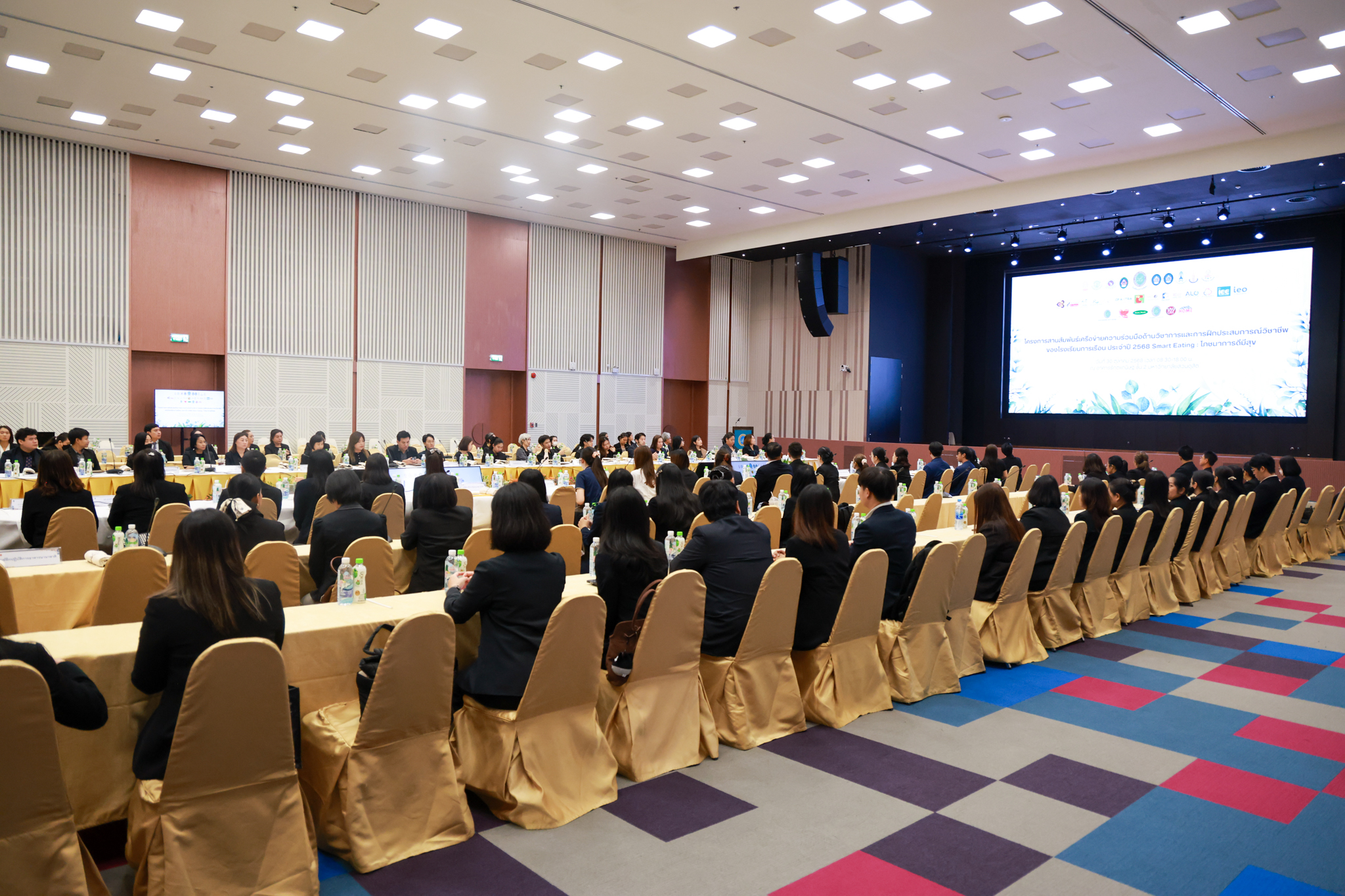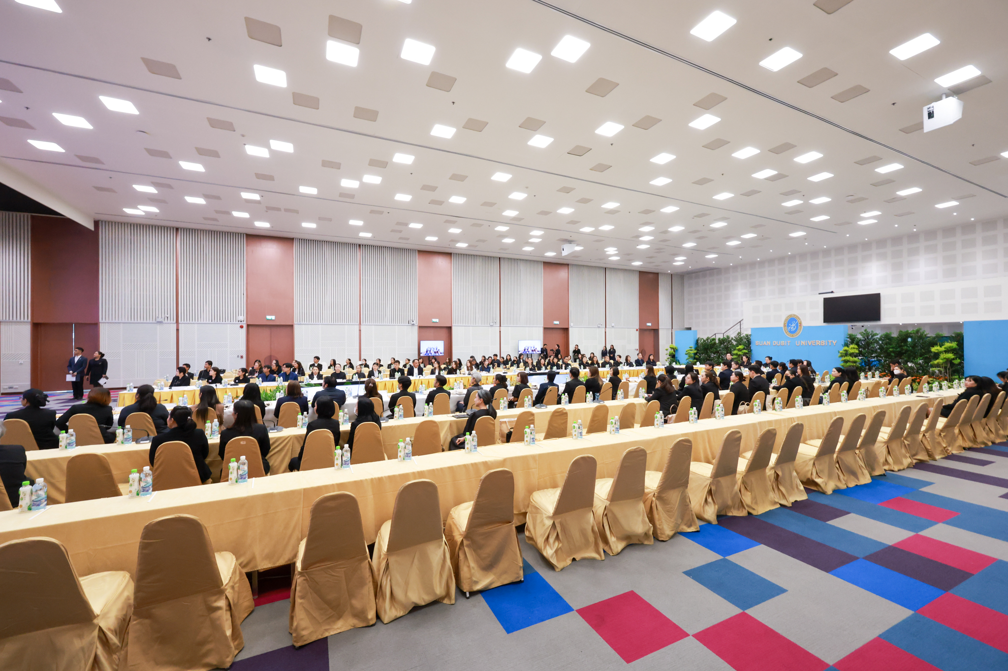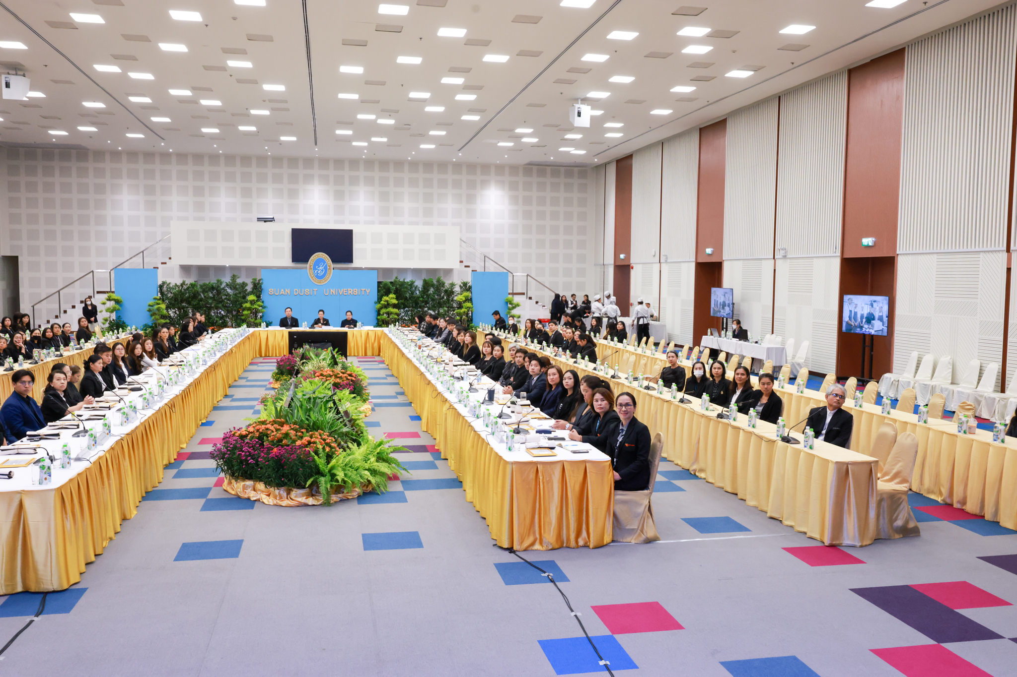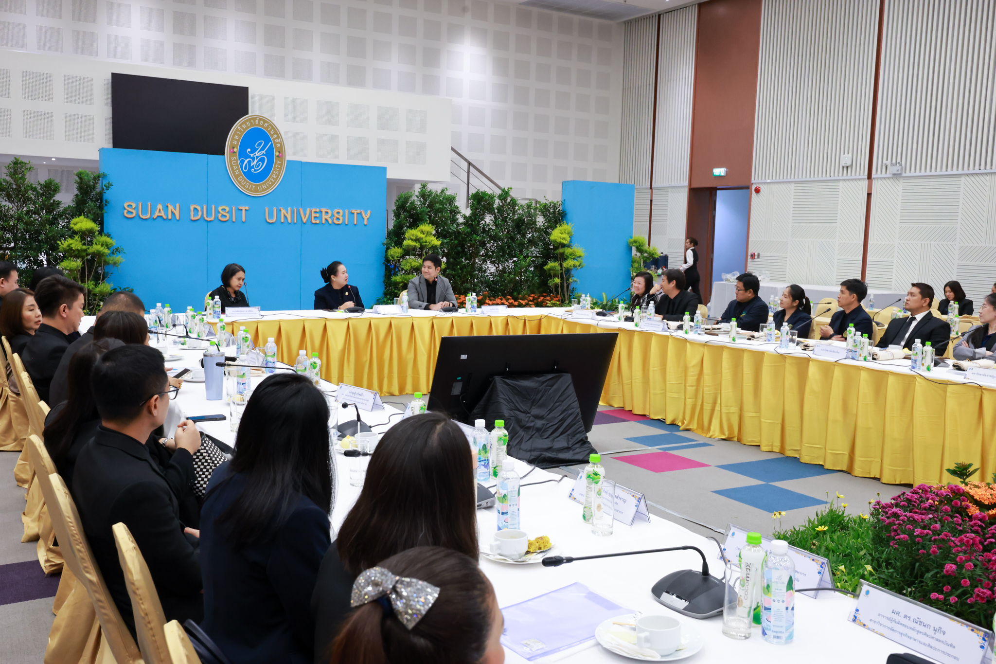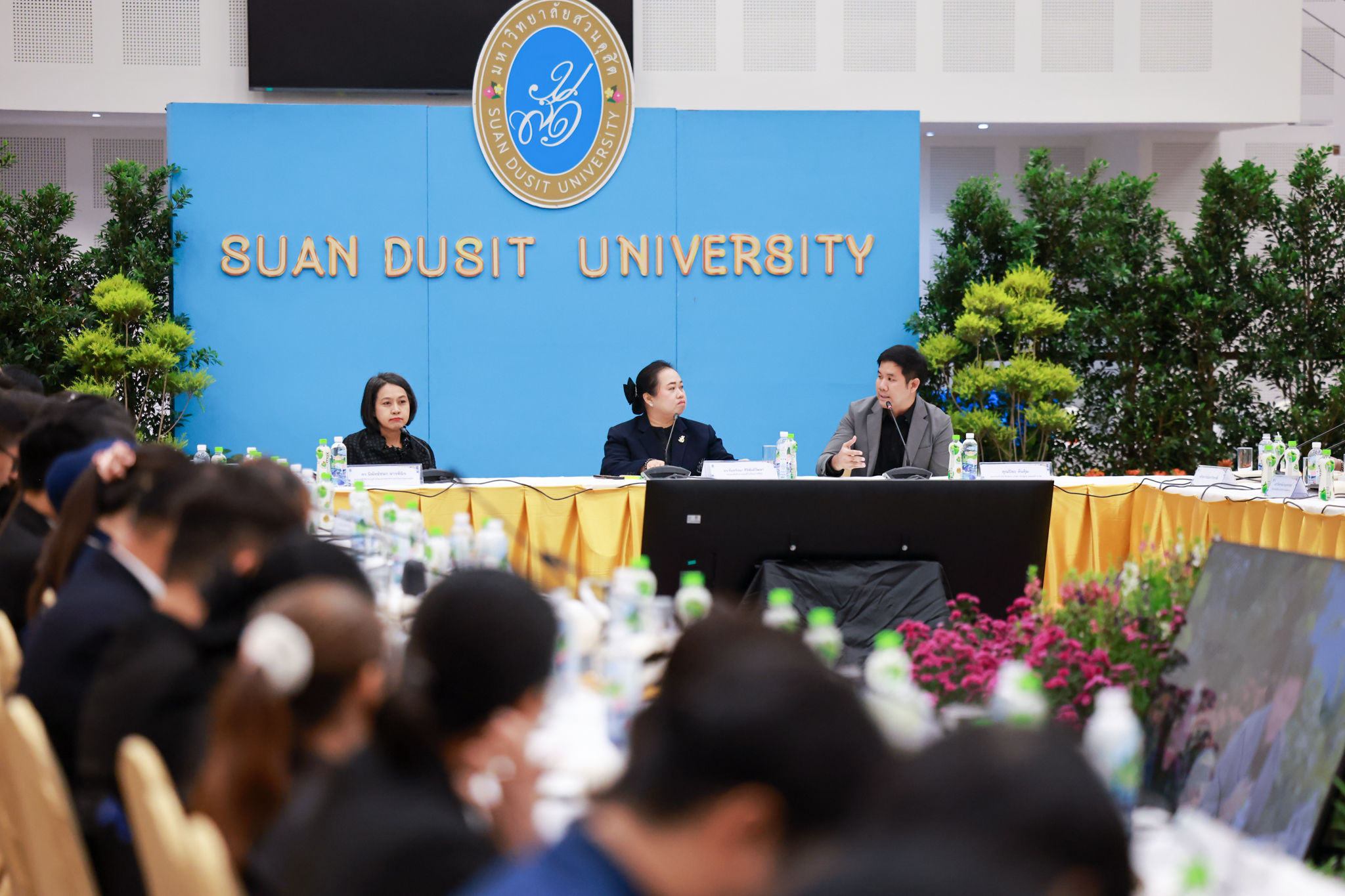 โรงเรียนการเรือน มหาวิทยาลัยสวนดุสิต จัดโครงการสานสัมพันธ์เครือข่ายความร่วมมือด้านวิชาการและการฝึกประสบการณ์วิชาชีพ โรงเรียนการเรือน ปี 2568 – Smart Eating: โภชนาการดีมีสุข โดยได้รับเกียรติจาก ผศ.ดร.พรชณิตว์ แก้วเนตร รองอธิการบดีฝ่ายวิชาการ และกิจการต่างประเทศ เป็นประธานในพิธีเปิดงาน ผศ.ว่าที่ ร.ต. ดร.ธนพัฒน์ แสงรุ่งเรือง คณบดีโรงเรียนการเรียน กล่าวรายงานวัตถุประสงค์การจัดโครงการและนำการประชุมแลกเปลี่ยนแนวทางในการประสานประโยชน์และพัฒนาความร่วมมือด้านวิชาการ และฝึกประสบการณ์วิชาชีพระหว่างโรงเรียนการเรียนและคู่ความร่วมมือ