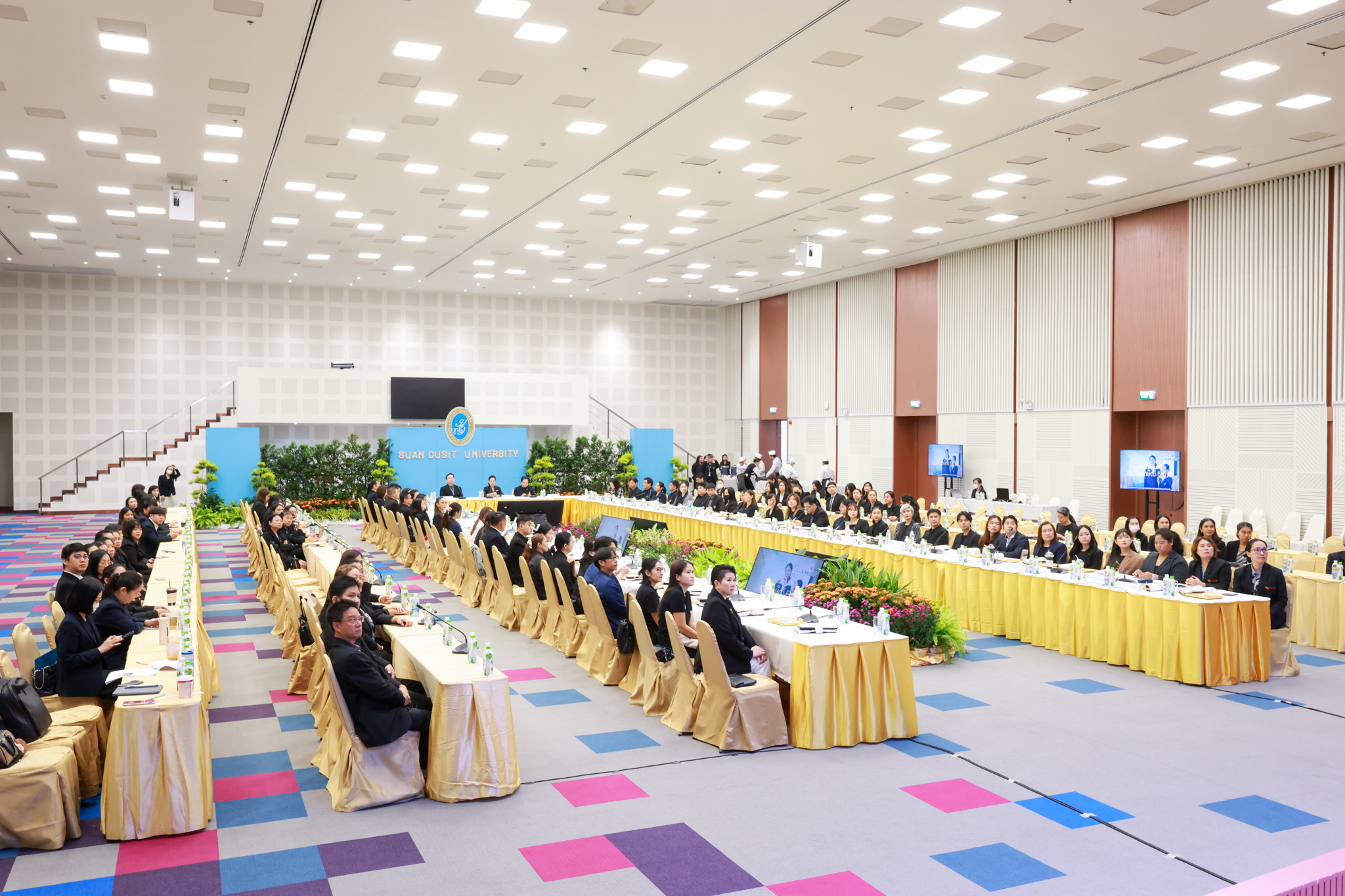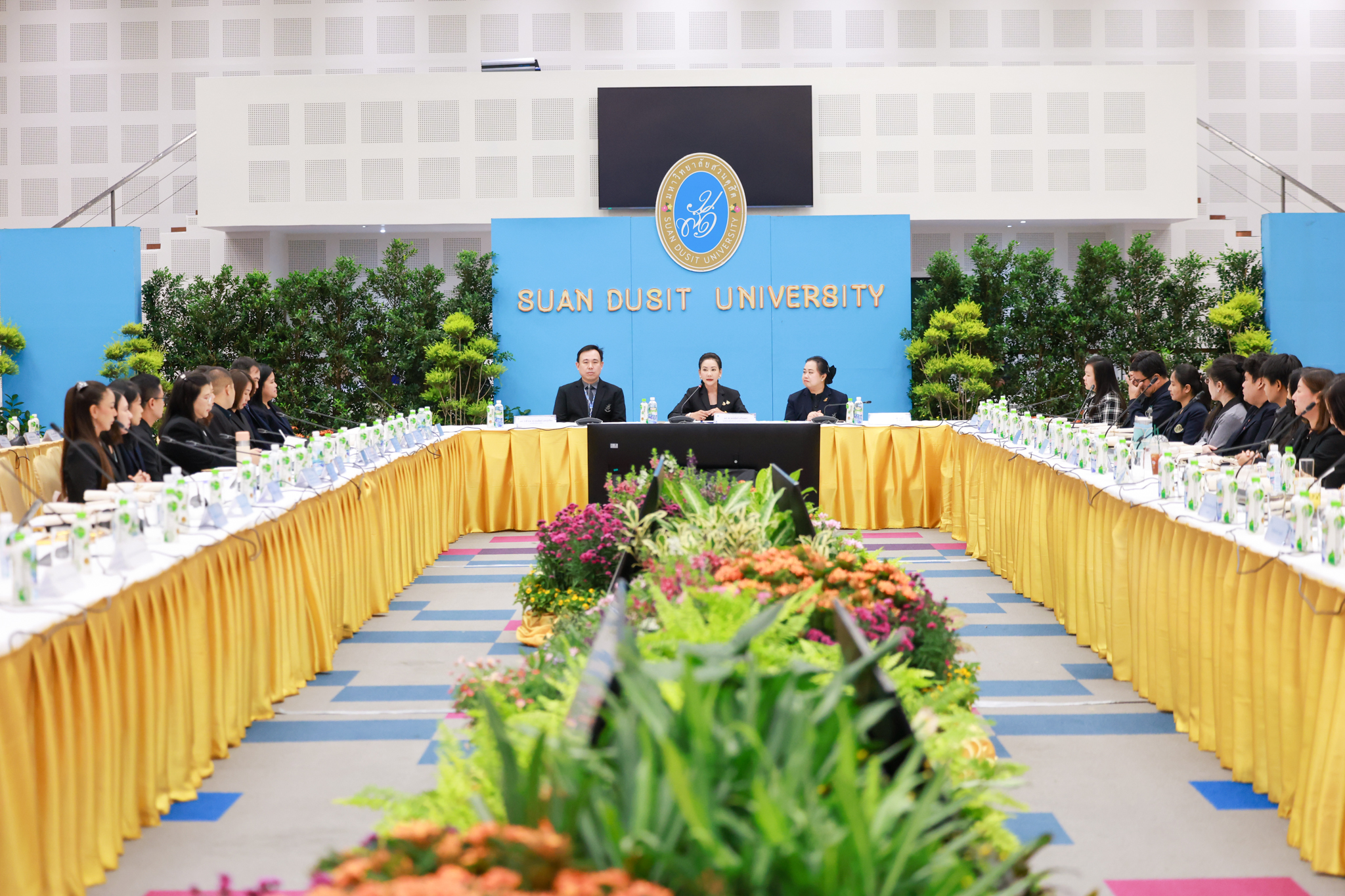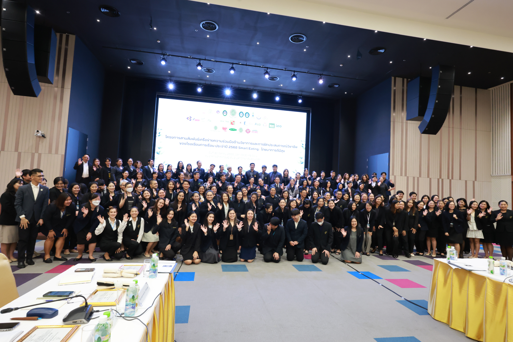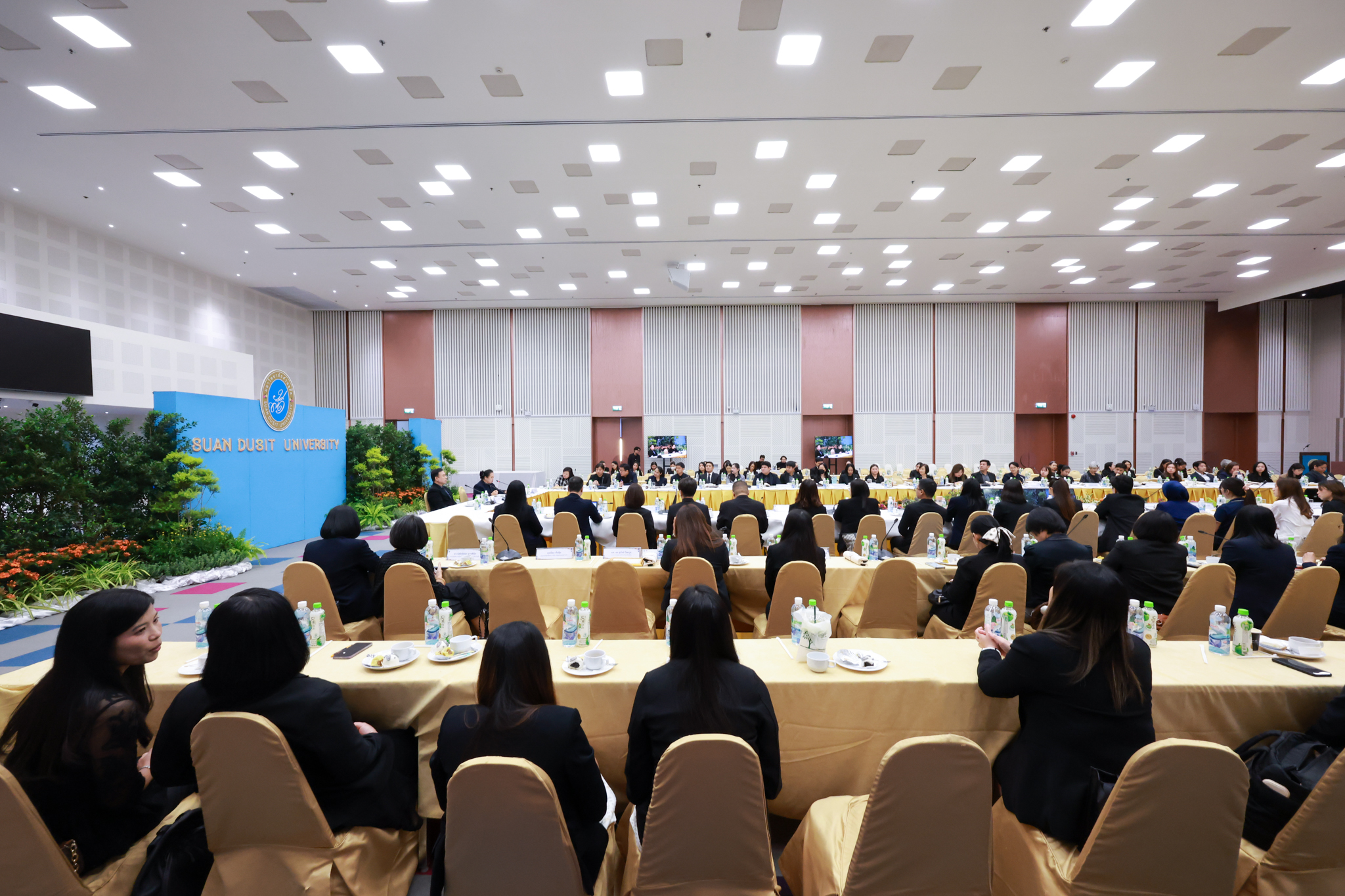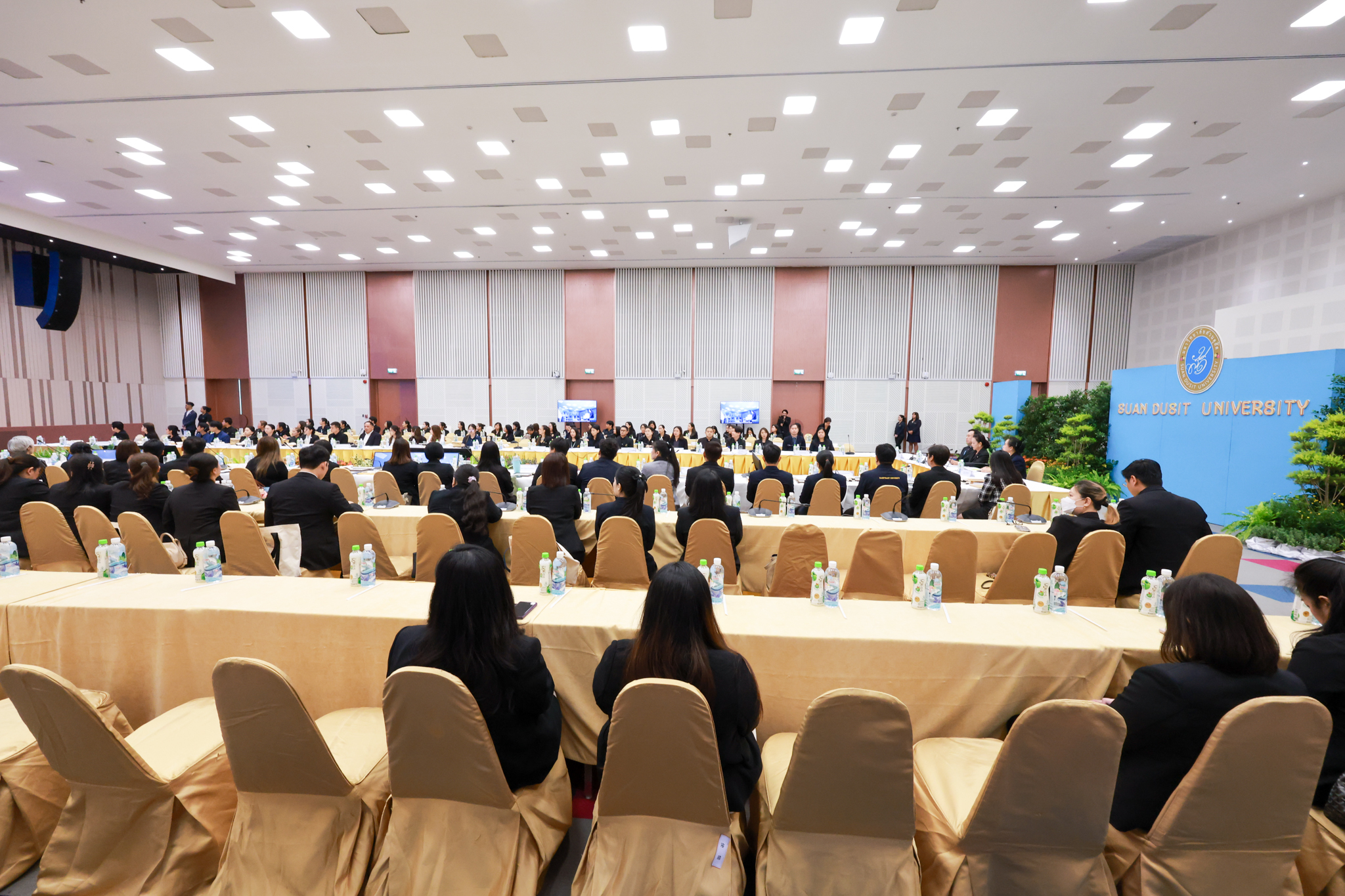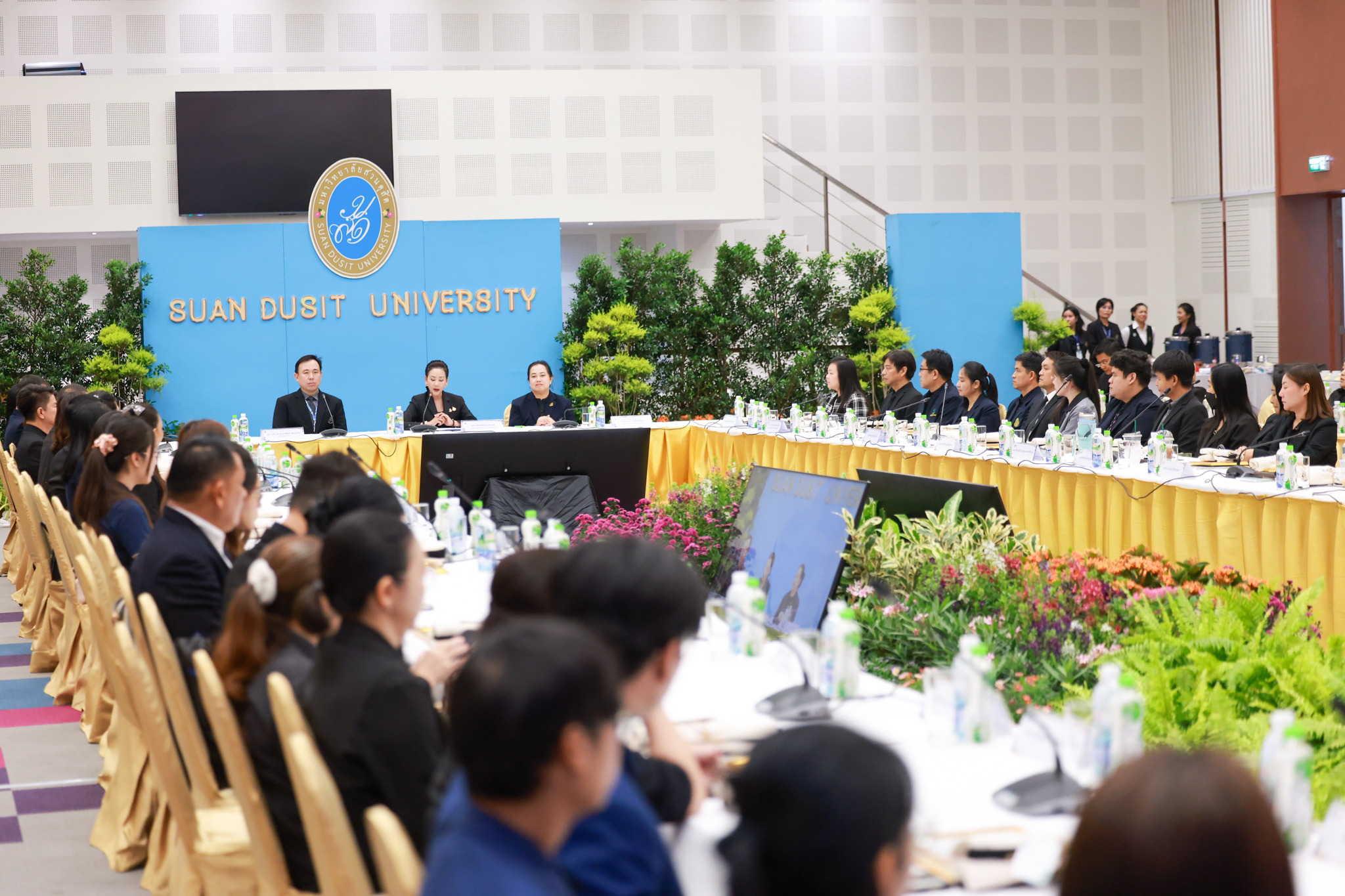 โรงเรียนการเรือน มหาวิทยาลัยสวนดุสิต จัดโครงการสานสัมพันธ์เครือข่ายความร่วมมือด้านวิชาการและการฝึกประสบการณ์วิชาชีพ โรงเรียนการเรือน ปี 2568 – Smart Eating: โภชนาการดีมีสุข โดยได้รับเกียรติจาก ผศ.ดร.พรชณิตว์ แก้วเนตร รองอธิการบดีฝ่ายวิชาการ และกิจการต่างประเทศ เป็นประธานในพิธีเปิดงาน ผศ.ว่าที่ ร.ต. ดร.ธนพัฒน์ แสงรุ่งเรือง คณบดีโรงเรียนการเรียน กล่าวรายงานวัตถุประสงค์การจัดโครงการและนำการประชุมแลกเปลี่ยนแนวทางในการประสานประโยชน์และพัฒนาความร่วมมือด้านวิชาการ และฝึกประสบการณ์วิชาชีพระหว่างโรงเรียนการเรียนและคู่ความร่วมมือ