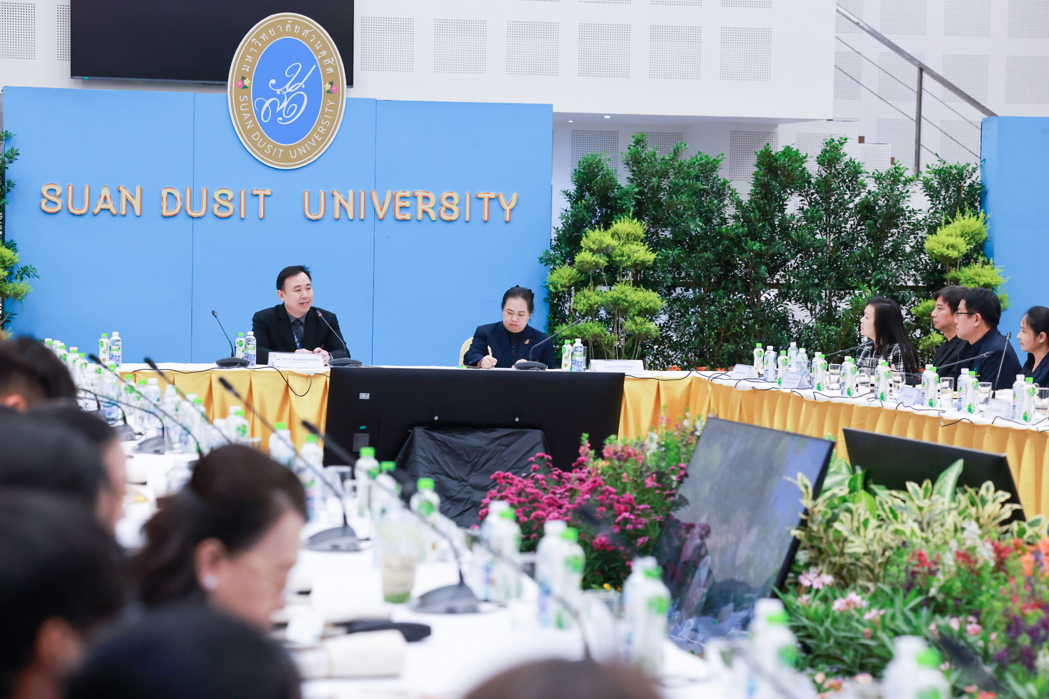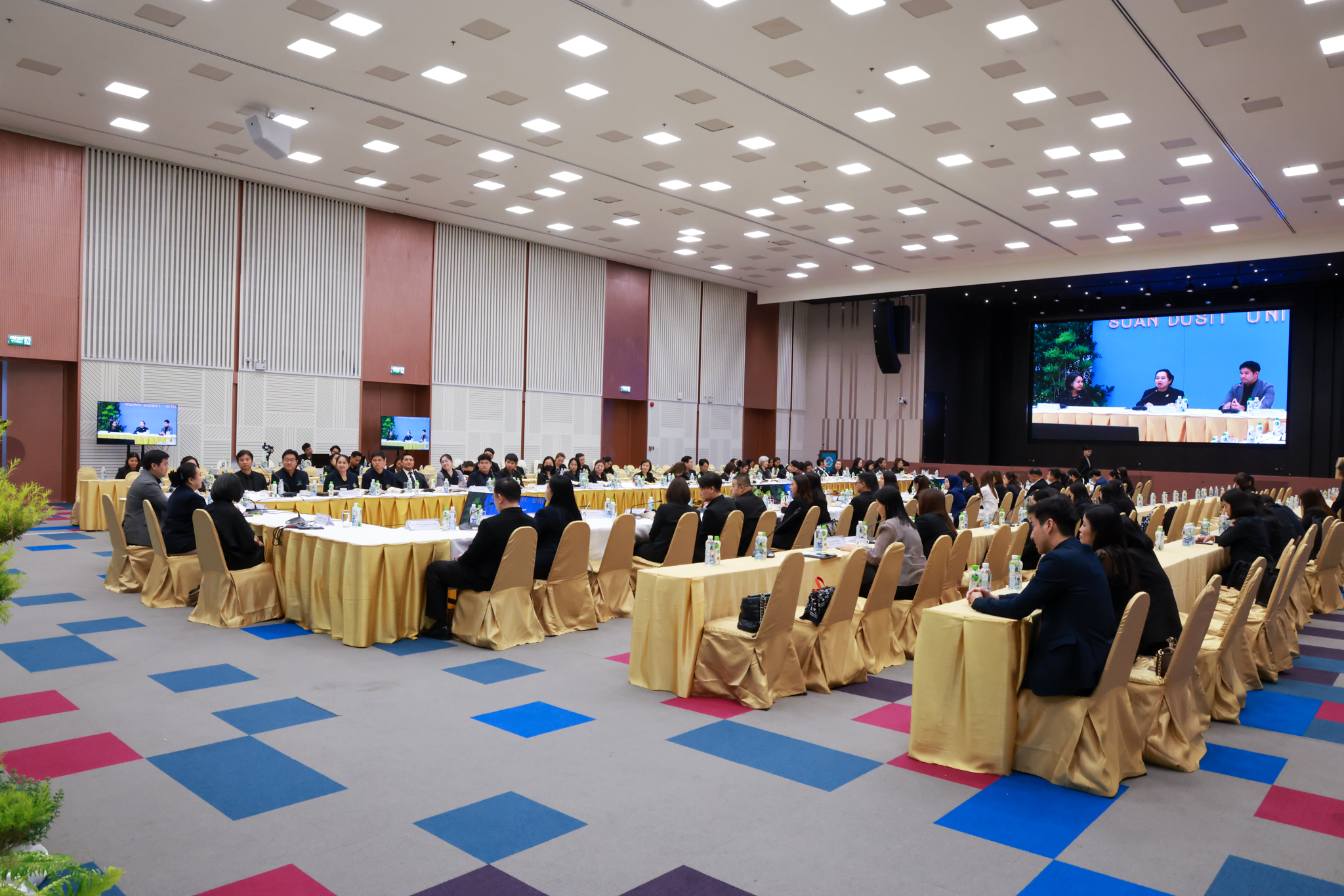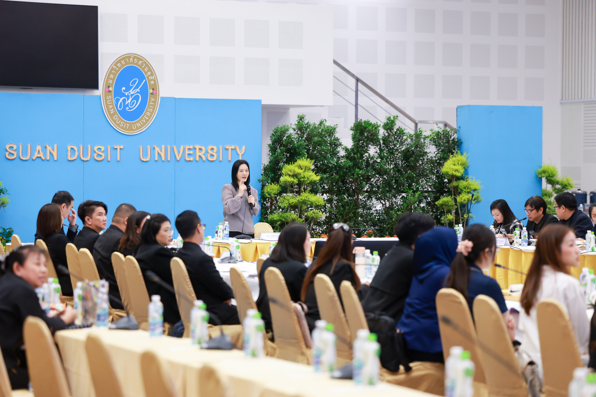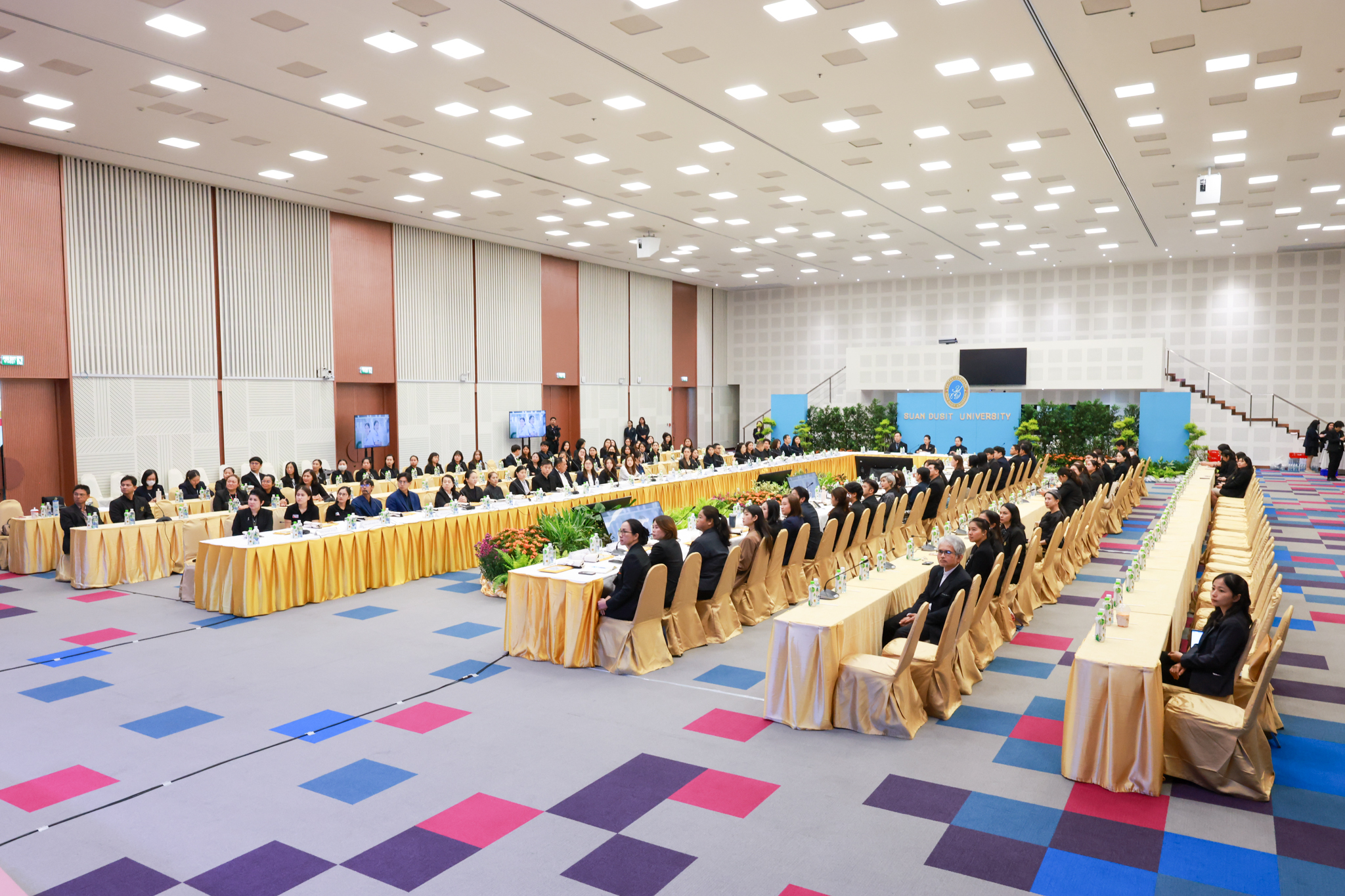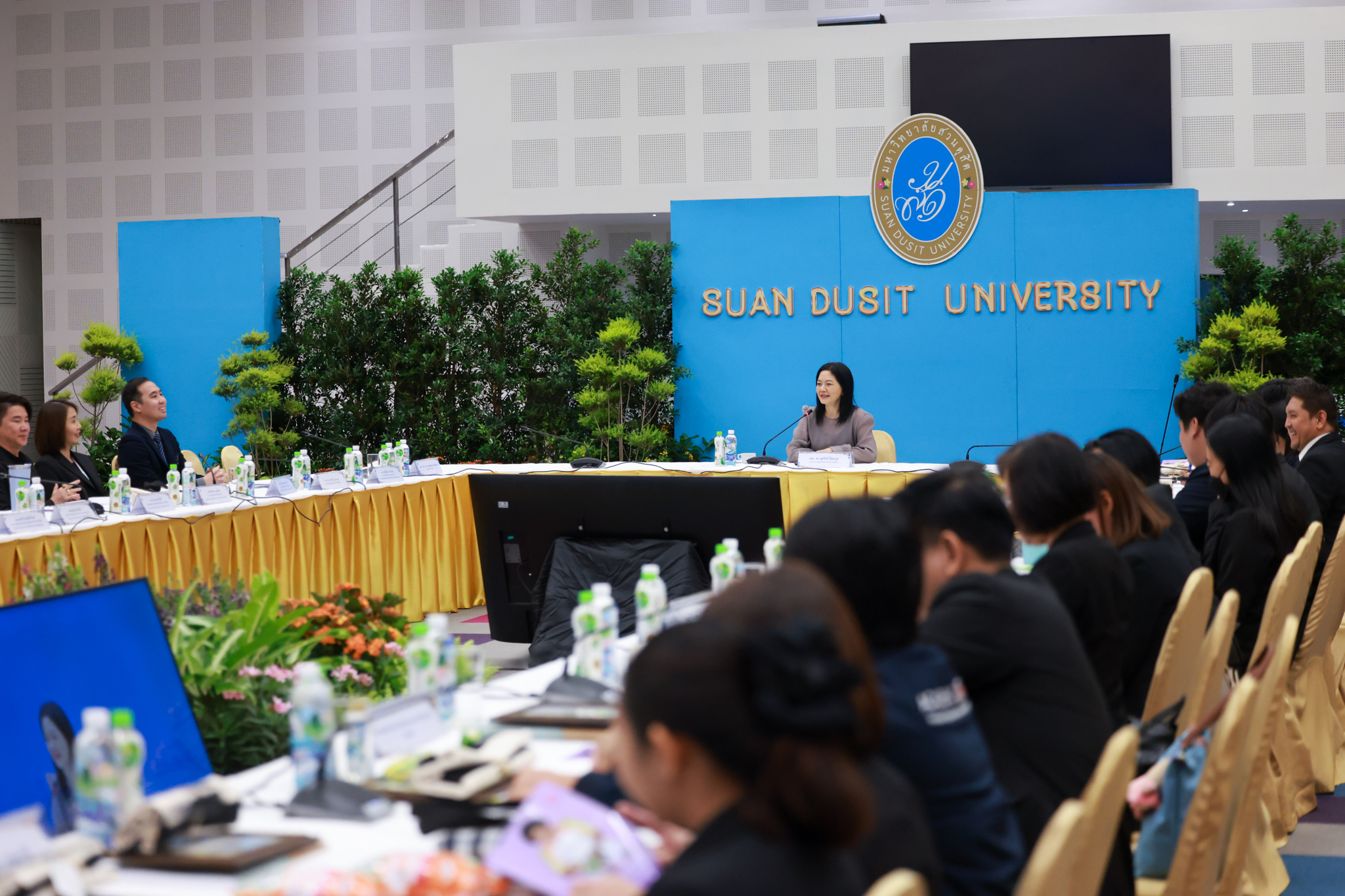 โรงเรียนการเรือน มหาวิทยาลัยสวนดุสิต จัดโครงการสานสัมพันธ์เครือข่ายความร่วมมือด้านวิชาการและการฝึกประสบการณ์วิชาชีพ โรงเรียนการเรือน ปี 2568 – Smart Eating: โภชนาการดีมีสุข โดยได้รับเกียรติจาก ผศ.ดร.พรชณิตว์ แก้วเนตร รองอธิการบดีฝ่ายวิชาการ และกิจการต่างประเทศ เป็นประธานในพิธีเปิดงาน ผศ.ว่าที่ ร.ต. ดร.ธนพัฒน์ แสงรุ่งเรือง คณบดีโรงเรียนการเรียน กล่าวรายงานวัตถุประสงค์การจัดโครงการและนำการประชุมแลกเปลี่ยนแนวทางในการประสานประโยชน์และพัฒนาความร่วมมือด้านวิชาการ และฝึกประสบการณ์วิชาชีพระหว่างโรงเรียนการเรียนและคู่ความร่วมมือ