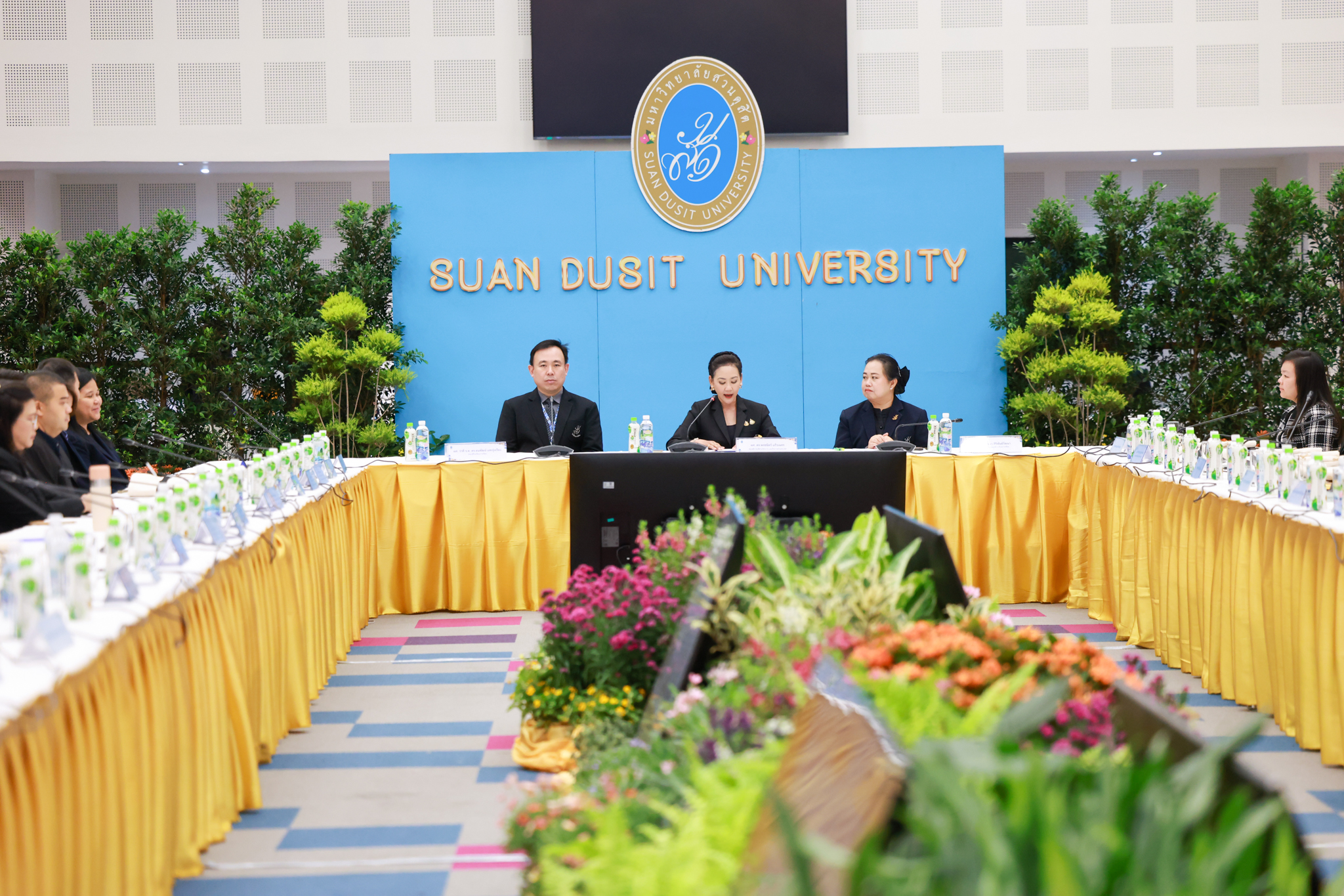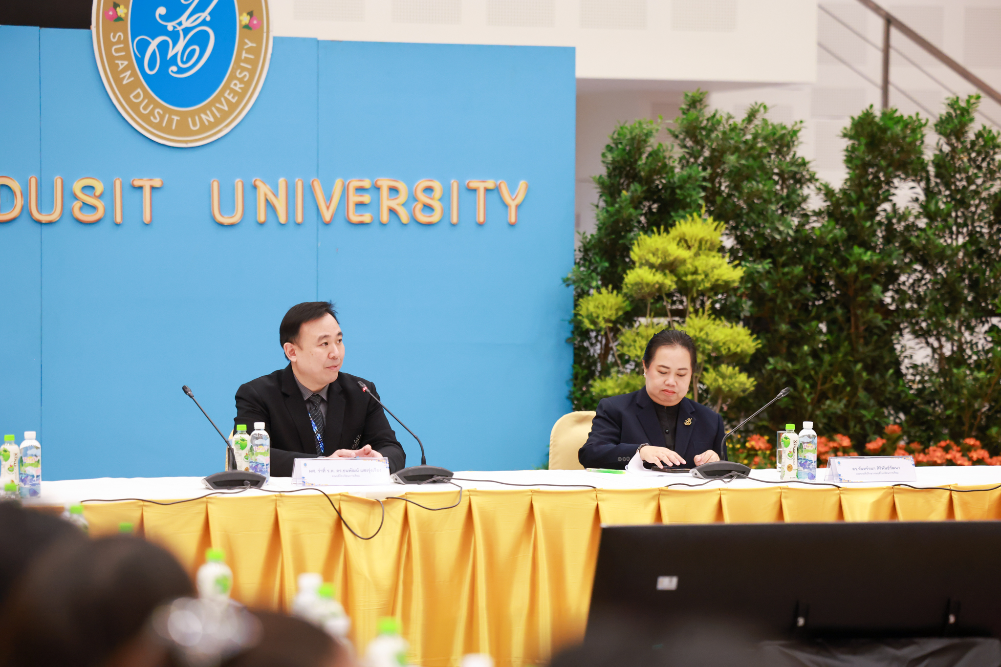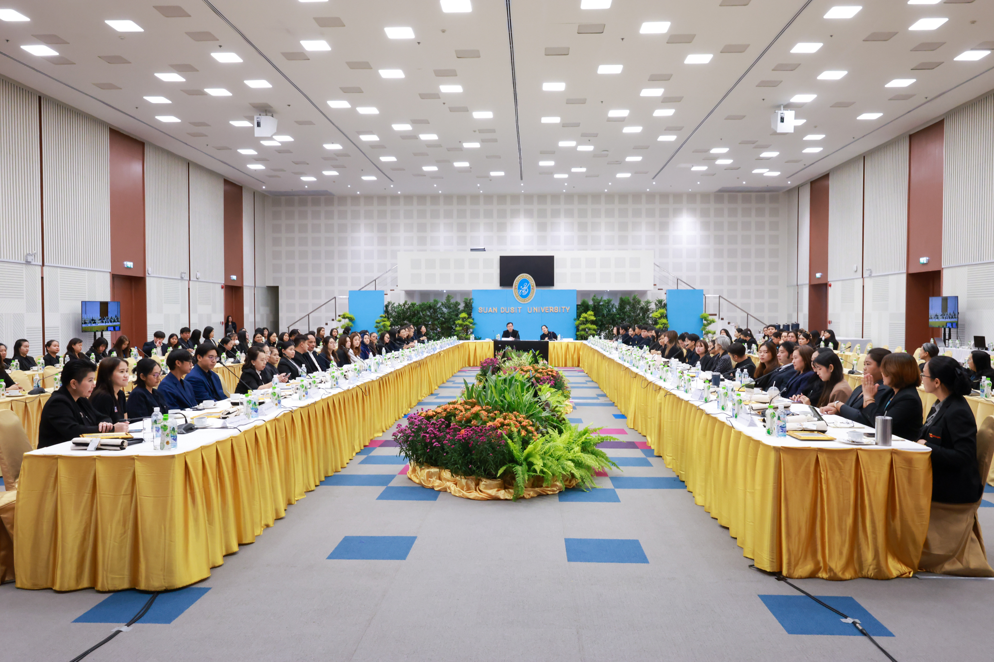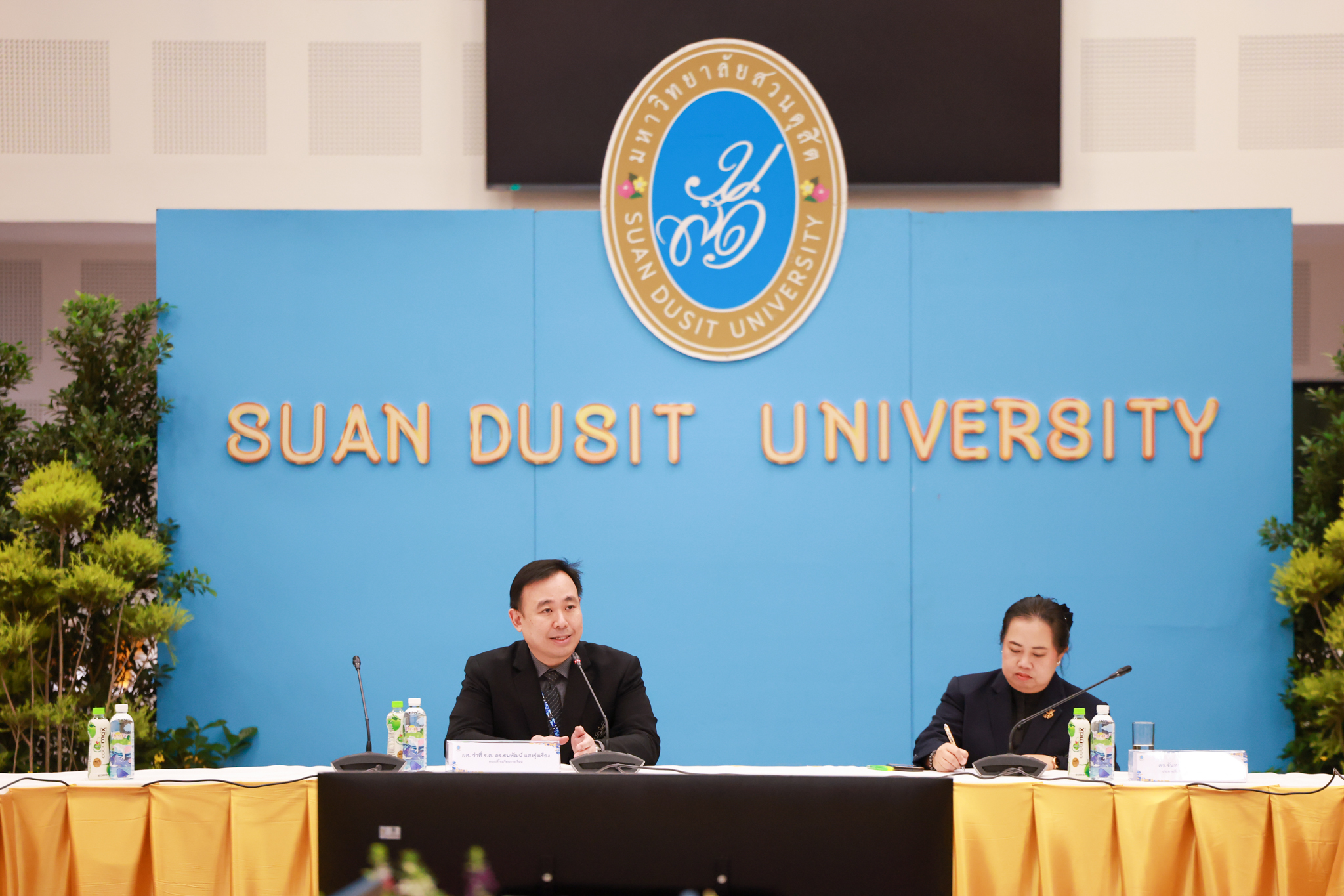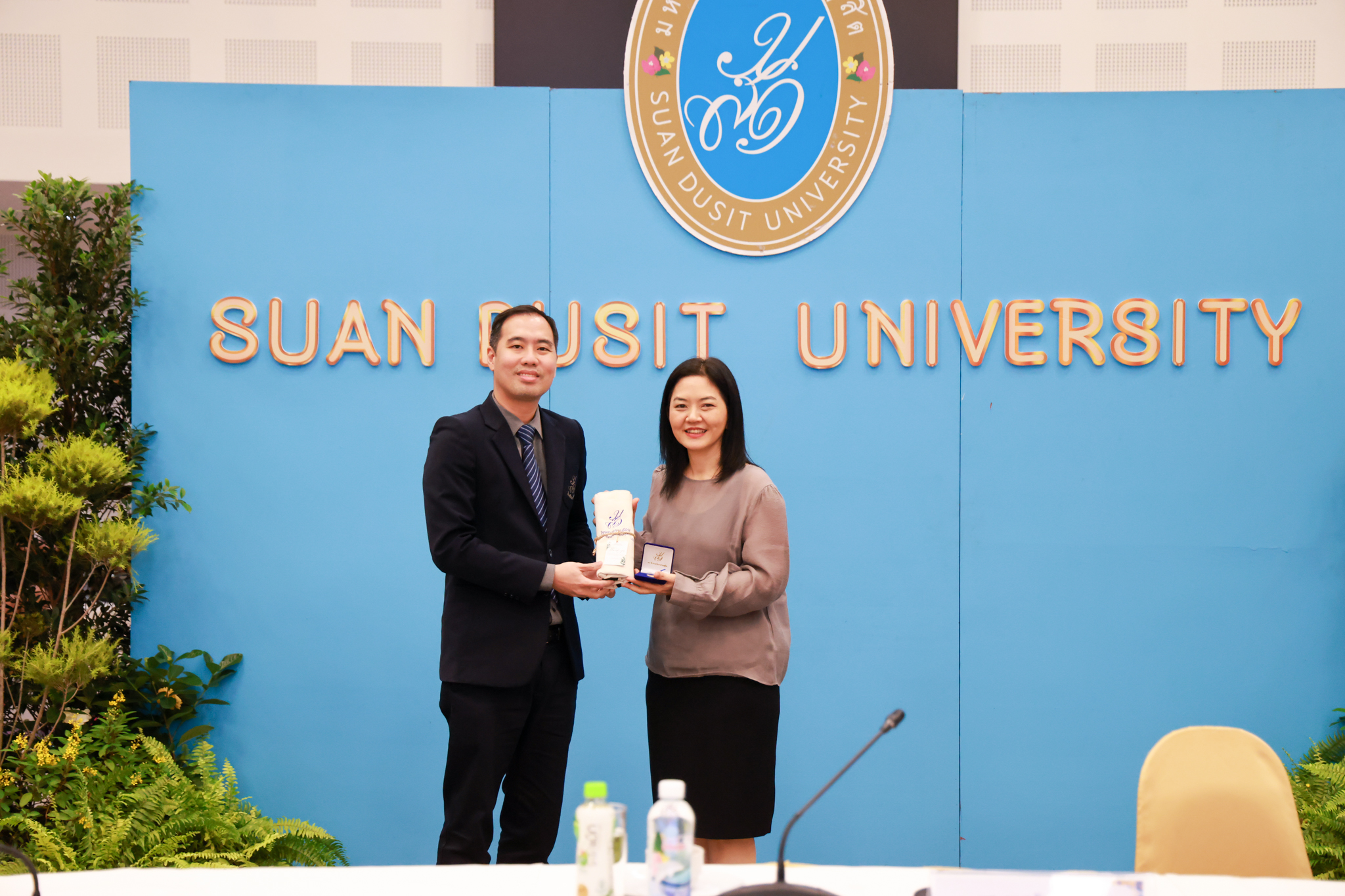 โรงเรียนการเรือน มหาวิทยาลัยสวนดุสิต จัดโครงการสานสัมพันธ์เครือข่ายความร่วมมือด้านวิชาการและการฝึกประสบการณ์วิชาชีพ โรงเรียนการเรือน ปี 2568 – Smart Eating: โภชนาการดีมีสุข โดยได้รับเกียรติจาก ผศ.ดร.พรชณิตว์ แก้วเนตร รองอธิการบดีฝ่ายวิชาการ และกิจการต่างประเทศ เป็นประธานในพิธีเปิดงาน ผศ.ว่าที่ ร.ต. ดร.ธนพัฒน์ แสงรุ่งเรือง คณบดีโรงเรียนการเรียน กล่าวรายงานวัตถุประสงค์การจัดโครงการและนำการประชุมแลกเปลี่ยนแนวทางในการประสานประโยชน์และพัฒนาความร่วมมือด้านวิชาการ และฝึกประสบการณ์วิชาชีพระหว่างโรงเรียนการเรียนและคู่ความร่วมมือ