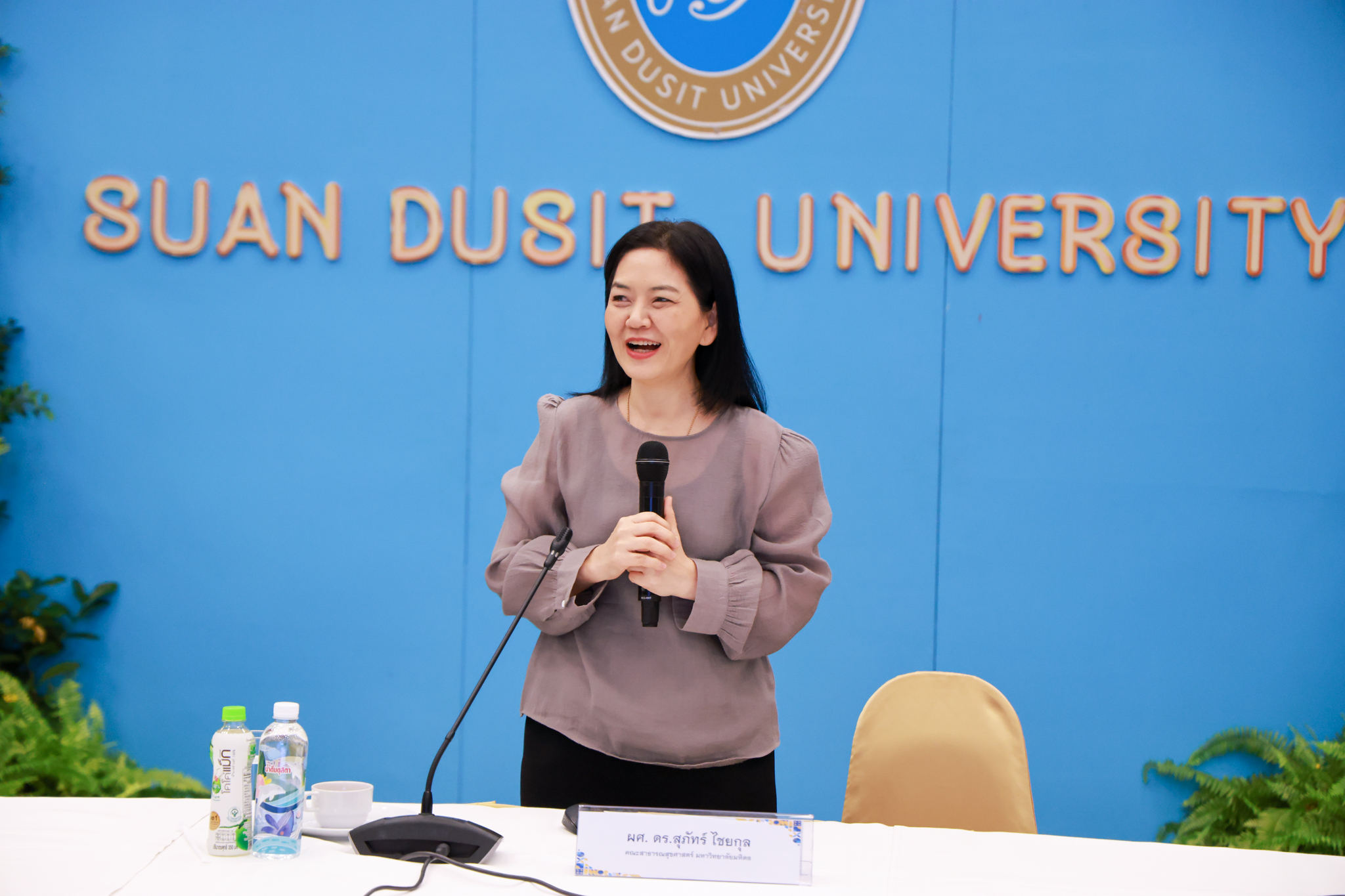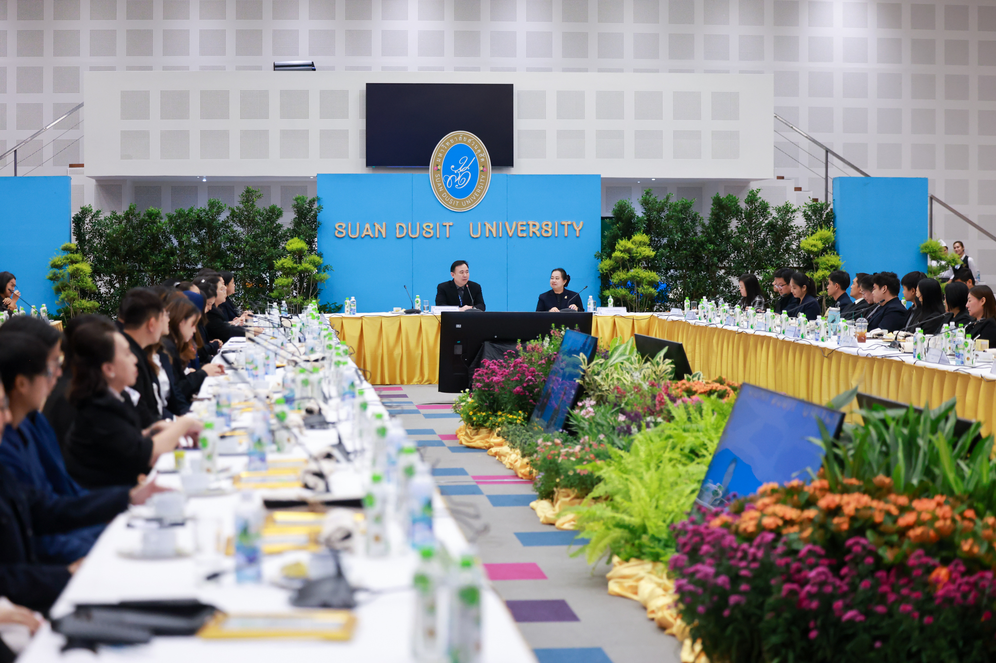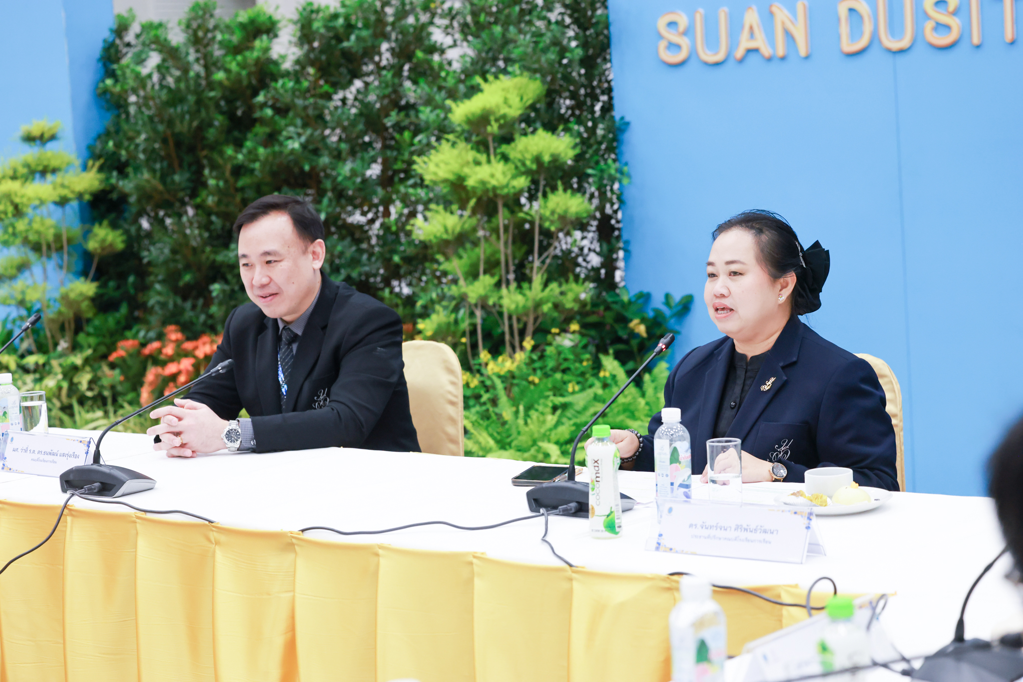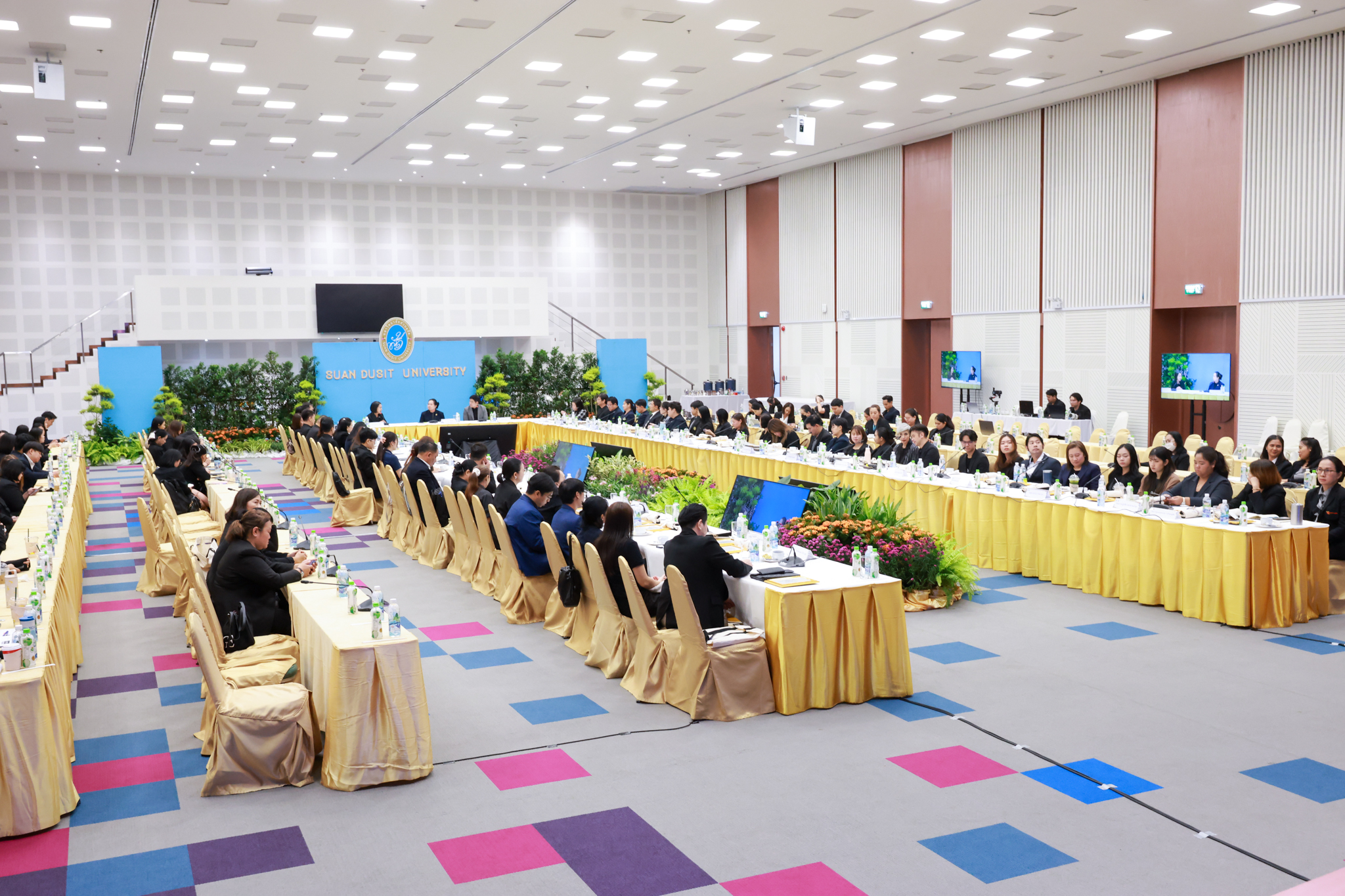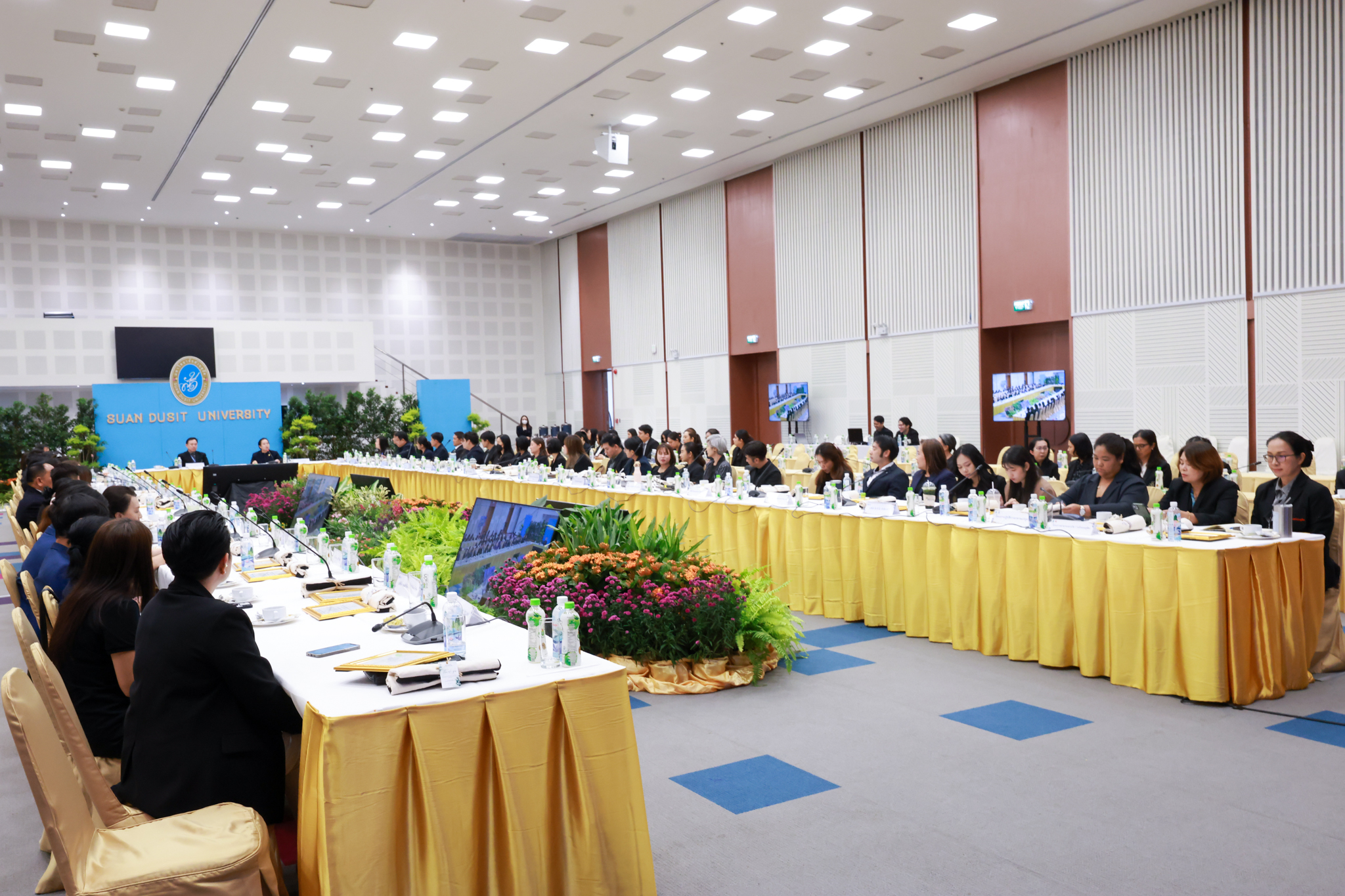 โรงเรียนการเรือน มหาวิทยาลัยสวนดุสิต จัดโครงการสานสัมพันธ์เครือข่ายความร่วมมือด้านวิชาการและการฝึกประสบการณ์วิชาชีพ โรงเรียนการเรือน ปี 2568 – Smart Eating: โภชนาการดีมีสุข โดยได้รับเกียรติจาก ผศ.ดร.พรชณิตว์ แก้วเนตร รองอธิการบดีฝ่ายวิชาการ และกิจการต่างประเทศ เป็นประธานในพิธีเปิดงาน ผศ.ว่าที่ ร.ต. ดร.ธนพัฒน์ แสงรุ่งเรือง คณบดีโรงเรียนการเรียน กล่าวรายงานวัตถุประสงค์การจัดโครงการและนำการประชุมแลกเปลี่ยนแนวทางในการประสานประโยชน์และพัฒนาความร่วมมือด้านวิชาการ และฝึกประสบการณ์วิชาชีพระหว่างโรงเรียนการเรียนและคู่ความร่วมมือ