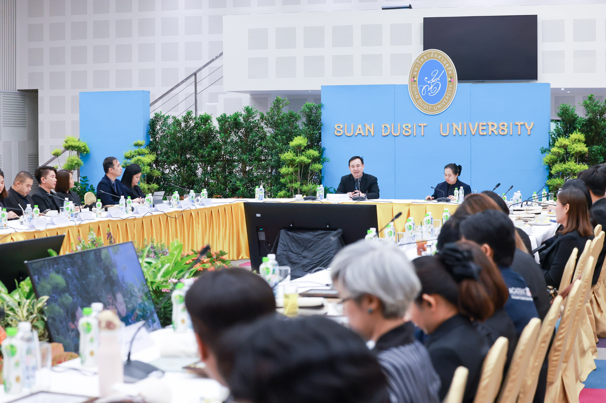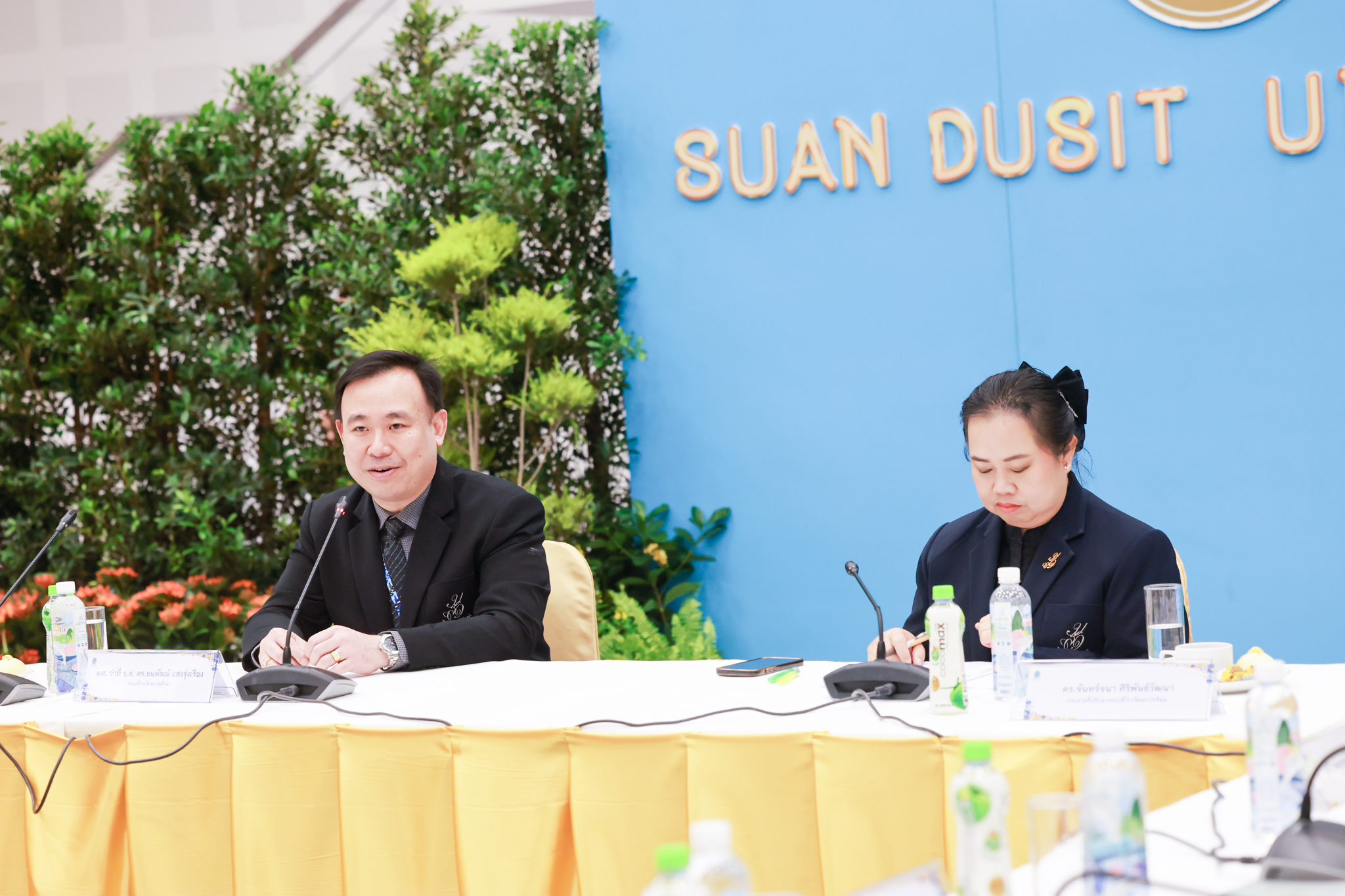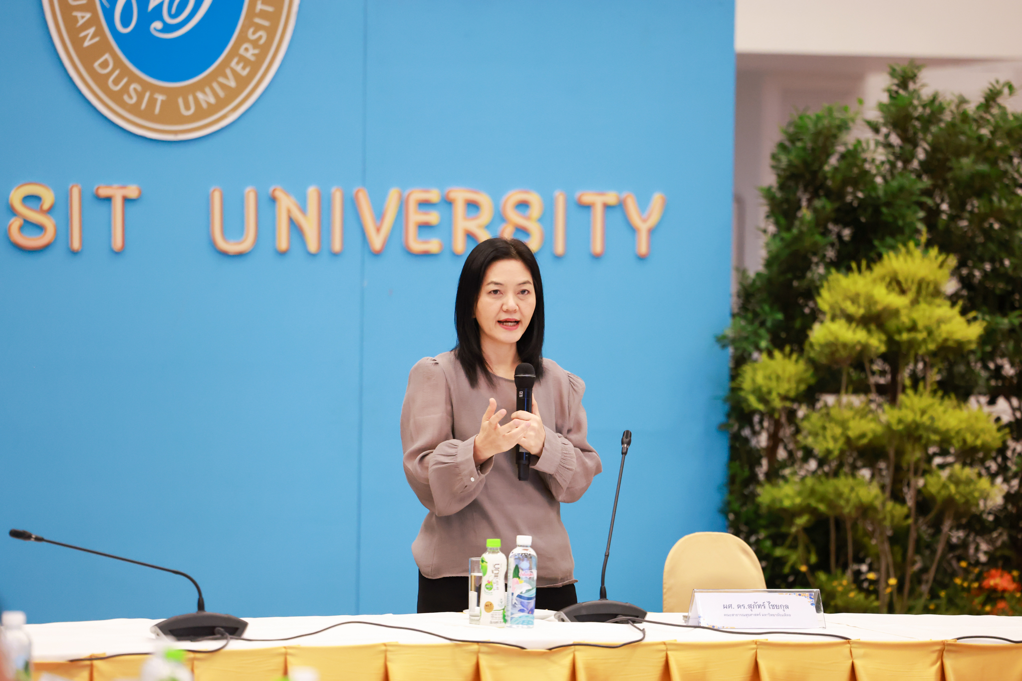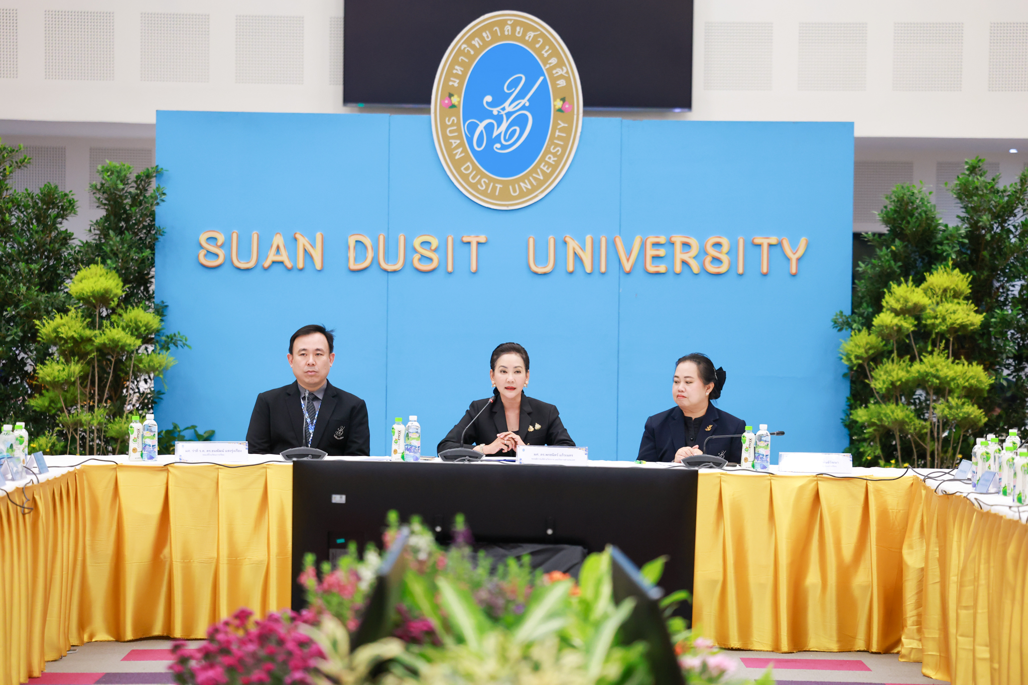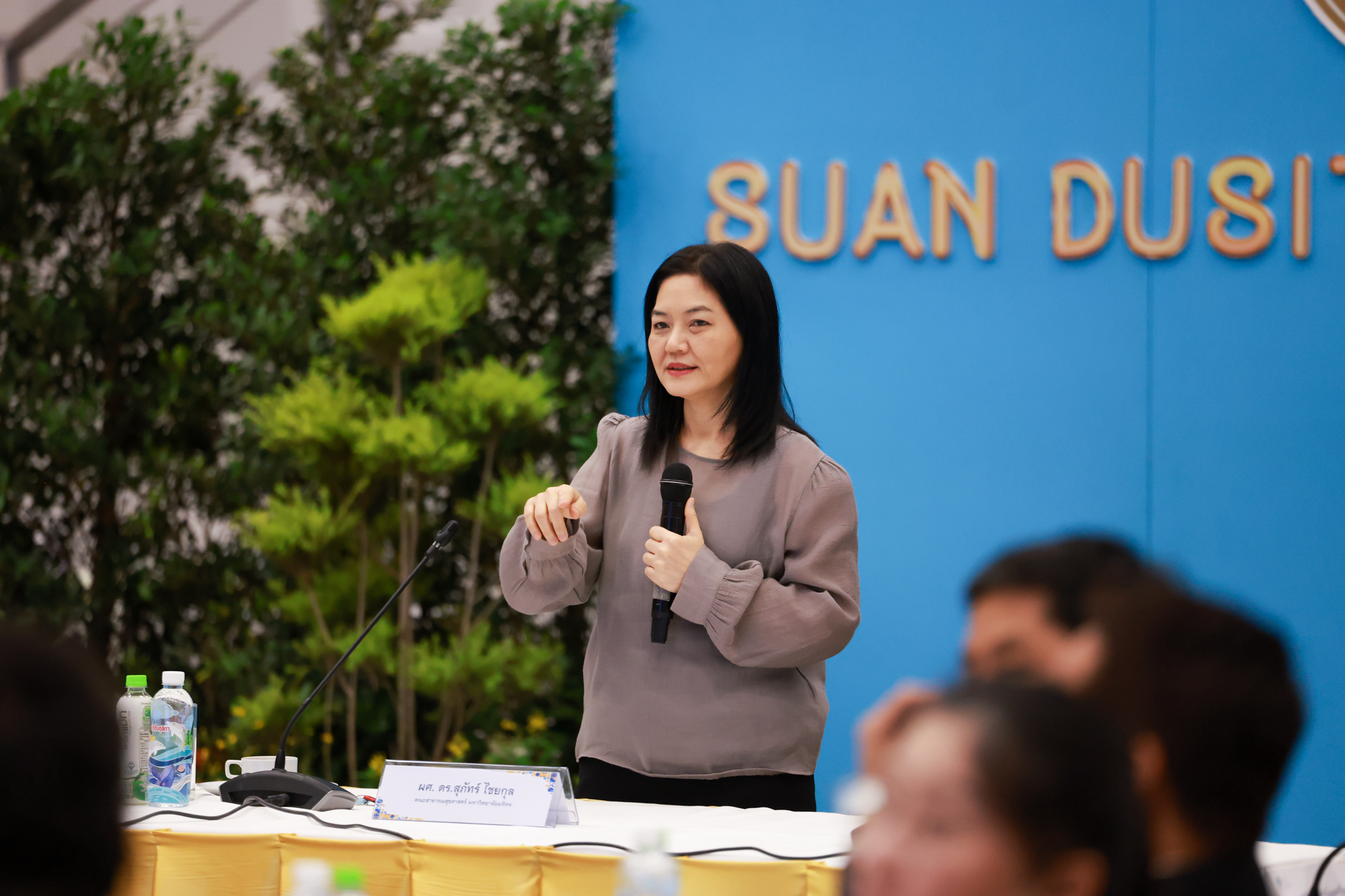 โรงเรียนการเรือน มหาวิทยาลัยสวนดุสิต จัดโครงการสานสัมพันธ์เครือข่ายความร่วมมือด้านวิชาการและการฝึกประสบการณ์วิชาชีพ โรงเรียนการเรือน ปี 2568 – Smart Eating: โภชนาการดีมีสุข โดยได้รับเกียรติจาก ผศ.ดร.พรชณิตว์ แก้วเนตร รองอธิการบดีฝ่ายวิชาการ และกิจการต่างประเทศ เป็นประธานในพิธีเปิดงาน ผศ.ว่าที่ ร.ต. ดร.ธนพัฒน์ แสงรุ่งเรือง คณบดีโรงเรียนการเรียน กล่าวรายงานวัตถุประสงค์การจัดโครงการและนำการประชุมแลกเปลี่ยนแนวทางในการประสานประโยชน์และพัฒนาความร่วมมือด้านวิชาการ และฝึกประสบการณ์วิชาชีพระหว่างโรงเรียนการเรียนและคู่ความร่วมมือ
