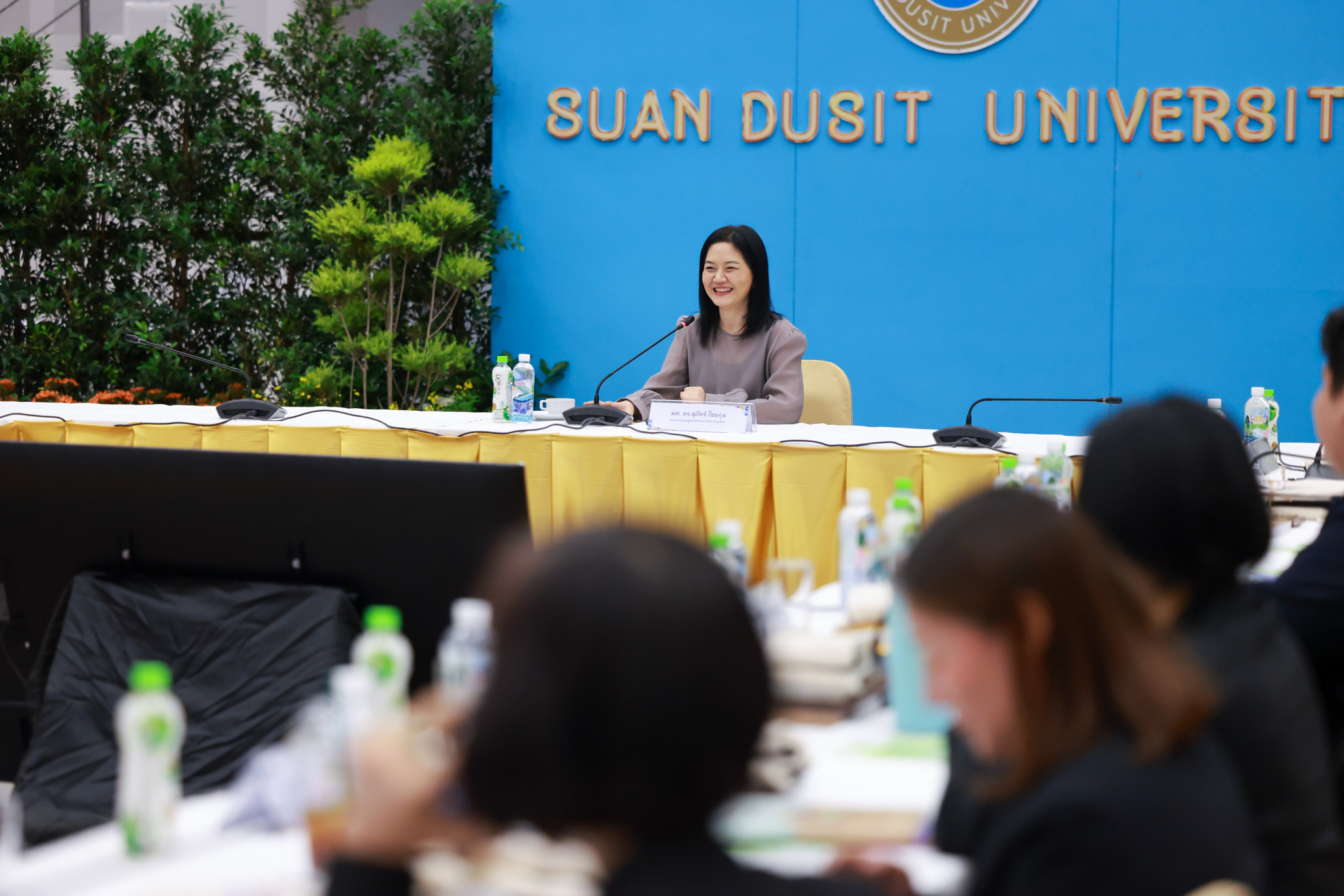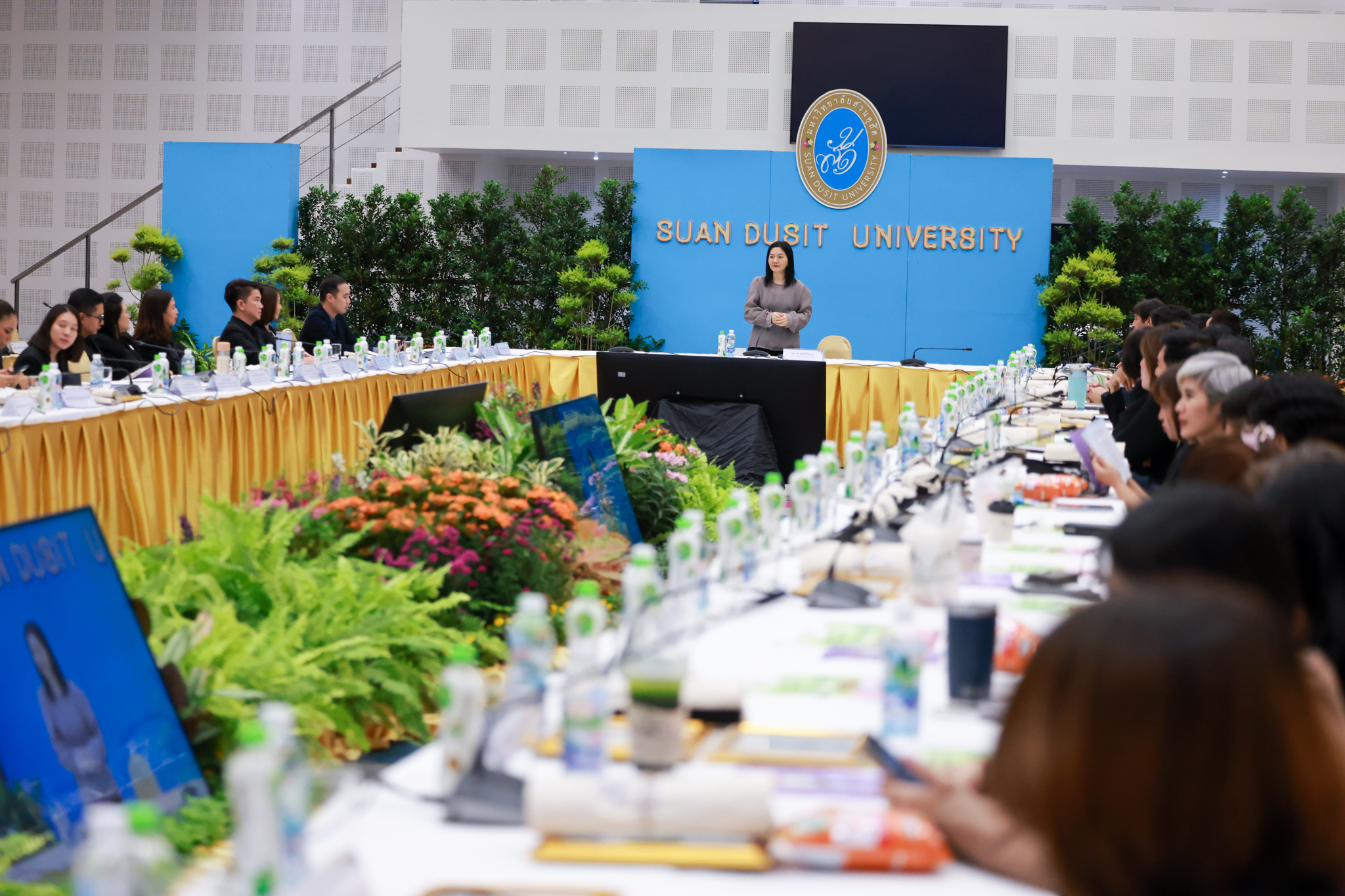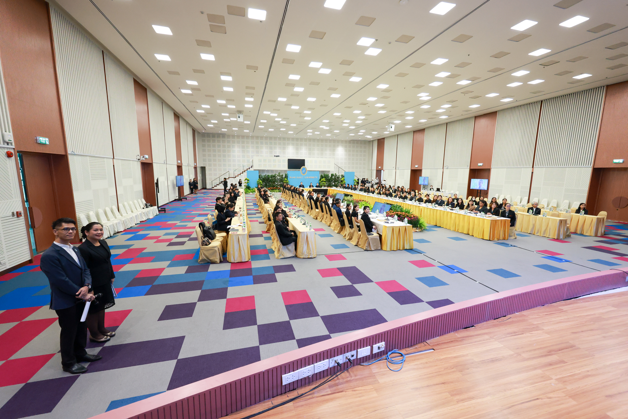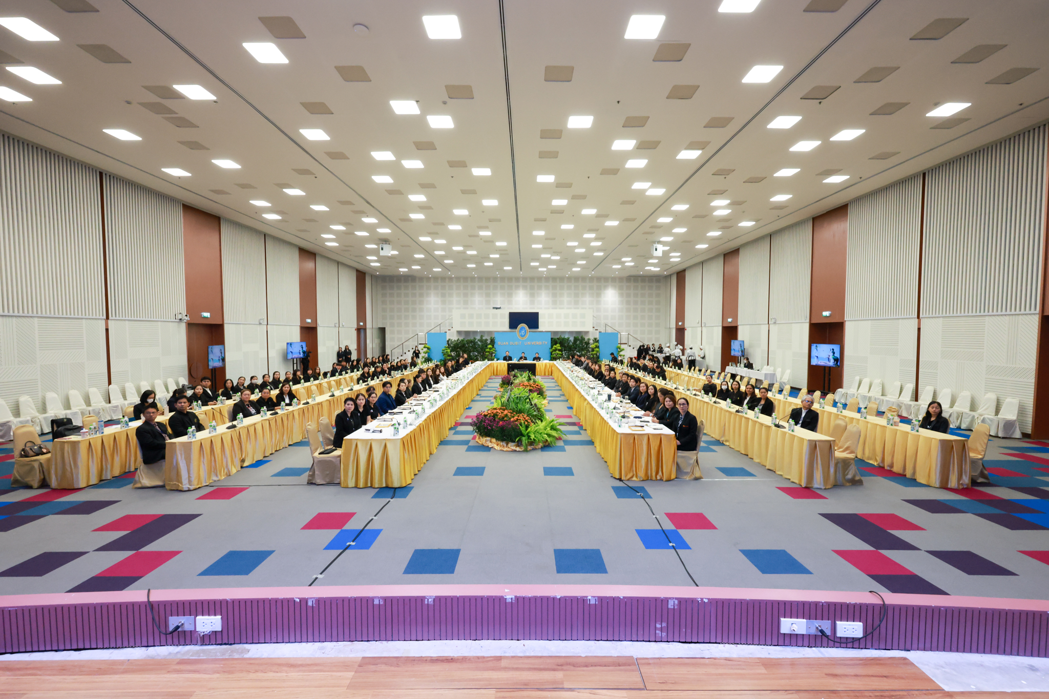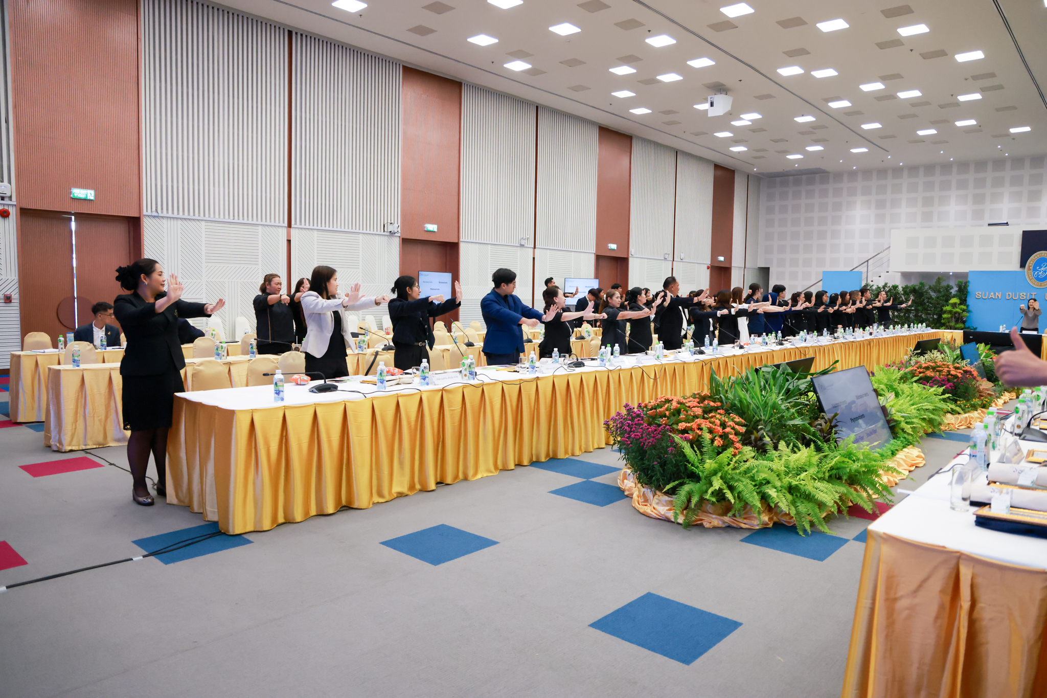 โรงเรียนการเรือน มหาวิทยาลัยสวนดุสิต จัดโครงการสานสัมพันธ์เครือข่ายความร่วมมือด้านวิชาการและการฝึกประสบการณ์วิชาชีพ โรงเรียนการเรือน ปี 2568 – Smart Eating: โภชนาการดีมีสุข โดยได้รับเกียรติจาก ผศ.ดร.พรชณิตว์ แก้วเนตร รองอธิการบดีฝ่ายวิชาการ และกิจการต่างประเทศ เป็นประธานในพิธีเปิดงาน ผศ.ว่าที่ ร.ต. ดร.ธนพัฒน์ แสงรุ่งเรือง คณบดีโรงเรียนการเรียน กล่าวรายงานวัตถุประสงค์การจัดโครงการและนำการประชุมแลกเปลี่ยนแนวทางในการประสานประโยชน์และพัฒนาความร่วมมือด้านวิชาการ และฝึกประสบการณ์วิชาชีพระหว่างโรงเรียนการเรียนและคู่ความร่วมมือ
