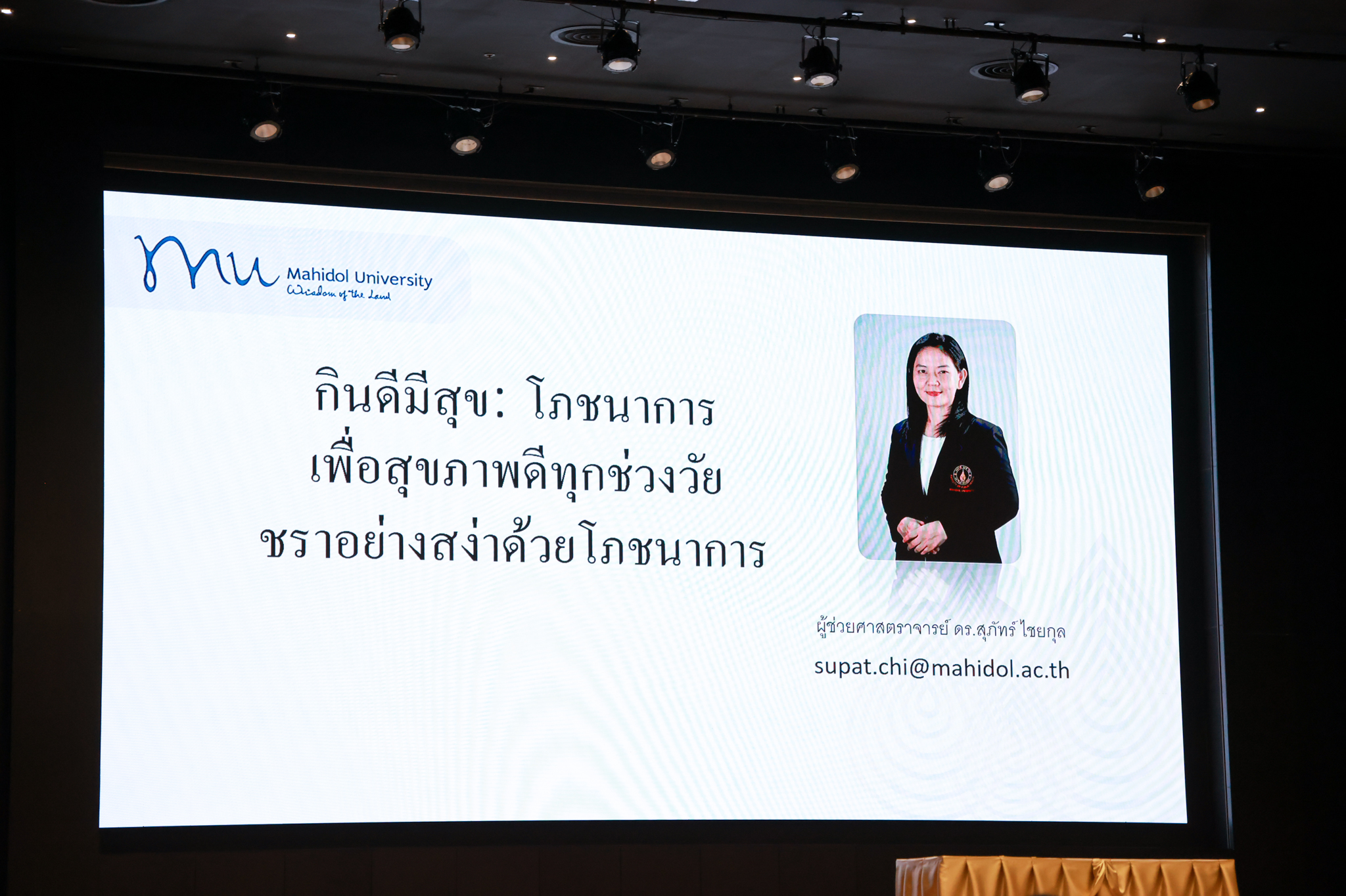 การบรรยายพิเศษ หัวข้อ “กินดีมีสุข: โภชนาการเพื่อสุขภาพดีทุกช่วงวัย” โดย ผศ. ดร.สุภัทร์ ไชยกุล คณะสาธารณสุขศาสตร์ มหาวิทยาลัยมหิดล