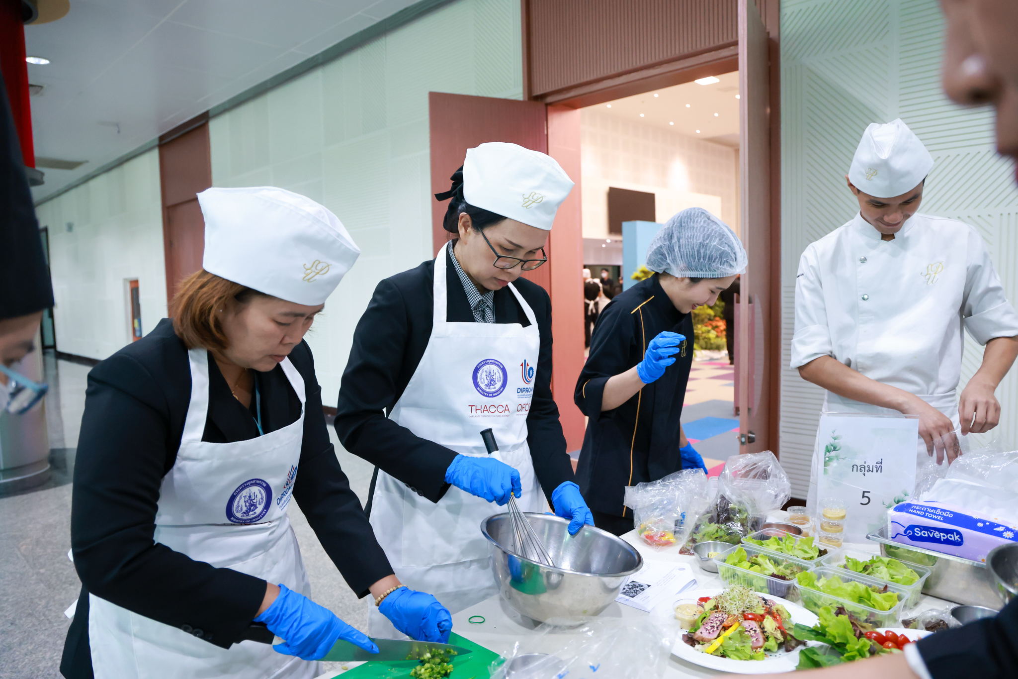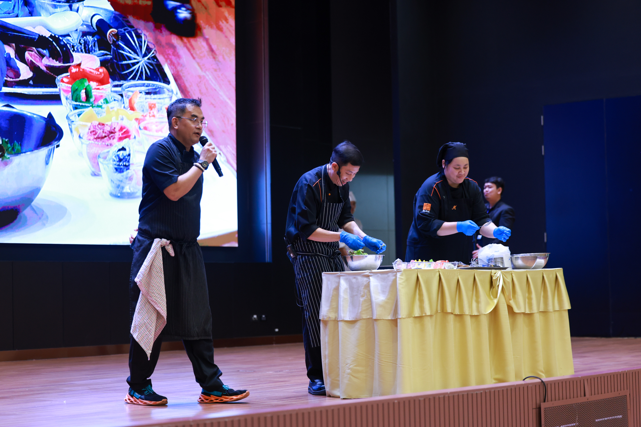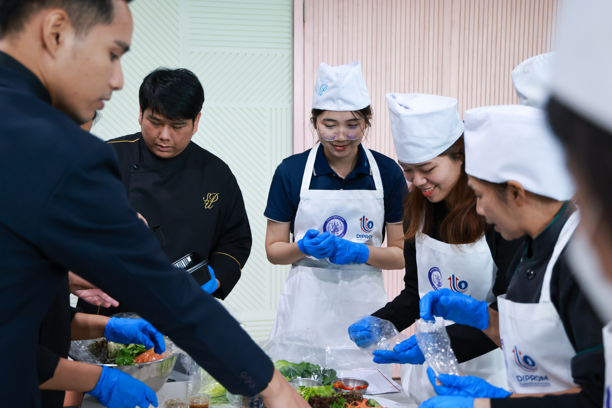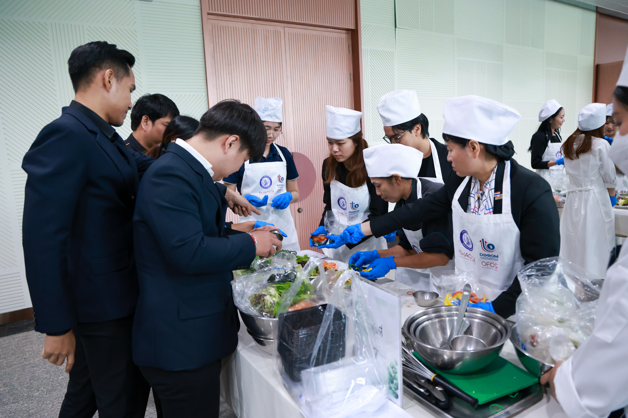 การอบรมเชิงปฏิบัติการอาหารแต่ละช่วงวัย จำนวน 3 รายการ ประกอบด้วย วัยรุ่น (ช่วงอายุ 12-19 ปี) สลัดเส้นโซบะบักวีดกับปลาแซลมอน น้ำสลัดครีมงาญี่ปุ่น วัยทำงาน (ช่วงอายุ 20-60 ปี) สลัดปลาทูน่าอาบูริ น้ำสลัดมิโซะมัสตาร์ดวัยผู้สูงอายุ (ช่วงอายุ 60 ปีขึ้นไป) สลัดเต้าหู้คินุญี่ปุ่น น้ำสลัดงาคั่วญี่ปุ่น โดย อ.จารึก ศรีอรุณ อ.ทัศเทพ อังกุราภินันท์ และ คุณธีรวรรณ ศรีทอง ศูนย์ฝึกปฏิบัติการอาหารนานาชาติ โรงเรียนการเรือน ในช่วงท้ายบรรยายสรุปการ Workshop ด้านโภชนาการ โดย รศ.ดร.ฐิตา ฟูเผ่า และ อาจารย์สุนิทรา ชัยภัย