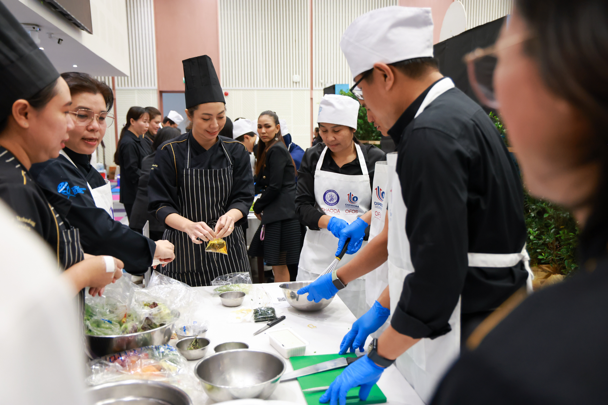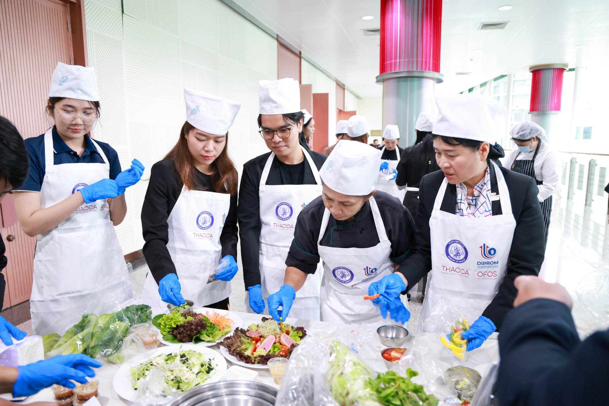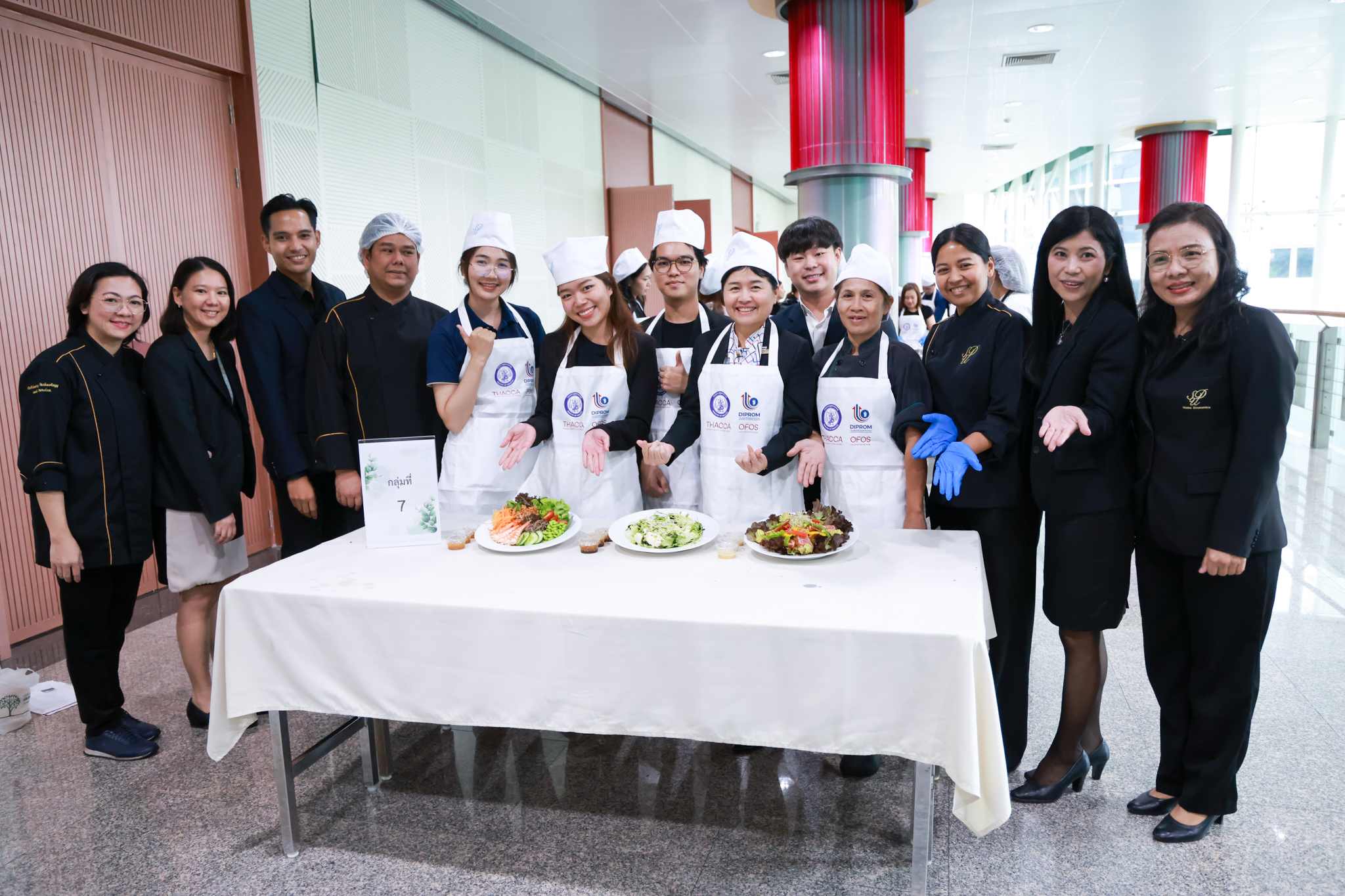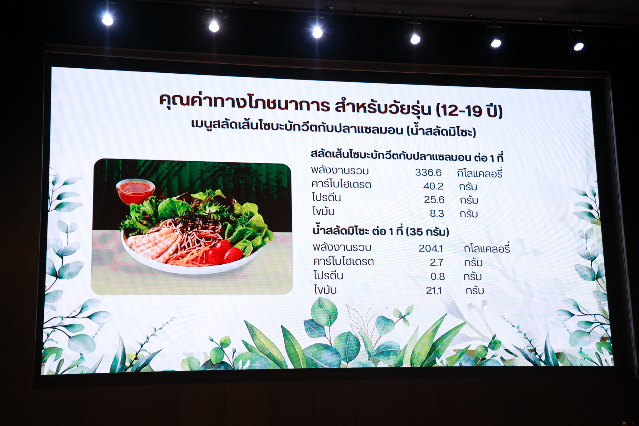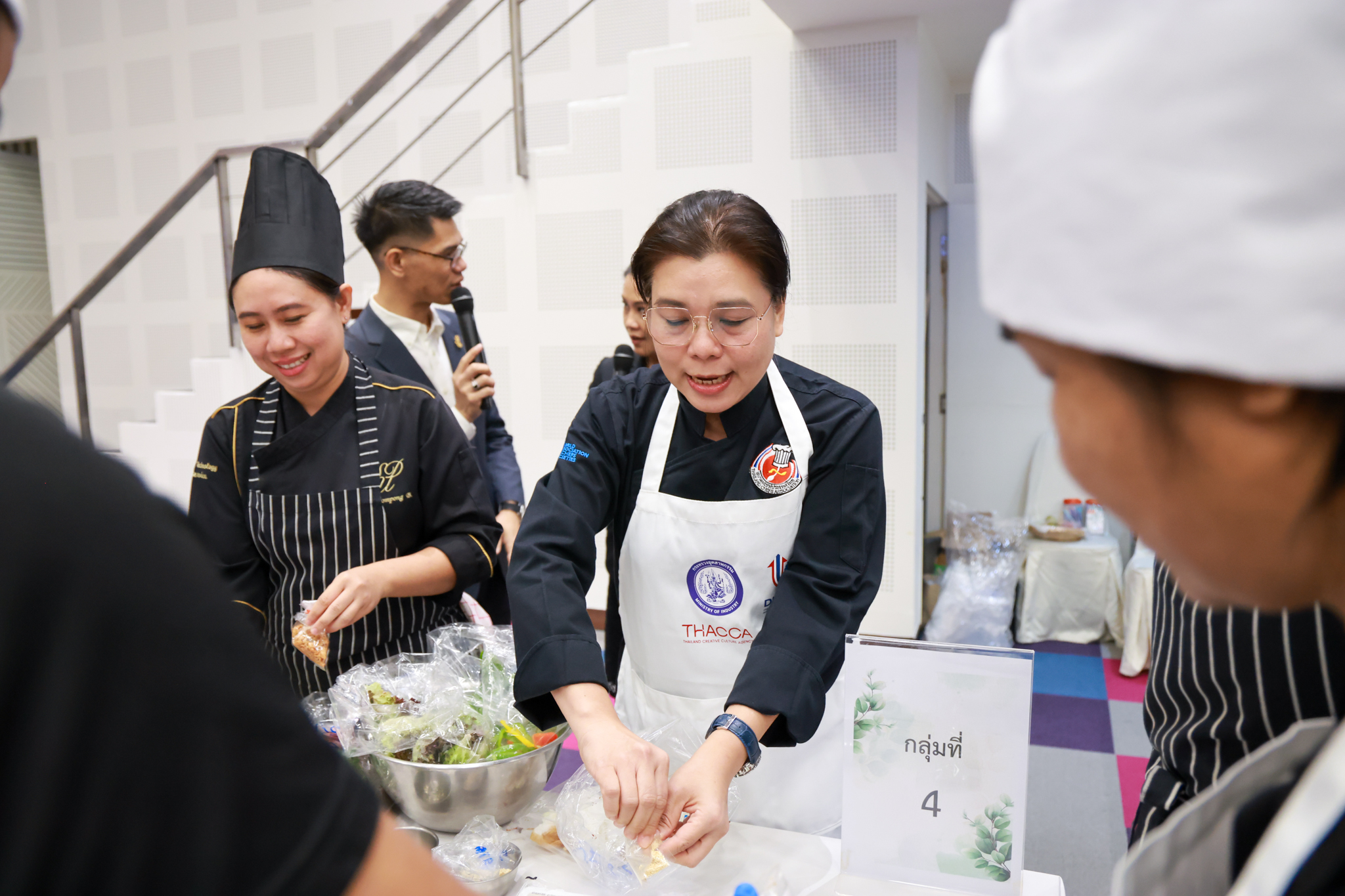 การอบรมเชิงปฏิบัติการอาหารแต่ละช่วงวัย จำนวน 3 รายการ ประกอบด้วย วัยรุ่น (ช่วงอายุ 12-19 ปี) สลัดเส้นโซบะบักวีดกับปลาแซลมอน น้ำสลัดครีมงาญี่ปุ่น วัยทำงาน (ช่วงอายุ 20-60 ปี) สลัดปลาทูน่าอาบูริ น้ำสลัดมิโซะมัสตาร์ดวัยผู้สูงอายุ (ช่วงอายุ 60 ปีขึ้นไป) สลัดเต้าหู้คินุญี่ปุ่น น้ำสลัดงาคั่วญี่ปุ่น โดย อ.จารึก ศรีอรุณ อ.ทัศเทพ อังกุราภินันท์ และ คุณธีรวรรณ ศรีทอง ศูนย์ฝึกปฏิบัติการอาหารนานาชาติ โรงเรียนการเรือน ในช่วงท้ายบรรยายสรุปการ Workshop ด้านโภชนาการ โดย รศ.ดร.ฐิตา ฟูเผ่า และ อาจารย์สุนิทรา ชัยภัย