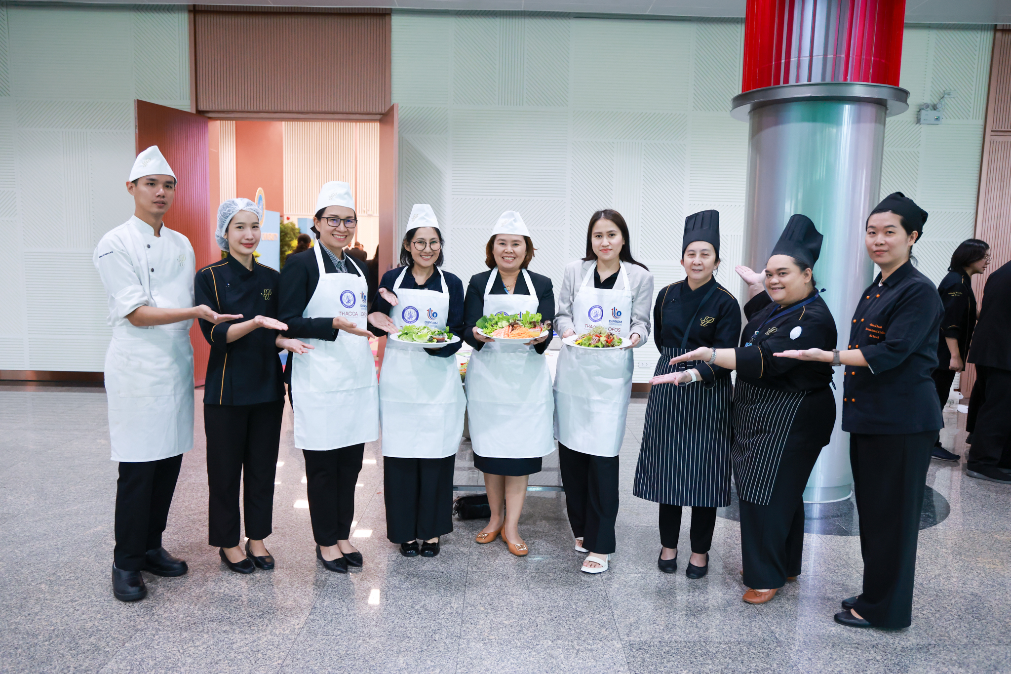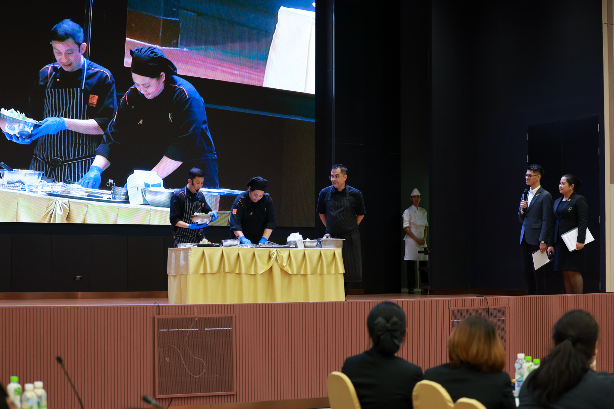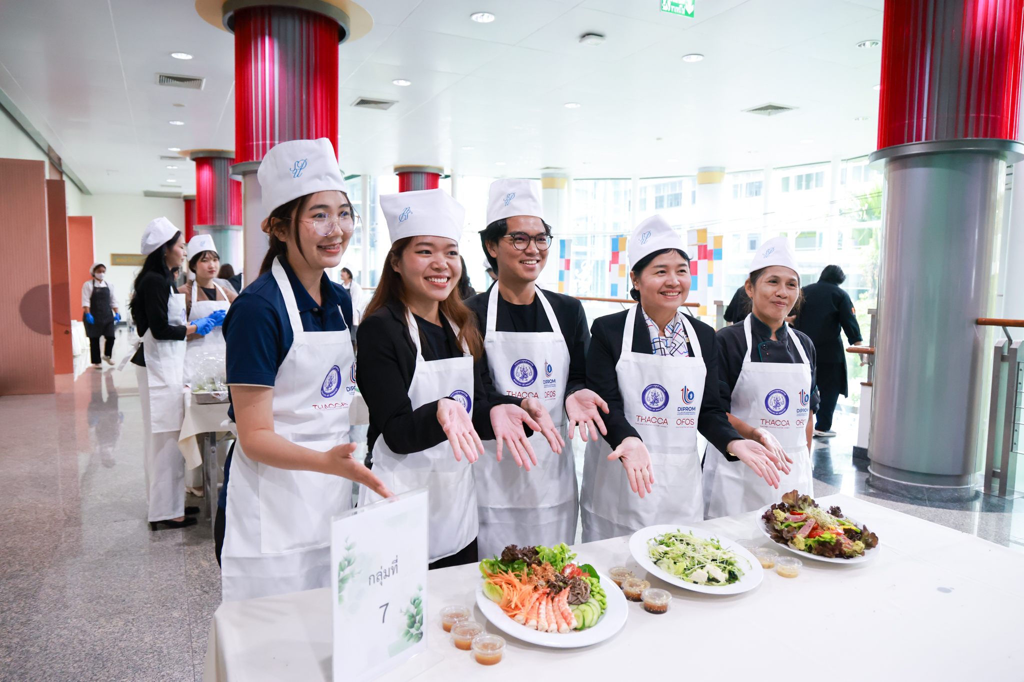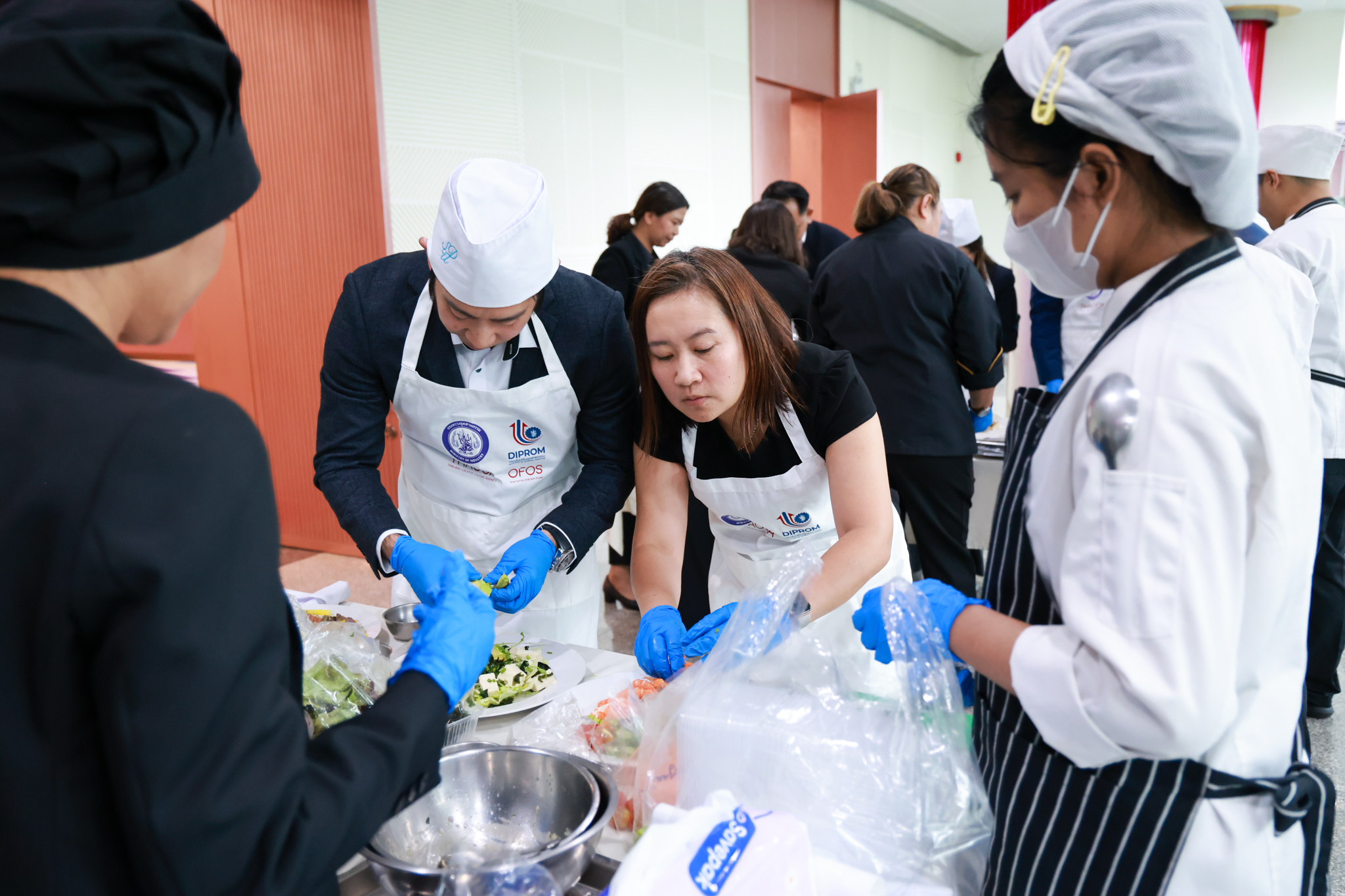 การอบรมเชิงปฏิบัติการอาหารแต่ละช่วงวัย จำนวน 3 รายการ ประกอบด้วย วัยรุ่น (ช่วงอายุ 12-19 ปี) สลัดเส้นโซบะบักวีดกับปลาแซลมอน น้ำสลัดครีมงาญี่ปุ่น วัยทำงาน (ช่วงอายุ 20-60 ปี) สลัดปลาทูน่าอาบูริ น้ำสลัดมิโซะมัสตาร์ดวัยผู้สูงอายุ (ช่วงอายุ 60 ปีขึ้นไป) สลัดเต้าหู้คินุญี่ปุ่น น้ำสลัดงาคั่วญี่ปุ่น โดย อ.จารึก ศรีอรุณ อ.ทัศเทพ อังกุราภินันท์ และ คุณธีรวรรณ ศรีทอง ศูนย์ฝึกปฏิบัติการอาหารนานาชาติ โรงเรียนการเรือน ในช่วงท้ายบรรยายสรุปการ Workshop ด้านโภชนาการ โดย รศ.ดร.ฐิตา ฟูเผ่า และ อาจารย์สุนิทรา ชัยภัย