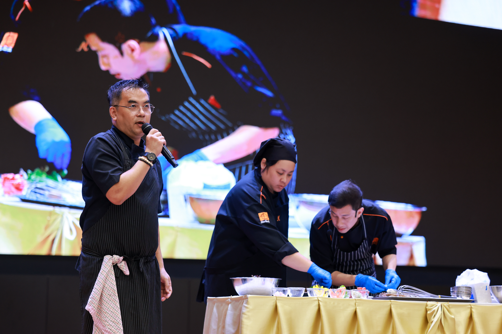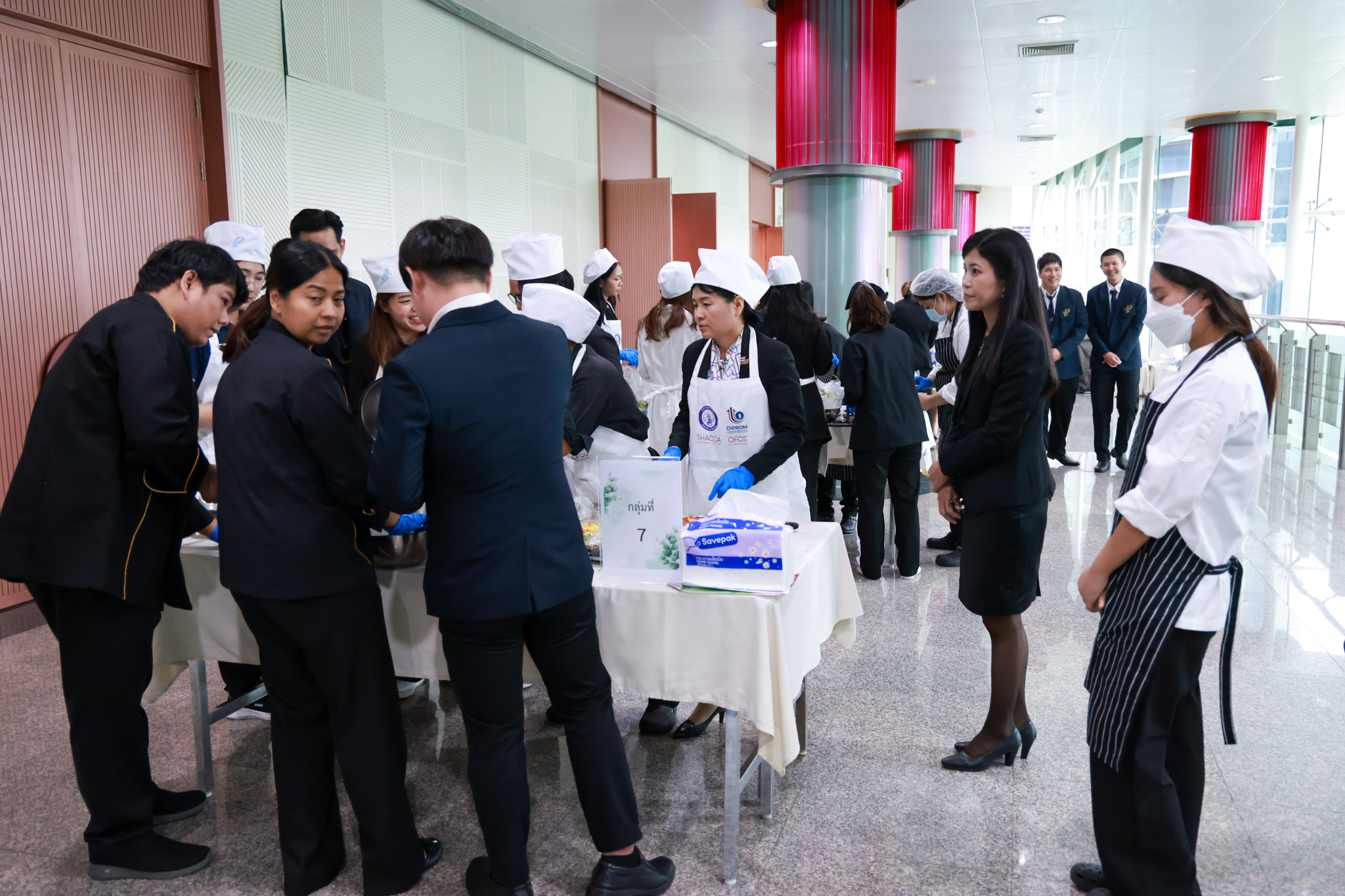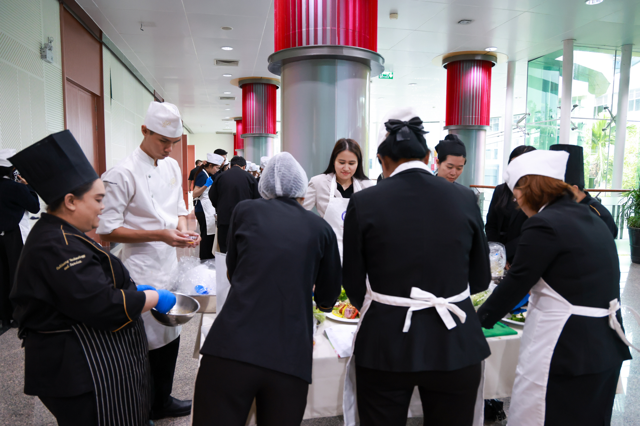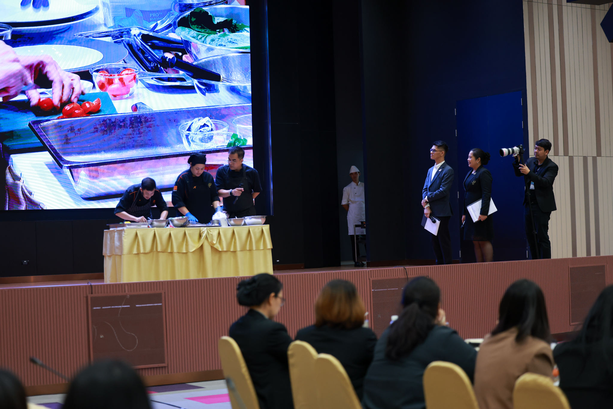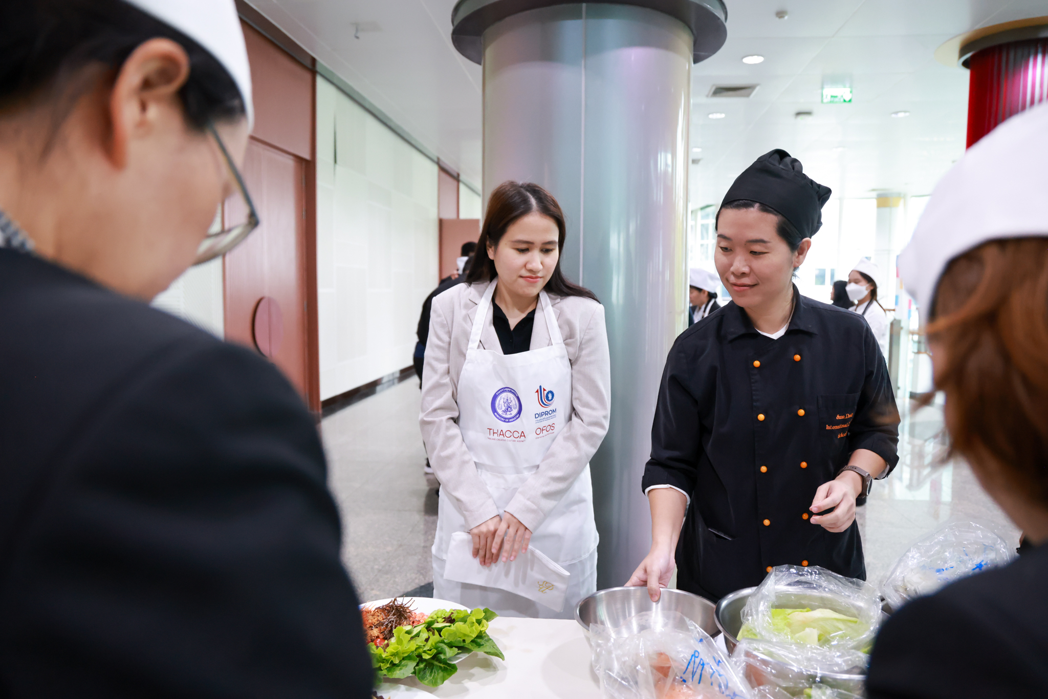 การอบรมเชิงปฏิบัติการอาหารแต่ละช่วงวัย จำนวน 3 รายการ ประกอบด้วย วัยรุ่น (ช่วงอายุ 12-19 ปี) สลัดเส้นโซบะบักวีดกับปลาแซลมอน น้ำสลัดครีมงาญี่ปุ่น วัยทำงาน (ช่วงอายุ 20-60 ปี) สลัดปลาทูน่าอาบูริ น้ำสลัดมิโซะมัสตาร์ดวัยผู้สูงอายุ (ช่วงอายุ 60 ปีขึ้นไป) สลัดเต้าหู้คินุญี่ปุ่น น้ำสลัดงาคั่วญี่ปุ่น โดย อ.จารึก ศรีอรุณ อ.ทัศเทพ อังกุราภินันท์ และ คุณธีรวรรณ ศรีทอง ศูนย์ฝึกปฏิบัติการอาหารนานาชาติ โรงเรียนการเรือน ในช่วงท้ายบรรยายสรุปการ Workshop ด้านโภชนาการ โดย รศ.ดร.ฐิตา ฟูเผ่า และ อาจารย์สุนิทรา ชัยภัย