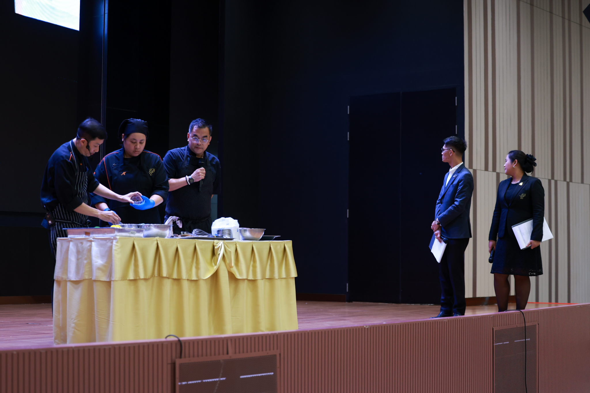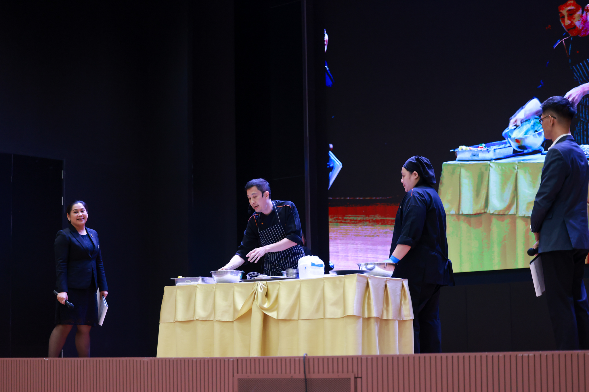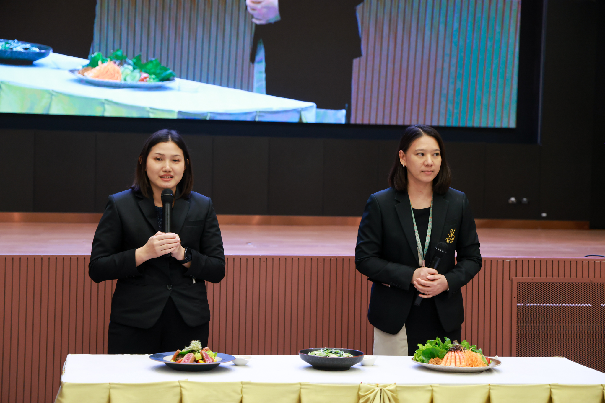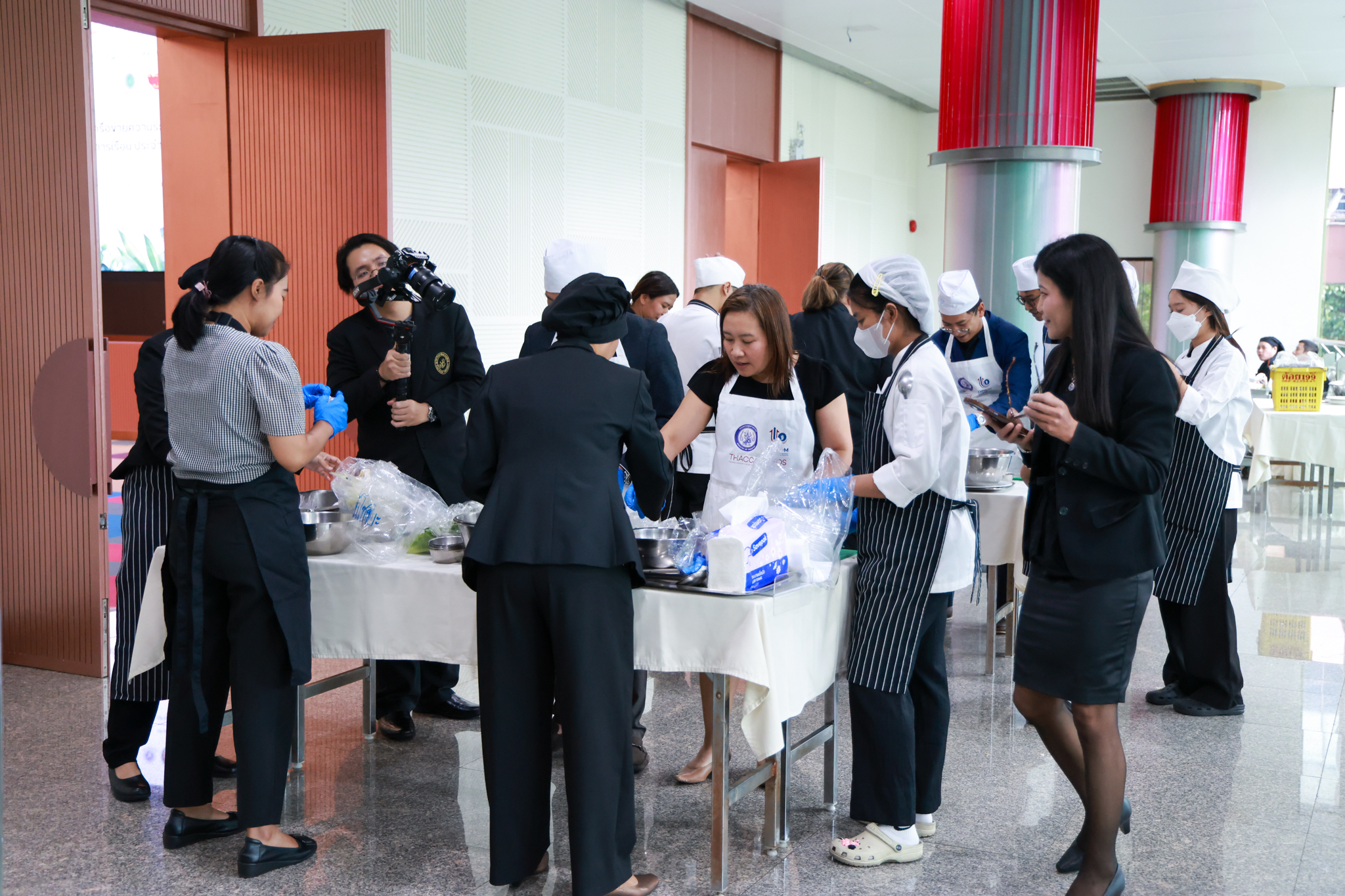 การอบรมเชิงปฏิบัติการอาหารแต่ละช่วงวัย จำนวน 3 รายการ ประกอบด้วย วัยรุ่น (ช่วงอายุ 12-19 ปี) สลัดเส้นโซบะบักวีดกับปลาแซลมอน น้ำสลัดครีมงาญี่ปุ่น วัยทำงาน (ช่วงอายุ 20-60 ปี) สลัดปลาทูน่าอาบูริ น้ำสลัดมิโซะมัสตาร์ดวัยผู้สูงอายุ (ช่วงอายุ 60 ปีขึ้นไป) สลัดเต้าหู้คินุญี่ปุ่น น้ำสลัดงาคั่วญี่ปุ่น โดย อ.จารึก ศรีอรุณ อ.ทัศเทพ อังกุราภินันท์ และ คุณธีรวรรณ ศรีทอง ศูนย์ฝึกปฏิบัติการอาหารนานาชาติ โรงเรียนการเรือน ในช่วงท้ายบรรยายสรุปการ Workshop ด้านโภชนาการ โดย รศ.ดร.ฐิตา ฟูเผ่า และ อาจารย์สุนิทรา ชัยภัย
