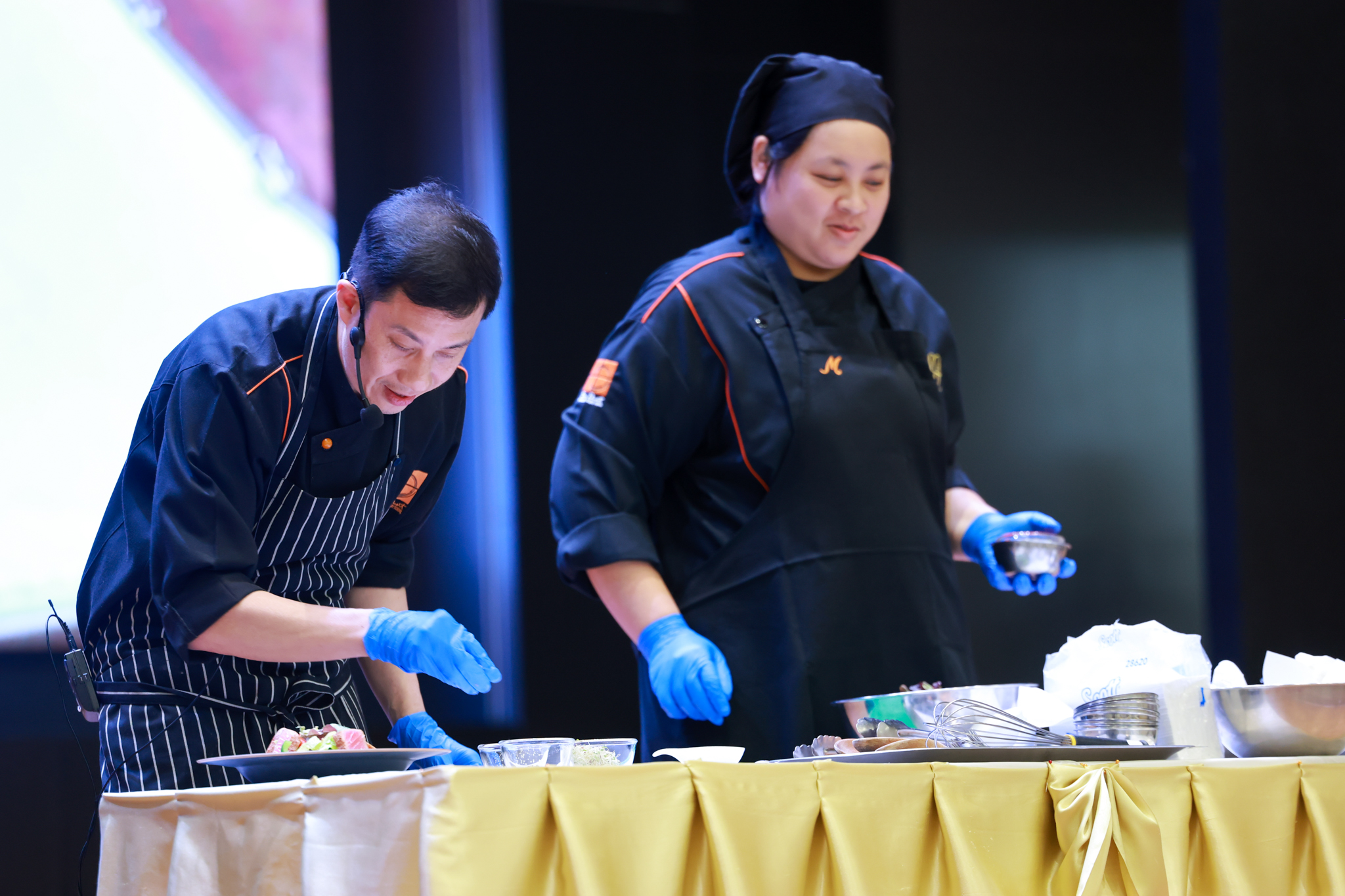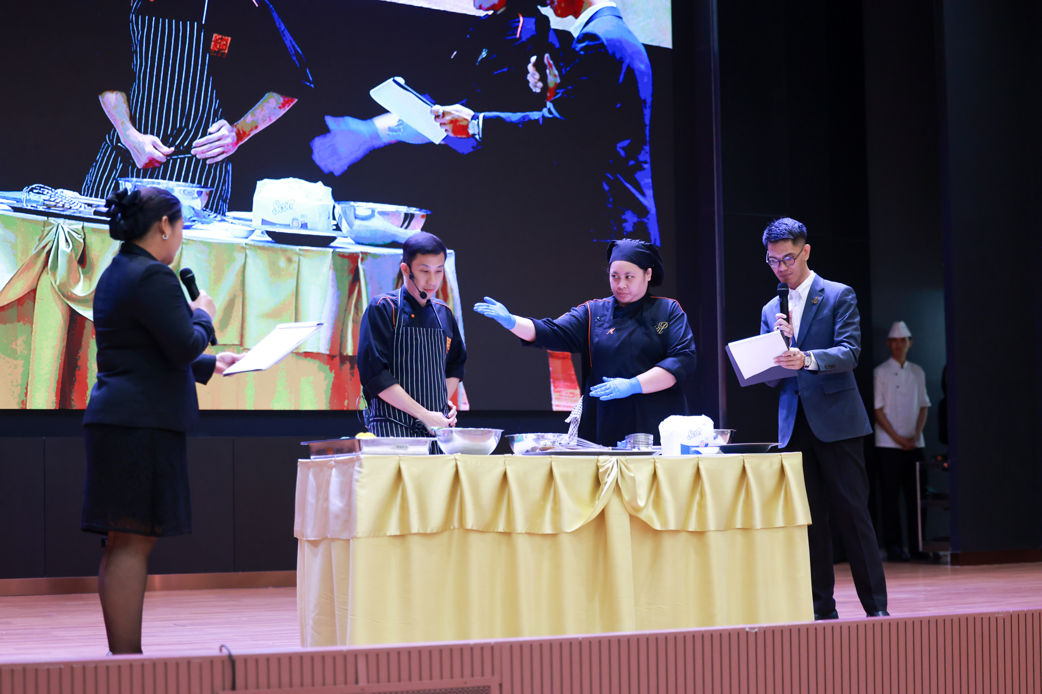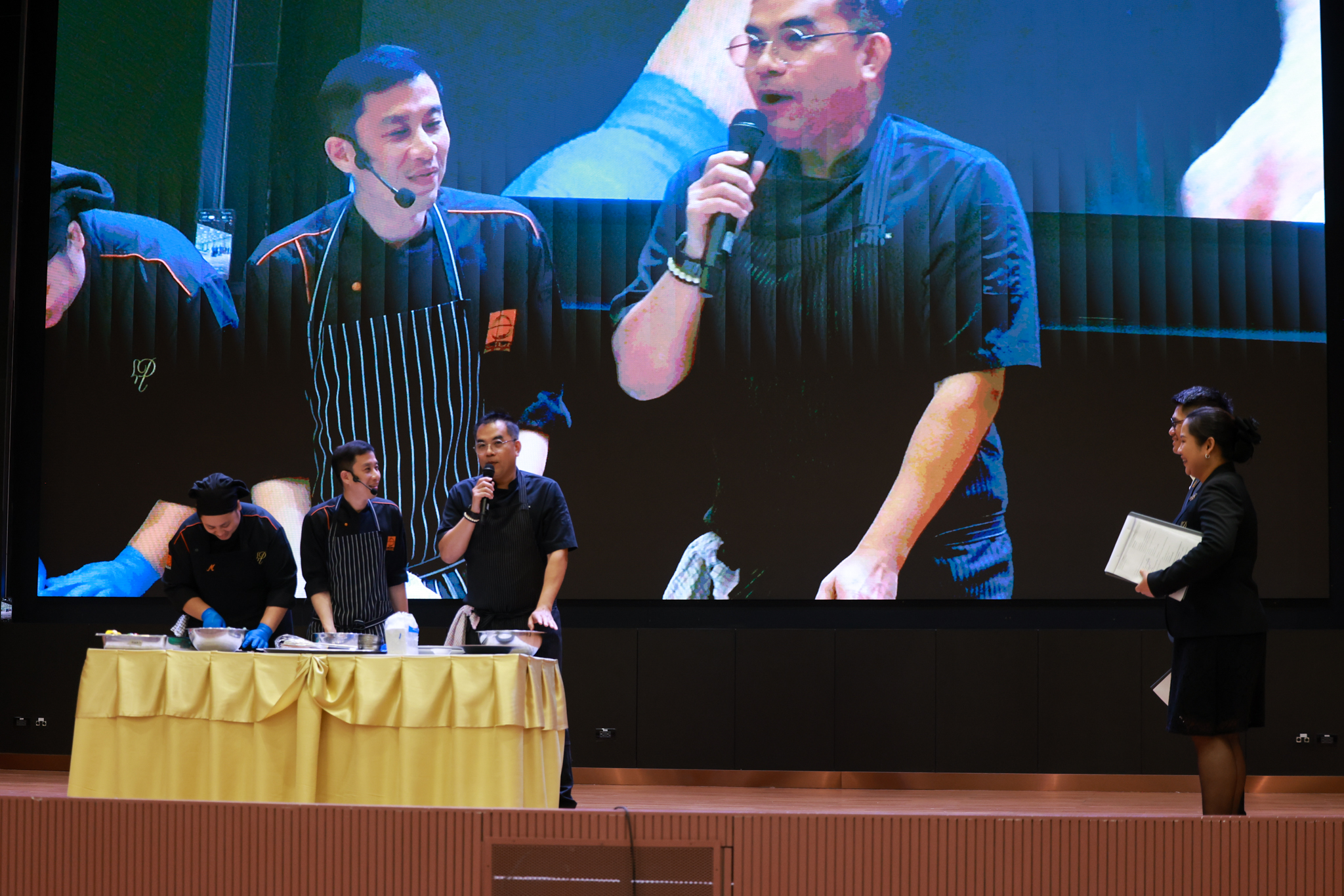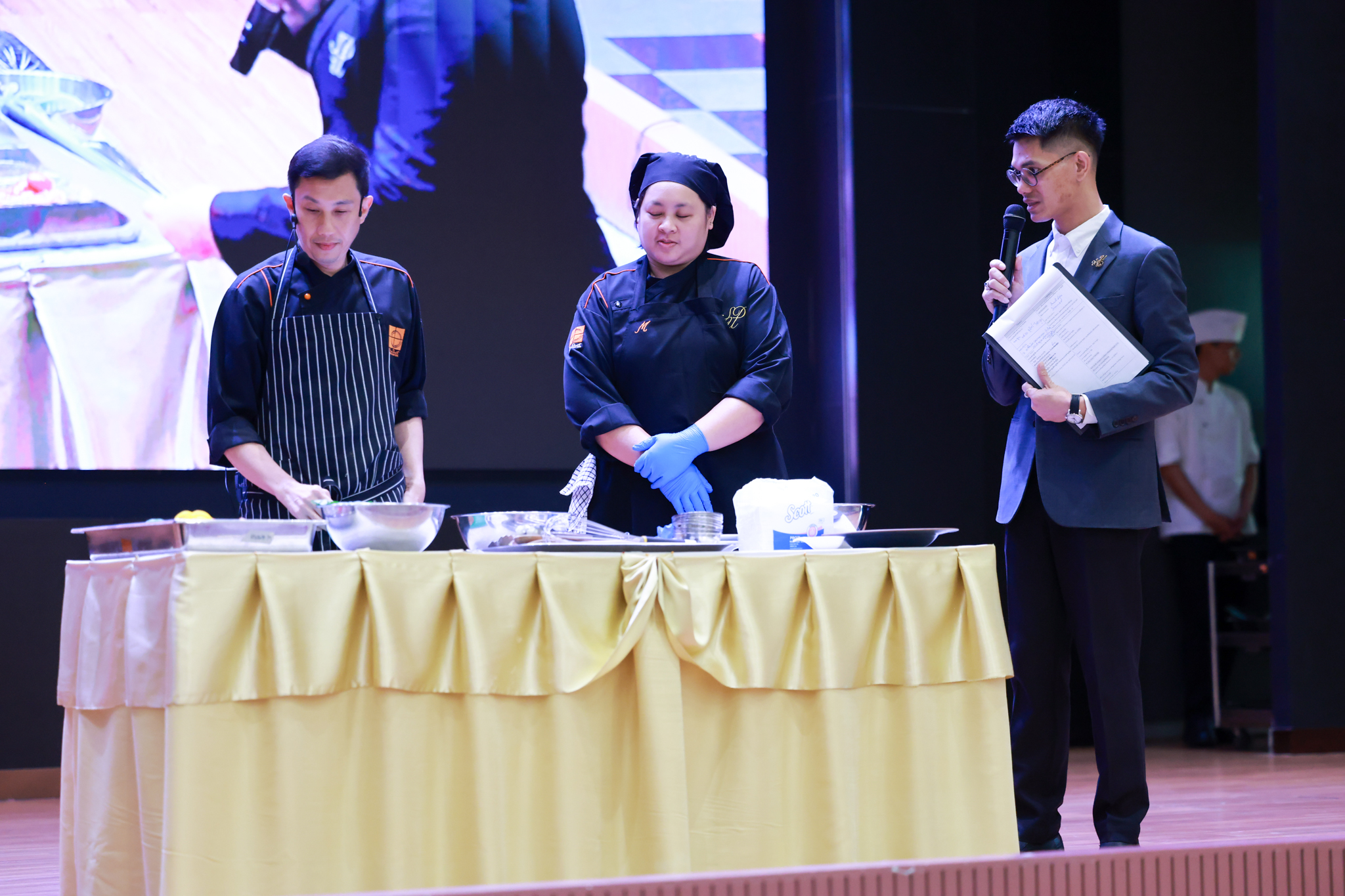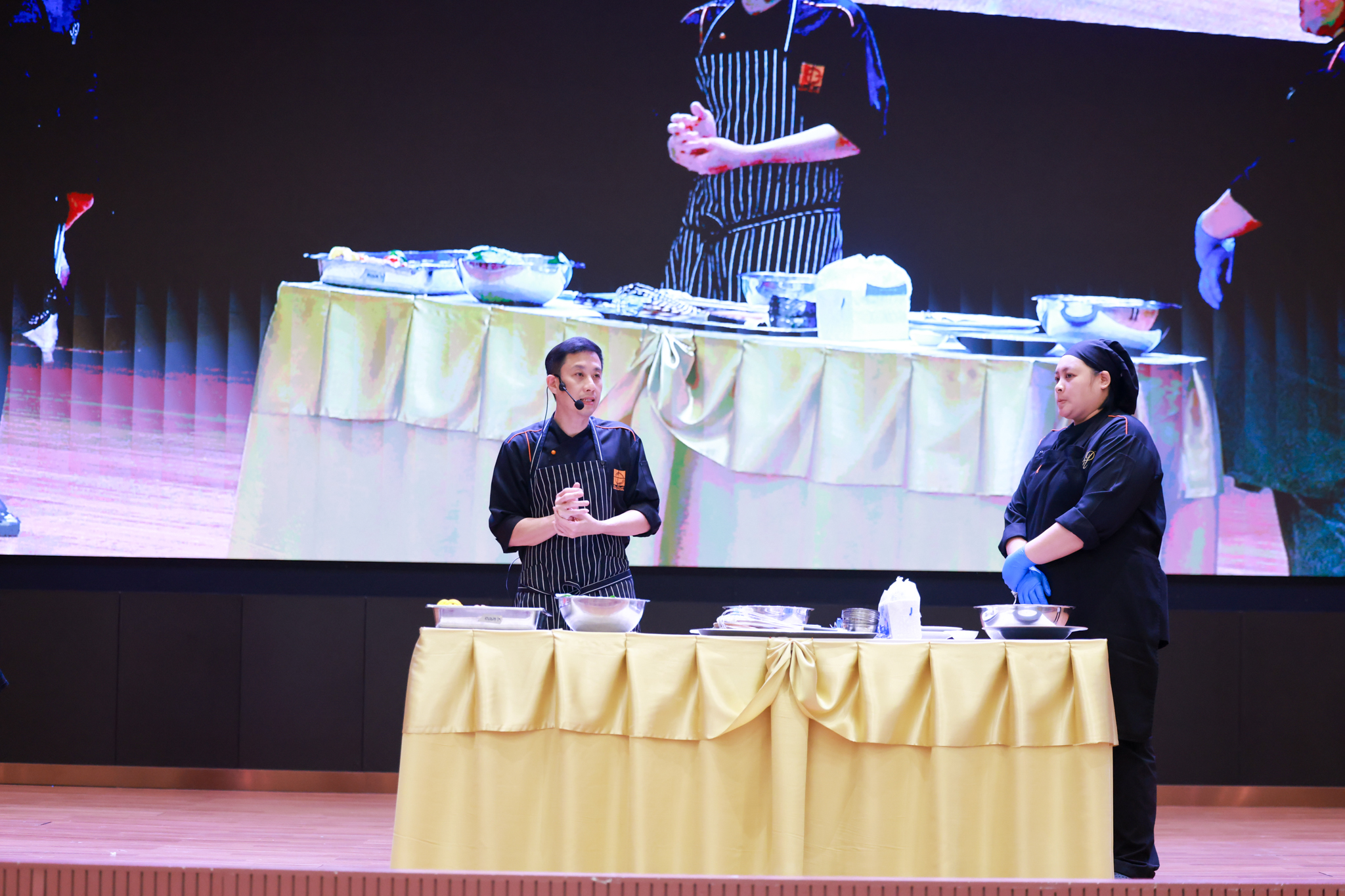 การอบรมเชิงปฏิบัติการอาหารแต่ละช่วงวัย จำนวน 3 รายการ ประกอบด้วย วัยรุ่น (ช่วงอายุ 12-19 ปี) สลัดเส้นโซบะบักวีดกับปลาแซลมอน น้ำสลัดครีมงาญี่ปุ่น วัยทำงาน (ช่วงอายุ 20-60 ปี) สลัดปลาทูน่าอาบูริ น้ำสลัดมิโซะมัสตาร์ดวัยผู้สูงอายุ (ช่วงอายุ 60 ปีขึ้นไป) สลัดเต้าหู้คินุญี่ปุ่น น้ำสลัดงาคั่วญี่ปุ่น โดย อ.จารึก ศรีอรุณ อ.ทัศเทพ อังกุราภินันท์ และ คุณธีรวรรณ ศรีทอง ศูนย์ฝึกปฏิบัติการอาหารนานาชาติ โรงเรียนการเรือน ในช่วงท้ายบรรยายสรุปการ Workshop ด้านโภชนาการ โดย รศ.ดร.ฐิตา ฟูเผ่า และ อาจารย์สุนิทรา ชัยภัย