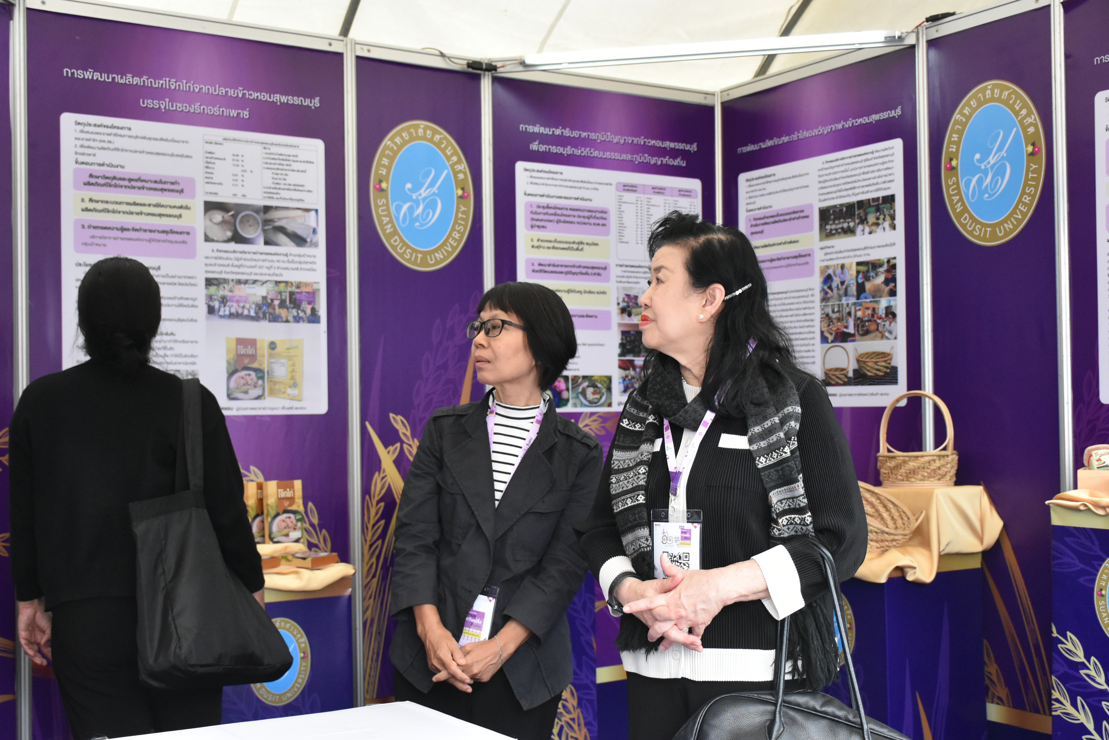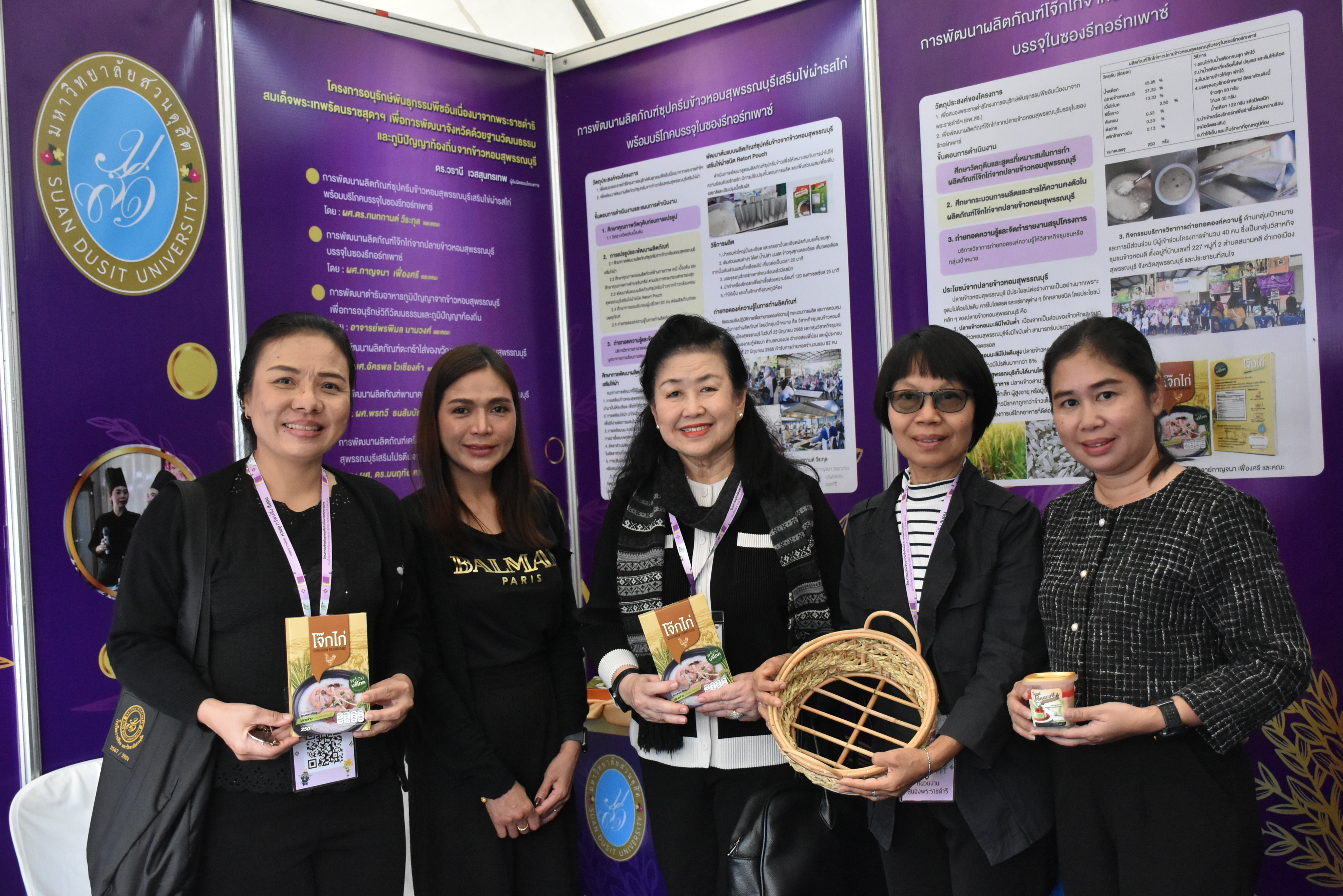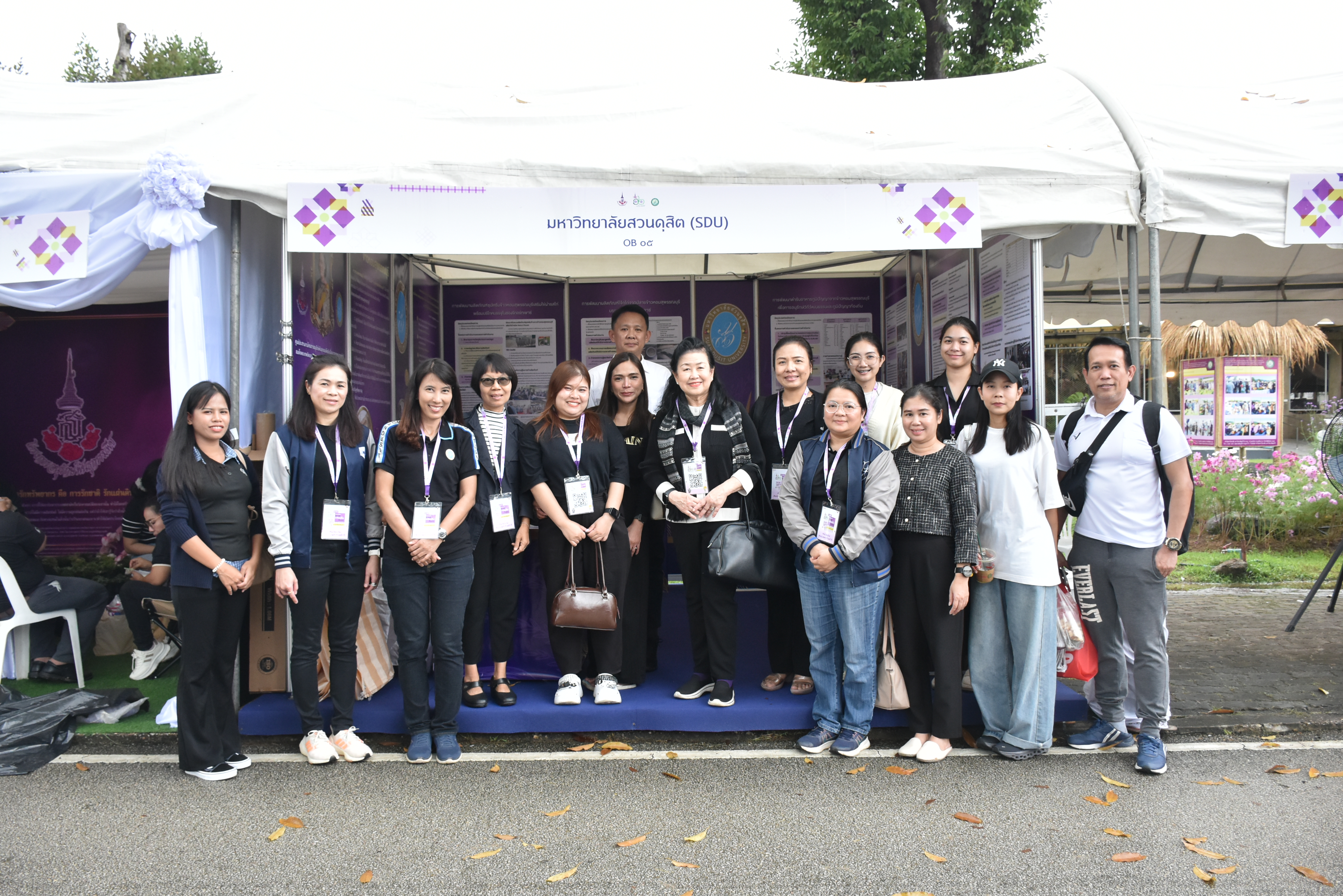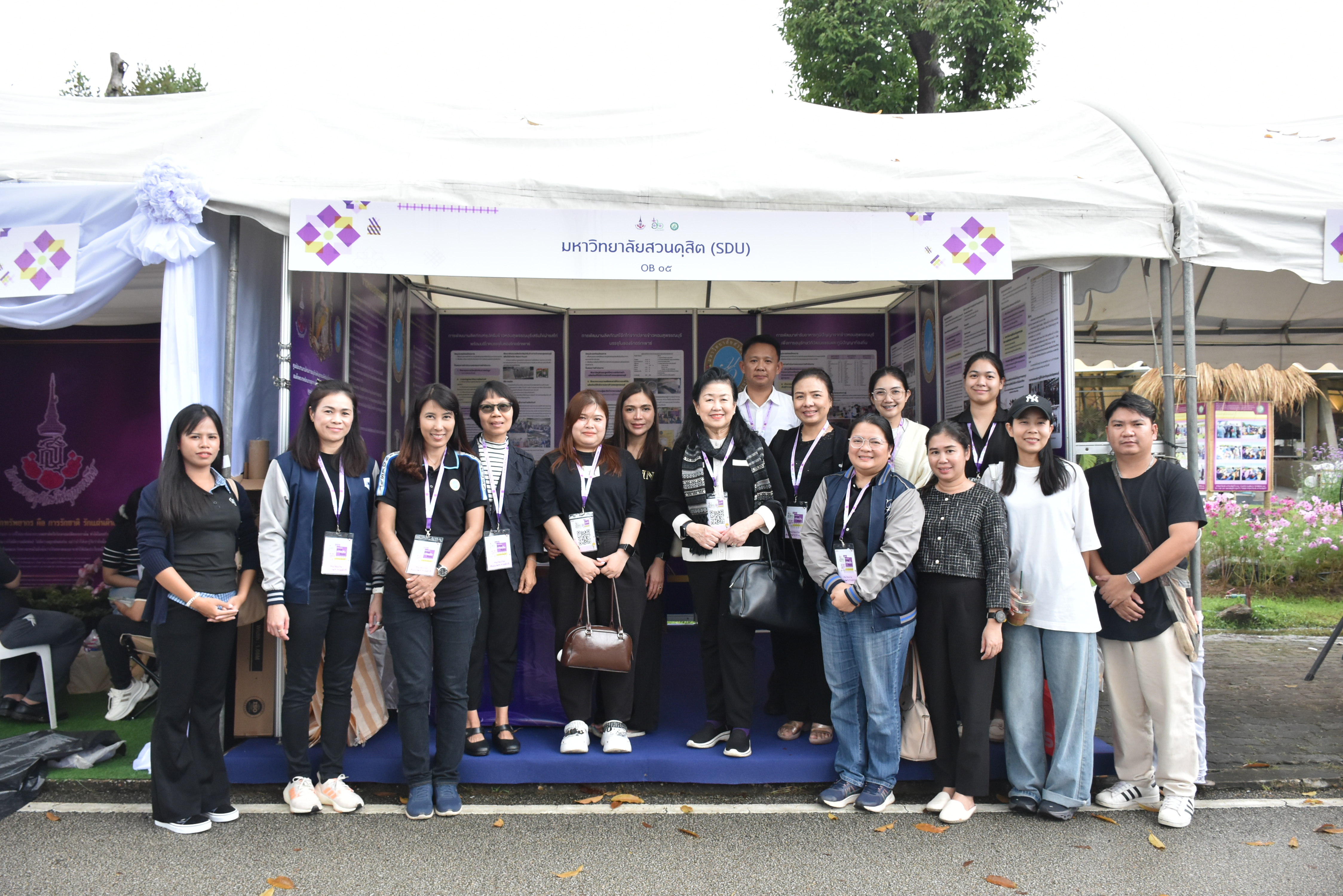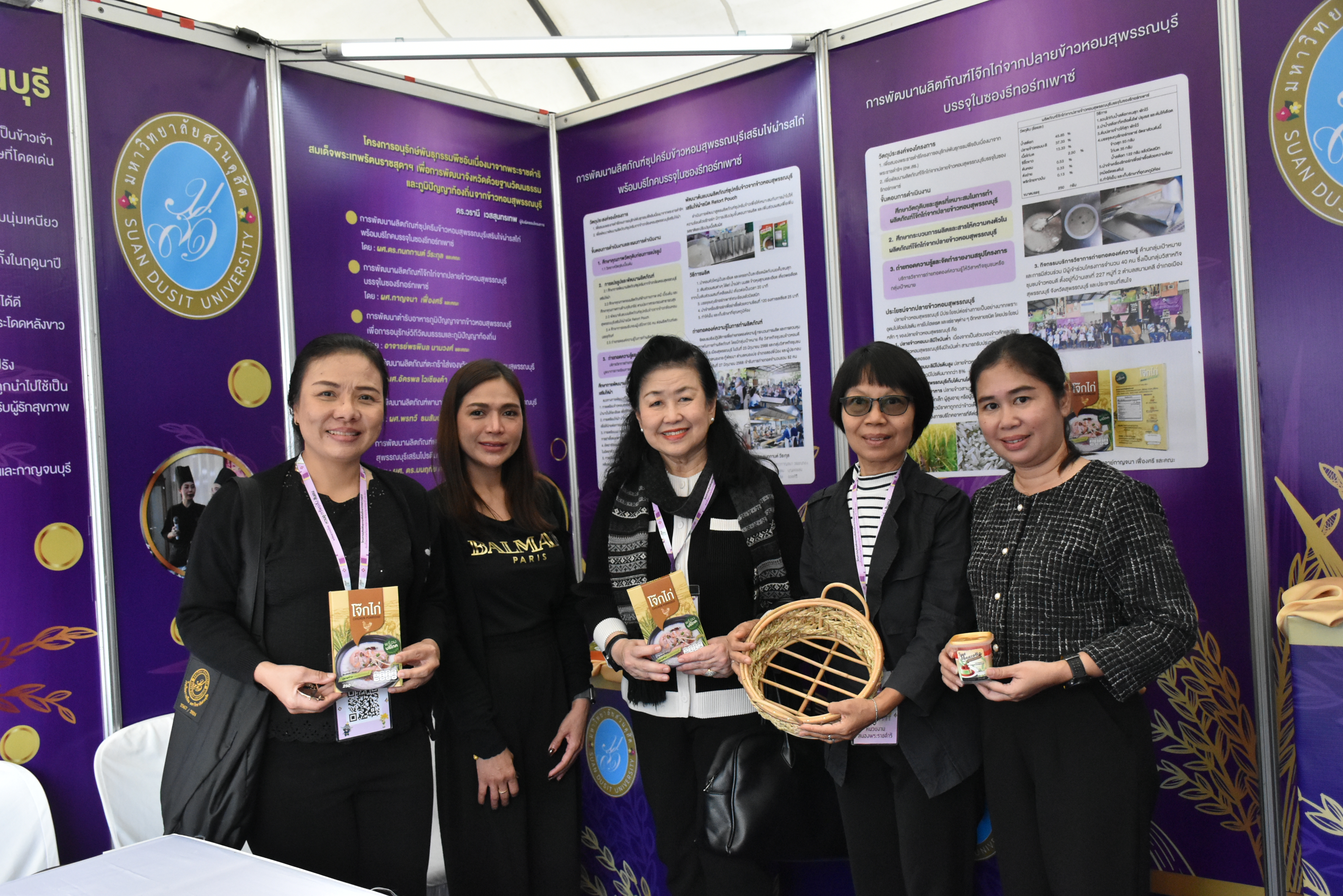 สมเด็จพระกนิษฐาธิราชเจ้า กรมสมเด็จพระเทพรัตนราชสุดา ฯ สยามบรมราชกุมารี ทรงเปิดการประชุมวิชาการ และนิทรรศการ ครั้งที่ 12 “ทรัพยากรไทย : หวนดูทรัพย์สิ่งสินตน” ซึ่งมหาวิทยาลัยสวนดุสิต วิทยาเขตสุพรรณบุรี นำโดย ดร.วรานี เวสสุนทรเทพ รองอธิการบดีฝ่ายวิทยาเขตสุพรรณบุรี เข้าเฝ้ารับเสด็จ และทูลเกล้าฯ ถวายของที่ระลึก ในวันอังคารที่ 4 พฤศจิกายน 2568 และร่วมกับศูนย์ประสานงานโครงการอนุรักษ์พันธุกรรมพืชอันเนื่องมาจากพระราชดำริฯ สมเด็จพระเทพรัตนราชสุดาฯ สยามบรมราชกุมารี มหาวิทยาลัยสวนดุสิต (อพ.สธ.-มสด.) ร่วมจัดนิทรรศการในงาน “การประชุมวิชาการ และนิทรรศการ ครั้งที่ 12 ทรัพยากรไทย: หวนดูทรัพย์สิ่งสินตน ” โดยนำผลงานจากโครงการส่งเสริมการอนุรักษ์และใช้ประโยชน์พันธุกรรมพืชจากข้าวหอมสุพรรณบุรีของมหาวิทยาลัยสวนดุสิตไปจัดแสดง จำนวน 7 ผลงาน ประกอบด้วย