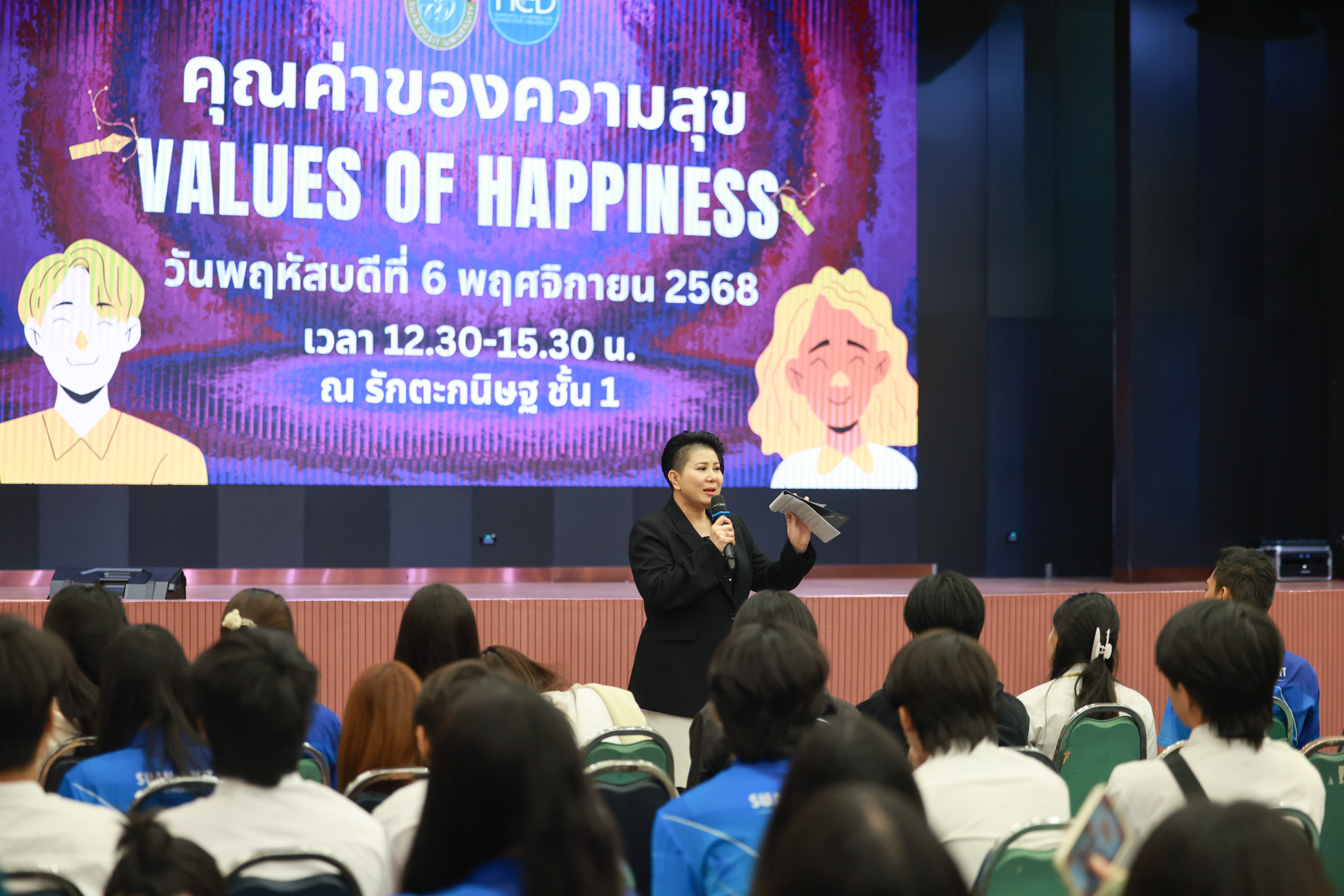 ศูนย์พัฒนาทุนมนุษย์ ร่วมกับ สำนักส่งเสริมวิชาการและงานทะเบียน จัดการเรียนการสอนเชิงประสบการณ์ รายวิชาคุณค่าของความสุข ครั้งที่ 1 โดยจัดกิจกรรมพบผู้จัดการฐานการเรียนรู้ และกิจกรรมใจฟู Mood ดี เติมพลังเรียนรู้ด้วยความสุข โดยได้รับเกียรติจาก ดร.ไชยวิทย์ แจ่มเที่ยงตรง เป็นวิทยากร ณ หอประชุมรักตะกนิษฐ มหาวิทยาลัยสวนดุสิต วันพฤหัสบดีที่ 6 พฤศจิกายน 2568