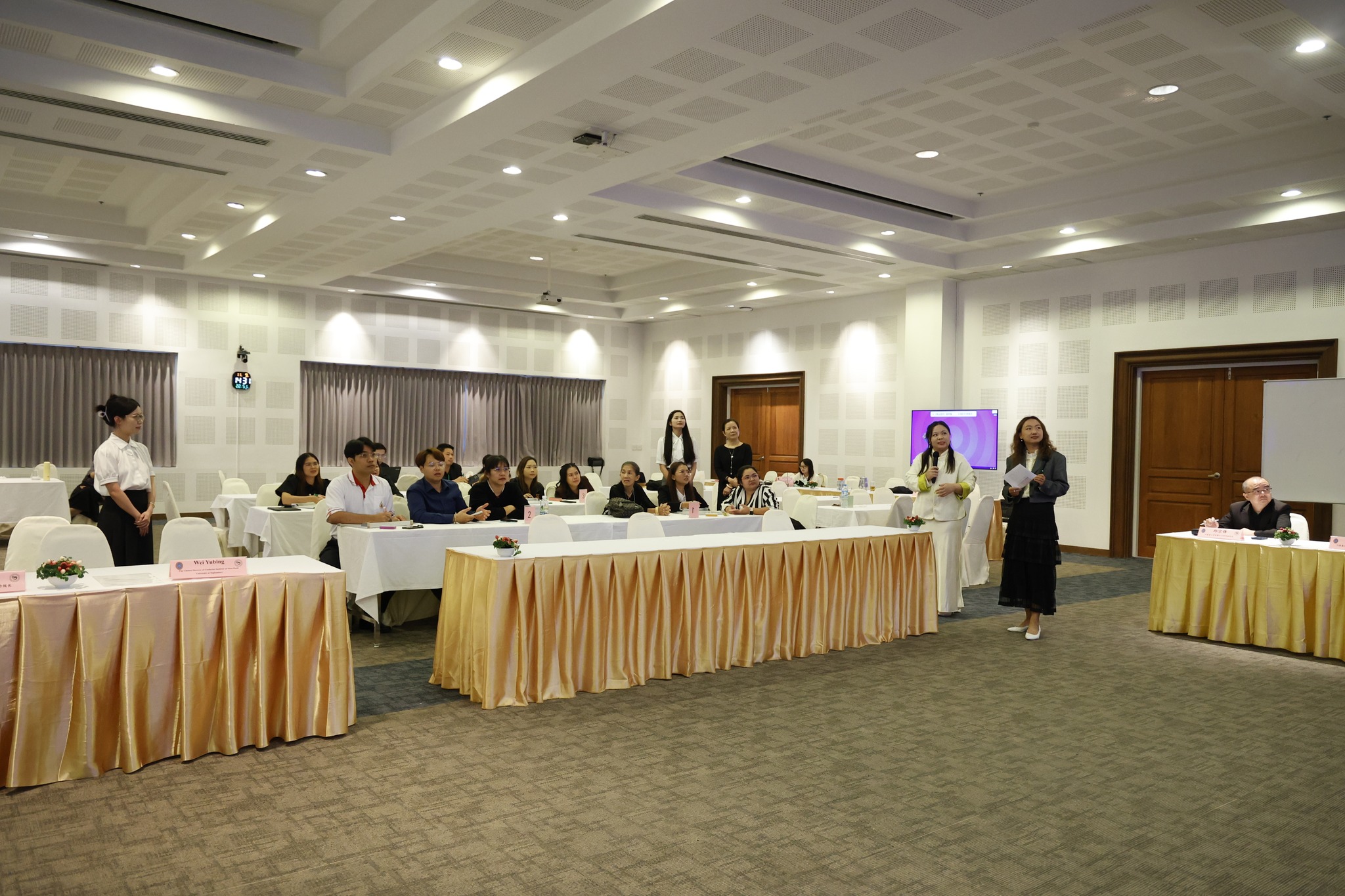 สถาบันขงจื่อ มหาวิทยาลัยสวนดุสิต สุพรรณบุรี จัดการอบรมครูสอนภาษาจีนชาวไทย ประจำปี 2568 โดยได้รับเกียรติจาก ดร.พันธรักษ์ ผูกพันธ์ ผู้อำนวยการสถาบันขงจื่อ มหาวิทยาลัยสวนดุสิต สุพรรณบุรี ฝ่ายไทย และ Mrs.Wei Yubing ผู้อำนวยการสถาบันขงจื่อ มหาวิทยาลัยสวนดุสิต สุพรรณบุรี ฝ่ายจีน เป็นประธานกล่าวต้อนรับและกล่าวเปิดงาน โดยมีการอบรมทักษะด้านวัฒนธรรมจีนให้กับครูสอนภาษาจีนชาวไทยประกอบด้วยกิจกรรมดังนี้ การเขียนพู่กันจีน ศิลปะการวาดภาพจีน การดัดลวดกำมะหยี่แบบจีน โดยกิจกรรมจัดขึ้นระหว่างที่ 8-9 พฤศจิกายน 2568 เวลา 08.30-16.00 น. ณ ห้องประชุมพวงเงิน ศูนย์ปฏิบัติการอาหารมุสลิม (อาจารจันทร์เจริญ) มหาวิทยาลัยสวนดุสิต วิทยาเขตสุพรรณบุรี