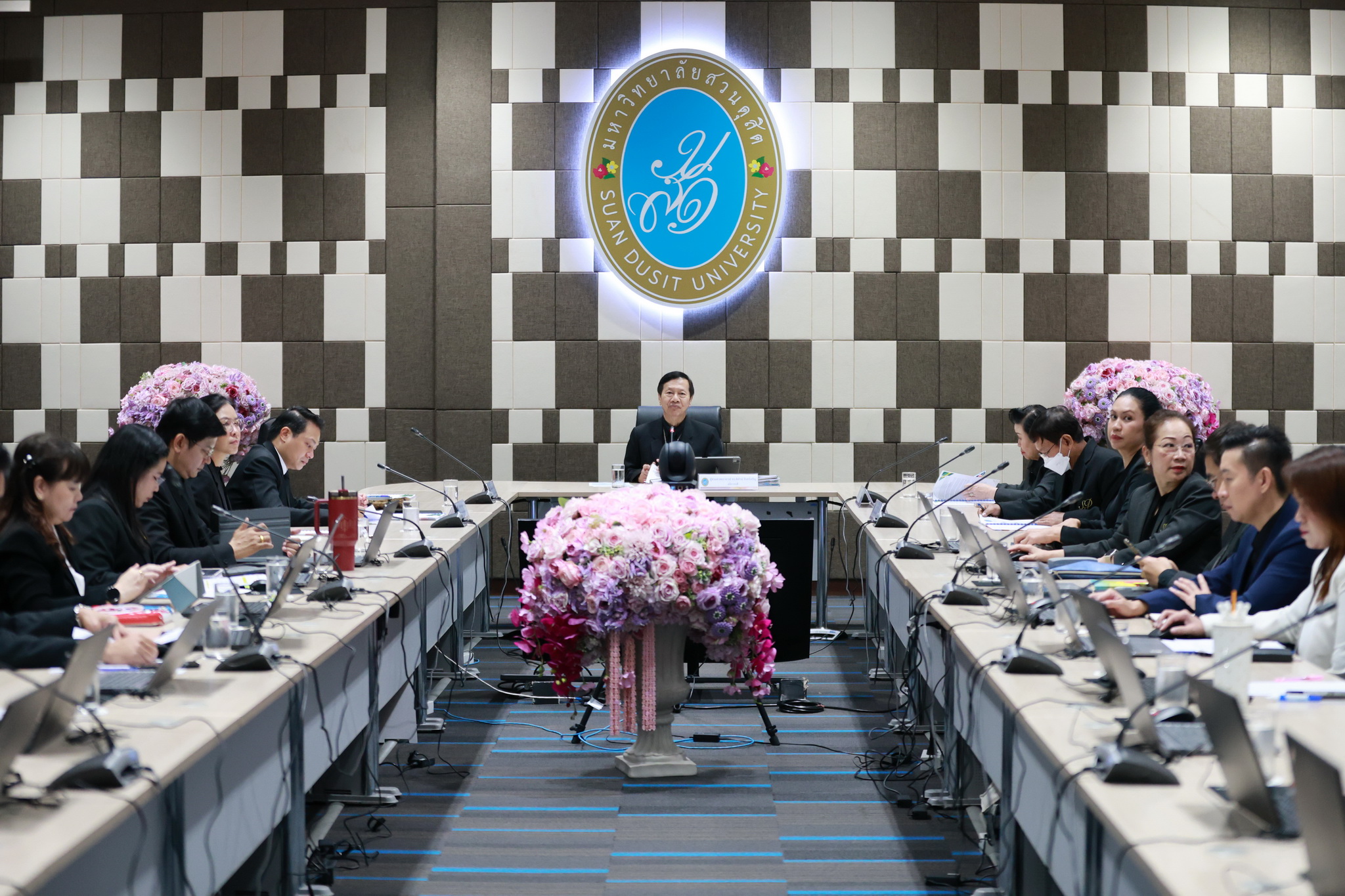 ผู้ช่วยศาสตราจารย์ ดร.พิทักษ์ จันทร์เจริญ อธิการบดีมหาวิทยาลัยสวนดุสิต เป็นประธานประชุมศุนย์การศึกษา ครั้งที่ 4(8)/2568 โดยมีวาระเรื่องรายงานผลการดำเนินงานตามนโยบาย The Power of SDU เดือนกันยายน-ตุลาคม 2568 และแผนการรับสมัครนักศึกษาใหม่ ภาคปกติระดับปริญญาตรี ประจำปีการศึกษา 2569 ของศูนย์การศึกษา ณ ห้องประชุมชั้น 5 อาคารสำนักงานมหาวิทยาลัย วันที่ 12 พฤศจิกายน 2568