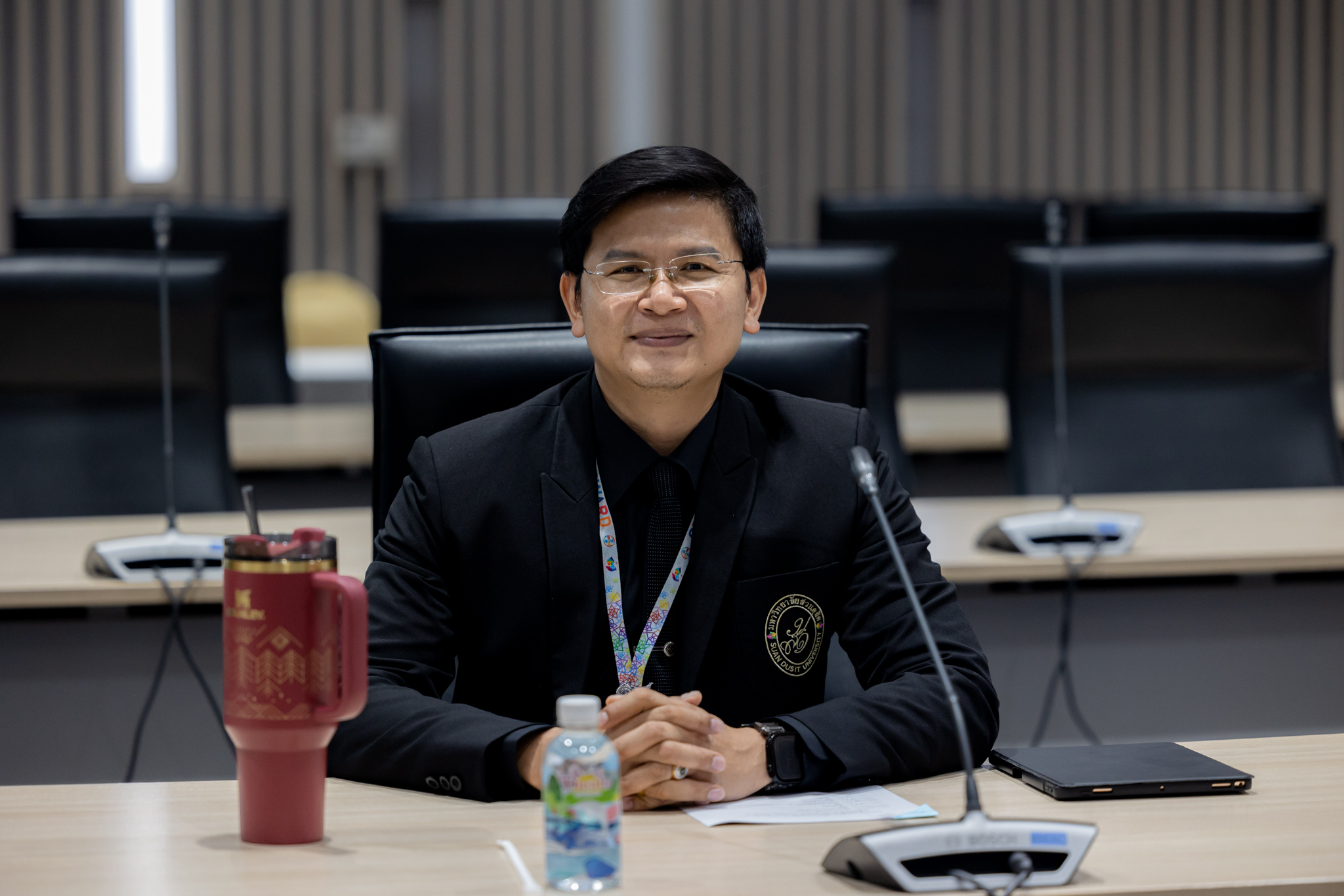 ผู้ช่วยศาสตราจารย์ ดร.พิทักษ์ จันทร์เจริญ อธิการบดีมหาวทยาลัยสวนดุสิต เป็นประธานประชุมประเมินผลการจัดงานพระราชทานปริญญาบัตร ประจำปีการศึกษา 2566 ณ ห้องประชุมชั้น 5 อาคารสำนักงานมหาวิทยาลัย วันที่ 13 พฤศจิกายน 2568