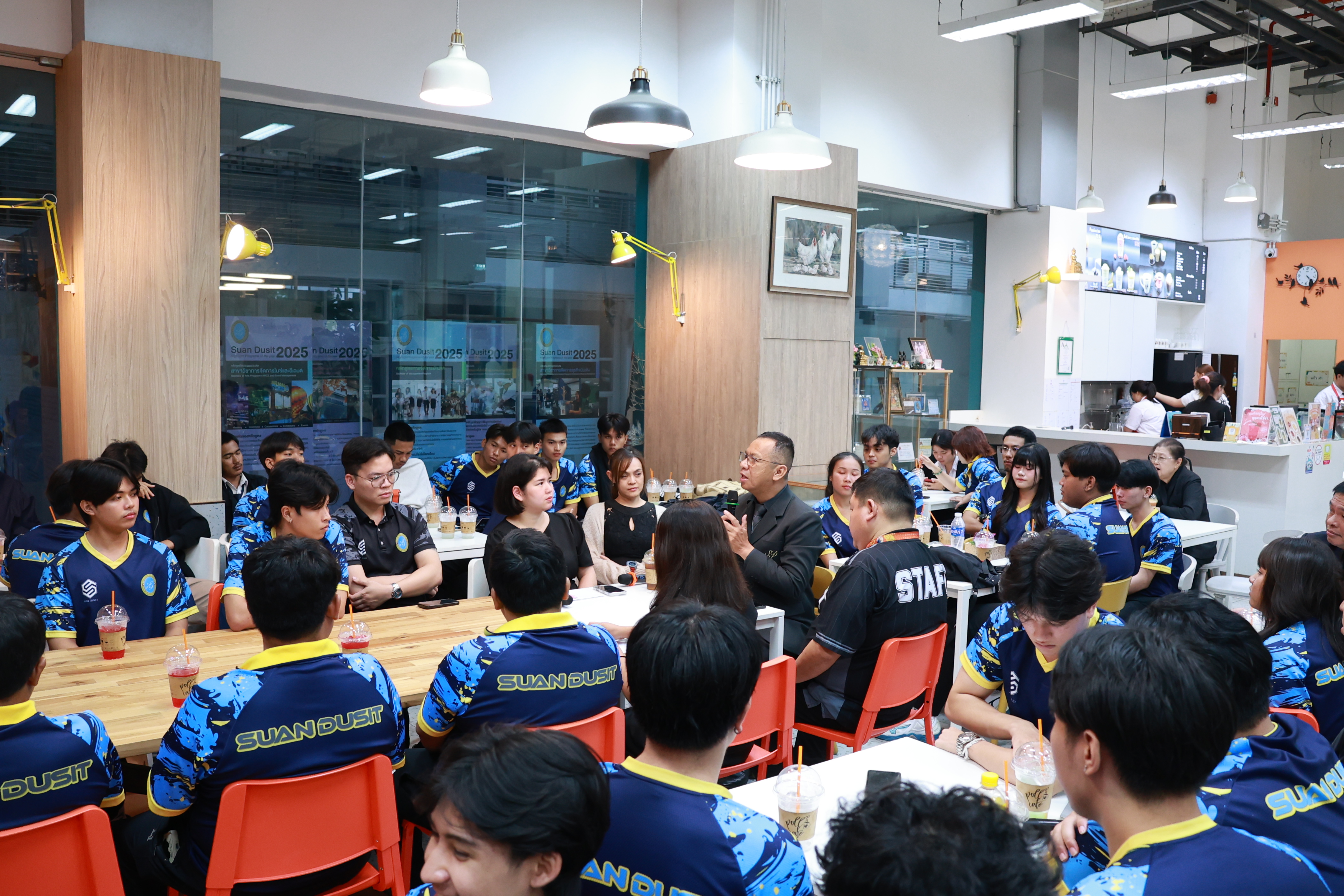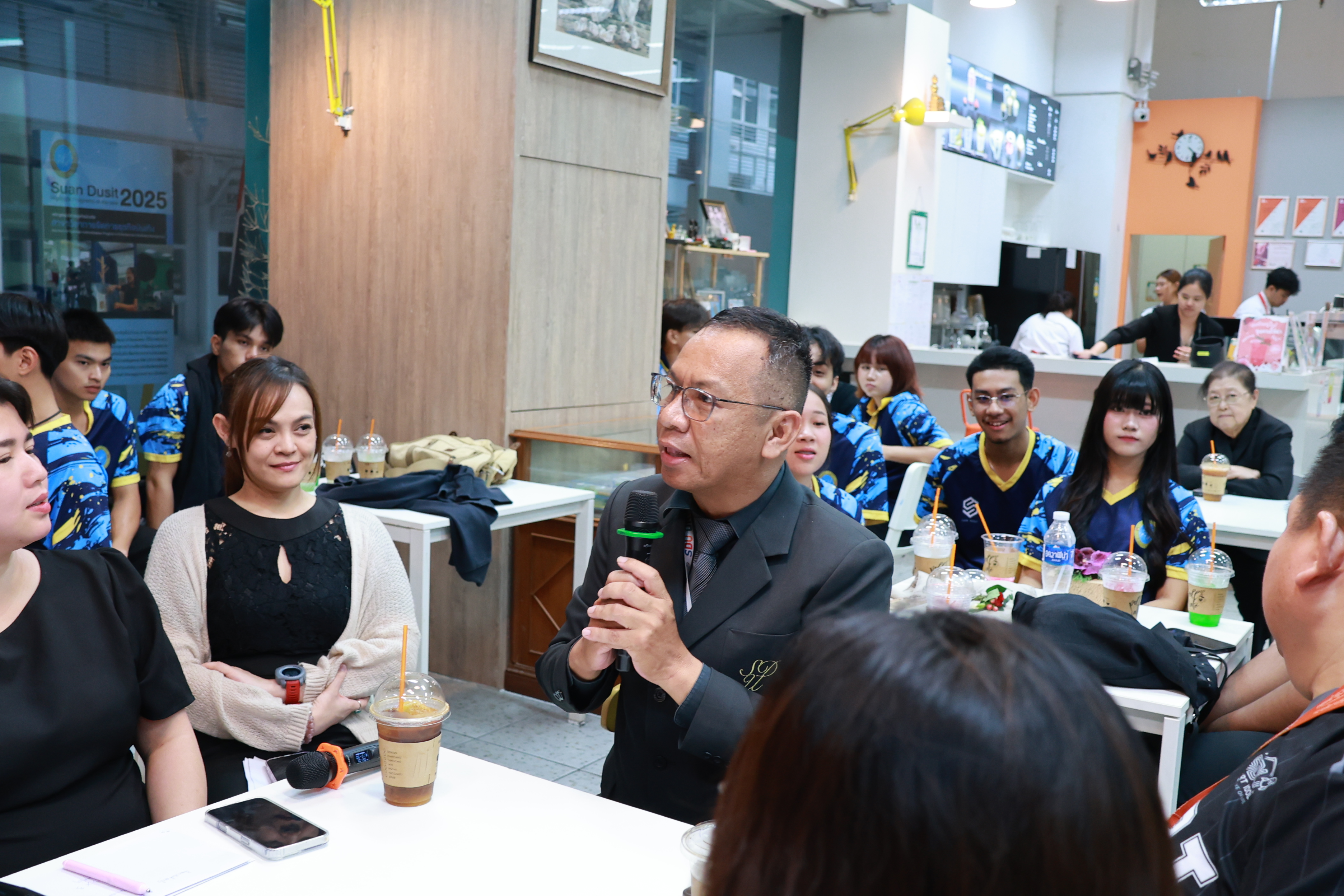 รศ.ดร.สุขุม เฉลยทรัพย์ ประธานที่ปรึกษาอธิการบดี มหาวิทยาลัยสวนดุสิต จัดกิจกรรม คุยสบาย ๆ…Life สาระ ครั้งที่ 394 หัวข้อ การแข่งขันกีฬามหาวิทยาลัยแห่งประเทศไทย ครั้งที่ 51 “อินทนิลเกมส์” พบกับ คณาจารย์และตัวแทนนักกีฬาที่ไปร่วมการแข่งขัน ณ Poll Café มหาวิทยาลัยสวนดุสิต และออนไลน์ผ่านโปรแกรม Zoom Meeting เมื่อวันที่ 13 พฤศจิกายน 2568