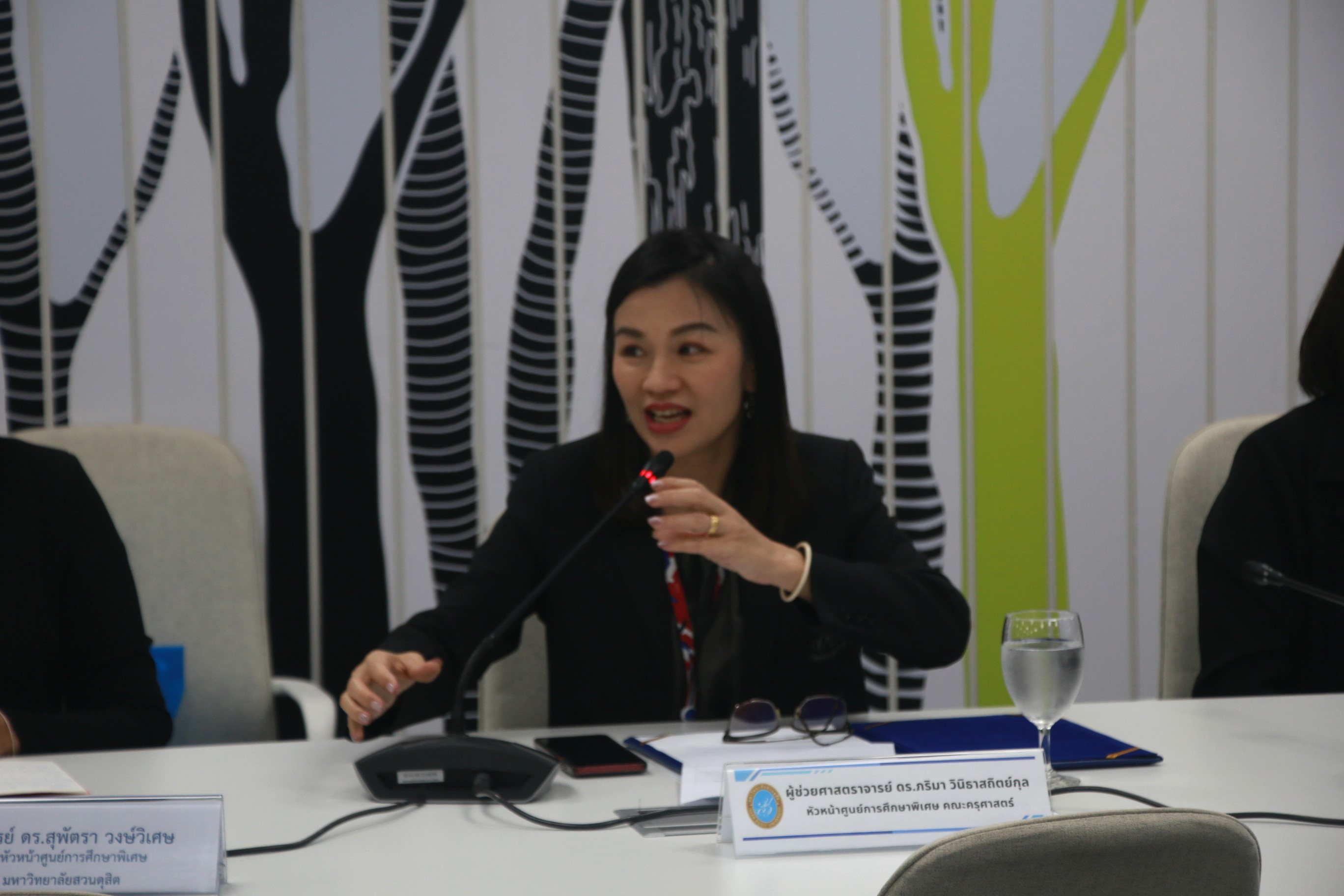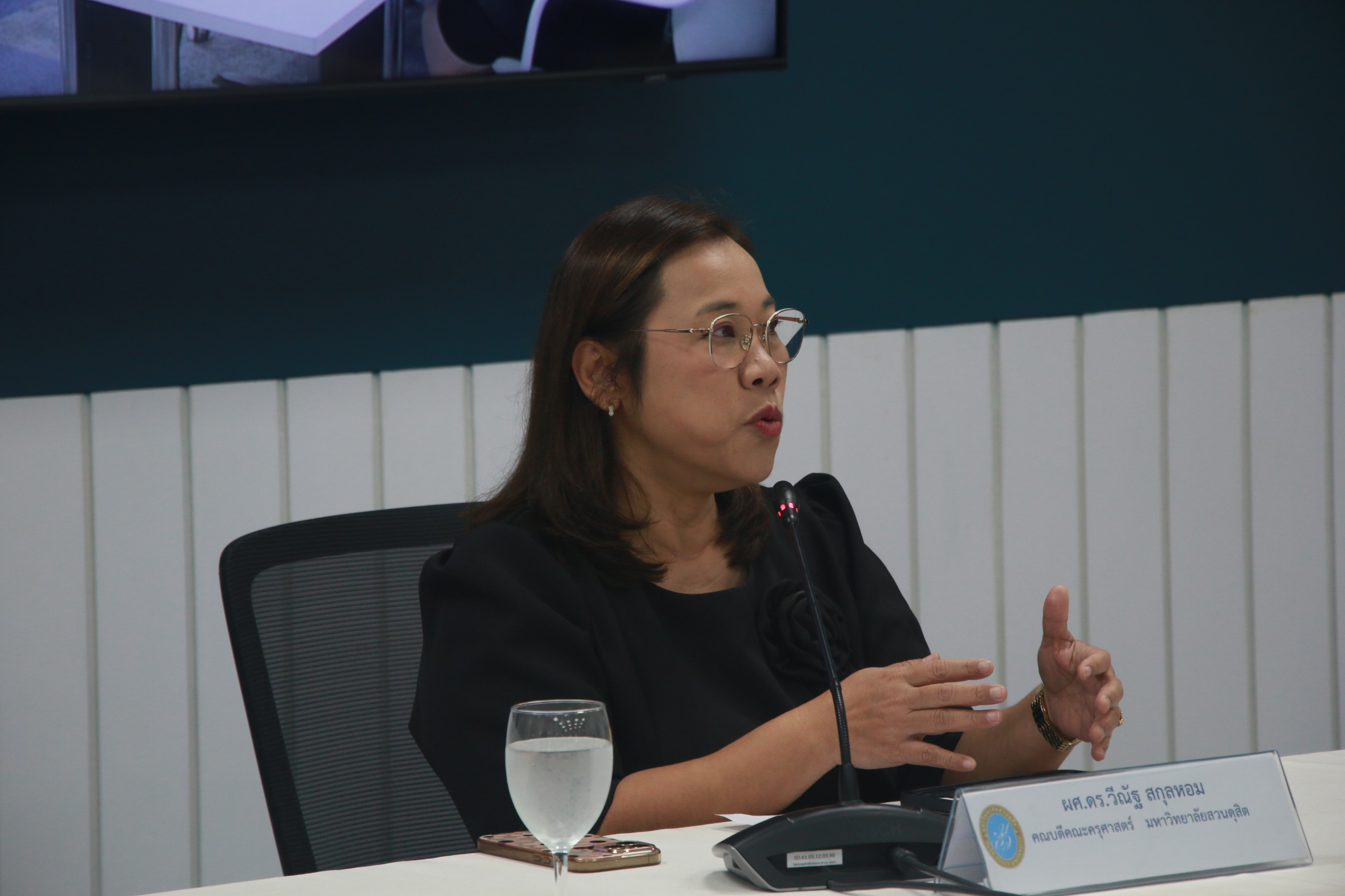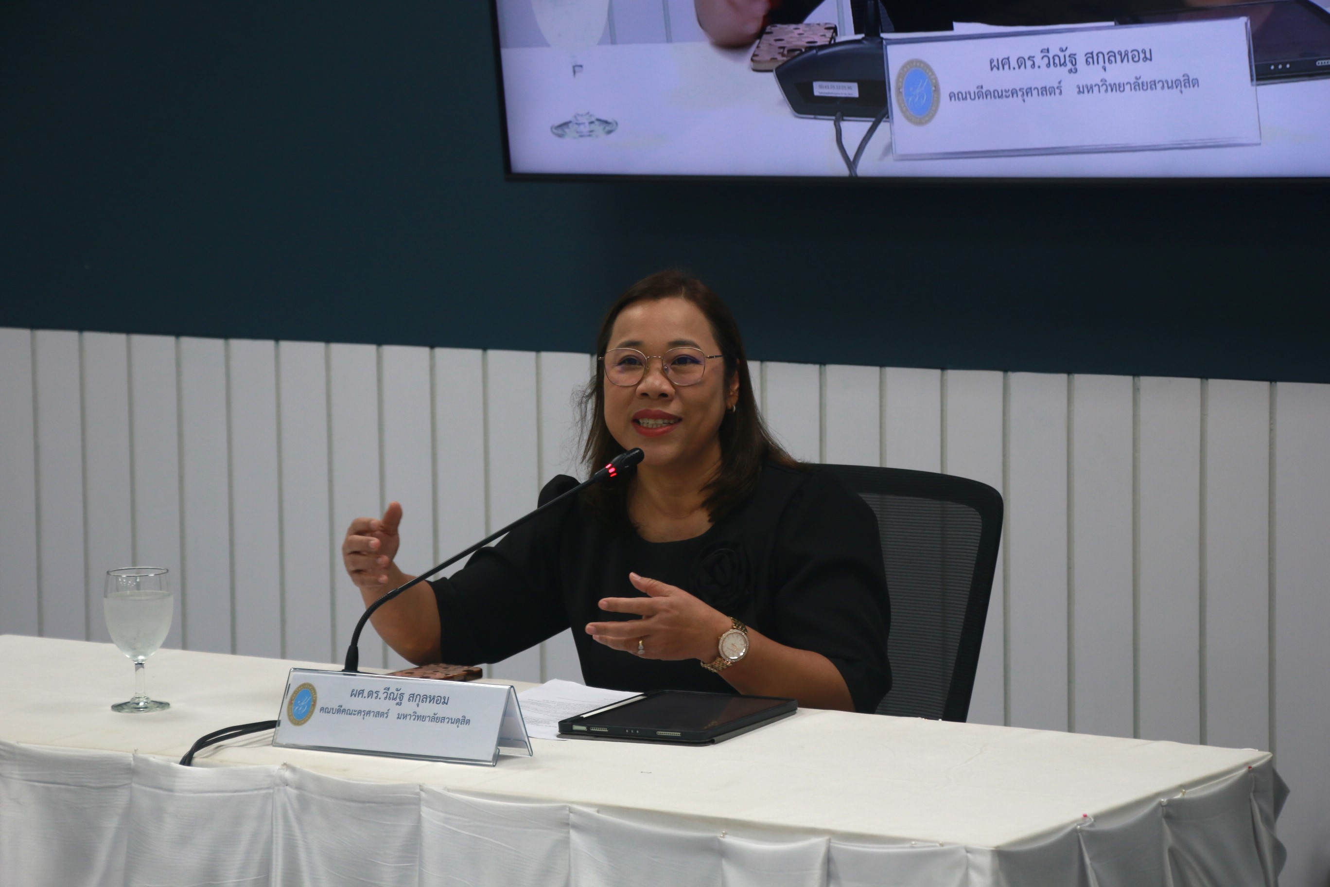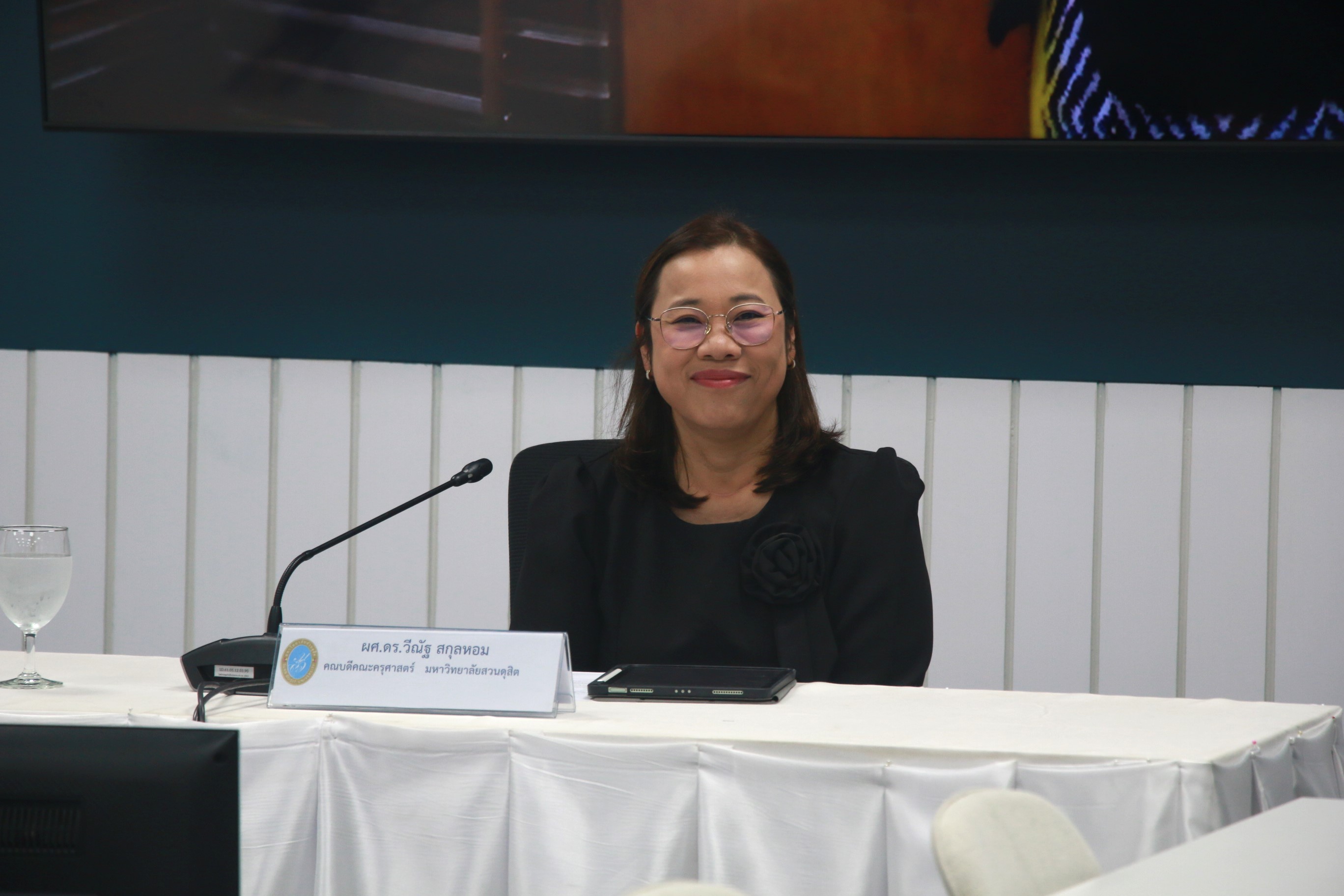 ผู้ช่วยศาสตราจารย์ ดร.วีณัฐ สกุลหอม คณบดีคณะครุศาสตร์และผู้ช่วยศาสตราจารย์ ดร.ภริมา วินิธาสถิตย์กุล หัวหน้าศูนย์การศึกษาพิเศษและคณะอาจารย์จากศูนย์การศึกษาพิเศษ มหาวิทยาลัยสวนดุสิต ให้ต้อนรับคณะศึกษาดูงานจากกรมการท่องเที่ยว ในโอกาสศึกษาดูงานเกี่ยวกับการจัดการเรียนการสอนและวิธีการวัดผลการเรียนรู้สำหรับผู้พิการทางการได้ยิน,การจัดการอบรมหลักสูตรภาษามือไทยให้กับบุคคลทั่วไปและข้อเสนอแนะเกี่ยวกับการจัดทำหลักสูตรการฝึกอบรมวิชามัคคุเทศก์ทั่วไป สำหรับผู้พิการทางการได้ยิน รวมทั้งเยี่ยมชมการเรียนการสอนนักศึกษาที่บกพร่องทางการได้ยิน หลักสูตรมนุษยศาสตร์และสังคมศาสตร์ ชั้นปีที่ 1 ในรายวิชาภาษาอังกฤษเพื่อการเรียนรู้ตลอดชีวิตและเยี่ยมชมอาคาร One World Library (OWL) ณ ห้องประชุม One World Library ชั้น 2
