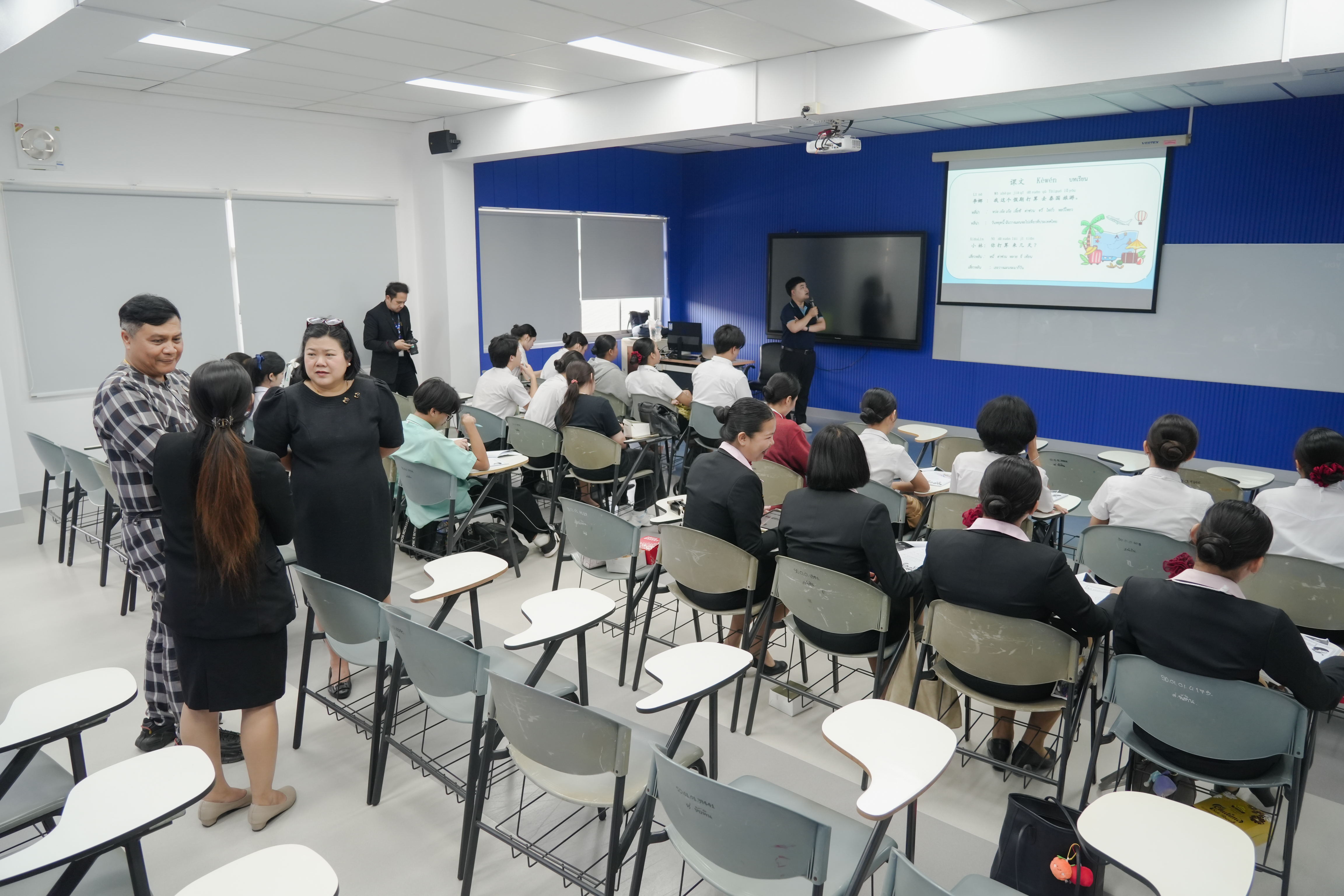 วันนี้ 14 พฤศจิกายน 2568 มหาวิทยาลัยสวนดุสิต ศูนย์การศึกษาหัวหิน ได้จัดกิจกรรมโครงการ “สถาบันขงจื่อ ณ หัวหินไม่สิ้นมนต์ขลัง สายสัมพันธ์วัฒนธรรมไทยจีน” ระหว่างวันที่ 14 – 16 พฤศจิกายน 2568 ซึ่งมีผู้เข้าร่วมกิจกรรม จำนวน 80 คน ประกอบด้วย ตัวแทนนักเรียน ม.ปลาย ในอำเภอหัวหิน และนักศึกษาสาขาธุรกิจการบิน ศูนย์การศึกษาหัวหิน ในวันแรกของกิจกรรมได้รับเกียรติจาก นายปรีดา สุขใจ รองผู้ว่าราชการจังหวัดประจวบคีรีขันธ์ เป็นประธานในการเปิดงานร่วมกับ รศ.ดร.พนารัตน์ ศรีแสง ผู้อำนวยการศูนย์การศึกษาหัวหิน มหาวิทยาลัยสวนดุสิต และ ดร.ปณิดาภา สวนแก้ว ผู้อำนวยการท่องเที่ยวและกีฬา จังหวัดเพชรบุรี โดยในช่วงเช้ามีการบรรยายความรู้ในหัวข้อ “ภูมิศาสตร์ไทย กรณีศึกษาที่ตั้งบริเวณมหาวิทยาลัยสวนดุสิต ศูนย์การศึกษาหัวหิน” โดย ผศ.ดร.เอกชัย พุมดวง และ ผศ.ดร.ยุสนีย์ โสมทัศ อีกทั้งหัวข้อ “ศัพท์ภาษาอังกฤษที่ควรรู้” โดย อ.ดร.วรเวชช์ อ่อนน้อม และ อ.ดร.ศิริ ชะระอ่ำ และหัวข้อสุดท้ายในภาคเช้า “ประวัติศาสตร์และอารยธรรมจีนโบราณ” โดย ผศ.ดร. สาระ มีผลกิจ และ ผศ.ดร.ดวงกมล อัศวมาศ ซึ่งได้รับความสนใจจากผู้เข้าร่วมกิจกรรมเป็นอย่างดี ในช่วงบ่าย มีการอบรมในหัวข้อ “ฝึกภาษาจีนเบื้องต้นกับการท่องเที่ยวประจวบคีรีขันธ์” โดยคณาจารย์จากหลักสูตรภาษาจีนเพื่องานบริการ คณะมนุษยศาสตร์และสังคมศาสตร์ ประกอบด้วย อ.ณภัคกัญญา ตรารุ่งเรือง อ.จิตติพร ชัยประกอบวิริยะ และ อ.ประภัสร์ นกเลิศพันธุ์ ตลอดทั้งคณาจารย์จากศูนย์การศึกษาหัวหิน ประกอบด้วย MR.SU KUNFENG และ อ.วรรษมน ทองเกิด ให้ความรู้ อันเป็นกิจกรรมภายใต้การกำกับของ รศ.พัชรี สวนแก้ว รองอธิการบดีฝ่ายกิจการนักศึกษา