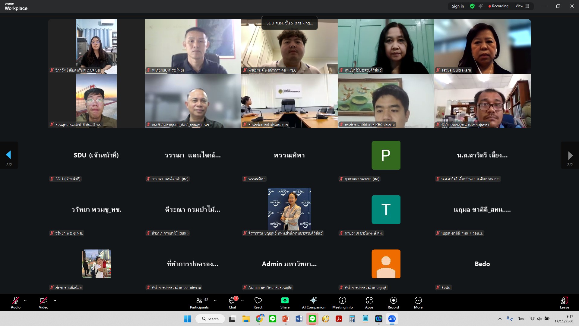 การจัดประชุมเชิงปฏิบัติการ “โครงการศึกษา สำรวจ จัดเก็บ และวิเคราะห์ข้อมูลความคิดเห็นเกี่ยวกับ การดำเนินงานด้านการท่องเที่ยวยั่งยืนบนฐานความหลากหลายทางชีวภาพ ข้อมูลตัวชี้วัดเพื่อการประเมินความก้าวหน้าและผลสัมฤทธิ์ของโครงการ MBT ในระดับพื้นที่ตามกรอบกิจกรรมโครงการ ประจำปี 2568” ระดับชาติ ผ่านระบบออนไลน์ จัดขึ้นในวันศุกร์ที่ 14 พฤศจิกายน พ.ศ.2568 ณ ห้องประชุมชั้น 5 อาคารสำนักงานมหาวิทยาลัย มหาวิทยาลัยสวนดุสิต