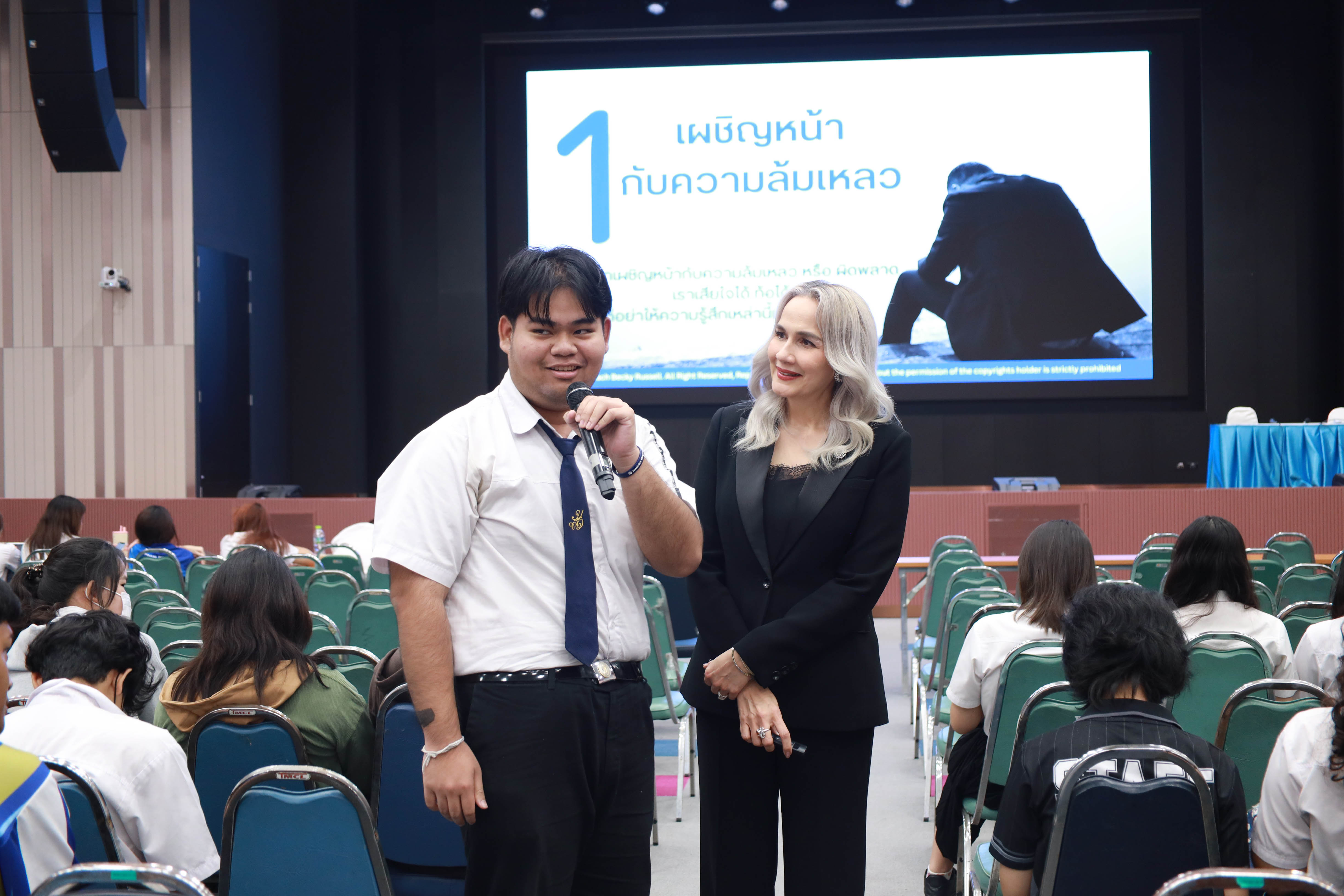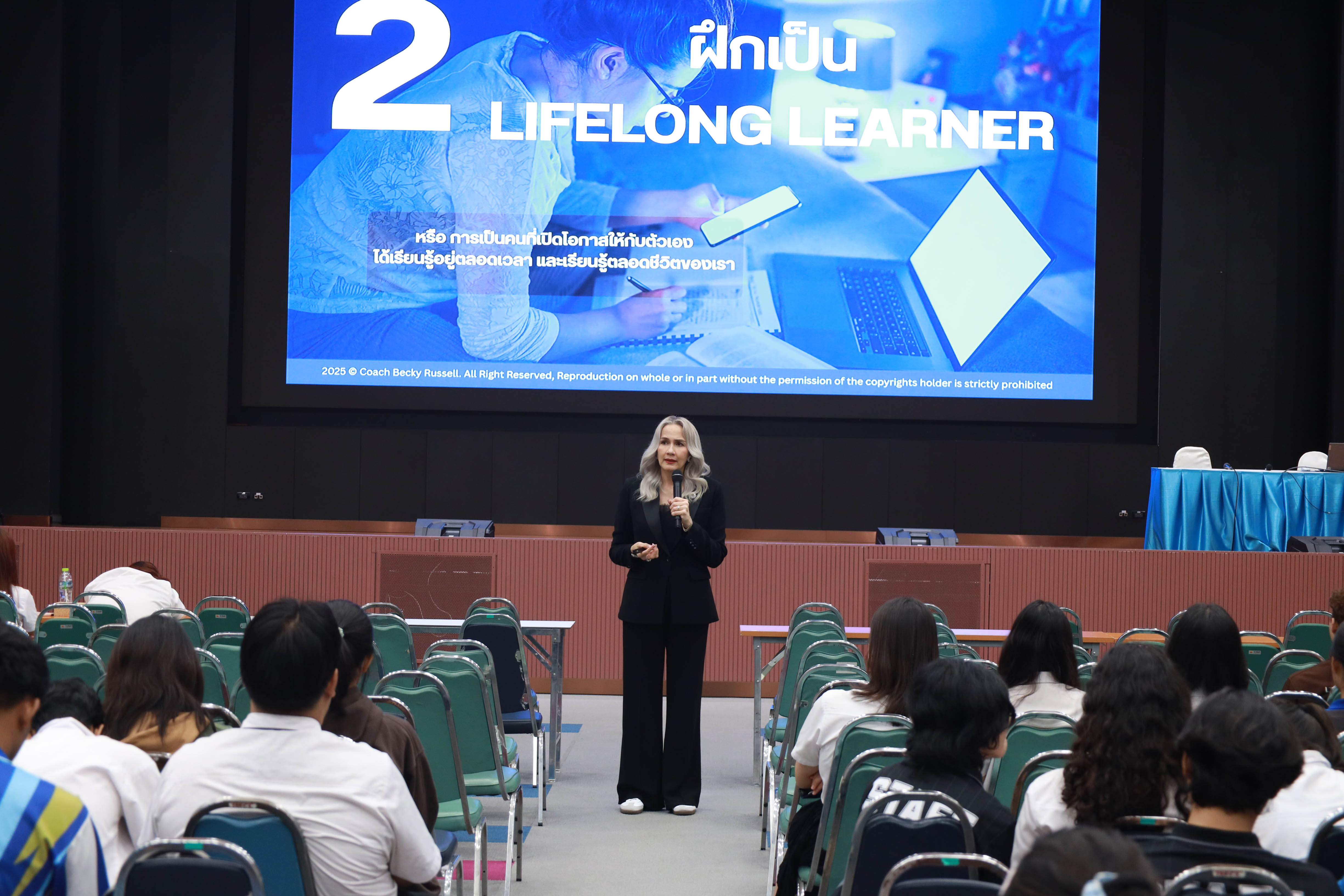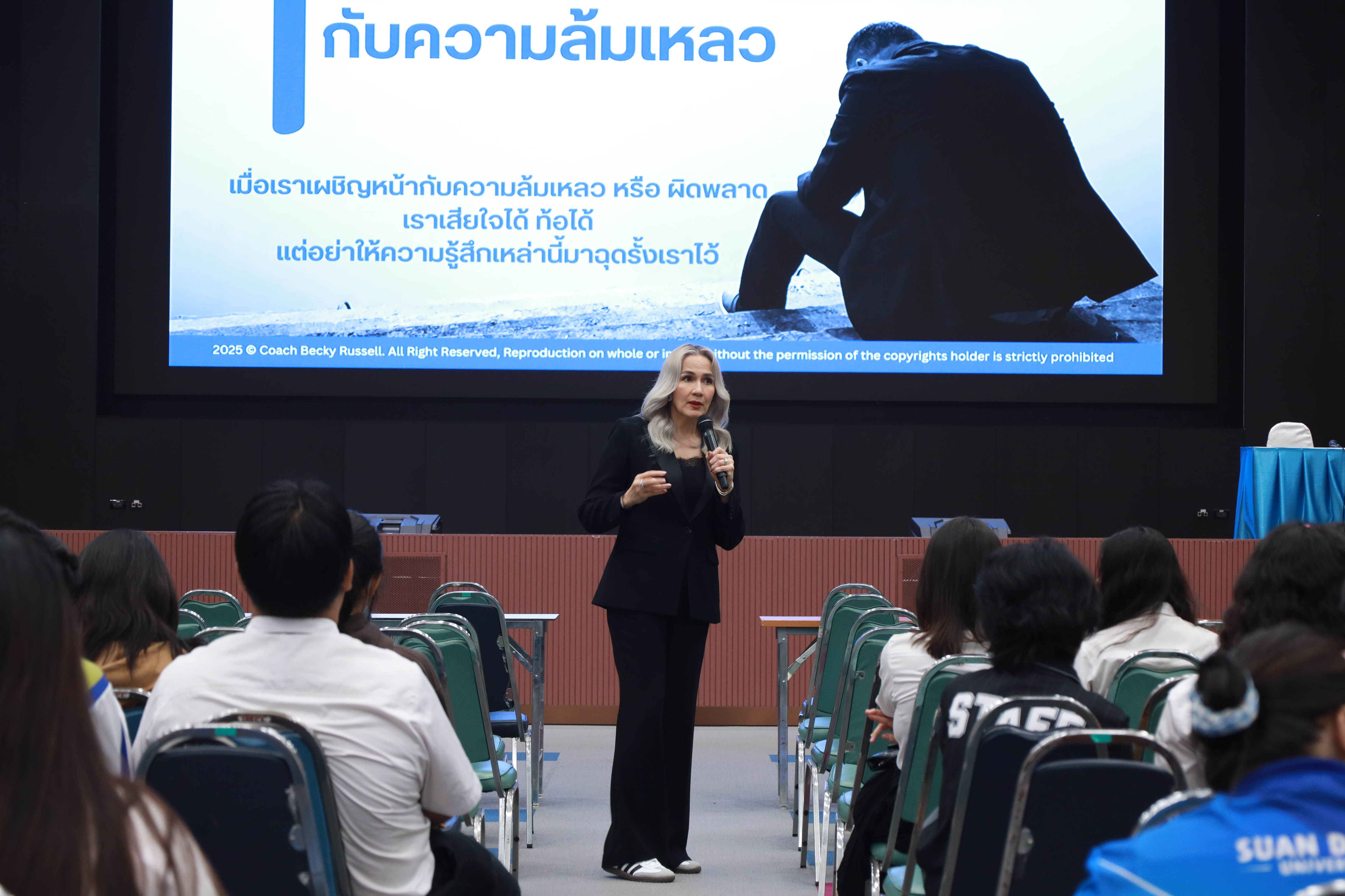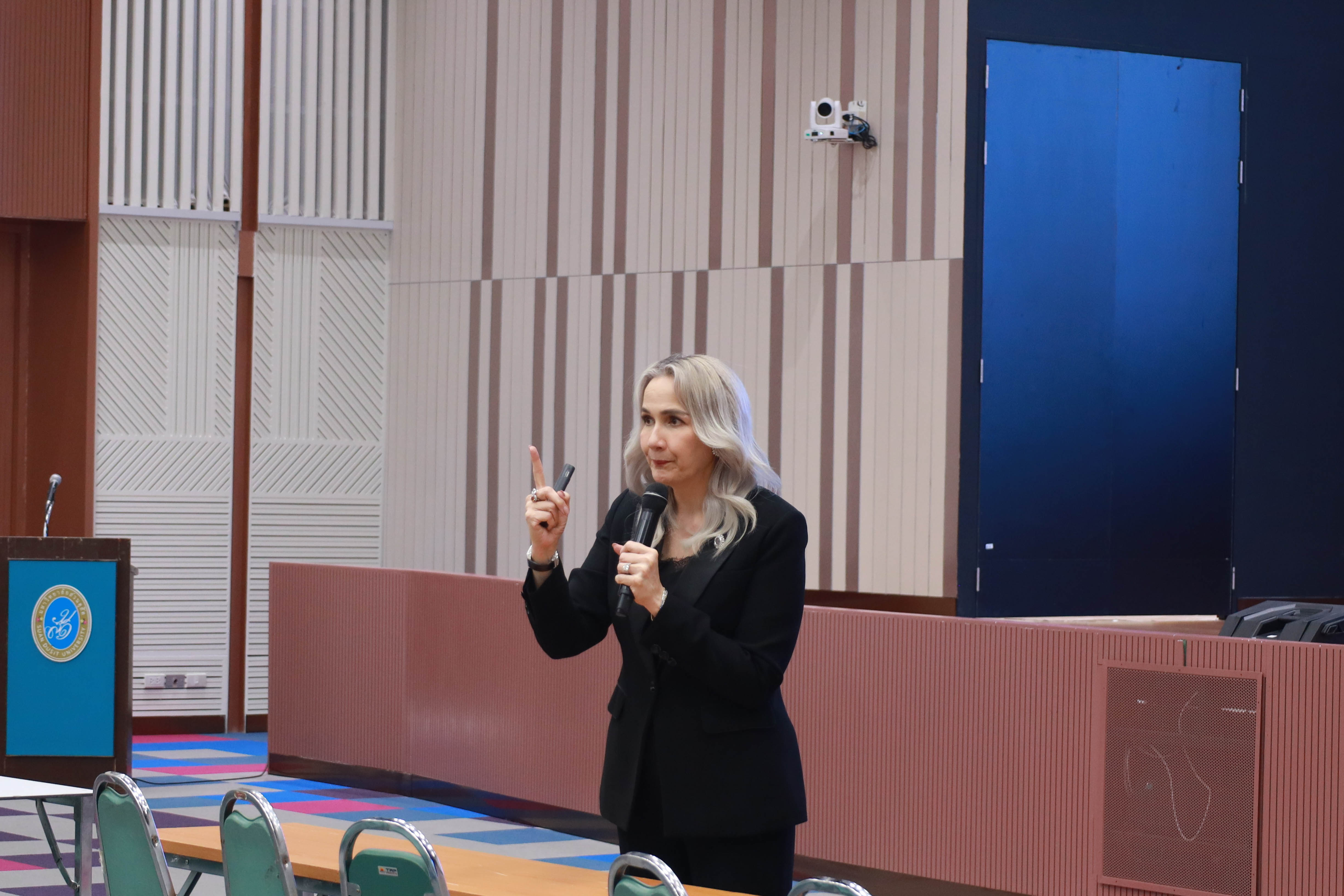 สำนักส่งเสริมวิชาการและงานทะเบียน จัดการเรียนการสอนเชิงประสบการณ์ รายวิชาความเป็นสวนดุสิต ครั้งที่ 2 ภาคเรียนที่ 2/2568 กลุ่มวันพฤหัสบดี ช่วงบ่าย เรื่อง SDU Signature โดยได้รับเกียรติจาก ดร.รมิดา รัสเซลล์ (Coach BECKY) เป็นวิทยากร บรรยายในหัวข้อ ก้าวแรกสู่ความสำเร็จ การพัฒนาจิตใจและบุคลิภาพ Triple B : Be Ready. Be You. Be Great. ใจพร้อม กายเป๊ะ ชีวิตปัง ณ หอประชุมรักตะกนิษฐ มหาวิทยาลัยสวนดุสิต วันพฤหัสบดีที่ 13 พฤศจิกายน 2568