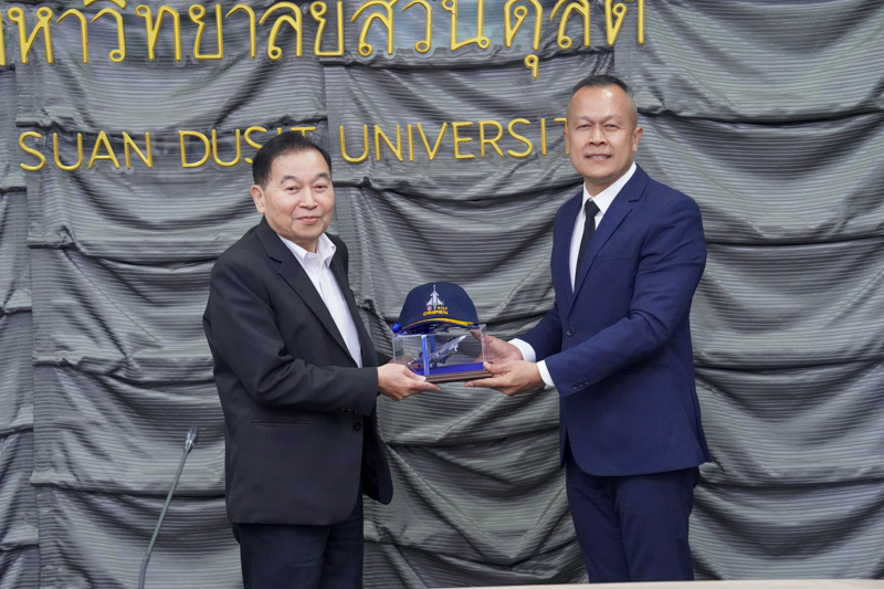 บัณฑิตวิทยาลัย มหาวิทยาลัยสวนดุสิต จัดสอบปกป้องวิทยานิพนธ์นักศึกษาระดับปริญญาเอก หลักสูตรศึกษาศาสตรดุษฎีบัณฑิต สาขาวิชาภาวะผู้นำทางการศึกษาสำหรับนักศึกษาที่สอบโครงร่างวิทยานิพนธ์ จำนวน 1 คน ได้แก่ นาวาอากาศเอก สาธิต ชีวางกูล วิทยานิพนธ์เรื่อง : ภาวะผู้นำการเปลี่ยนแปลงตามแนวคิดจินตวิศวกรรม กรณีศึกษาบุคลากรกองทัพอากาศไทย Transformational Leadership Based on Imagineering Concept: A Case Study of Royal Thai Air Force Personal โดยมี รศ.ดร.ชลวิทย์ เจียรจิตติ์ อธิการบดีมหาวิทยาลัยศรีนครินทรวิโรฒ เป็นประธานการสอบ รองศาสตราจารย์ ดร.ธนิตา เลิศพรกุลรัตน์ รองอธิการบดีมหาวิทยาลัยศรีนครินทรวิโรฒ เป็นกรรมการผู้ทรงคุณวุฒิภายนอก รศ.ดร.ชนะศึก นิชานนท์ รองอธิการบดีฝ่ายบริหาร วิจัยและนวัตกรรม มหาวิทยาลัยสวนดุสิต เป็นอาจารย์ที่ปรึกษาหลัก ดร.สิรธัมม์ อุดมธรรมานุภาพ คณะครุศาสตร์ มหาวิทยาลัยสวนดุสิต เป็นอาจารย์ที่ปรึกษาร่วม รศ.ดร.สุขุม เฉลยทรัพย์ ประธานที่ปรึกษาอธิการบดี มหาวิทยาลัยสวนดุสิต เป็นกรรมการ (ภายใน) รศ.ดร.ธนภัทร ปัจฉิมม์ คณบดีบัณฑิตวิทยาลัย เมื่อวันที่ 17 พฤศจิกายน 2568 ณ ห้องประชุมศาลาชื่นอารมณ์ มหาวิทยาลัยสวนดุสิต