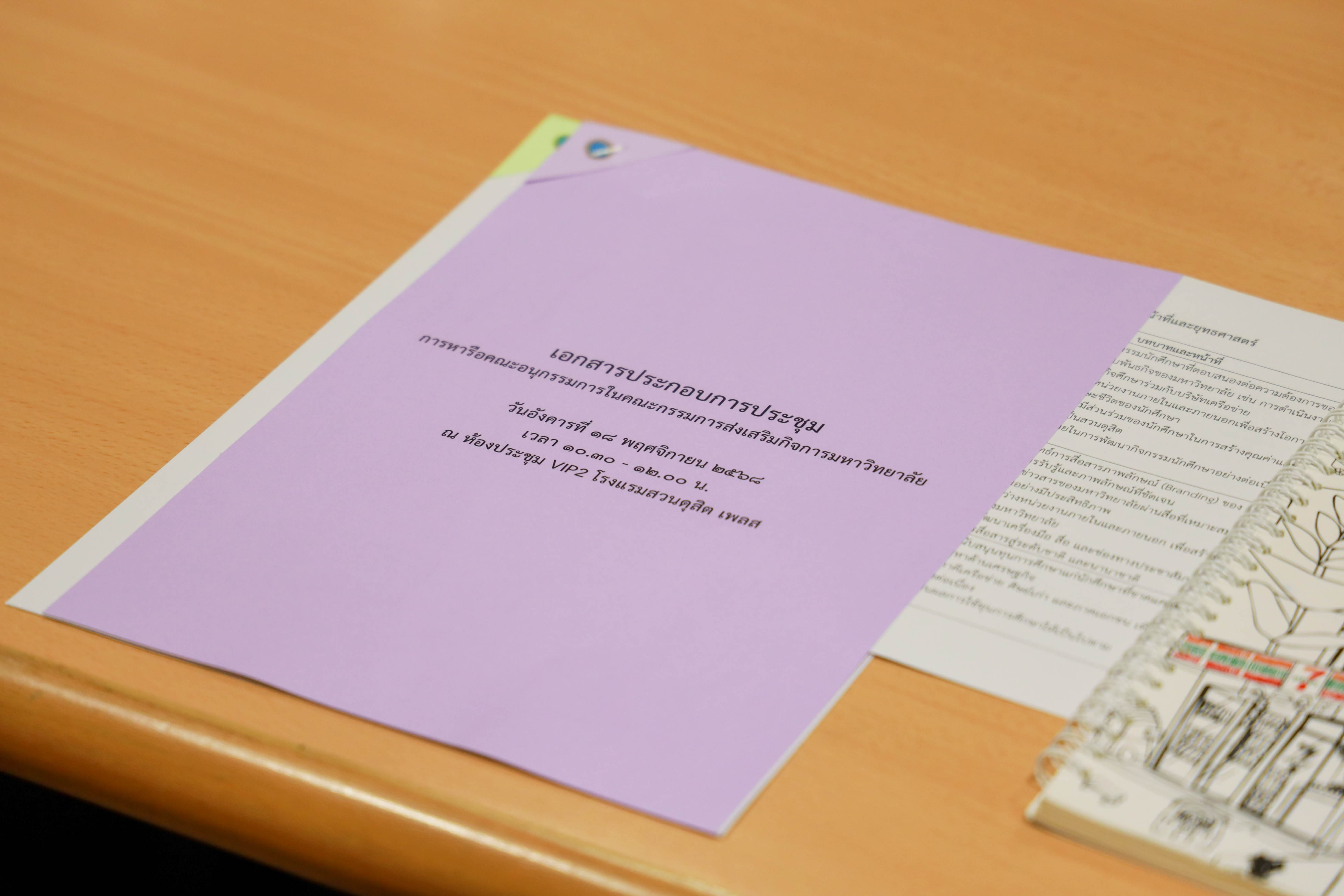 นายกิตติศักดิ์ มาพะเนาว์ ประธานคณะกรรมการส่งเสริมกิจการมหาวิทยาลัย เป็นประธานในการประชุม โดยมี รศ.ดร.ชนะศึก นิชานนท์ รองอธิการบดีฝ่ายบริหาร วิจัย และนวัตกรรมการ และที่ปรึกษาคณะกรรมการส่งเสริมกิจการมหาวิทยาลัย นำเสนอกรอบการดำเนินงานของคณะกรรมการส่งเสริมกิจการมหาวิทยาลัยที่สอดคล้องตามอำนาจหน้าที่และยุทธศาสตร์ และมหาวิทยาลัยแต่งตั้งคณะอนุกรรมการในการสนับสนุนการดำเนินงานของมหาวิทยาลัย จำนวน 5 คณะอนุกรรมการดังนี้ คณะอนุกรรมการด้านการส่งเสริมกิจกรรมนักศึกษา คณะอนุกรรมการด้านการสื่อสารและการประชาสัมพันธ์ คณะอนุกรรมการด้านการสนับสนุนทุนการศึกษา คณะอนุกรรมการด้านการสนับสนุนการดำเนินงานของมหาวิทยาลัย และคณะอนุกรรมการด้านการสนับสนุนกิจการของมหาวิทยาลัย ในวันที่ 18 พฤศจิกายน 2568 ณ ห้องประชุม VIP 2 โรงแรมสวนดุสิต เพลส มหาวิทยาลัยสวนดุสิต