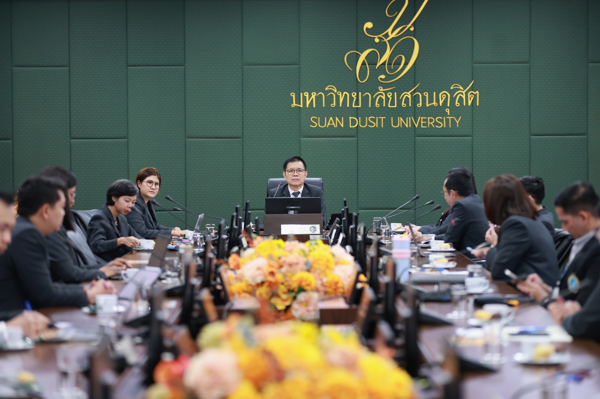 รศ.ดร.วิชชา ฉิมพลี ประธานสภาคณาจารย์และพนักงาน เป็นประธานในการประชุมสภาคณาจารย์และพนักงาน ครั้งที่ 4/2568  โดยมีวาระเรื่องโครงการแลกเปลี่ยนเรียนรู้ สิทธิประโยชน์การประกันกลุ่มที่ชาวสวนดุสิตควรรู้ เรื่องผลการดำเนินโครงการ SDU Senate Synergy สัญจรสร้างพลังประชาคม ร่วมพัฒนามหาวิทยาลัยสู่ความยั่งยืน เรื่องแผนการดำเนินงานสภาคณาจารย์และพนักงาน และการจัดกิจกรรม/โครงการเดือนธันวาคม 2568 และมอบหมายผู้รับผิดชอบ ณ ห้องประชุมลำพอง 2 วันที่ 19 พฤศจิกายน 2568