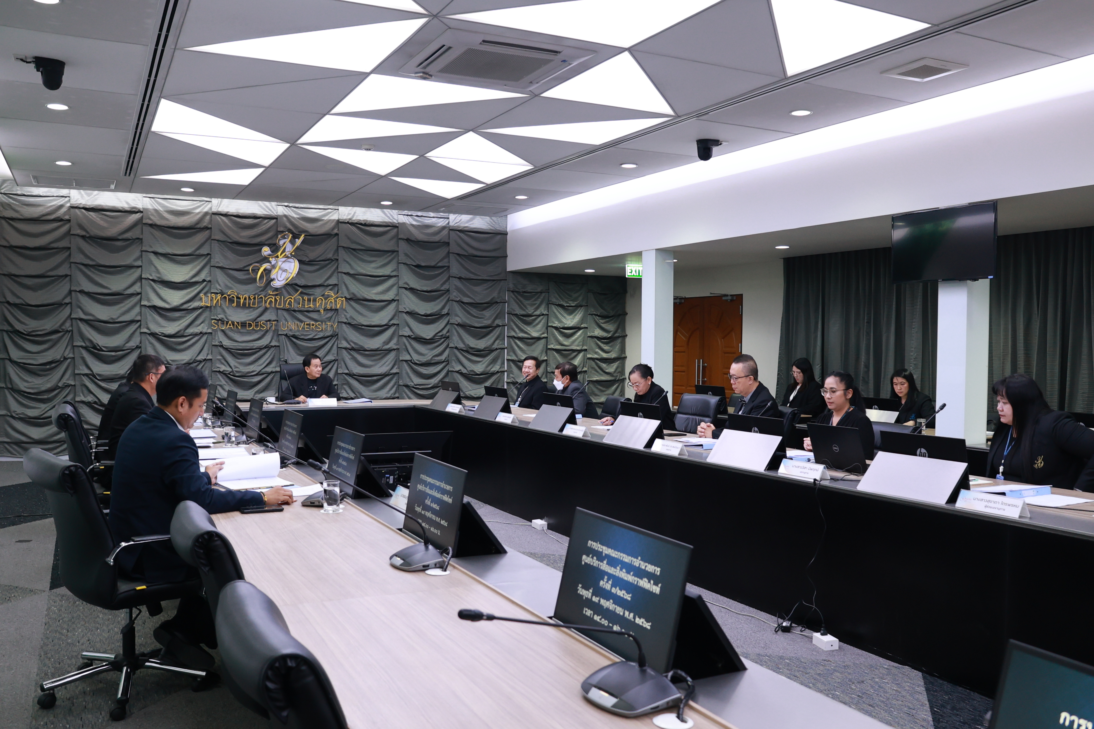 รศ.ดร.ศิโรจน์ ผลพันธิน ที่ปรึกษาอธิการบดีด้านบริหาร มหาวิทยาลัยสวนดุสิต เป็นประธานการประชุมคณะกรรมการอำนวยการศูนย์บริการสื่อและสิ่งพิมพ์กราฟฟิคไซท์ ครั้งที่ 3/2568 โดยมีวาระเพื่อพิจารณา อาทิ แผนจัดหารายได้ของศูนย์บริการสื่อและสิ่งพิมพ์กราฟฟิคไซต์ และแผนกลยุทธ์ของศูนย์ศูนย์บริการสื่อและสิ่งพิมพ์กราฟฟิคไซต์ ประจำปีงบประมาณ พ.ศ.2569 ฯลฯ ณ ห้องประชุมศาลาชื่นอารมณ์ มหาวิทยาลัยสวนดุสิต เมื่อวันที่ 19 พฤศจิกายน 2568