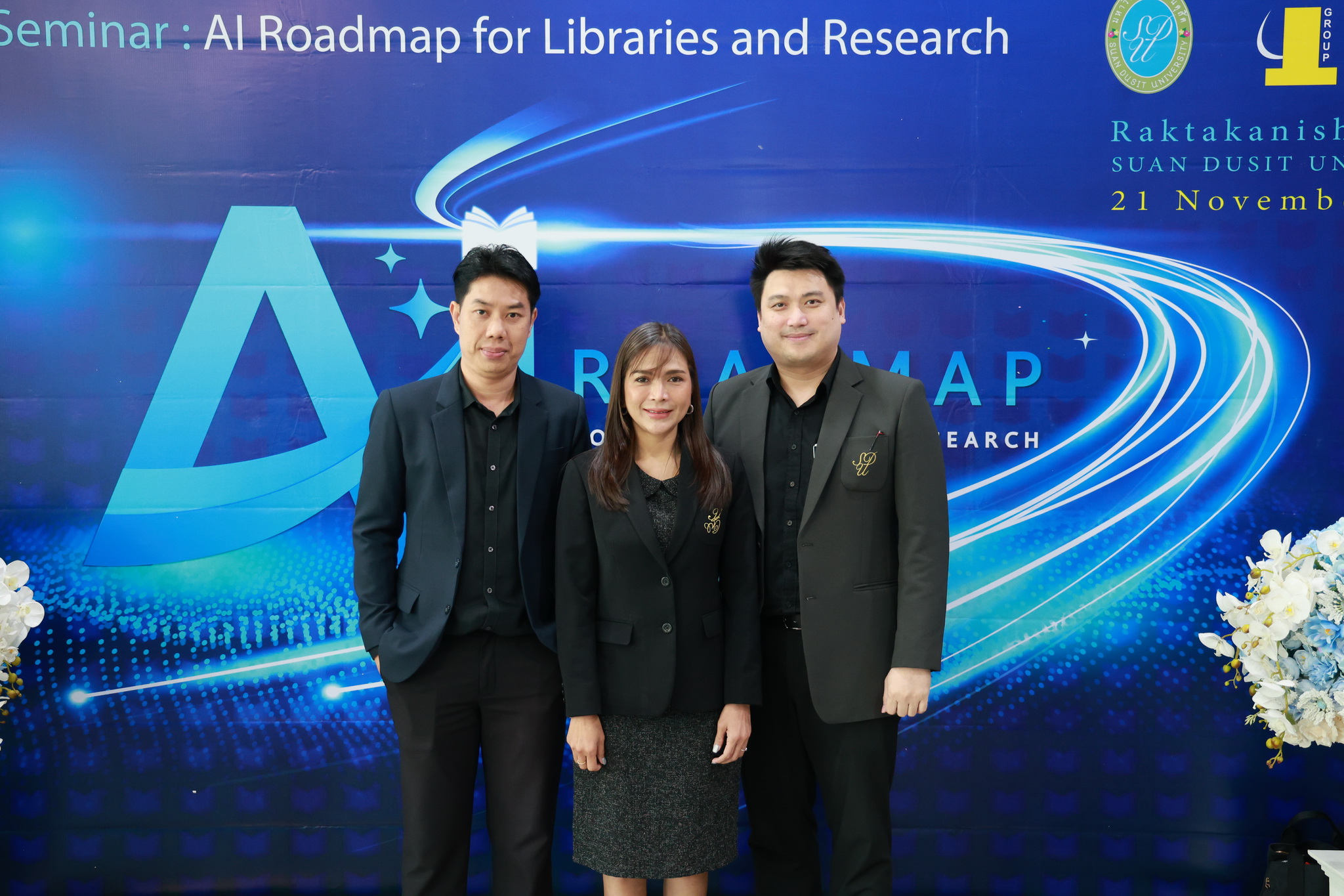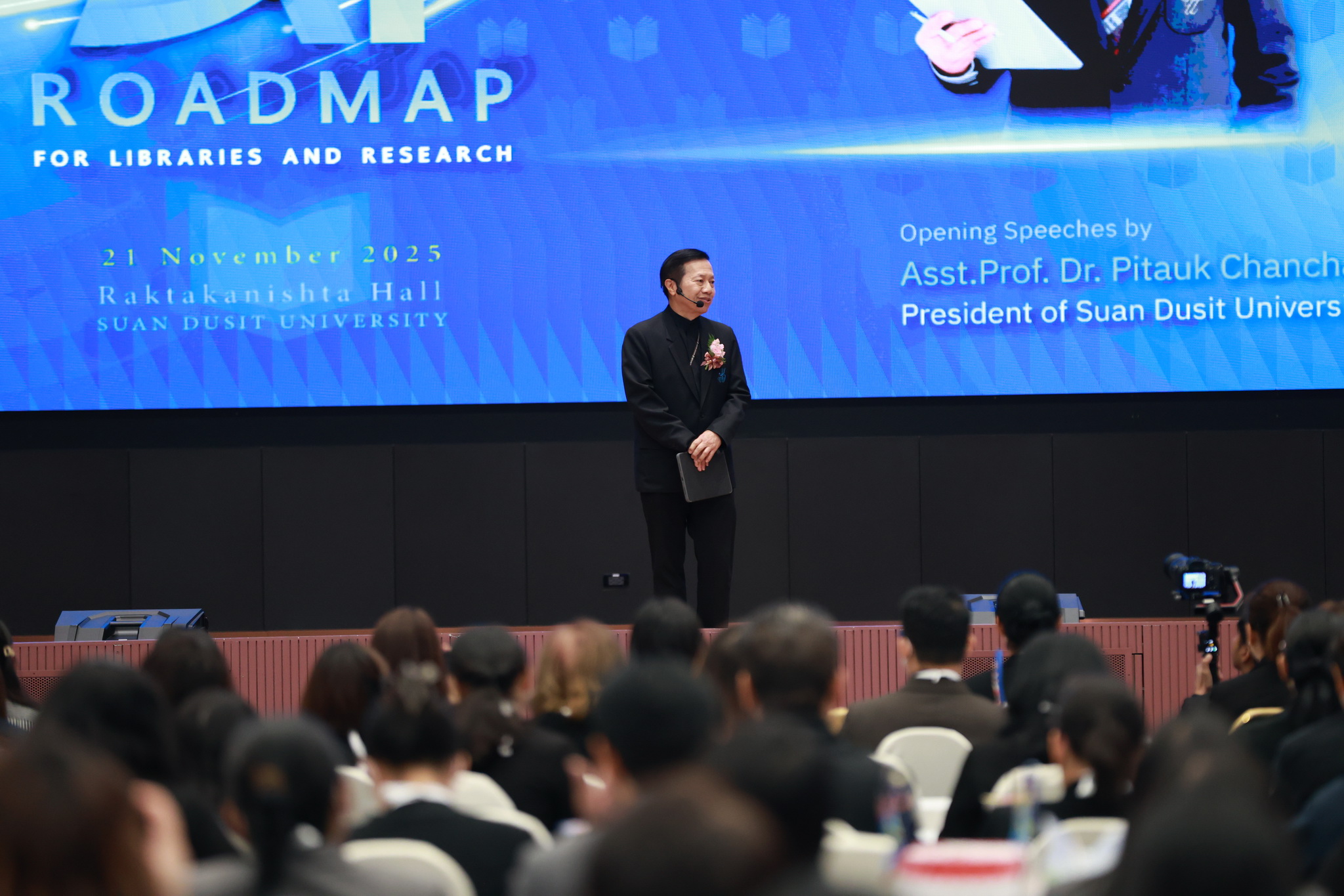 ผู้ช่วยศาสตราจารย์ ดร.พิทักษ์ จันทร์เจริญ อธิการบดีมหาวิทยาลัยสวนดุสิต เป็นประธานเปิดประชุมสัมมนาวิชาการ หัวข้อ AI Roadmap for Libraries and Research โดยความร่วมมือระหว่าง มหาวิทยาลัยสวนดุสิต ร่วมกับ บริษัท iGroup (Asia Pacific) Limited และ บริษัท บุ๊ค โปรโมชั่น แอนด์ เซอร์วิส จำกัด โดยมี คุณพจน์ นฤตกรรตกุล ประธานกรรมการบริหาร iGroup (Asia Pacific) Limited กล่าวต้อนรับและบรรยายร่วมกับ Dr. See Diu Seng, Special Projects Manager ในหัวข้อ Knowledge Management and Al Skills รองศาสตราจารย์ คร.สุขุม เฉลยทรัพย์ ประธานที่ปรึกษาอธิการบดี การบรรยายหัวข้อ ตัวตนคนใช้ AI (AI Users’ Identities) ตร.หว่อง เว่ย ฟู ผู้จัดการทั่วไปฝ่ายที่ปรึกษา บริการด้านการศึกษานวัตกรม การบรรยายหัวข้อ Creating a Safe Sandbox for Generative Al Adoption in Universities ผู้ช่วยศาสตราจารย์ทิพสุดา คิดเลิศ ผู้อำนวยการสำนักวิทยบริการและเทคโนโลยีสารสนเทศ มหาวิทยาลัยสวนดุสิต การบรรยายในหัวข้อ One World Library: A Strategic Leadership Vision for Al-Driven Digital Services ในการนี้ผู้เข้าร่วมงานได้เข้าเยี่ยมชม One World Library อีกด้วย ณ หอประชุมรักตะกนิษฐ ชั้น 1 และ 2 เมื่อวันที่ 21 พฤศจิกายน 2568