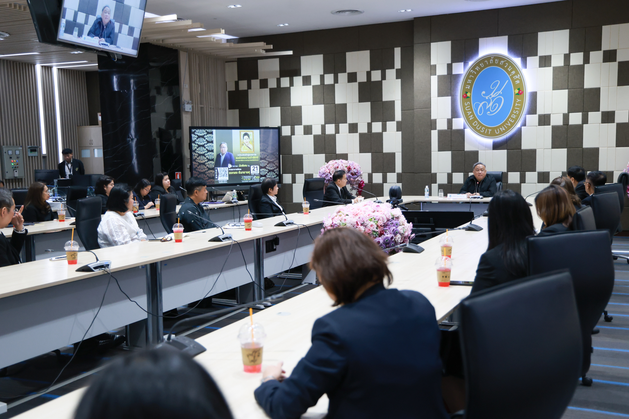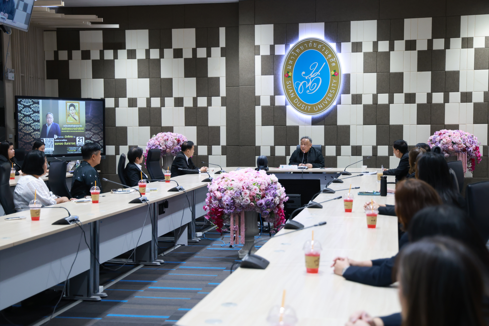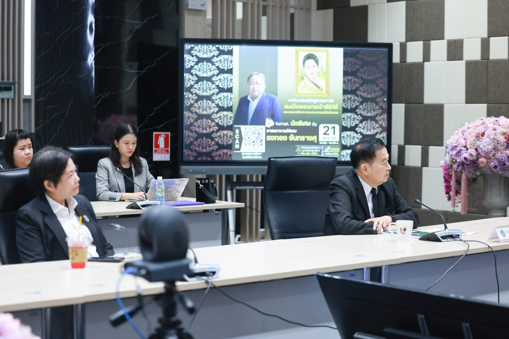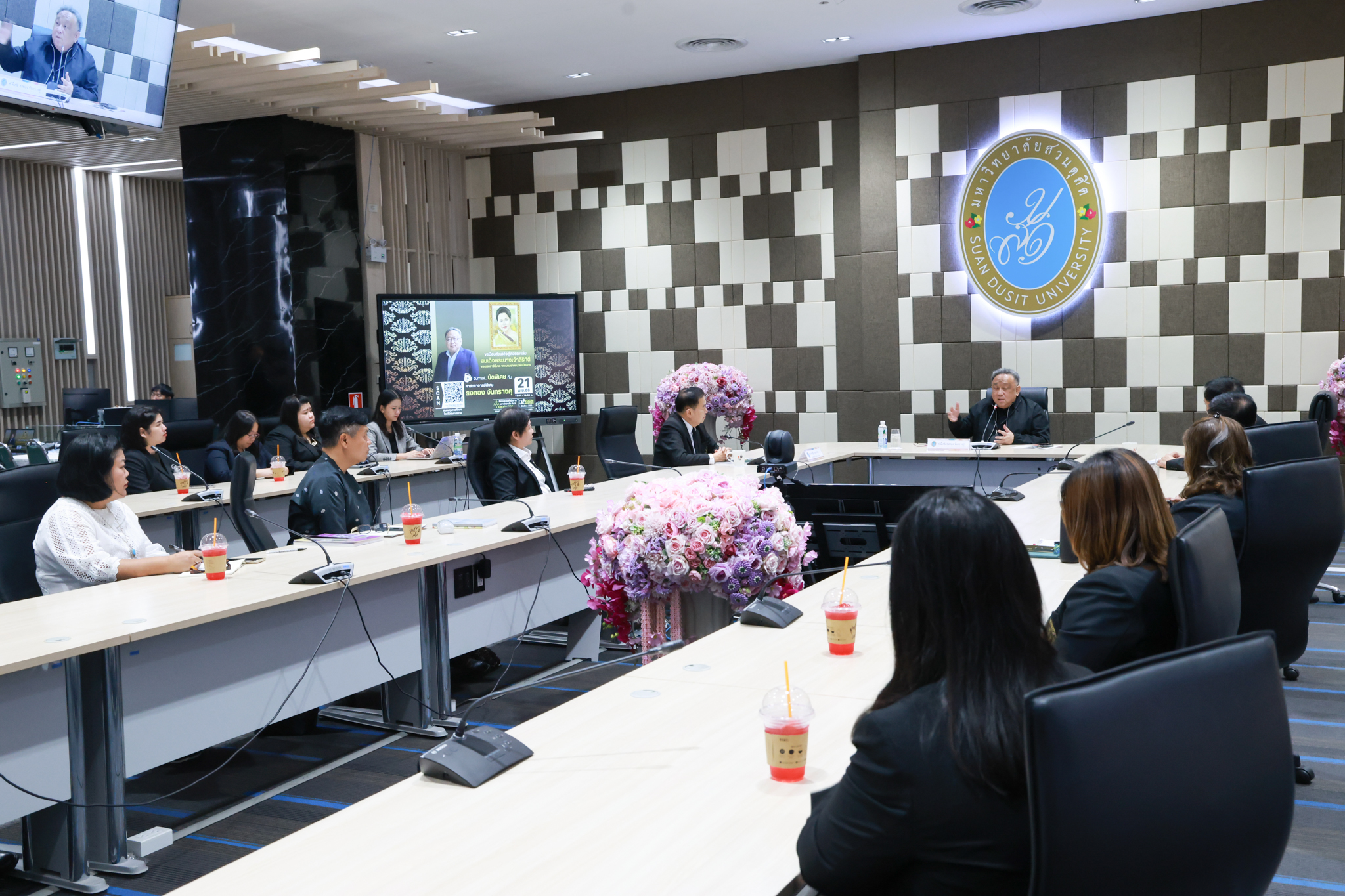 รศ.ดร.สุขุม เฉลยทรัพย์ ประธานที่ปรึกษาอธิการบดี มหาวิทยาลัยสวนดุสิต จัดกิจกรรมจิบกาแฟ…นัดพิเศษ กับ ศาสตราจารย์พิเศษ ธงทอง จันทรางศุ หัวข้อ “ขอน้อมส่งเสด็จสู่สวรรคาลัยสมเด็จพระนางเจ้าสิริกิติ์พระบรมราชินีนาถ พระบรมราชชนนีพันปีหลวง” เมื่อวันศุกร์ที่ 21 พฤศจิกายน 2568 ณ ห้องประชุมชั้น 5 อาคารสำนักงานมหาวิทยาลัย และออนไลน์ผ่าน Zoom