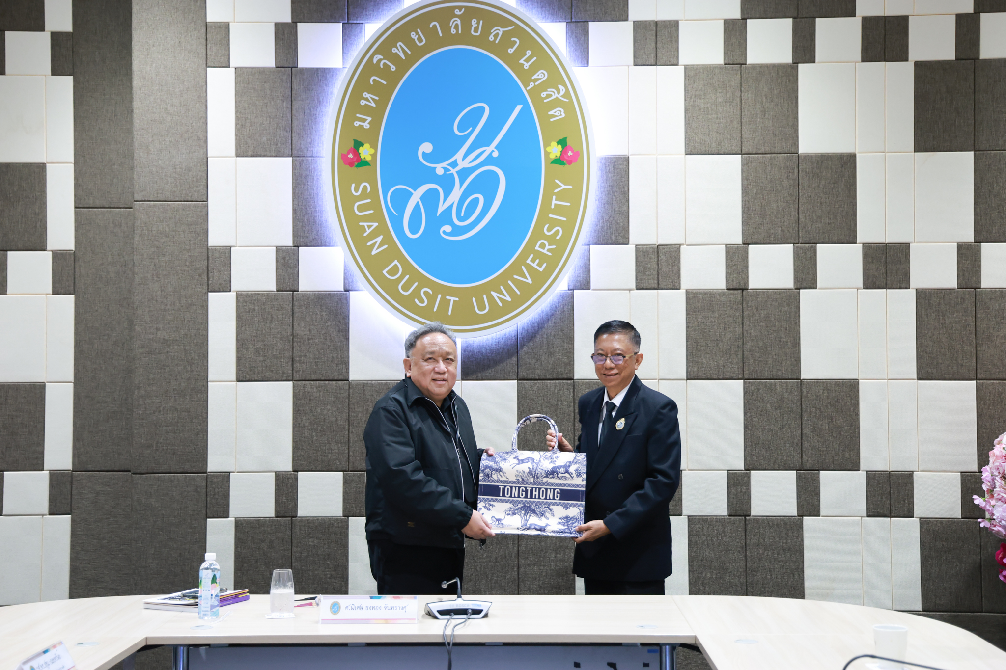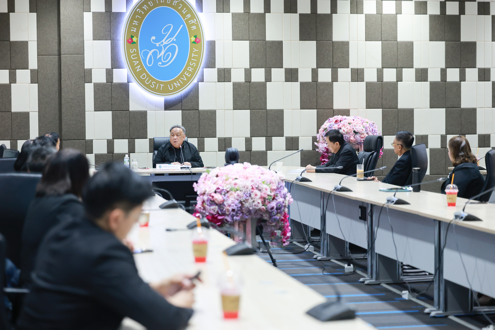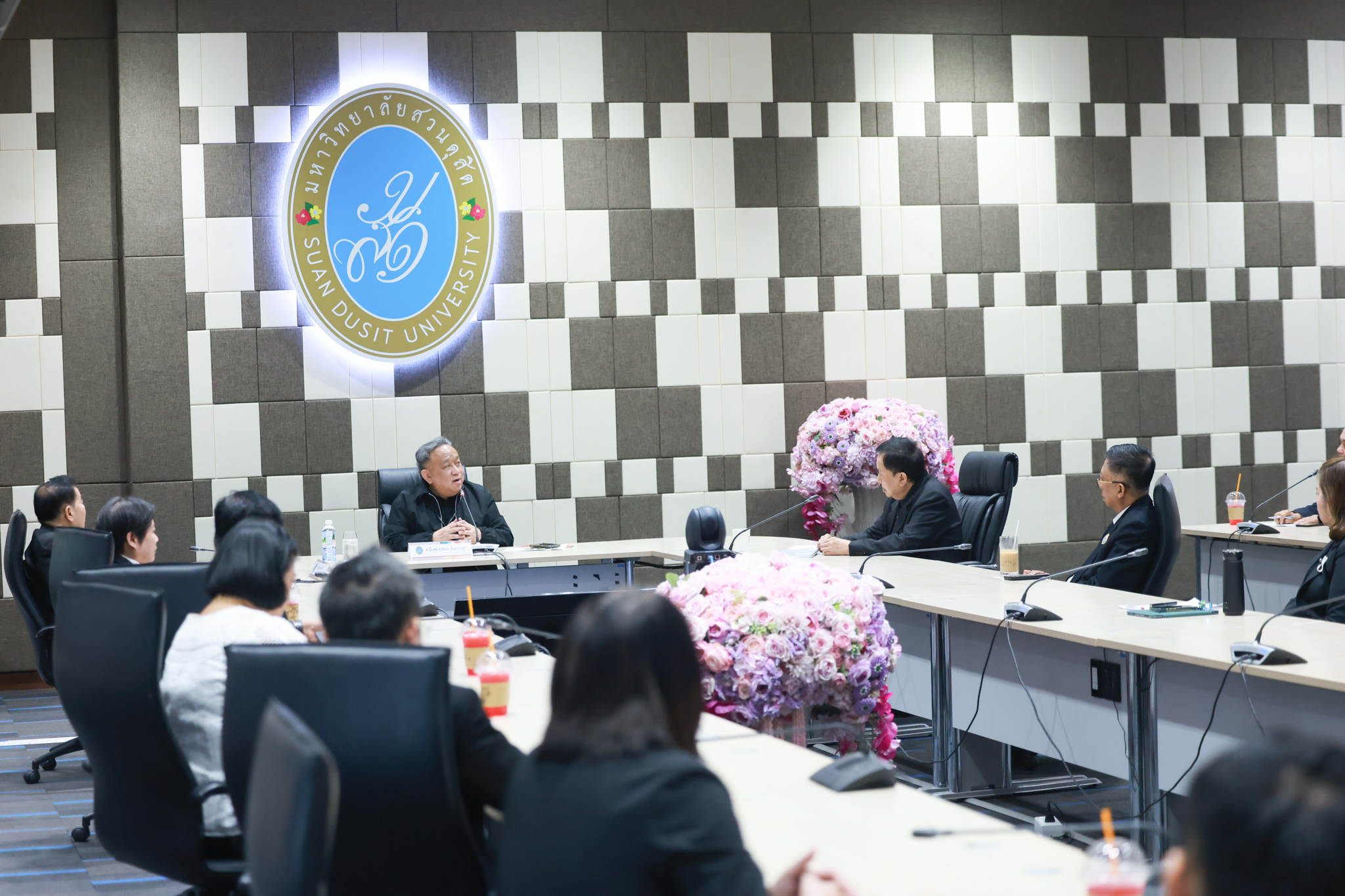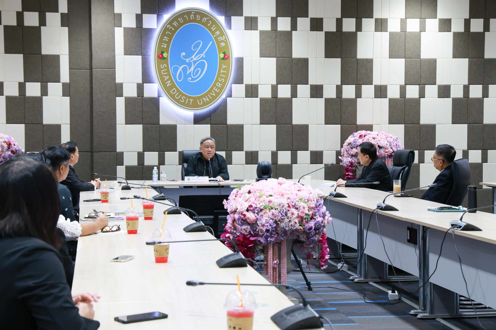 รศ.ดร.สุขุม เฉลยทรัพย์ ประธานที่ปรึกษาอธิการบดี มหาวิทยาลัยสวนดุสิต จัดกิจกรรมจิบกาแฟ…นัดพิเศษ กับ ศาสตราจารย์พิเศษ ธงทอง จันทรางศุ หัวข้อ “ขอน้อมส่งเสด็จสู่สวรรคาลัยสมเด็จพระนางเจ้าสิริกิติ์พระบรมราชินีนาถ พระบรมราชชนนีพันปีหลวง” เมื่อวันศุกร์ที่ 21 พฤศจิกายน 2568 ณ ห้องประชุมชั้น 5 อาคารสำนักงานมหาวิทยาลัย และออนไลน์ผ่าน Zoom