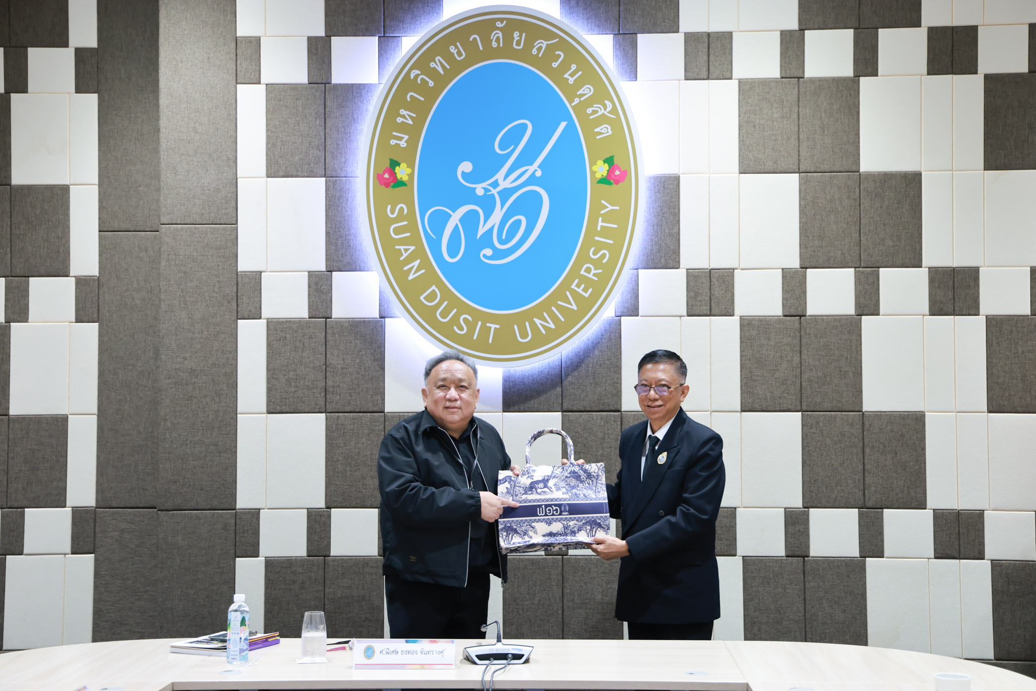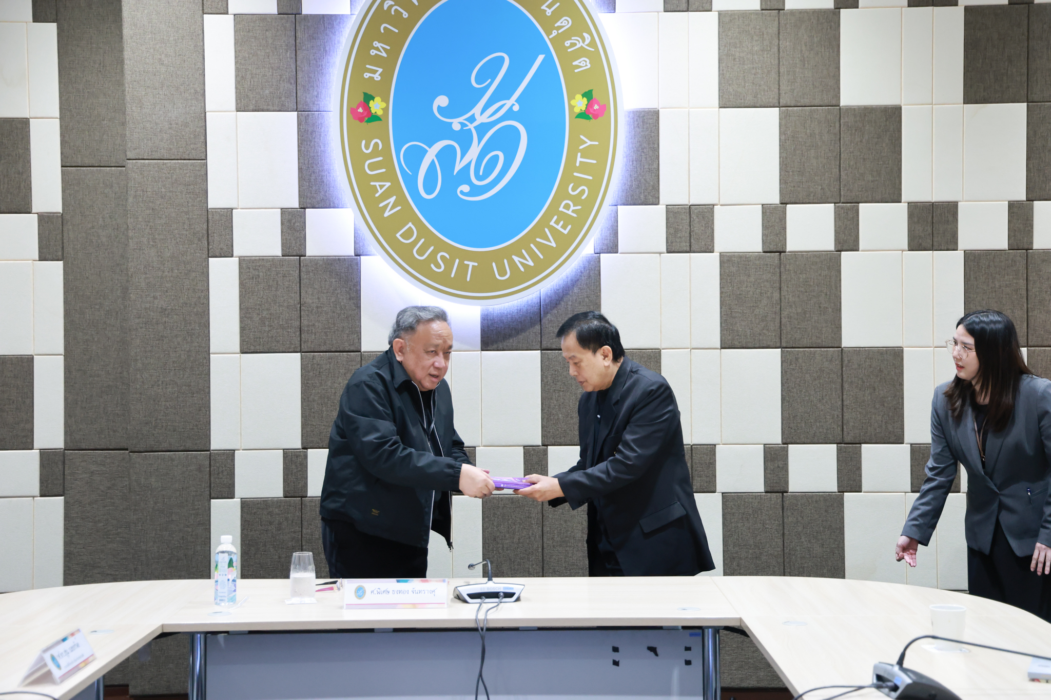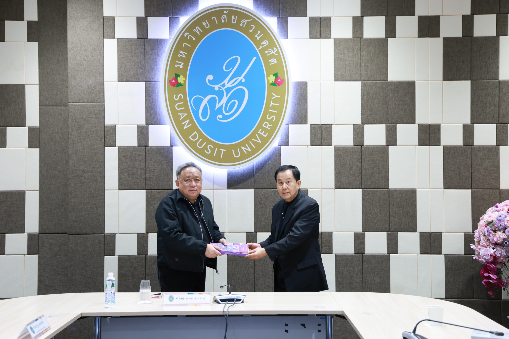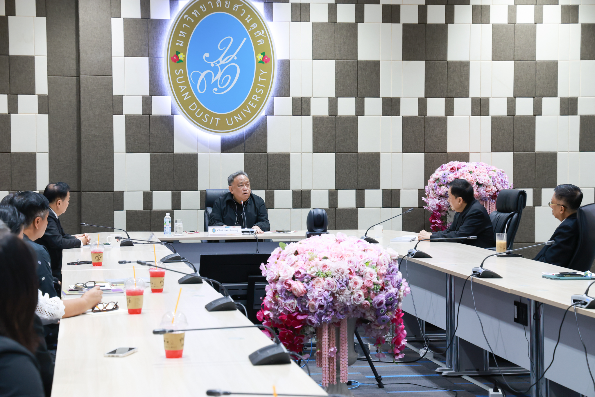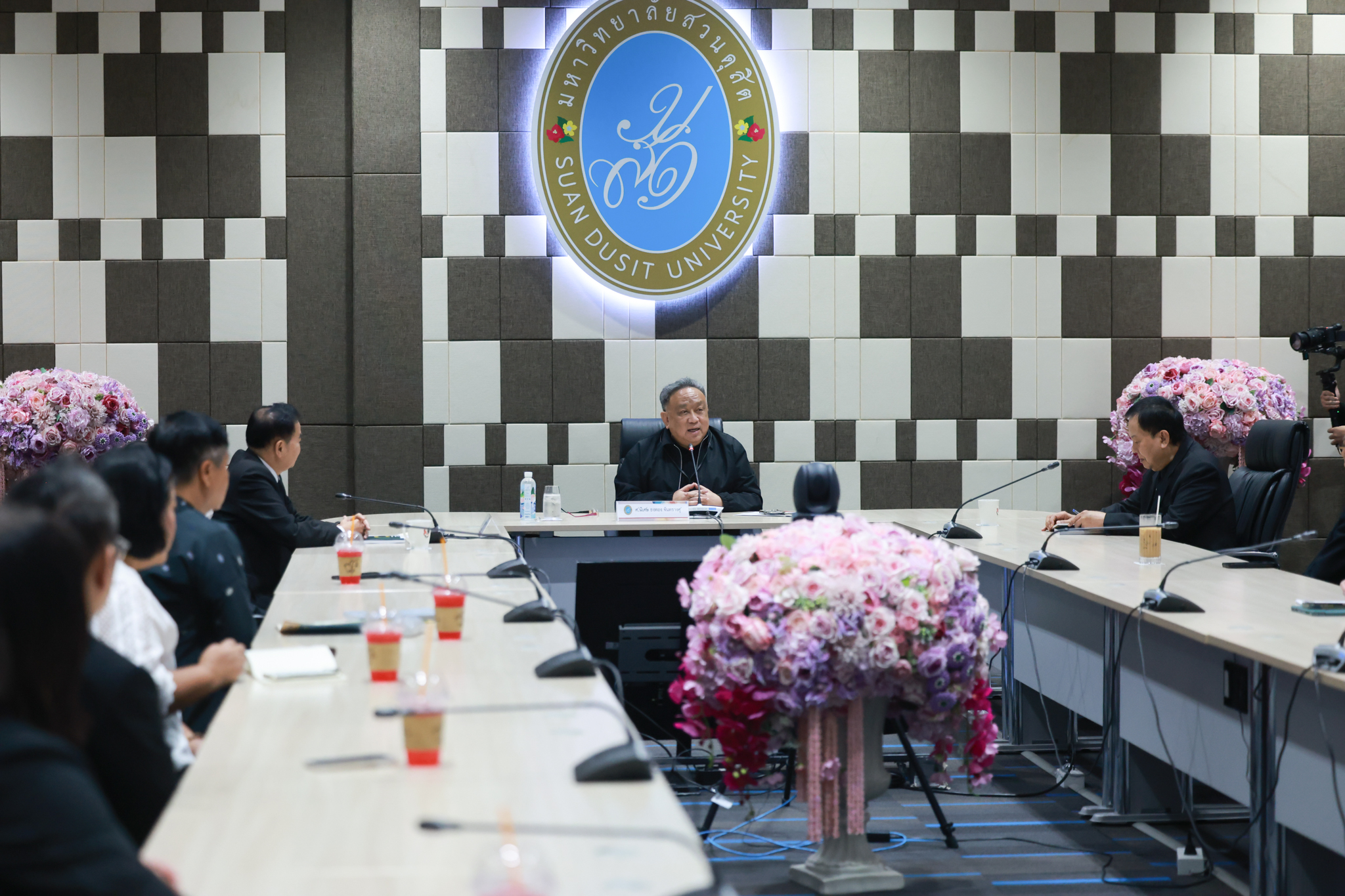 รศ.ดร.สุขุม เฉลยทรัพย์ ประธานที่ปรึกษาอธิการบดี มหาวิทยาลัยสวนดุสิต จัดกิจกรรมจิบกาแฟ…นัดพิเศษ กับ ศาสตราจารย์พิเศษ ธงทอง จันทรางศุ หัวข้อ “ขอน้อมส่งเสด็จสู่สวรรคาลัยสมเด็จพระนางเจ้าสิริกิติ์พระบรมราชินีนาถ พระบรมราชชนนีพันปีหลวง” เมื่อวันศุกร์ที่ 21 พฤศจิกายน 2568 ณ ห้องประชุมชั้น 5 อาคารสำนักงานมหาวิทยาลัย และออนไลน์ผ่าน Zoom