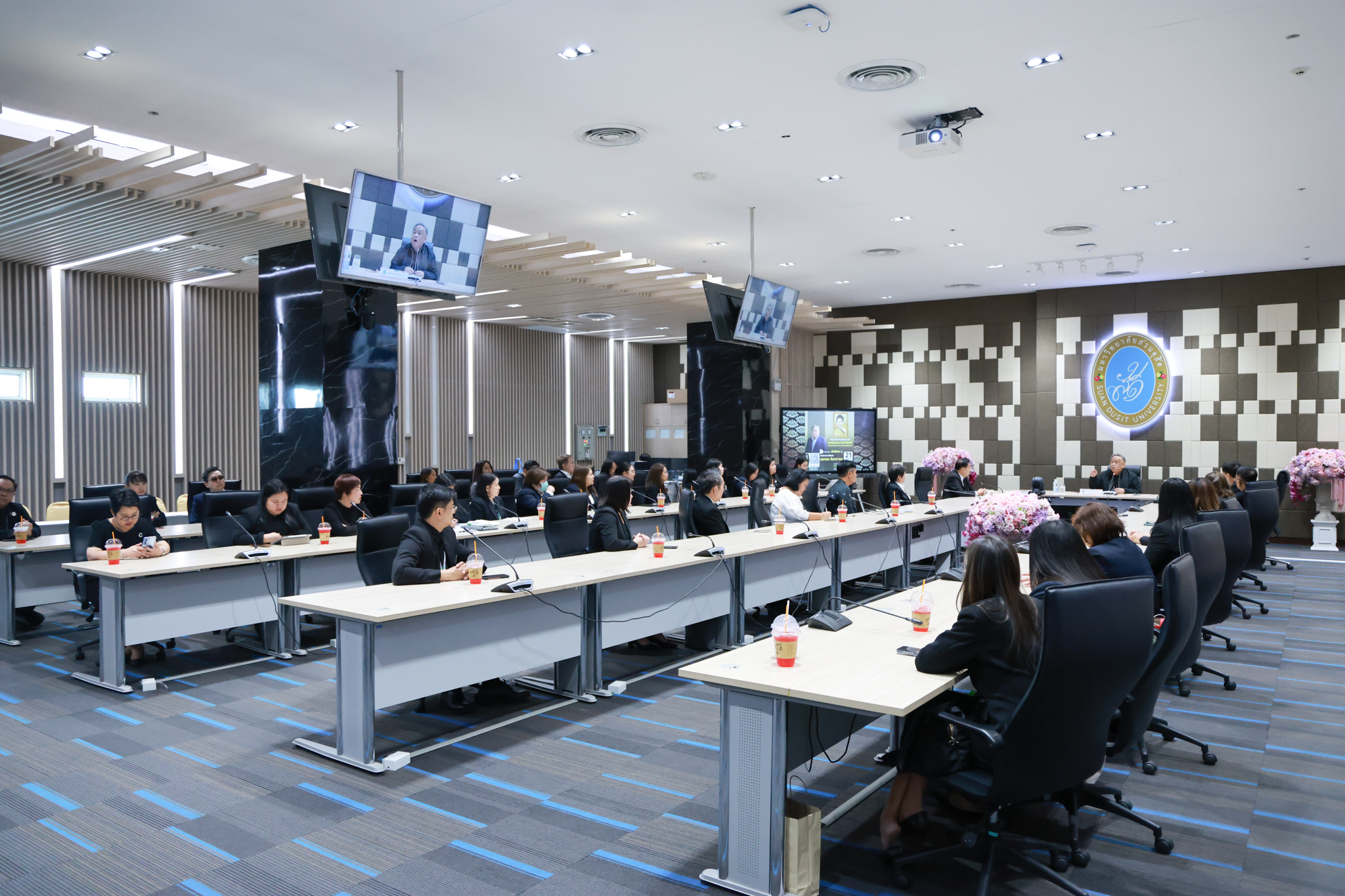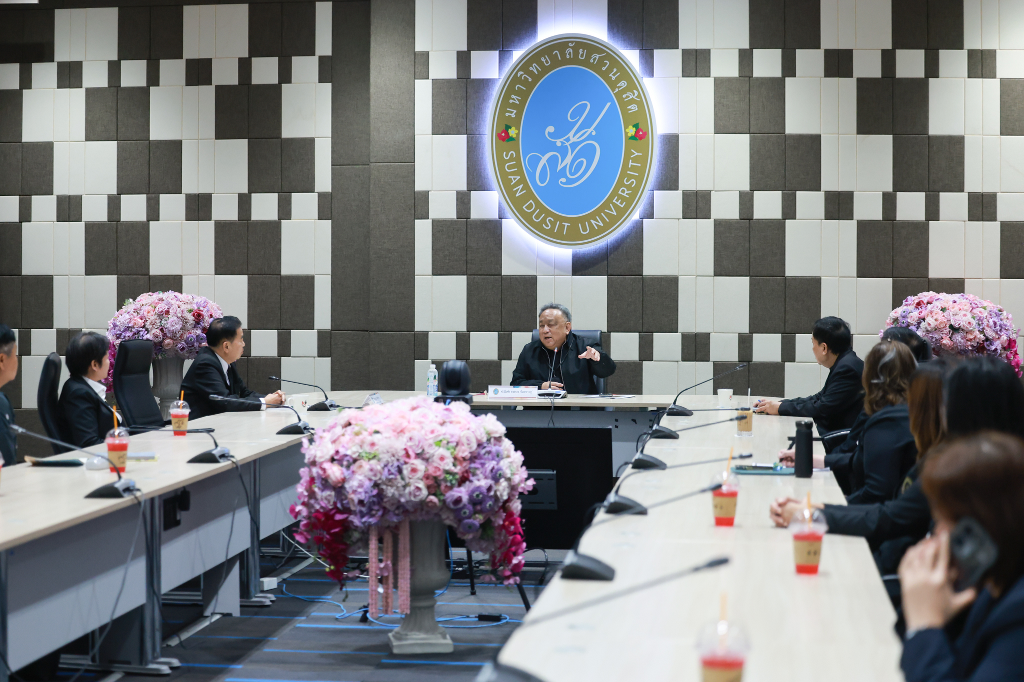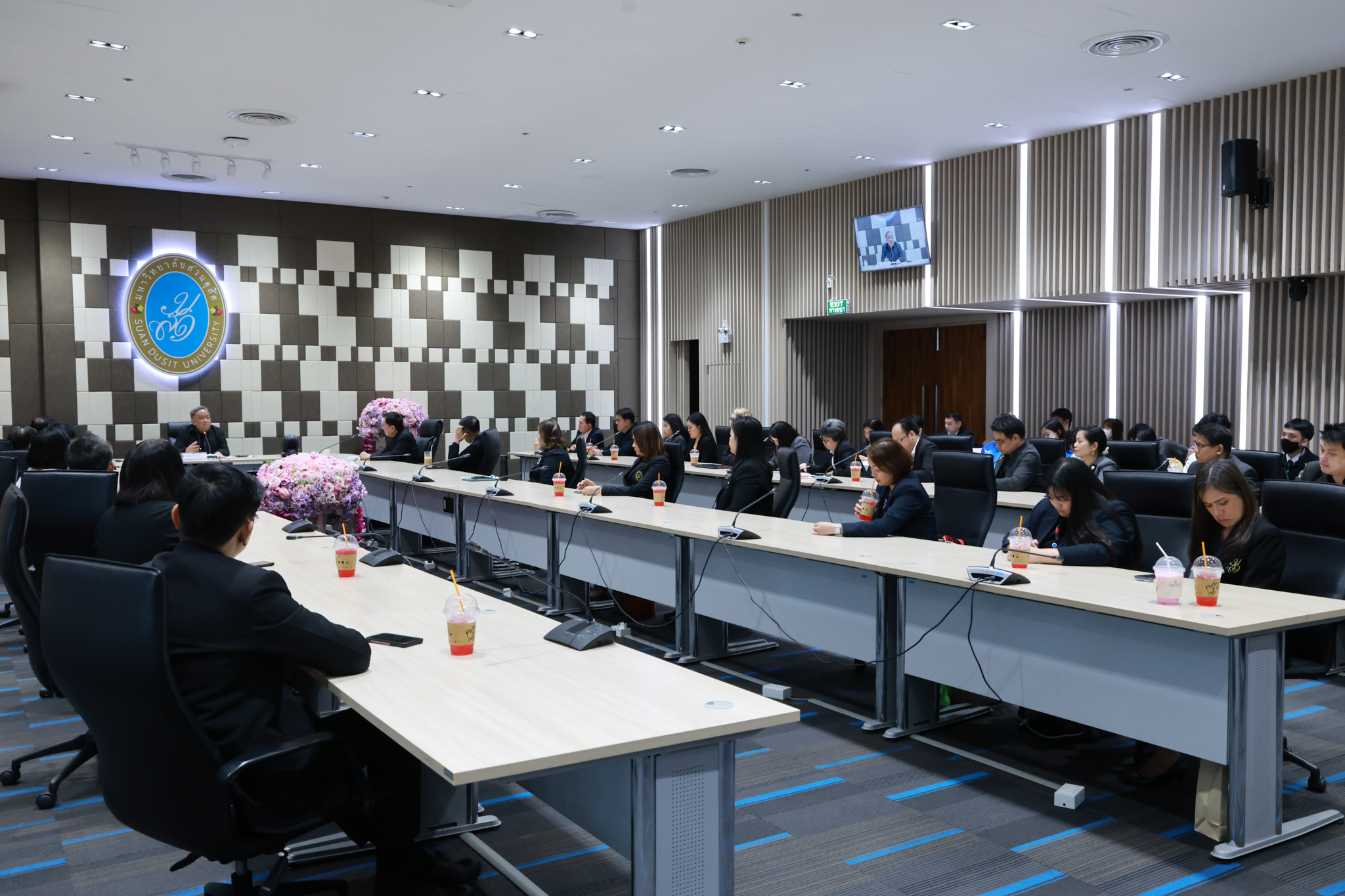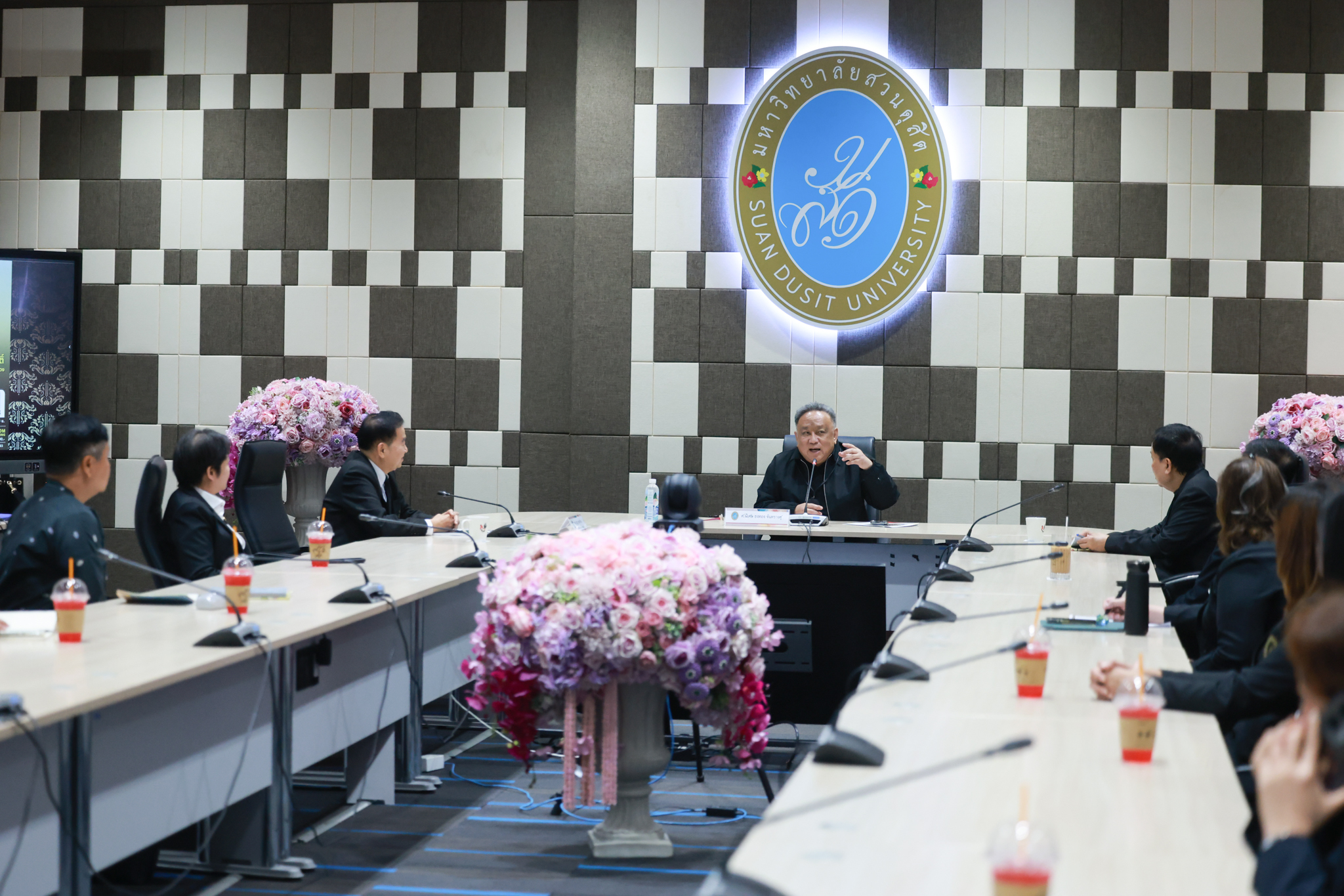 รศ.ดร.สุขุม เฉลยทรัพย์ ประธานที่ปรึกษาอธิการบดี มหาวิทยาลัยสวนดุสิต จัดกิจกรรมจิบกาแฟ…นัดพิเศษ กับ ศาสตราจารย์พิเศษ ธงทอง จันทรางศุ หัวข้อ “ขอน้อมส่งเสด็จสู่สวรรคาลัยสมเด็จพระนางเจ้าสิริกิติ์พระบรมราชินีนาถ พระบรมราชชนนีพันปีหลวง” เมื่อวันศุกร์ที่ 21 พฤศจิกายน 2568 ณ ห้องประชุมชั้น 5 อาคารสำนักงานมหาวิทยาลัย และออนไลน์ผ่าน Zoom